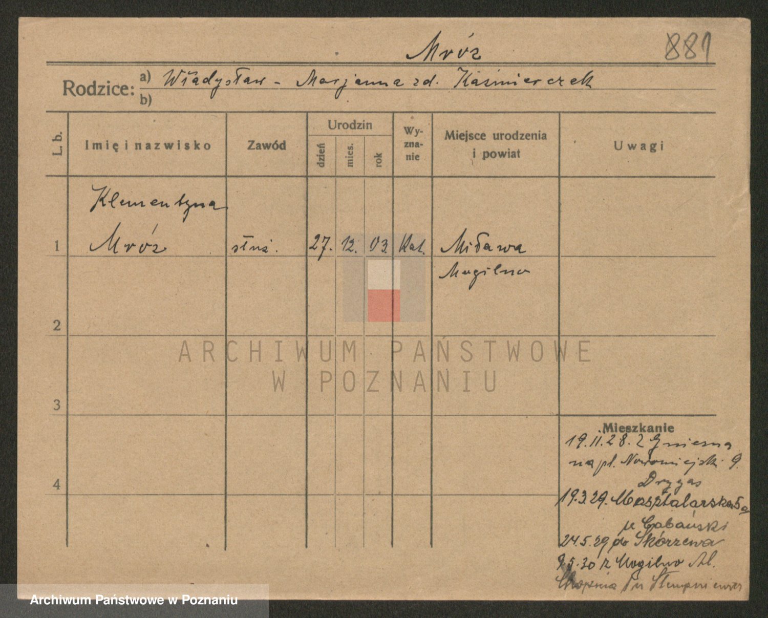 Mroczek, Kazimiera Marja