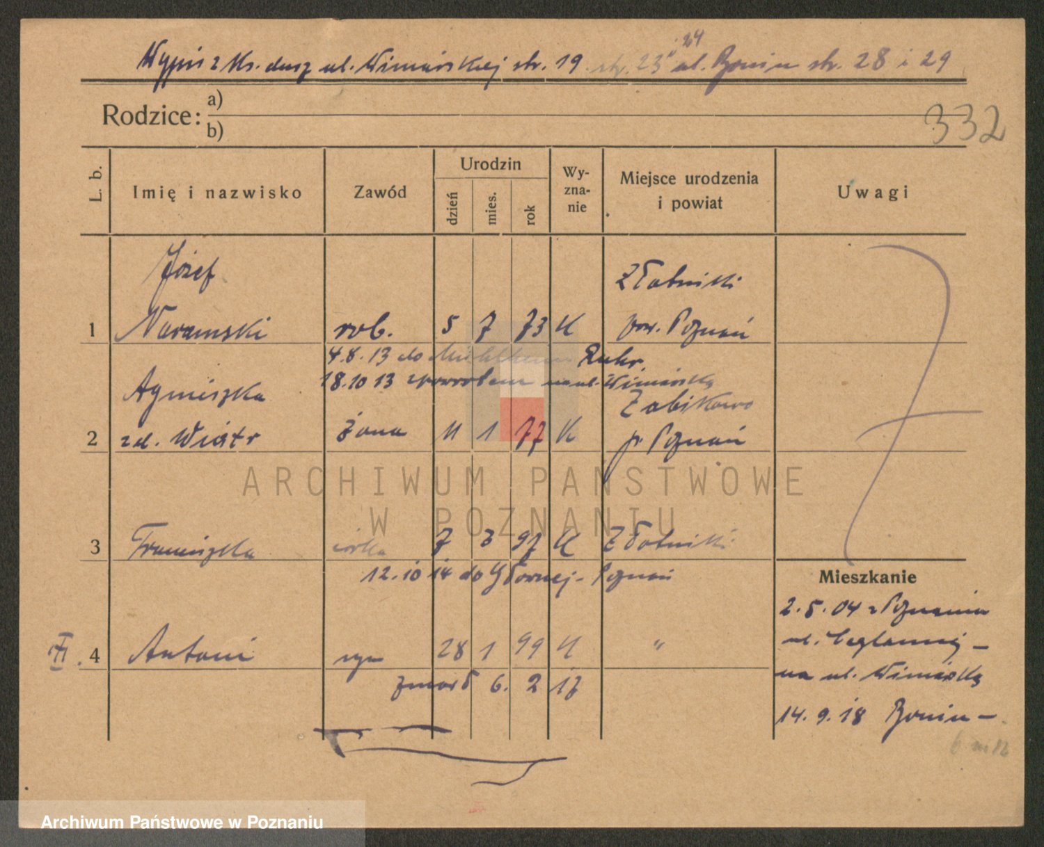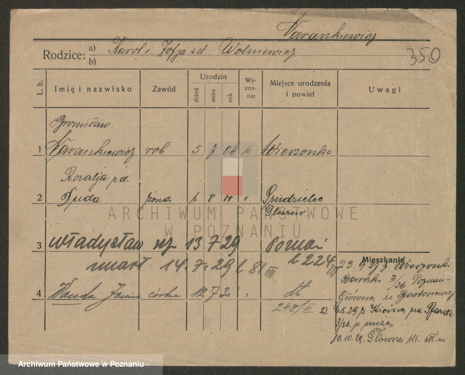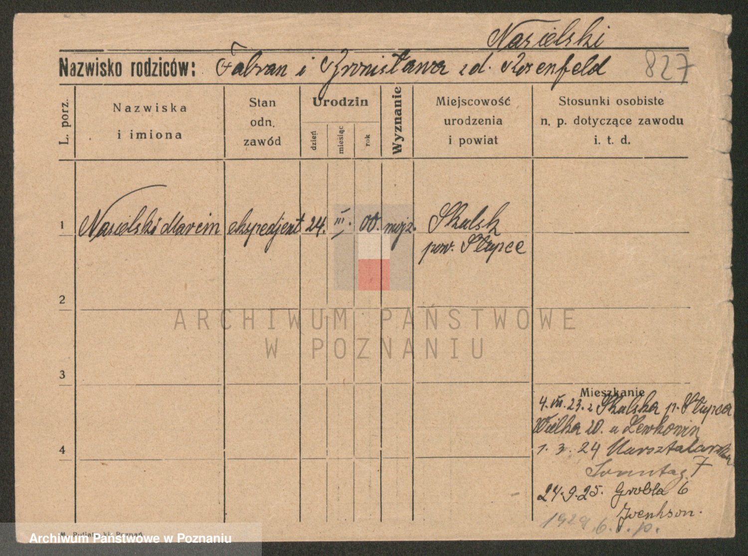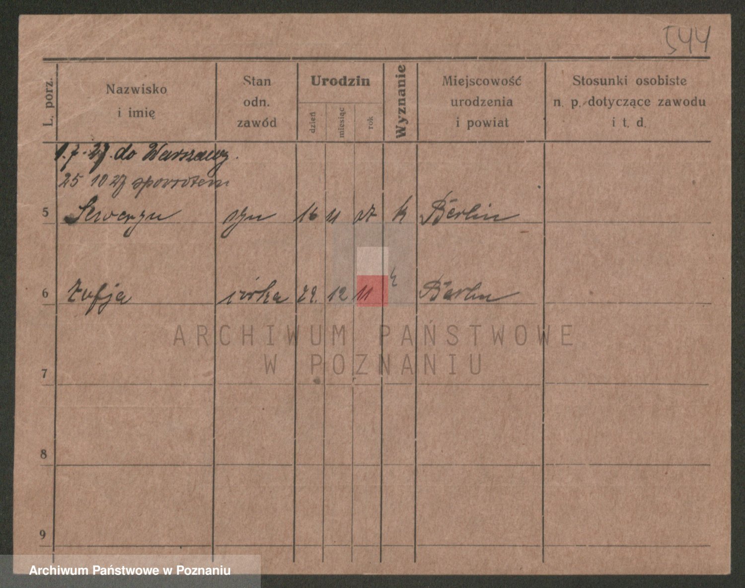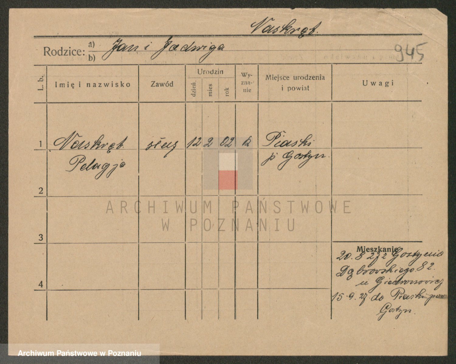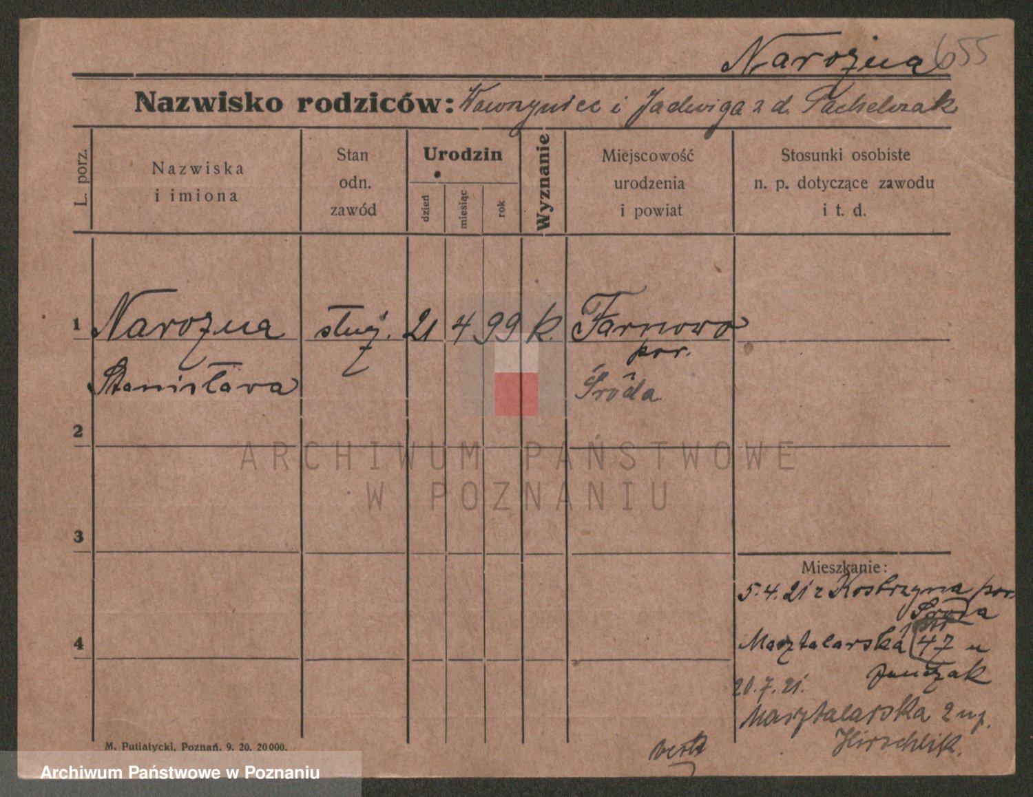 Podgląd karty osobowej dostępny jest po kliknięciu na nazwisko lub ikonkę karty. Można dokonywać powiększenia (ikony na górze) lub przechodzić między kolejnymi skanami (strzałki po bokach).