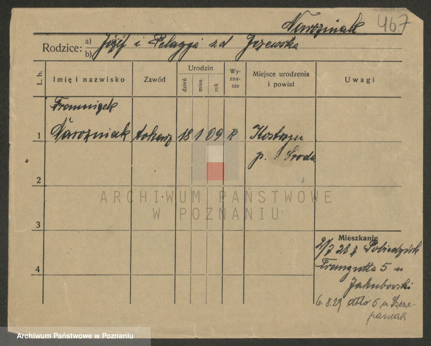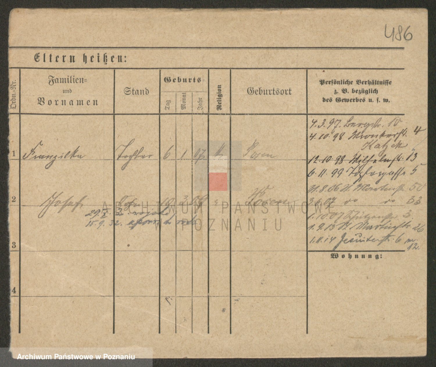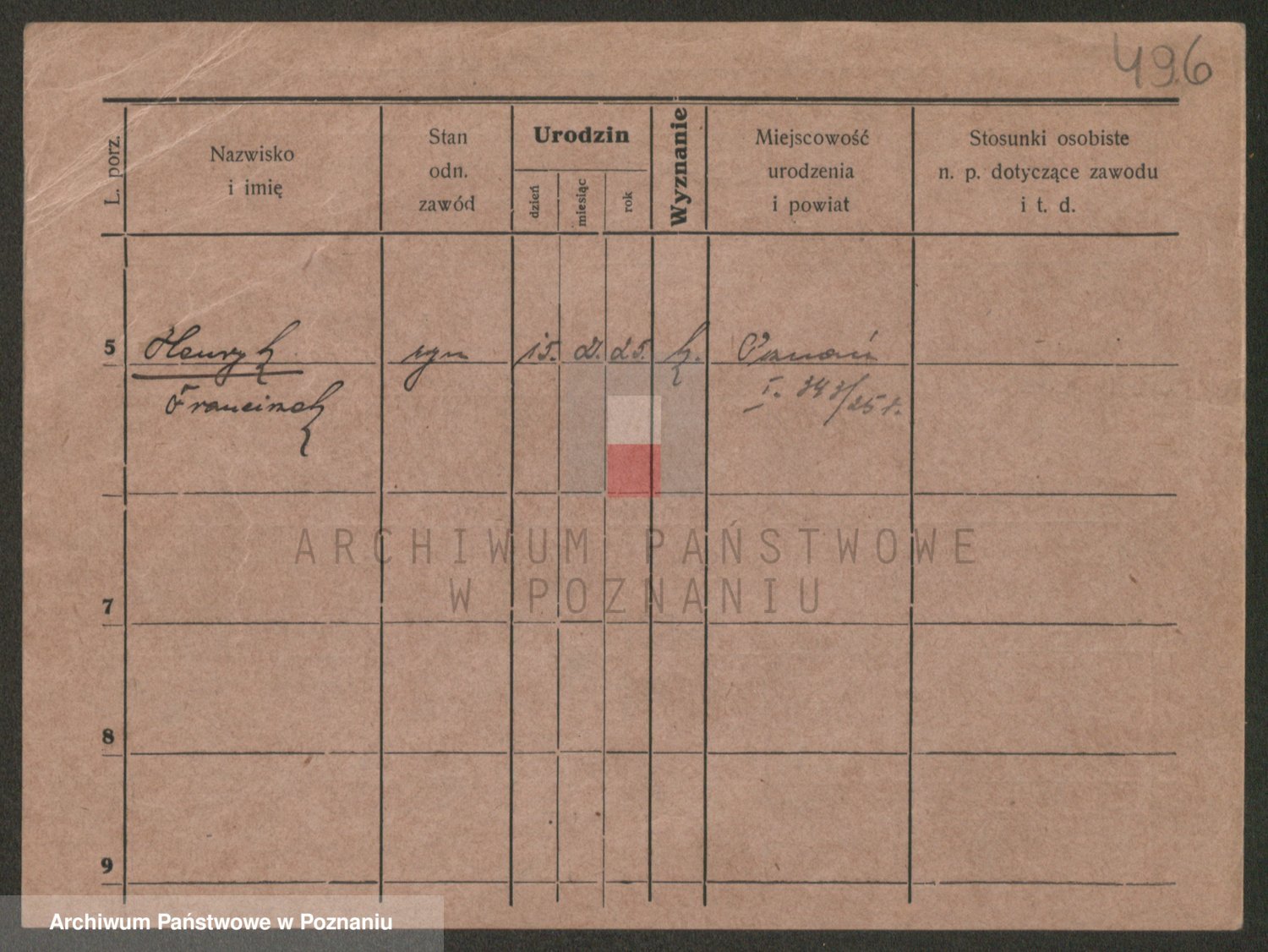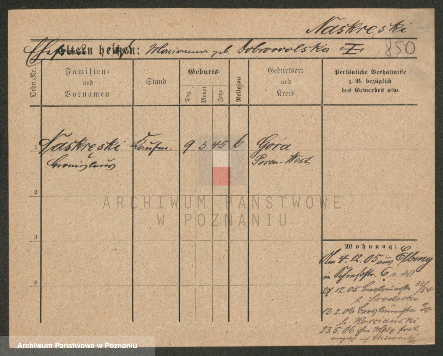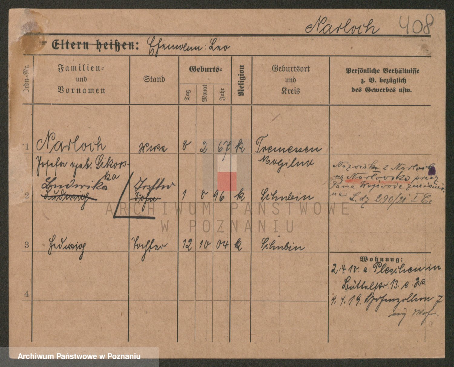 Podgląd karty osobowej dostępny jest po kliknięciu na nazwisko lub ikonkę karty. Można dokonywać powiększenia (ikony na górze) lub przechodzić między kolejnymi skanami (strzałki po bokach).
