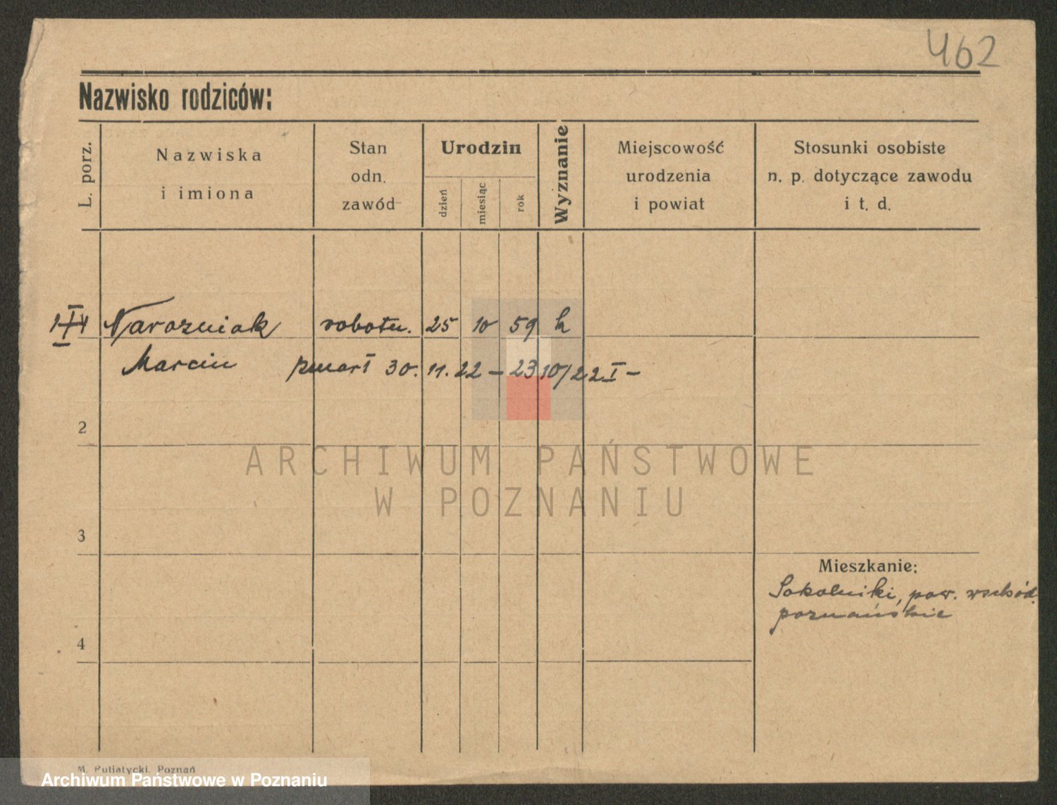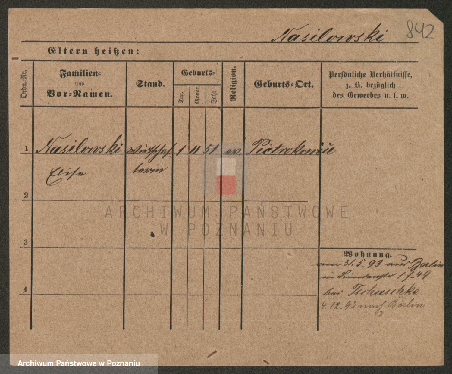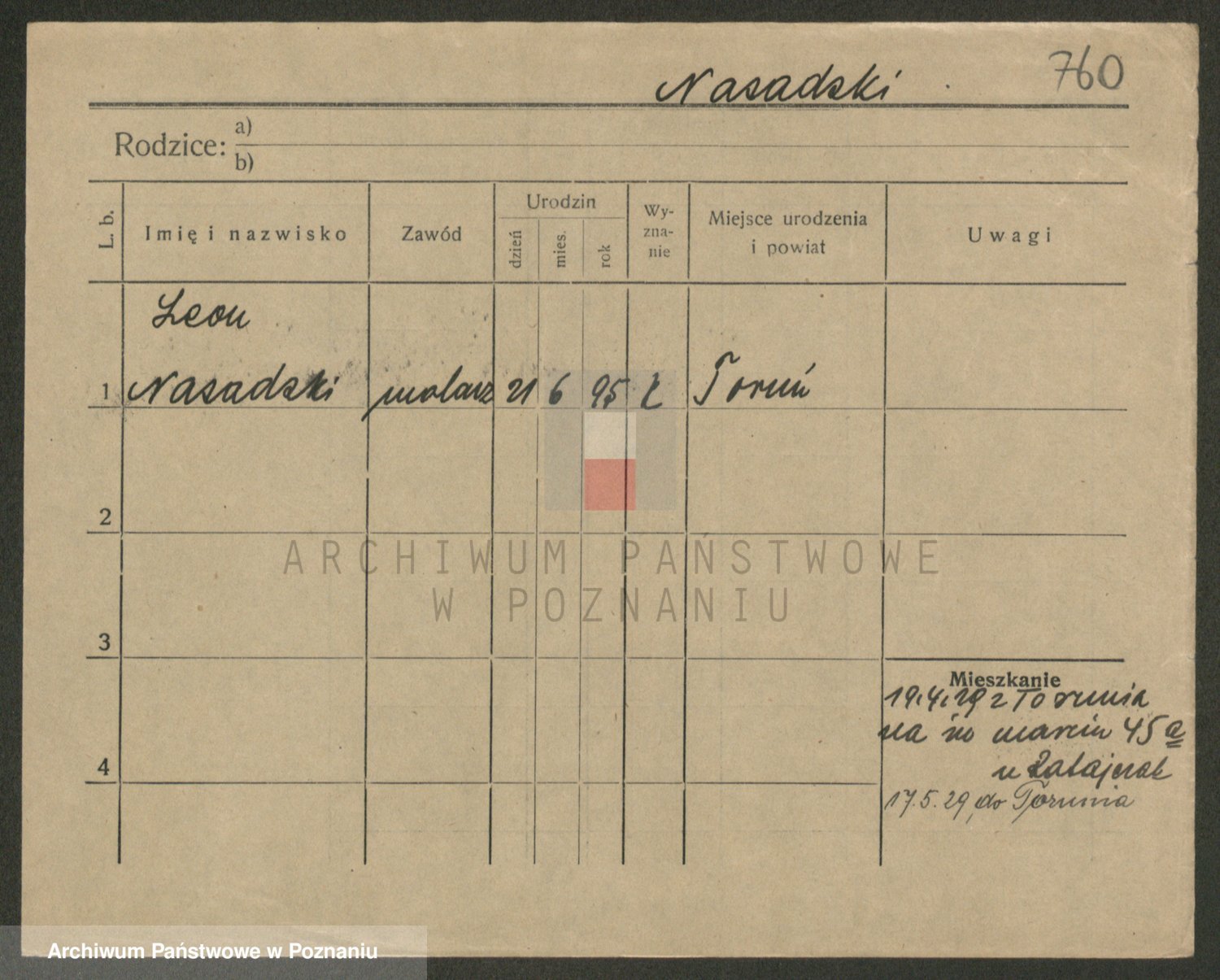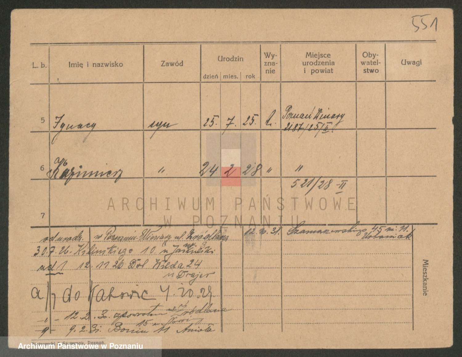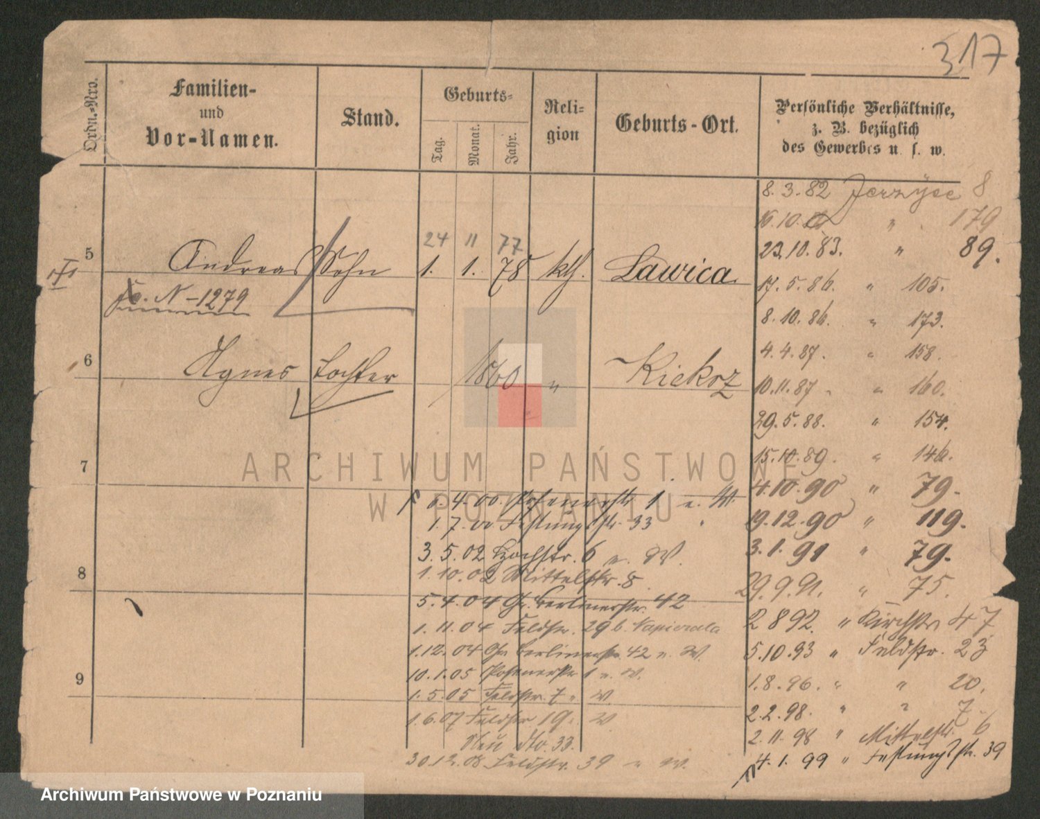 Podgląd karty osobowej dostępny jest po kliknięciu na nazwisko lub ikonkę karty. Można dokonywać powiększenia (ikony na górze) lub przechodzić między kolejnymi skanami (strzałki po bokach).