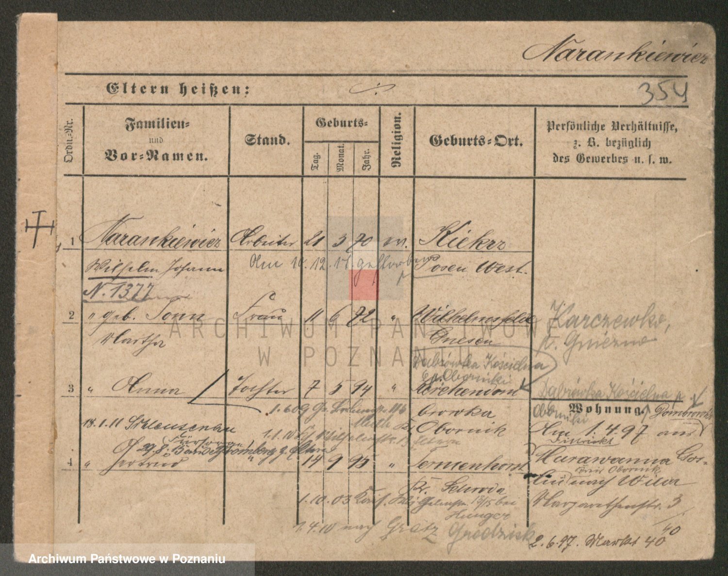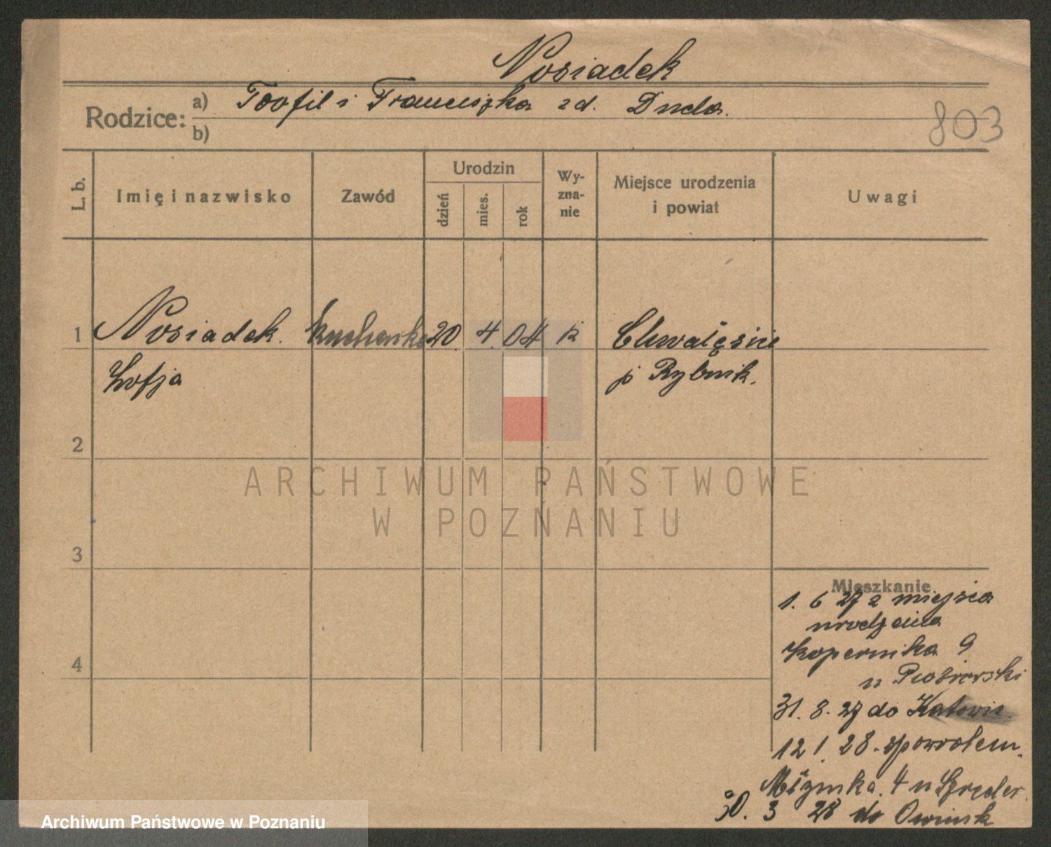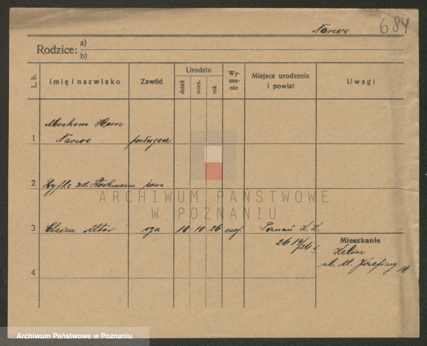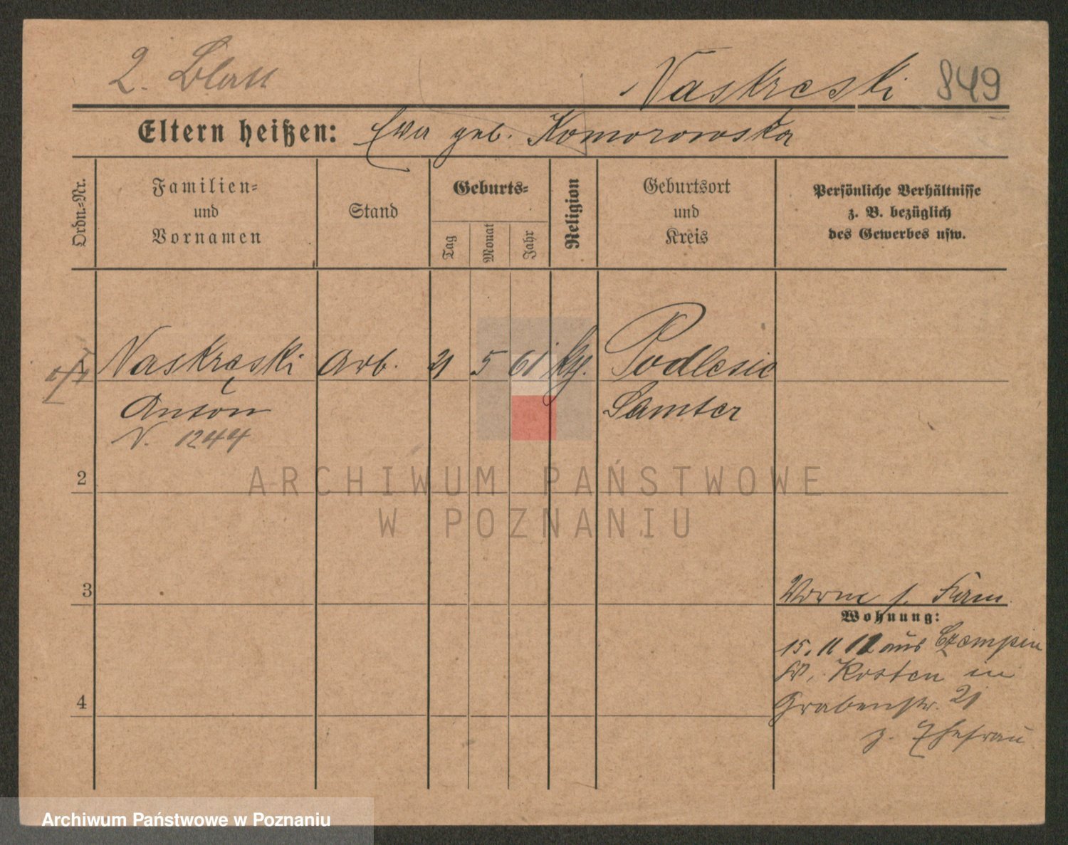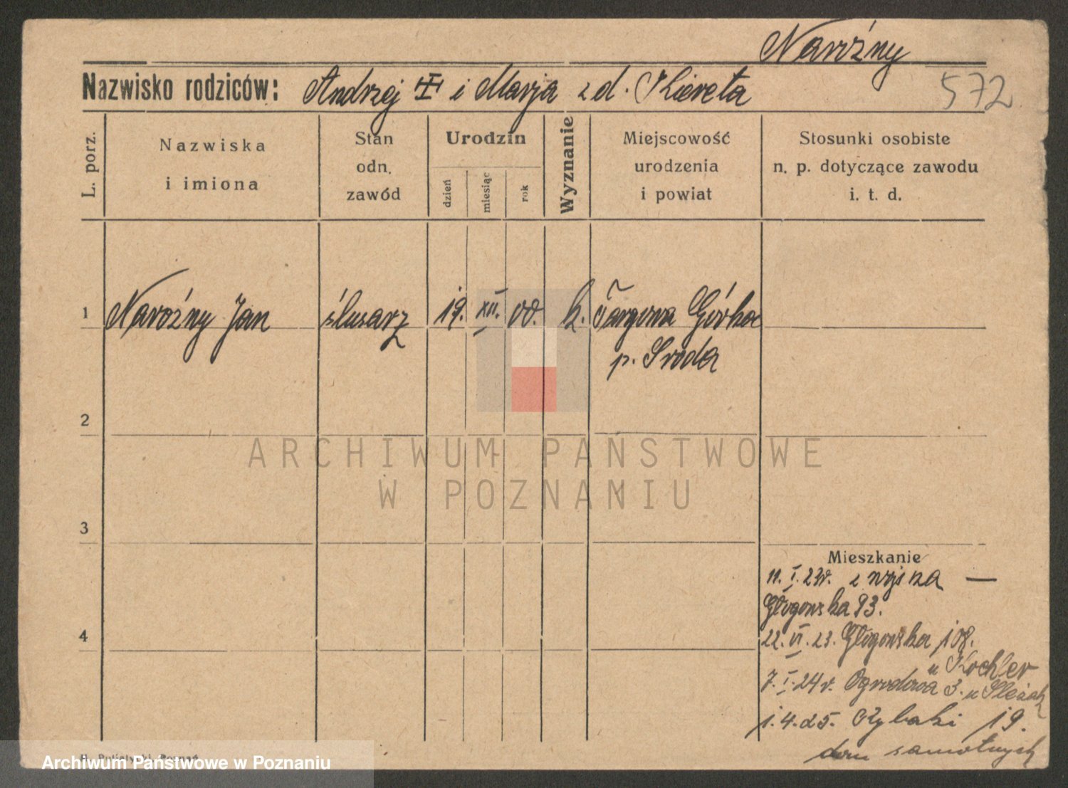 Podgląd karty osobowej dostępny jest po kliknięciu na nazwisko lub ikonkę karty. Można dokonywać powiększenia (ikony na górze) lub przechodzić między kolejnymi skanami (strzałki po bokach).