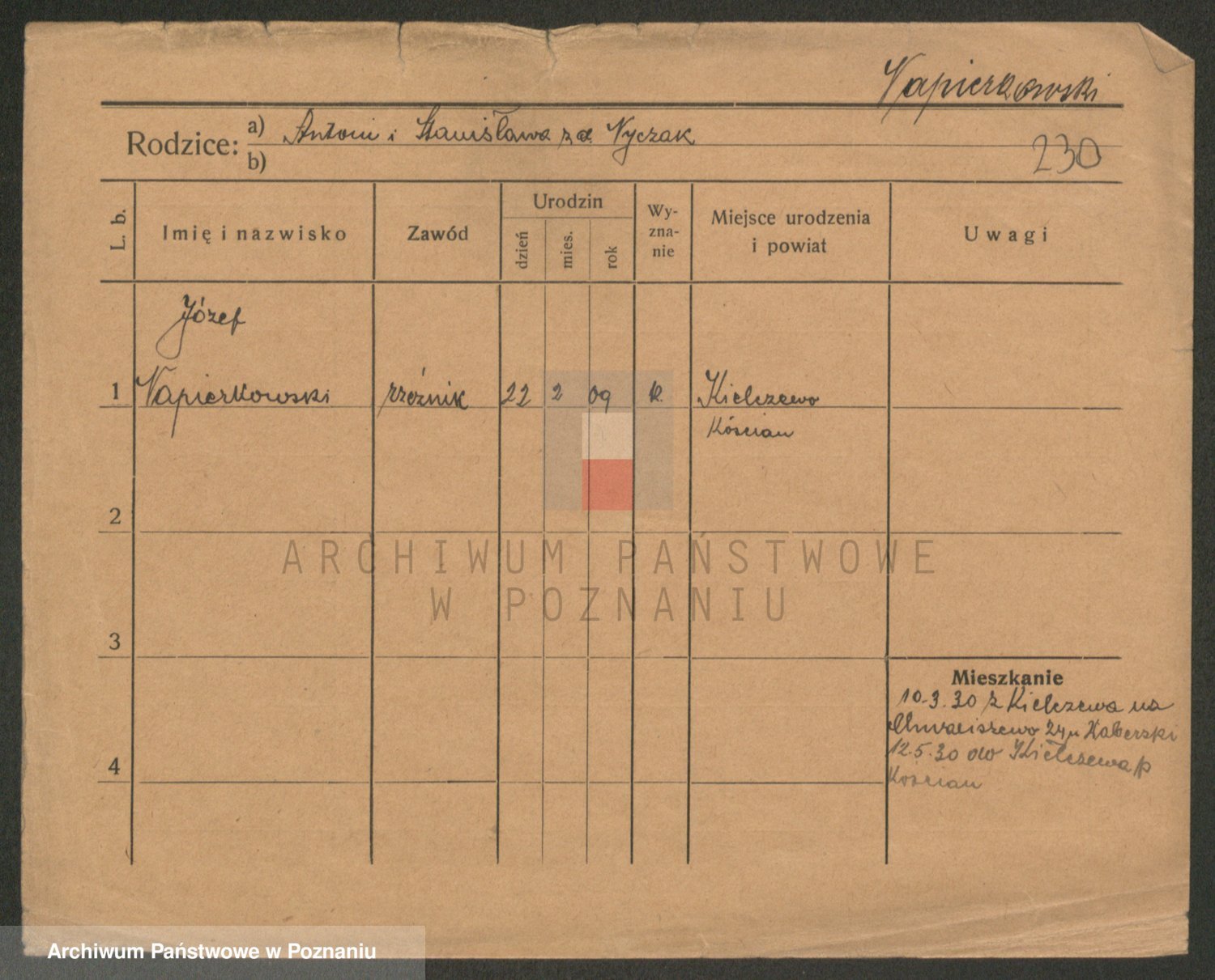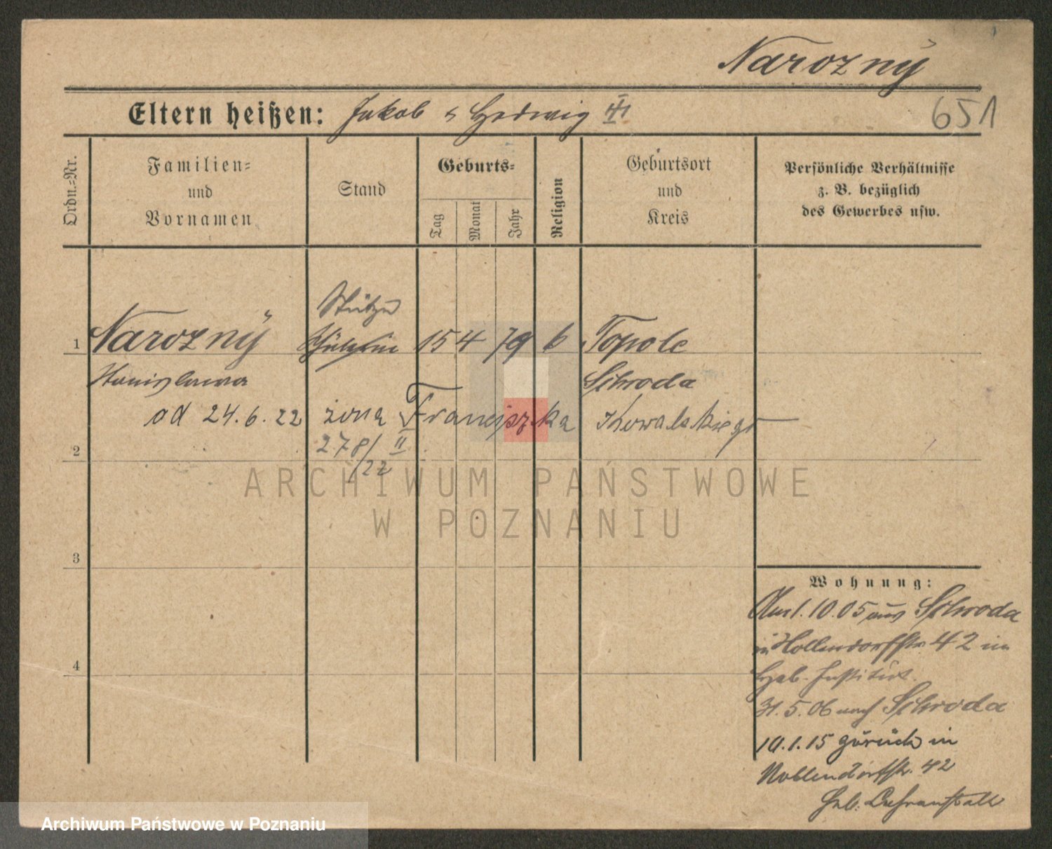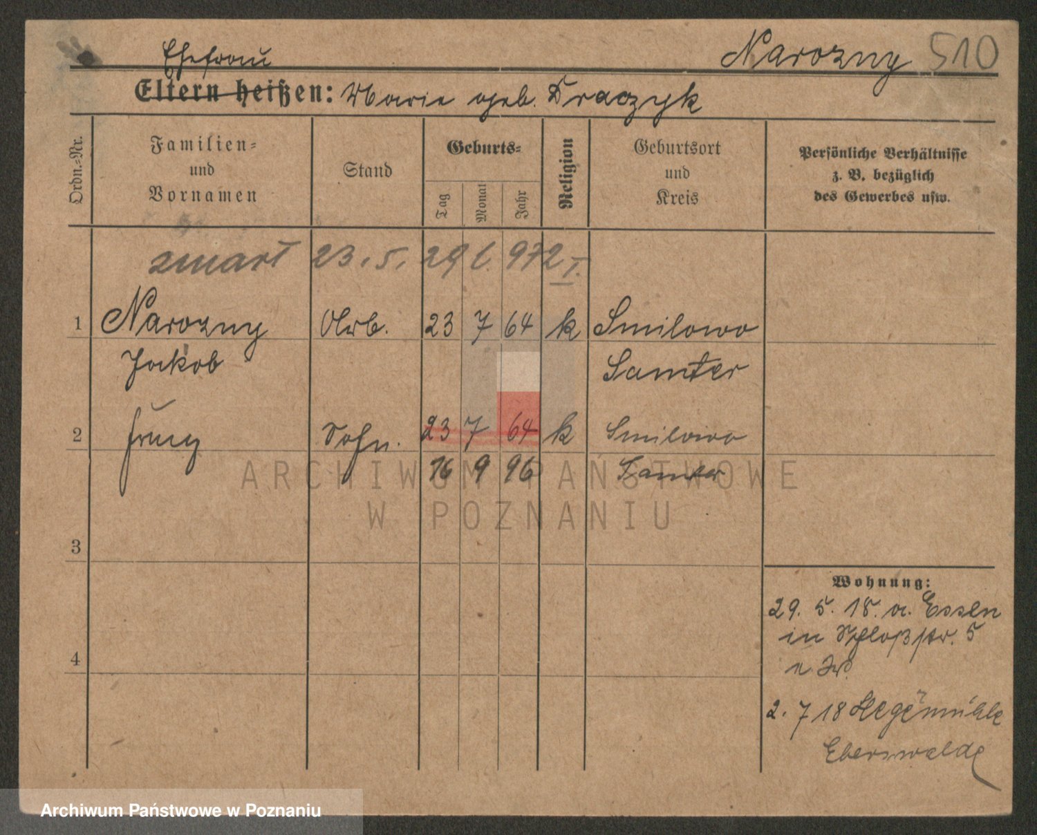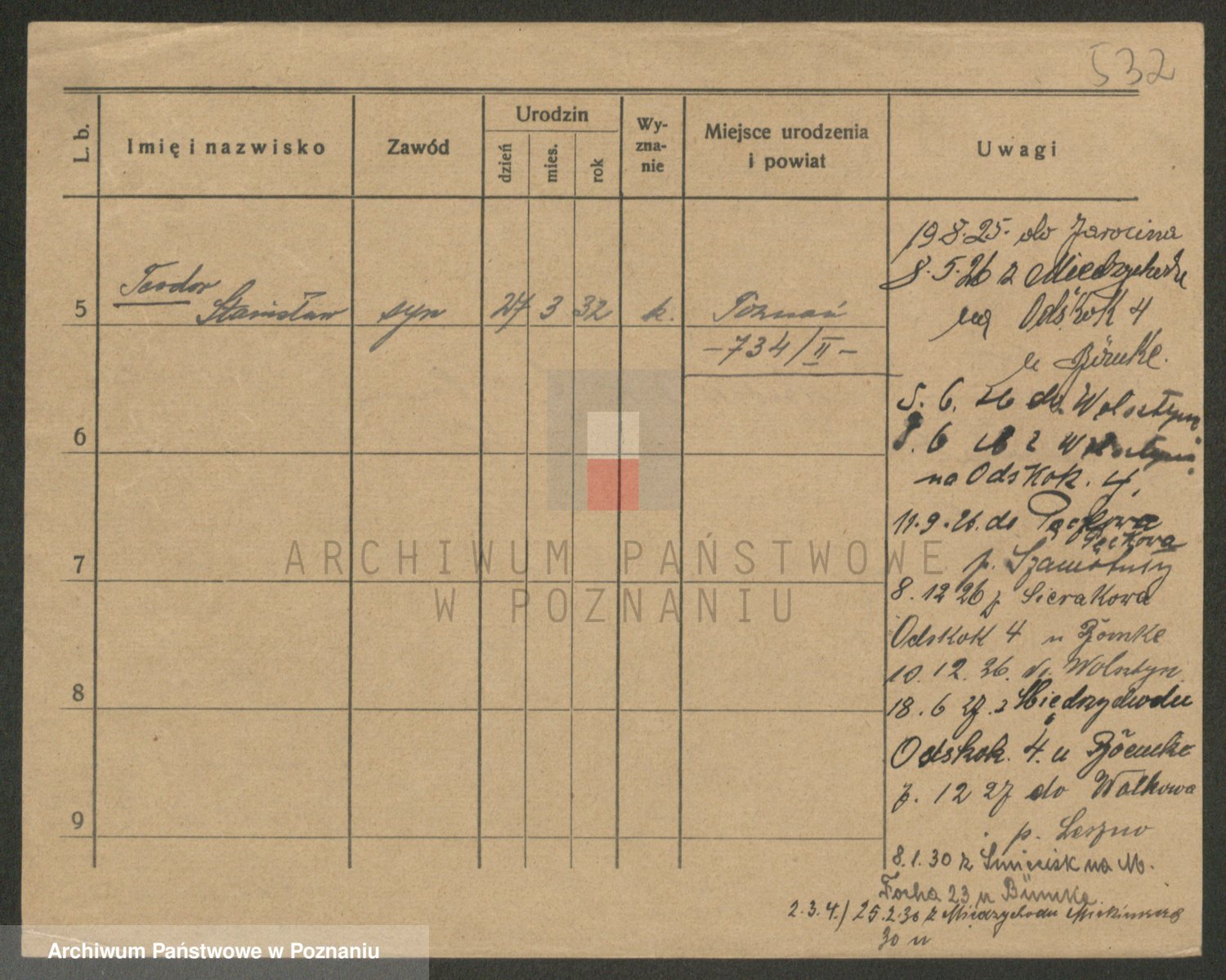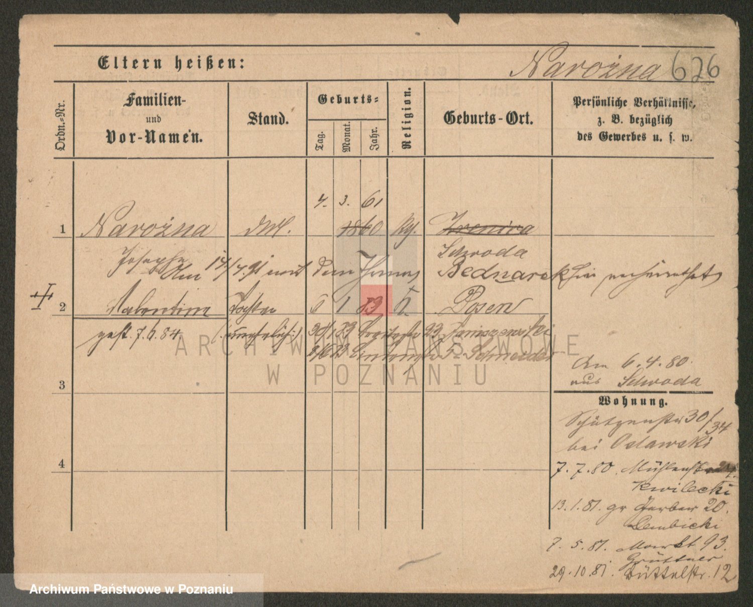 Podgląd karty osobowej dostępny jest po kliknięciu na nazwisko lub ikonkę karty. Można dokonywać powiększenia (ikony na górze) lub przechodzić między kolejnymi skanami (strzałki po bokach).