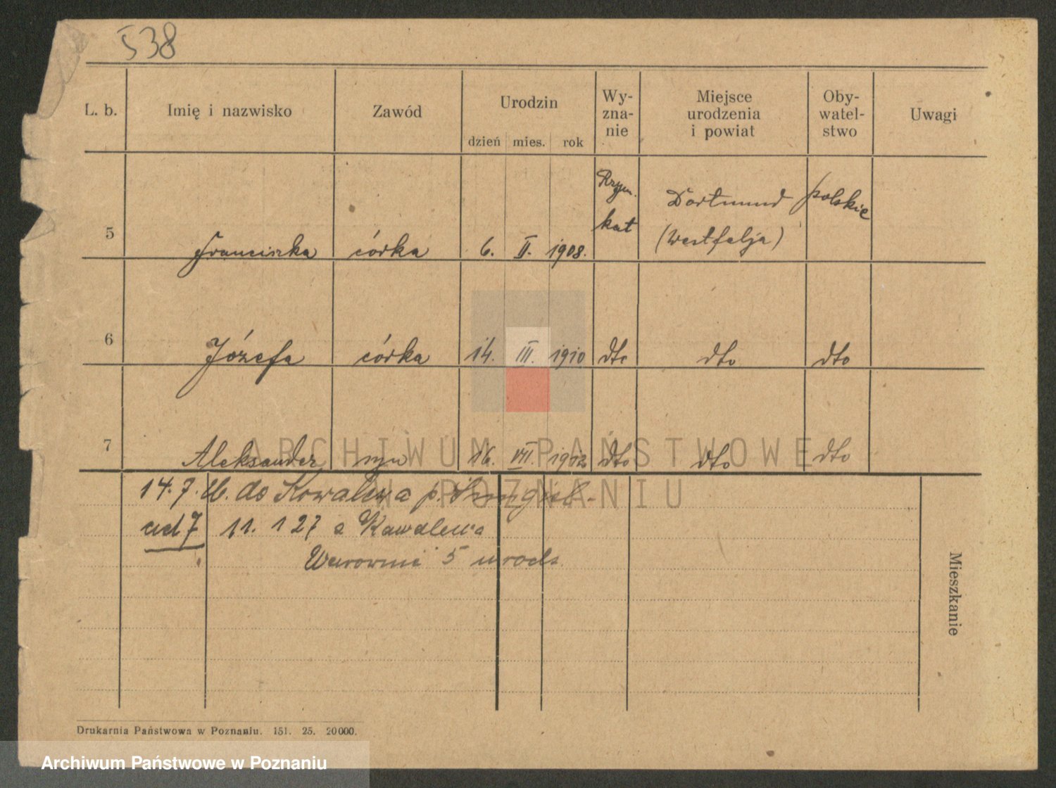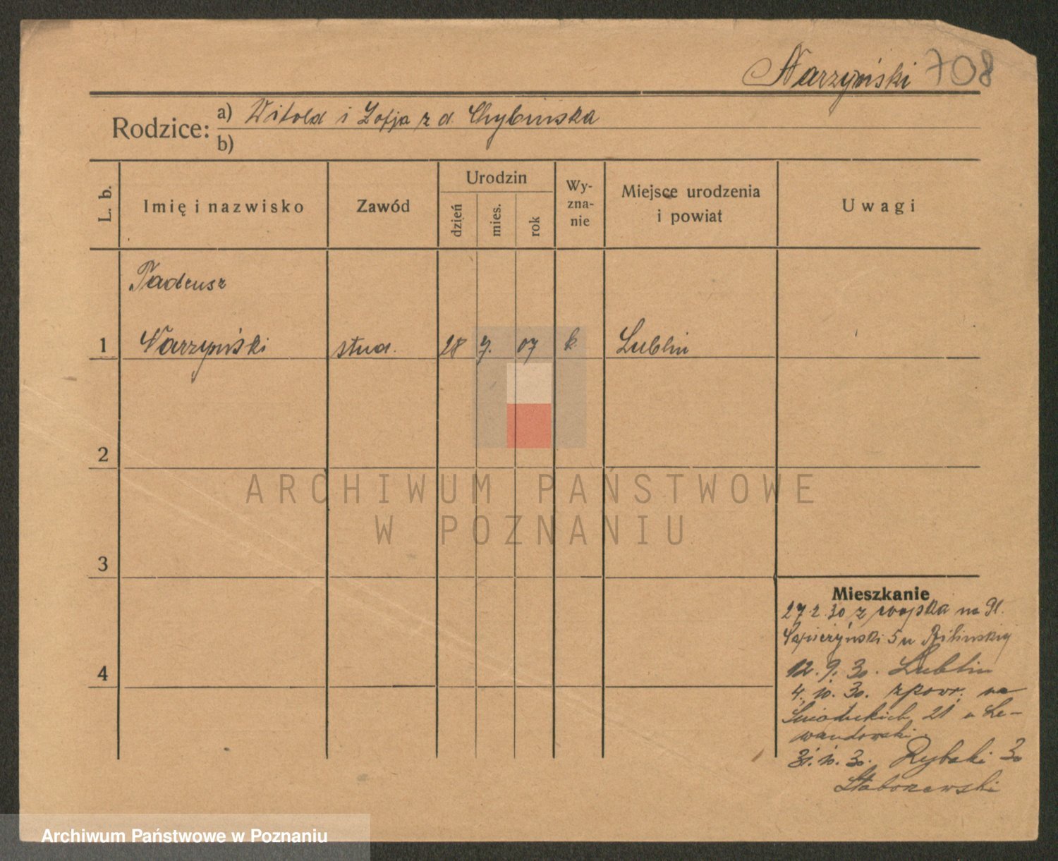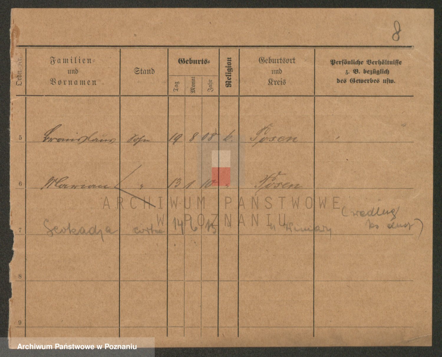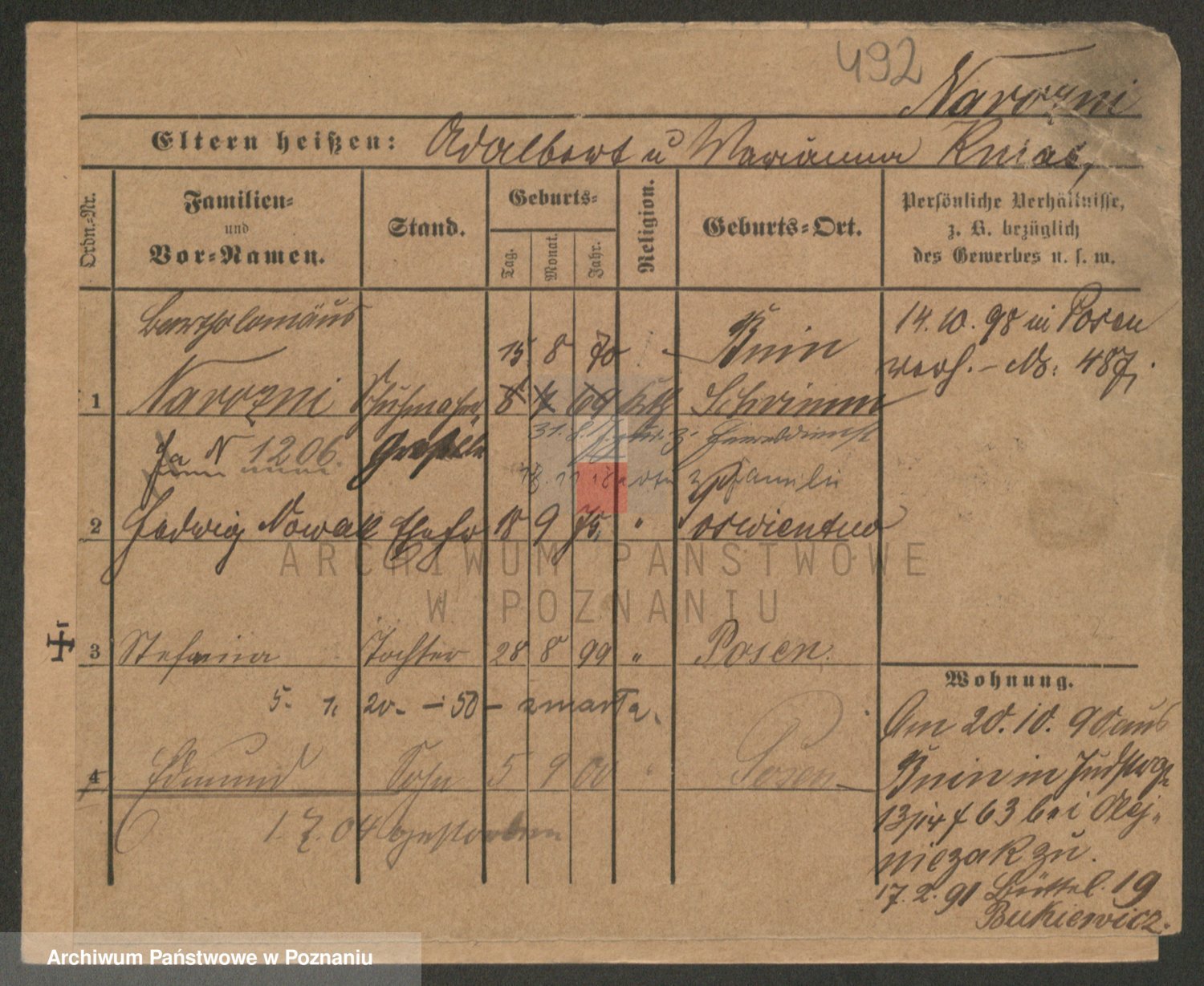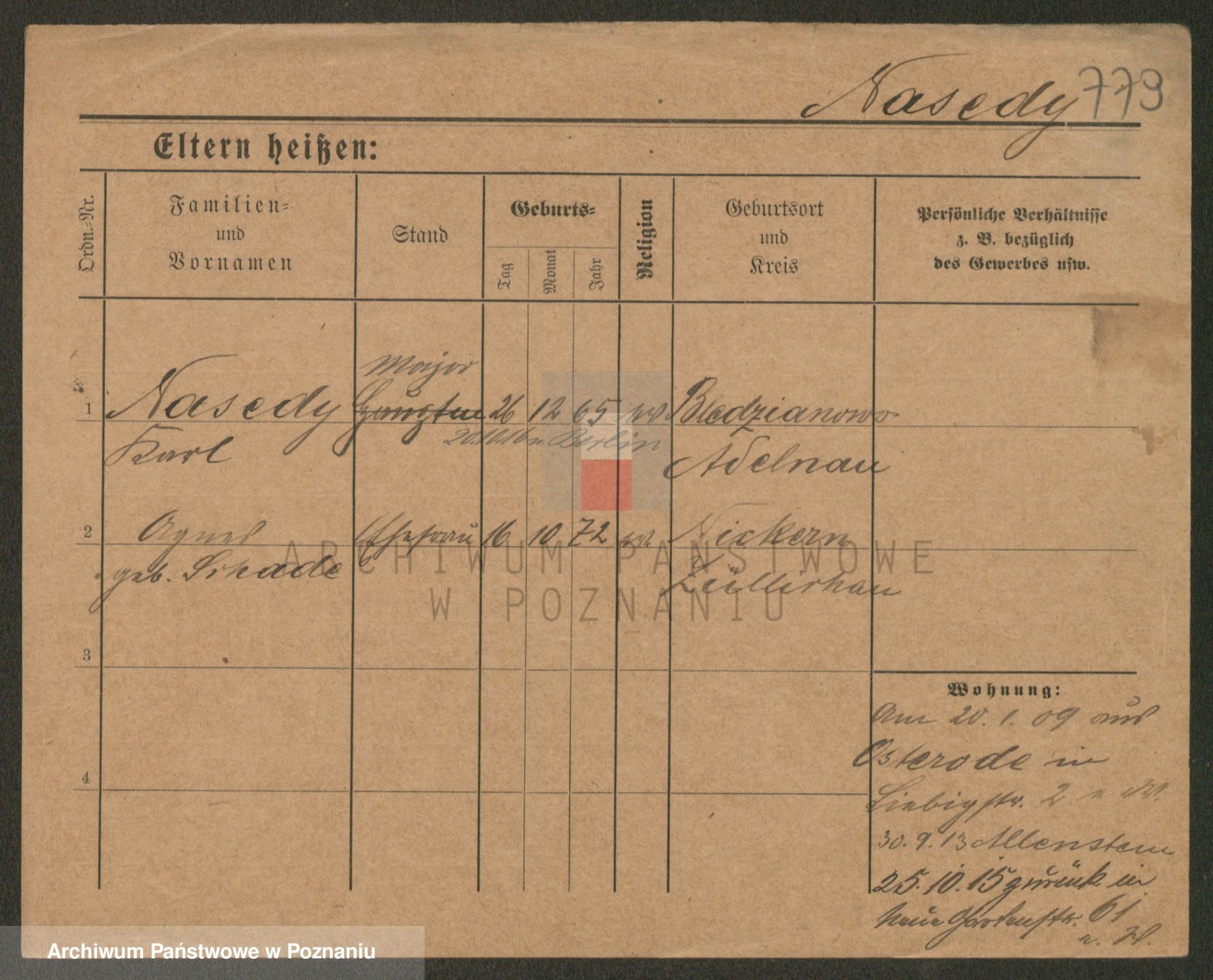 Podgląd karty osobowej dostępny jest po kliknięciu na nazwisko lub ikonkę karty. Można dokonywać powiększenia (ikony na górze) lub przechodzić między kolejnymi skanami (strzałki po bokach).