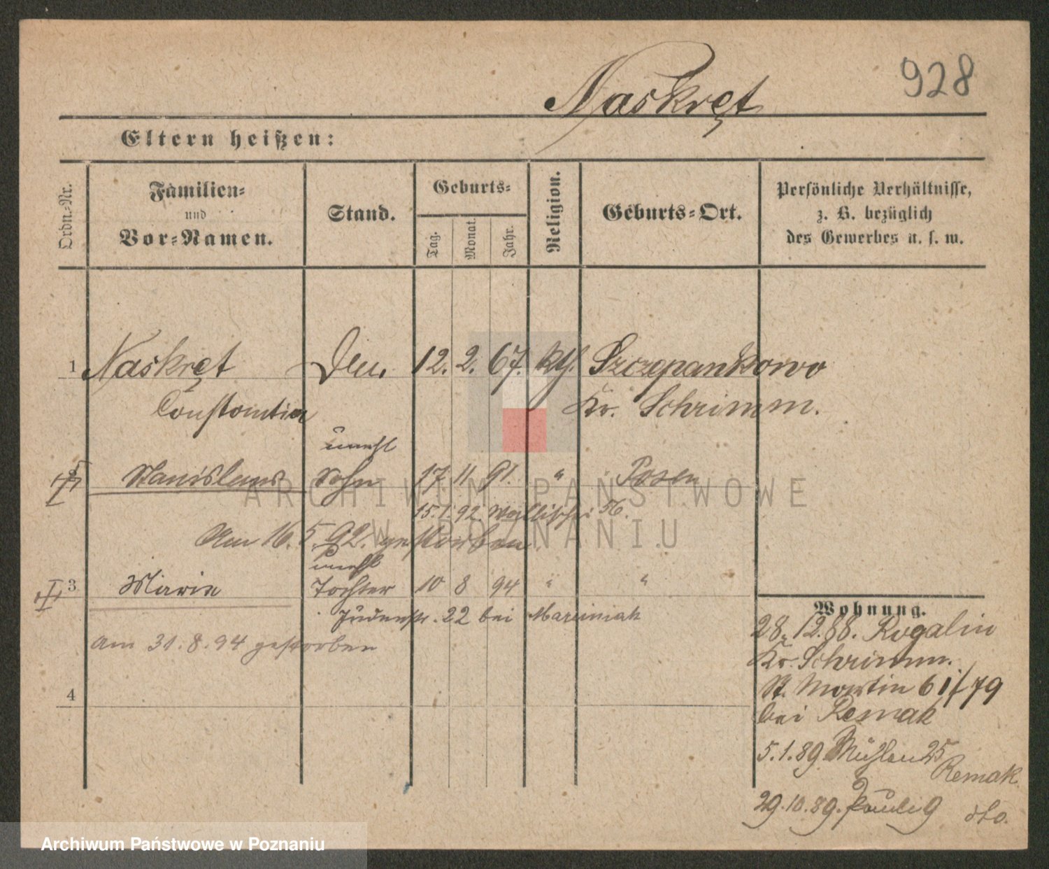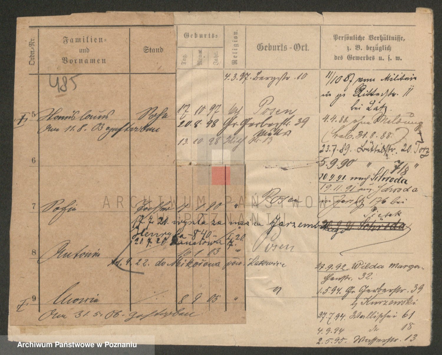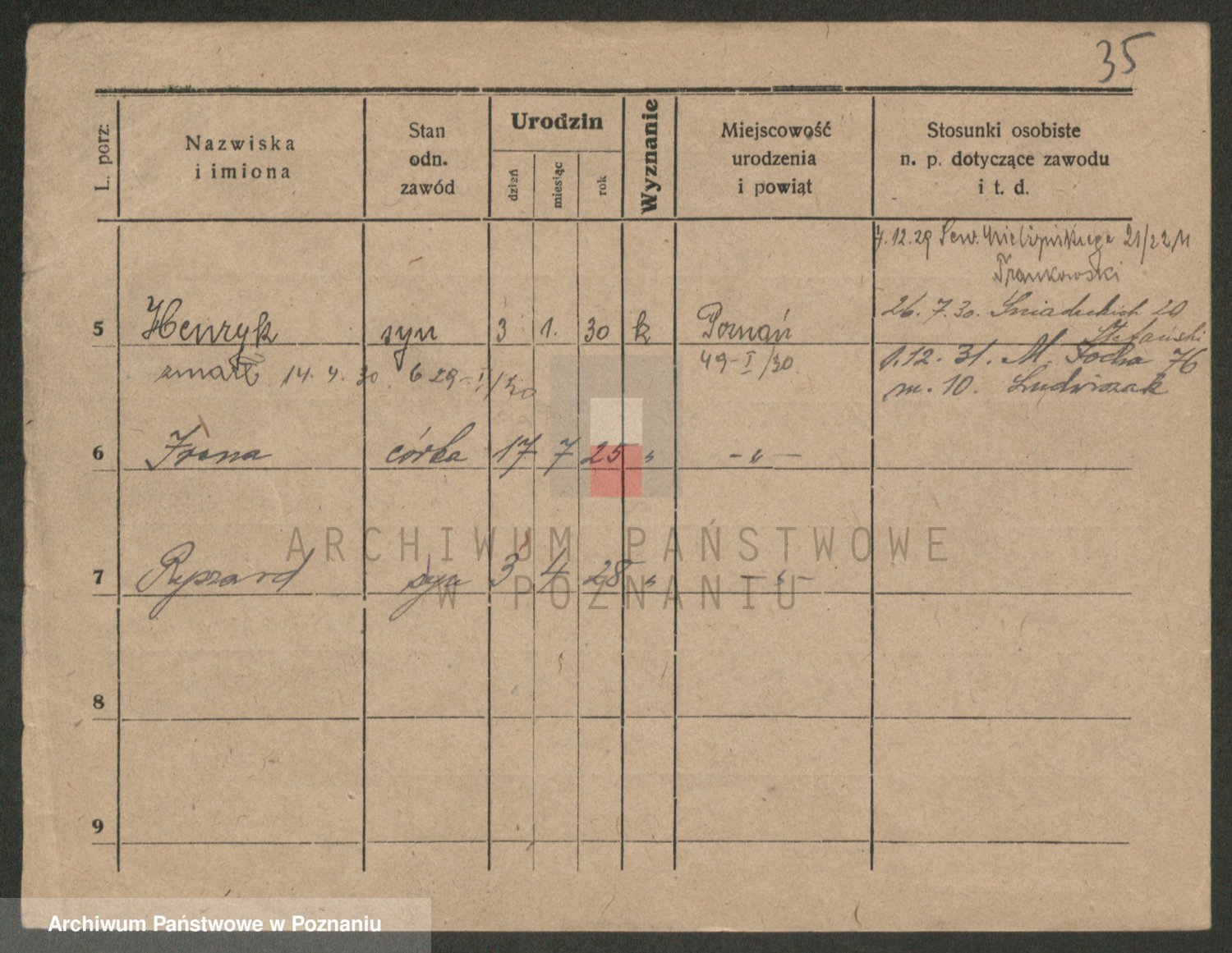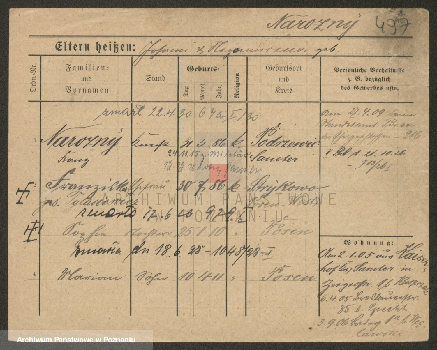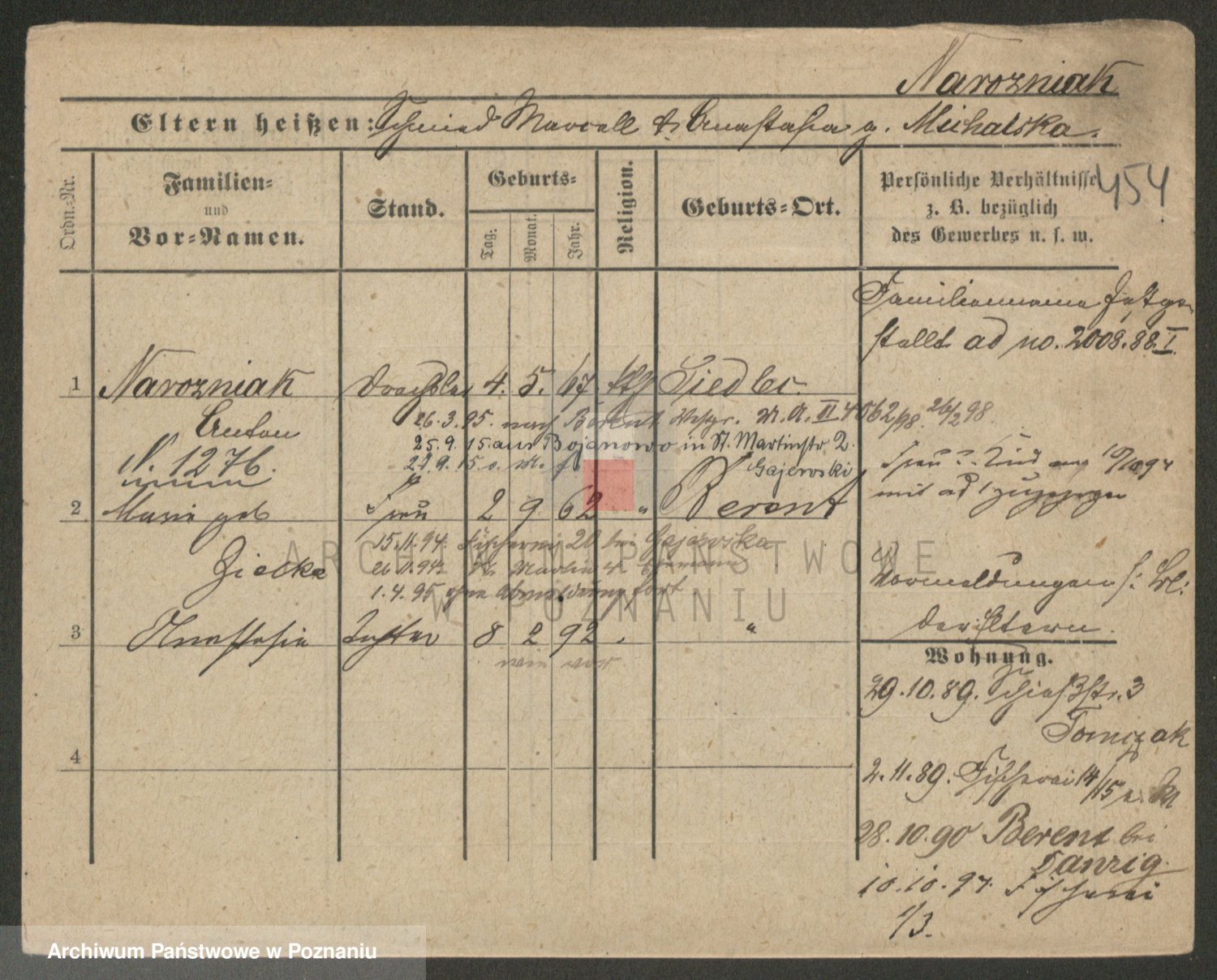 Podgląd karty osobowej dostępny jest po kliknięciu na nazwisko lub ikonkę karty. Można dokonywać powiększenia (ikony na górze) lub przechodzić między kolejnymi skanami (strzałki po bokach).