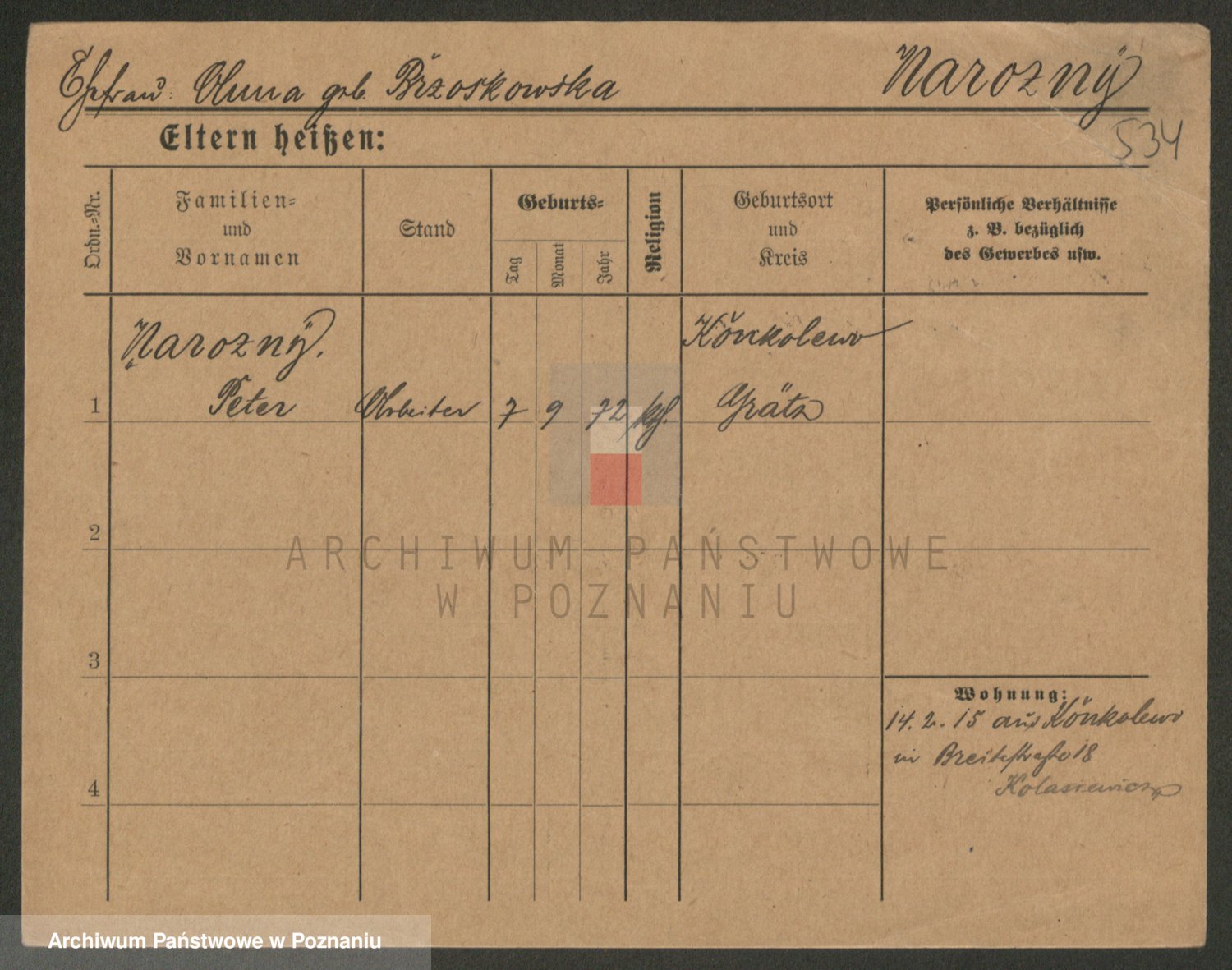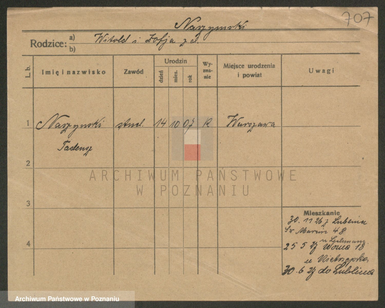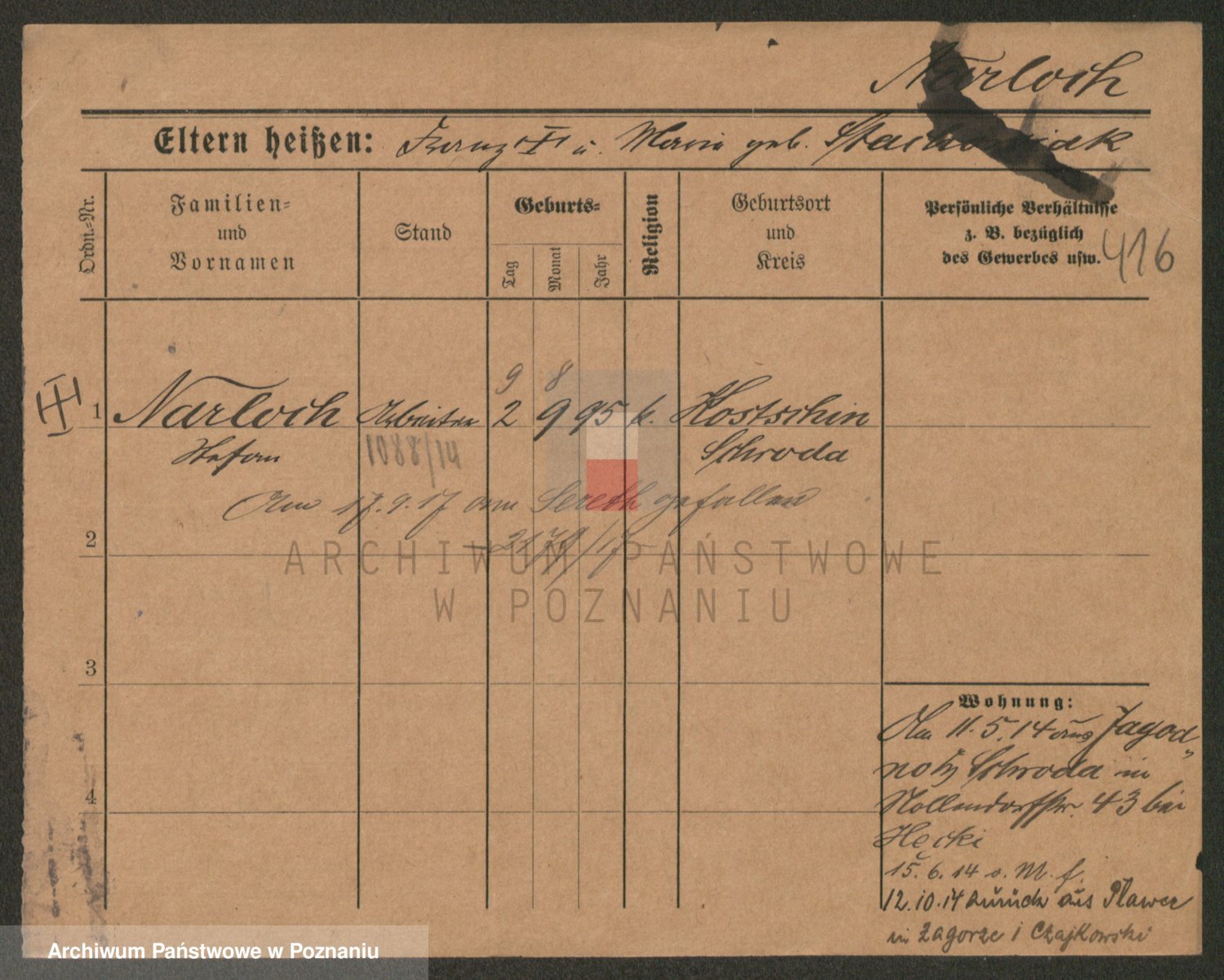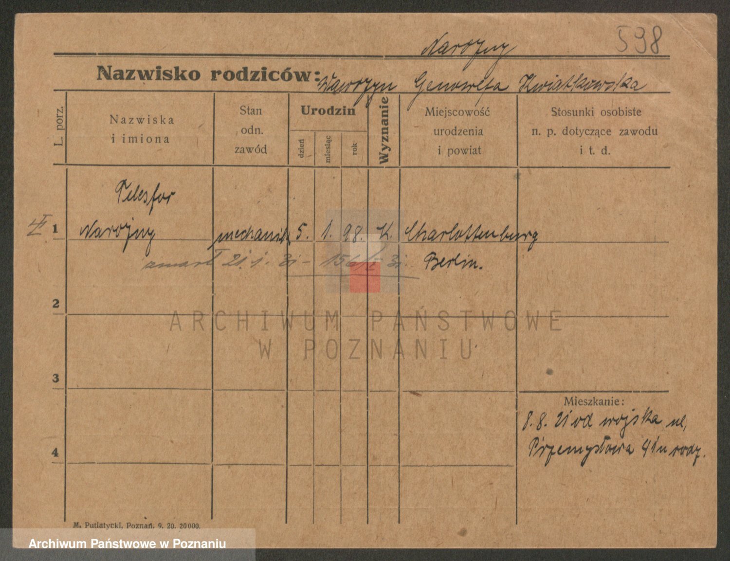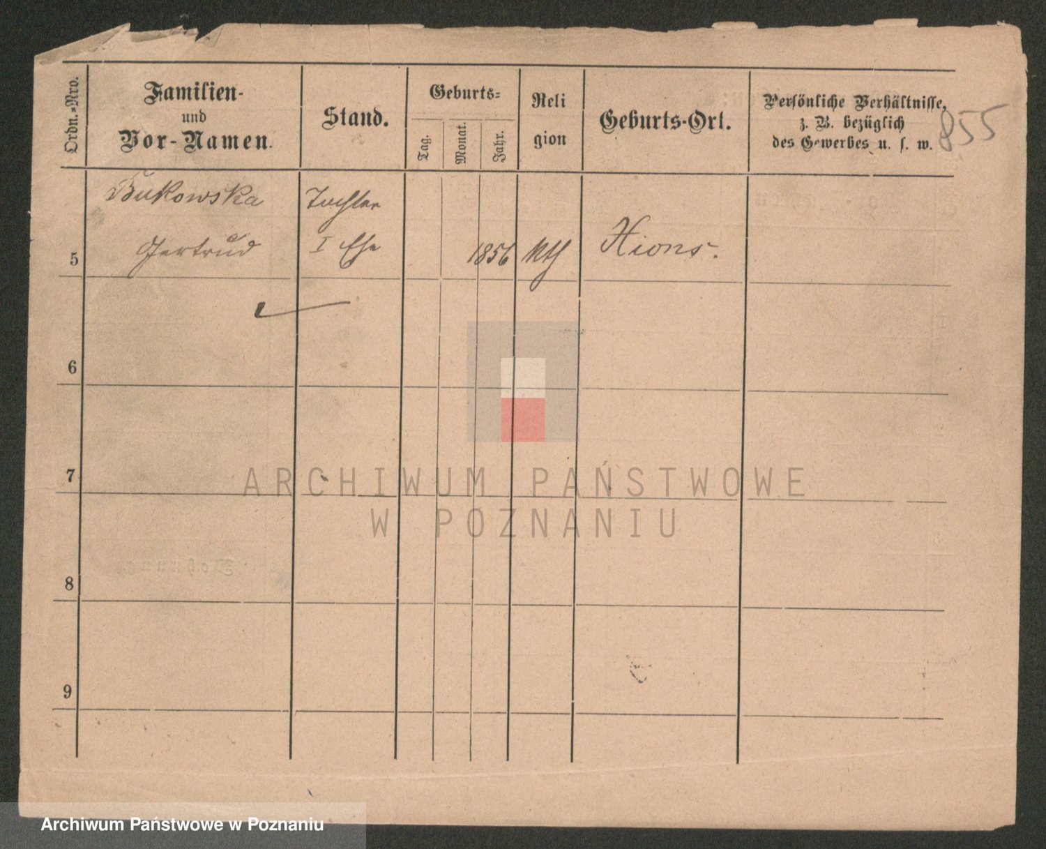 Podgląd karty osobowej dostępny jest po kliknięciu na nazwisko lub ikonkę karty. Można dokonywać powiększenia (ikony na górze) lub przechodzić między kolejnymi skanami (strzałki po bokach).
