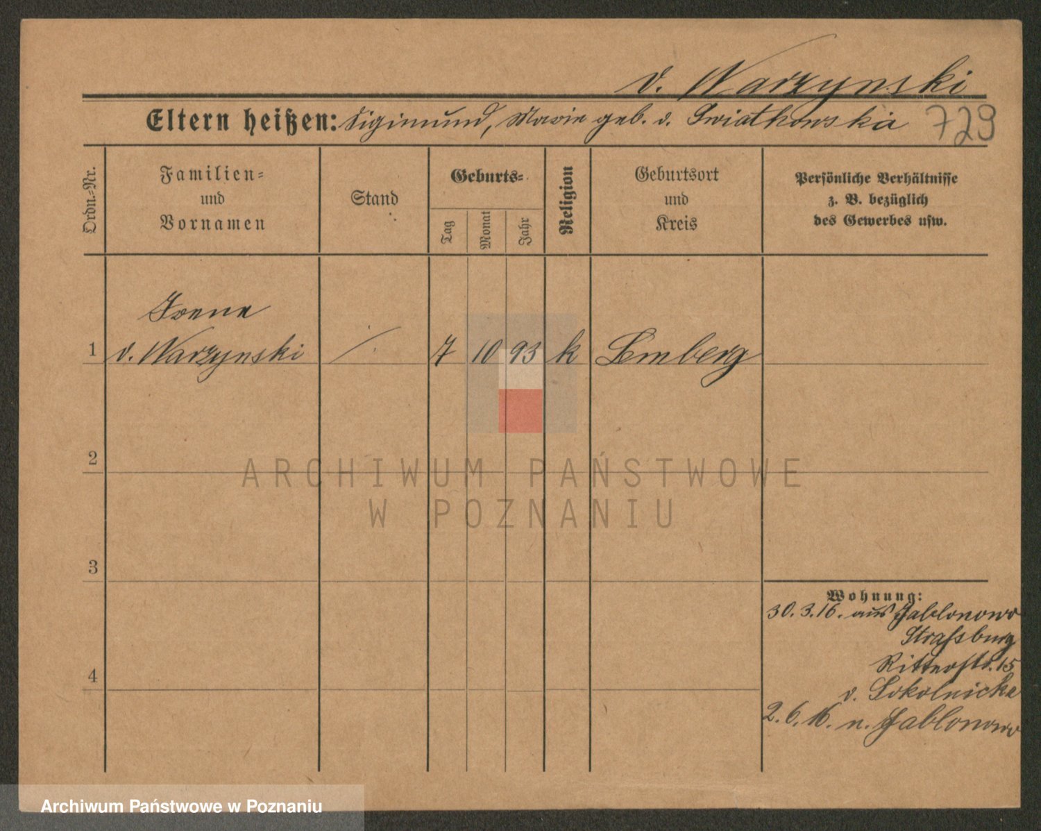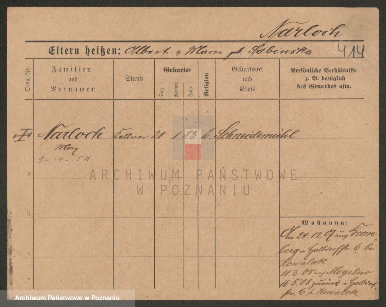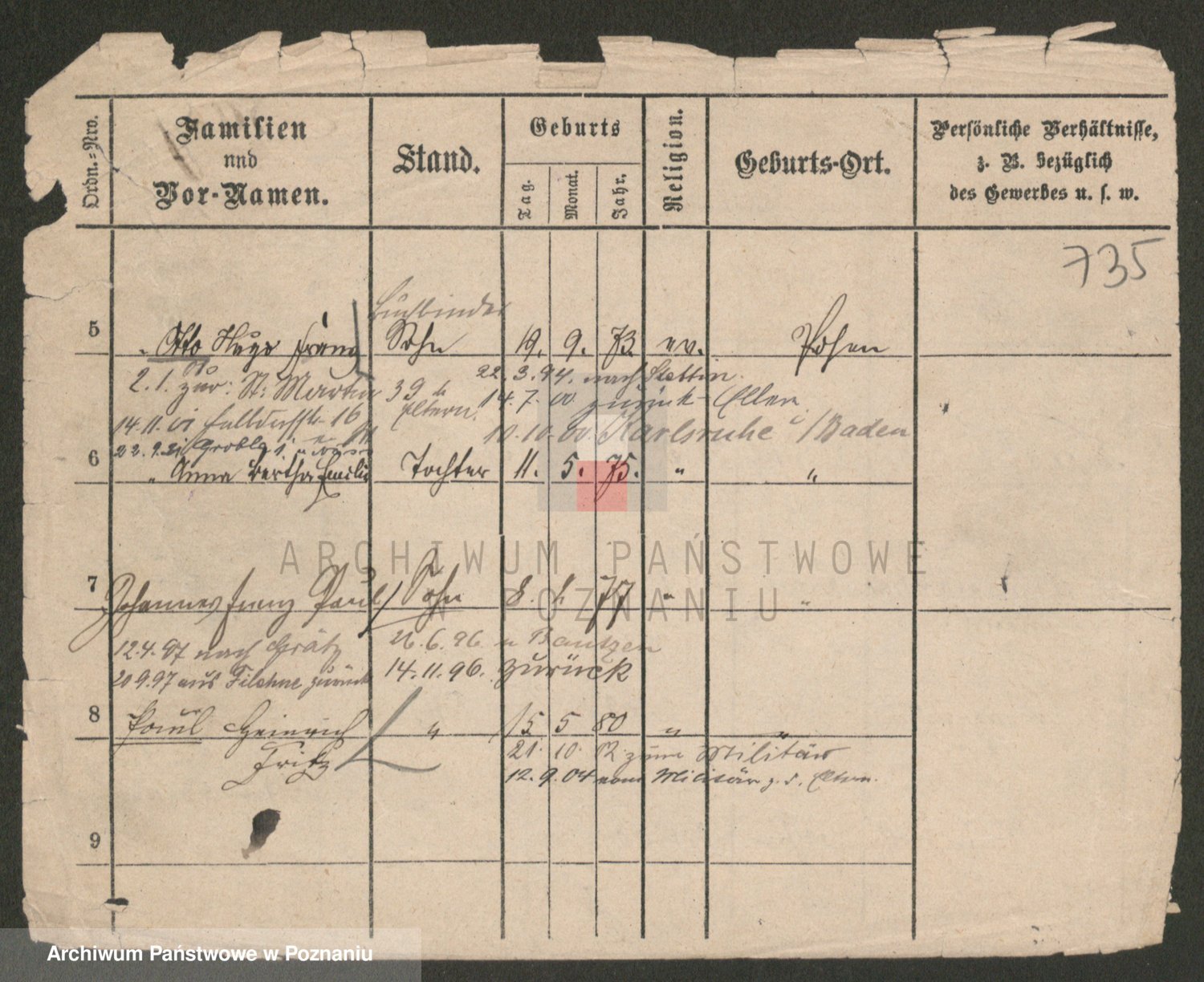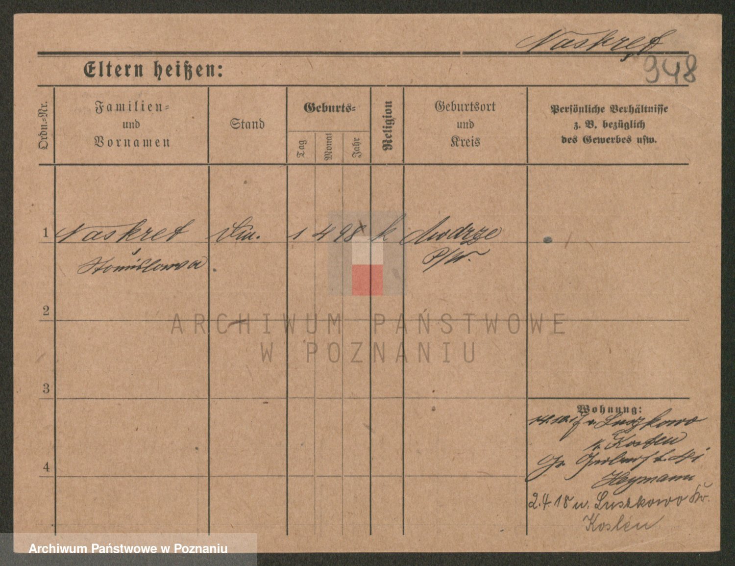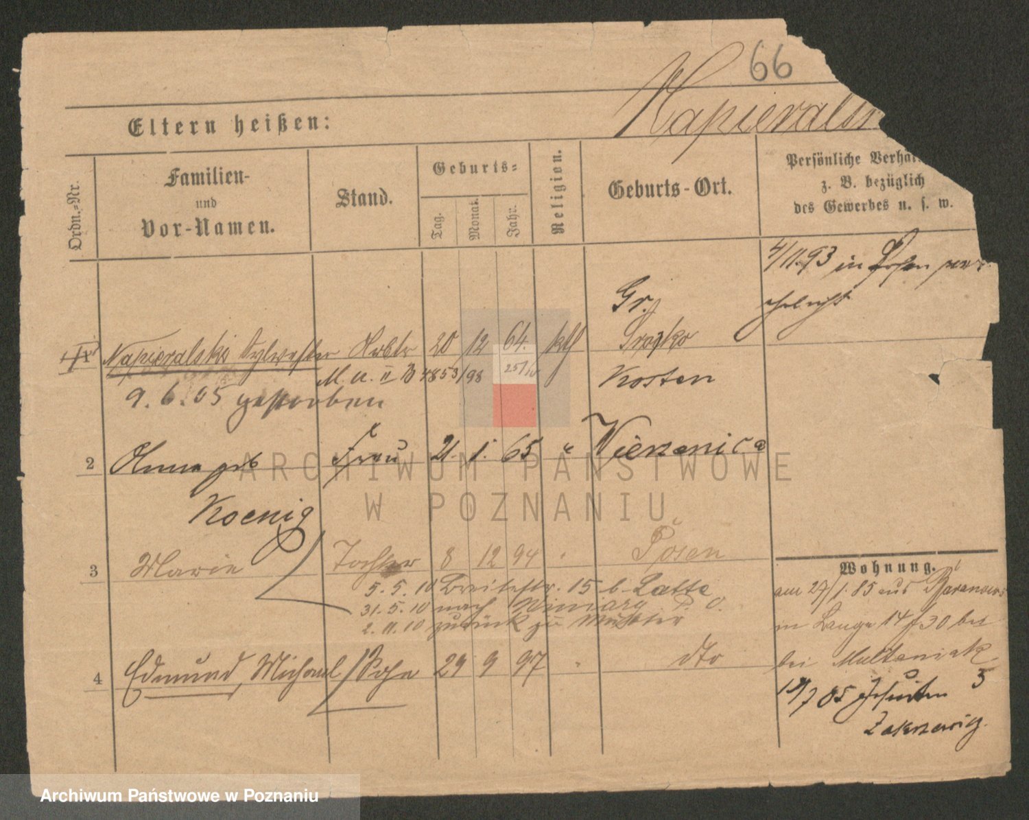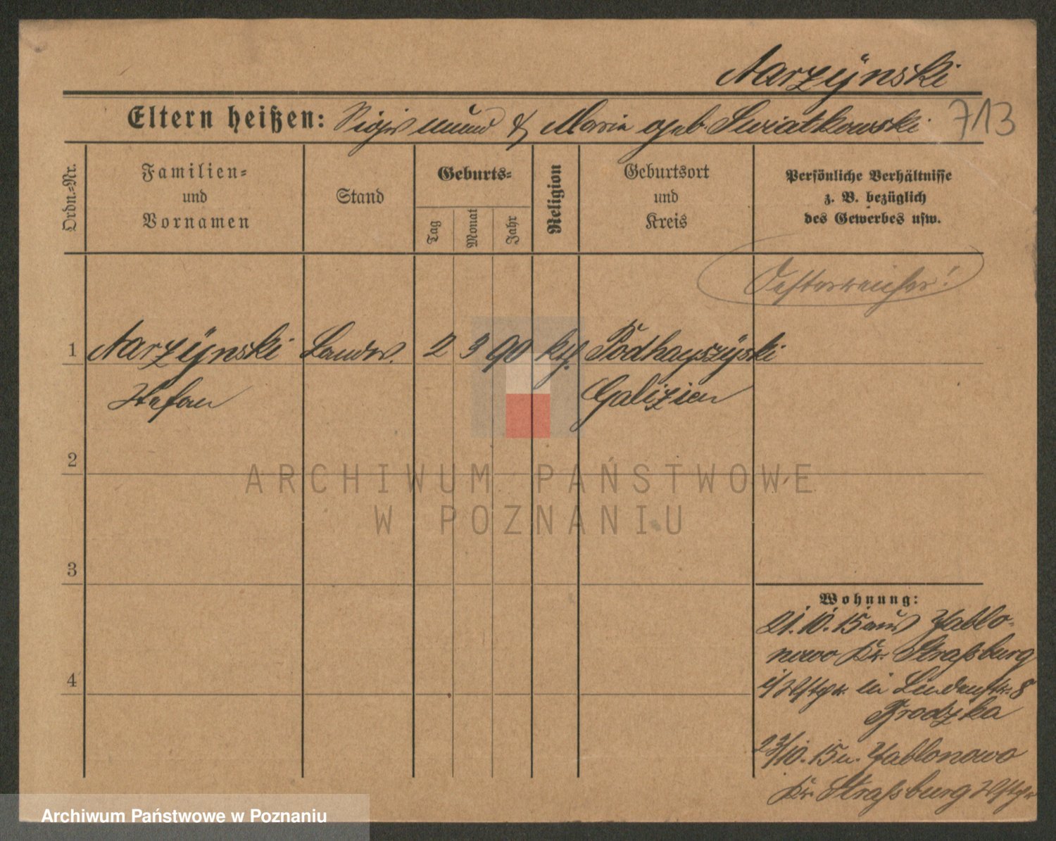 Podgląd karty osobowej dostępny jest po kliknięciu na nazwisko lub ikonkę karty. Można dokonywać powiększenia (ikony na górze) lub przechodzić między kolejnymi skanami (strzałki po bokach).