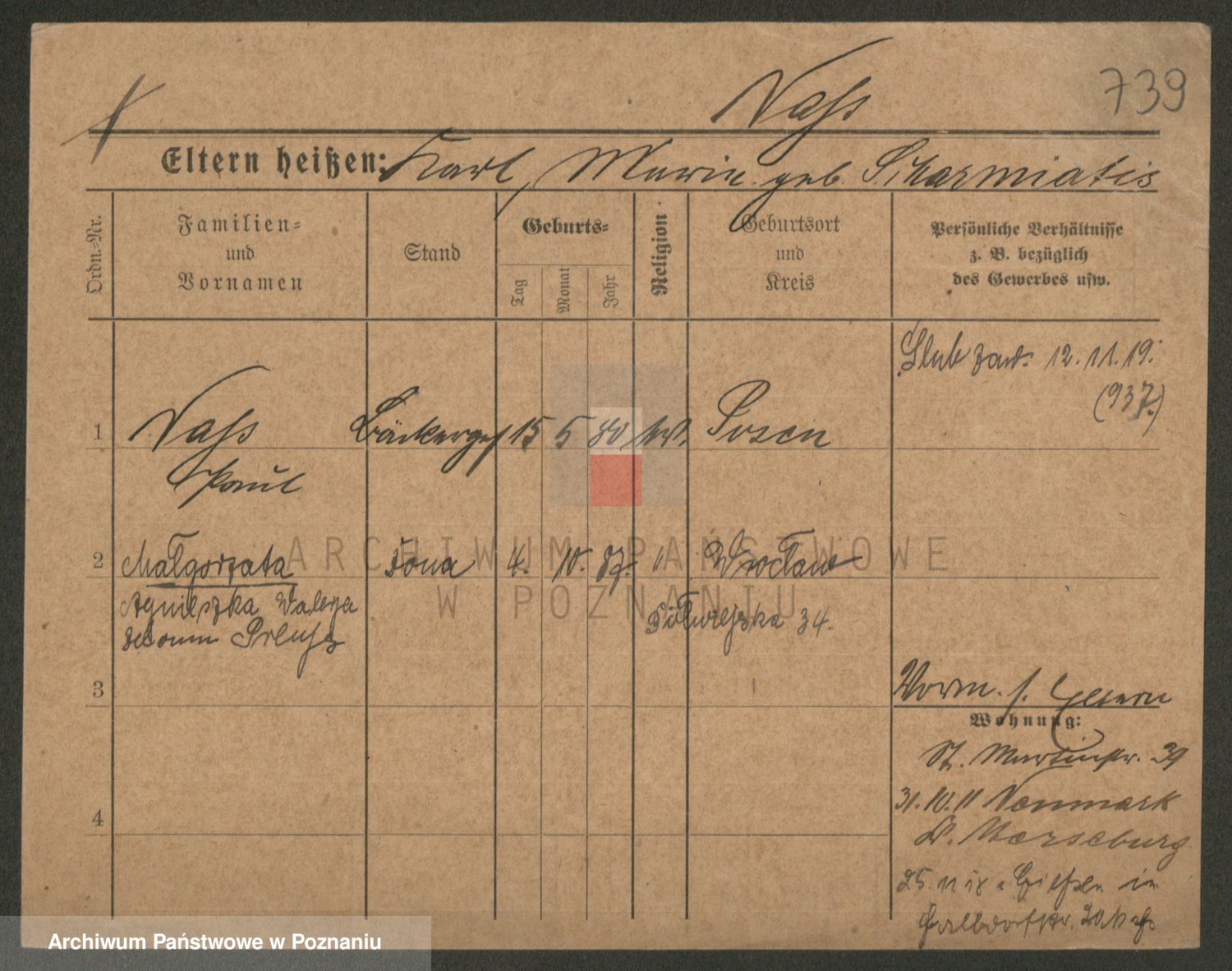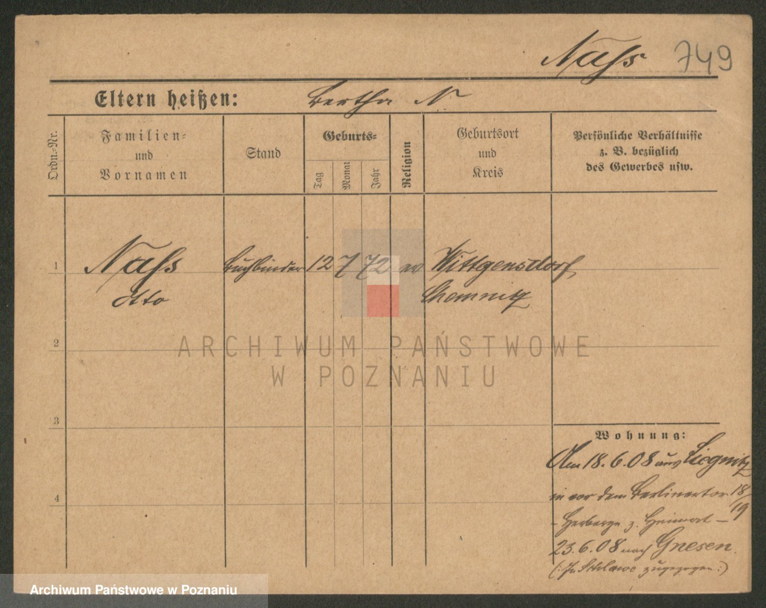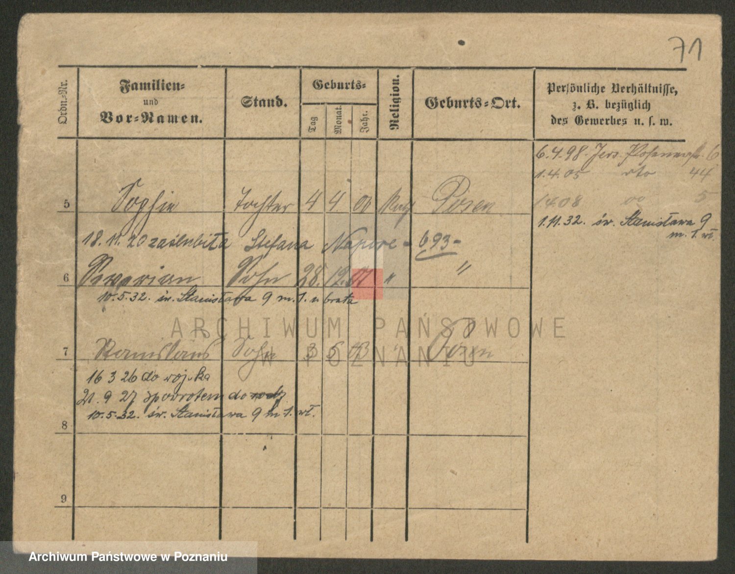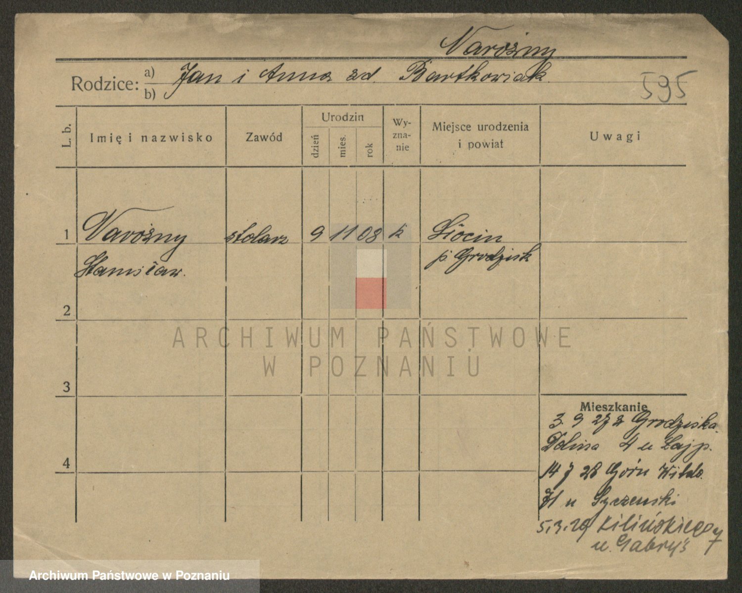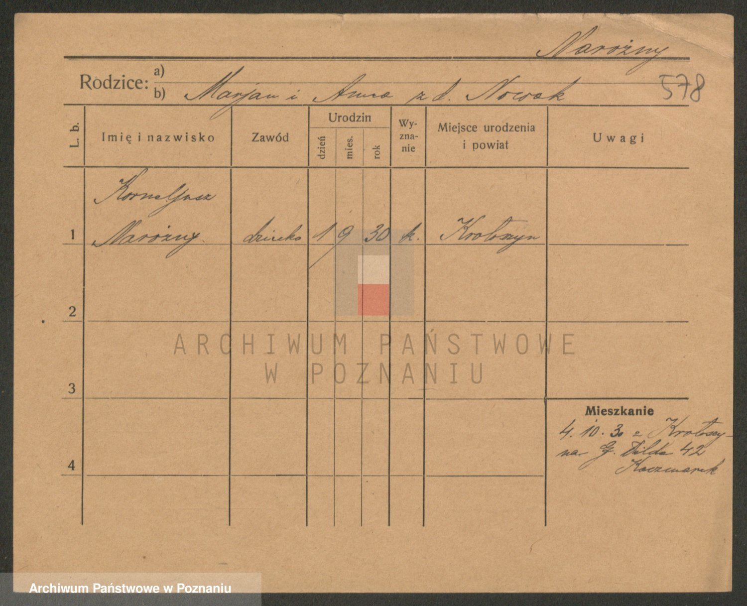 Podgląd karty osobowej dostępny jest po kliknięciu na nazwisko lub ikonkę karty. Można dokonywać powiększenia (ikony na górze) lub przechodzić między kolejnymi skanami (strzałki po bokach).