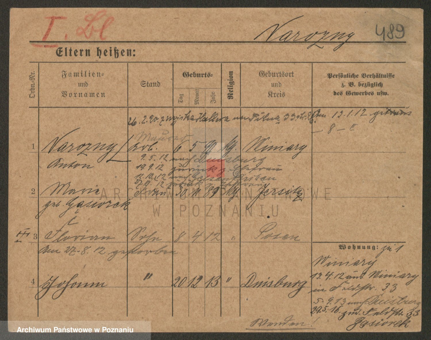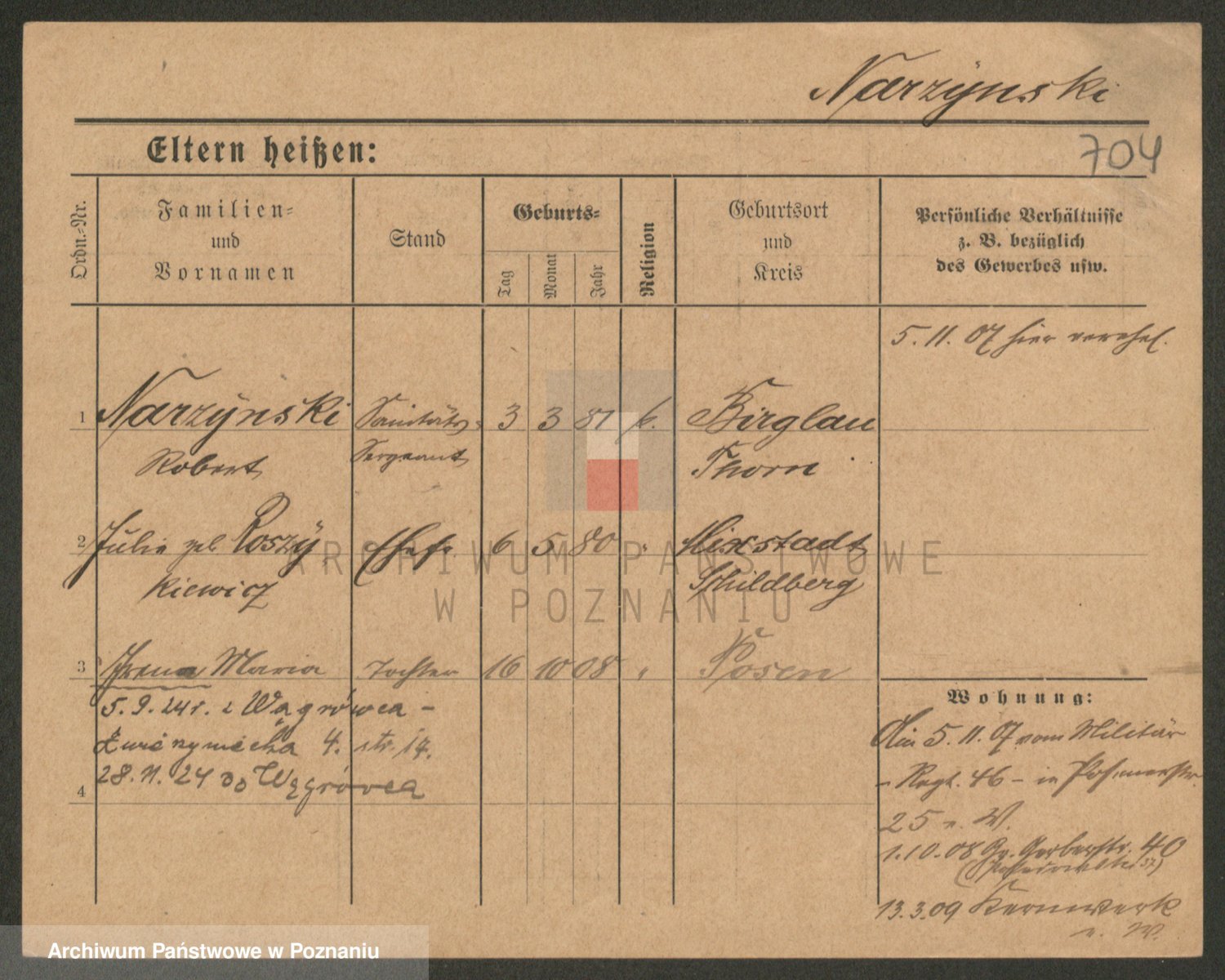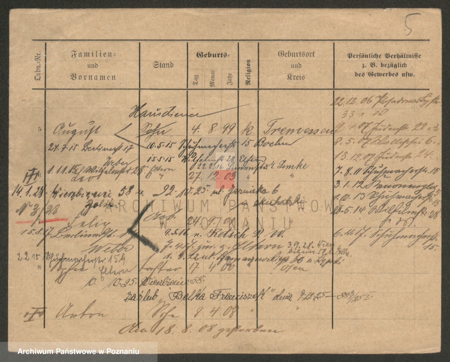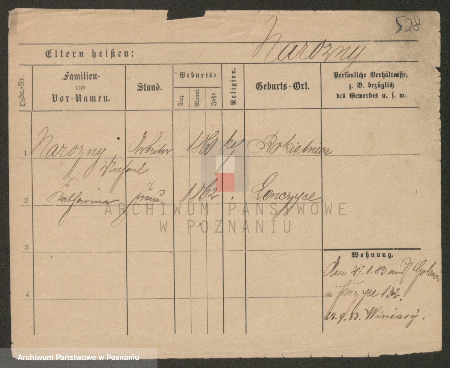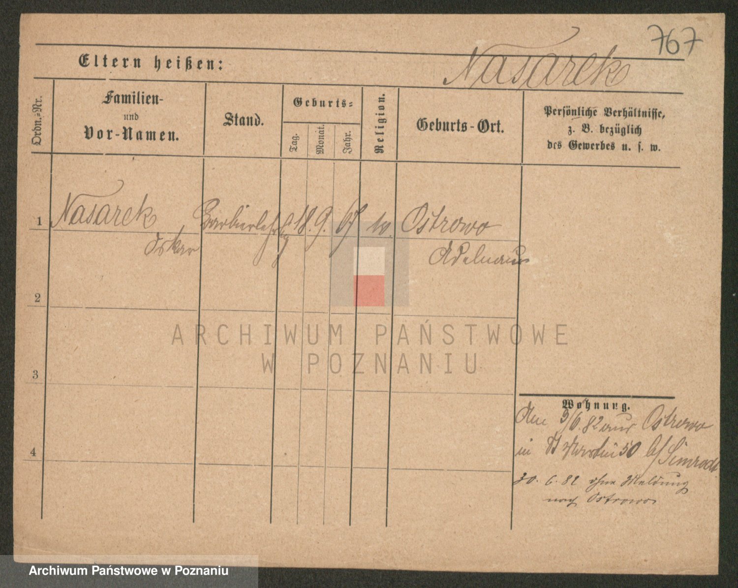 Podgląd karty osobowej dostępny jest po kliknięciu na nazwisko lub ikonkę karty. Można dokonywać powiększenia (ikony na górze) lub przechodzić między kolejnymi skanami (strzałki po bokach).