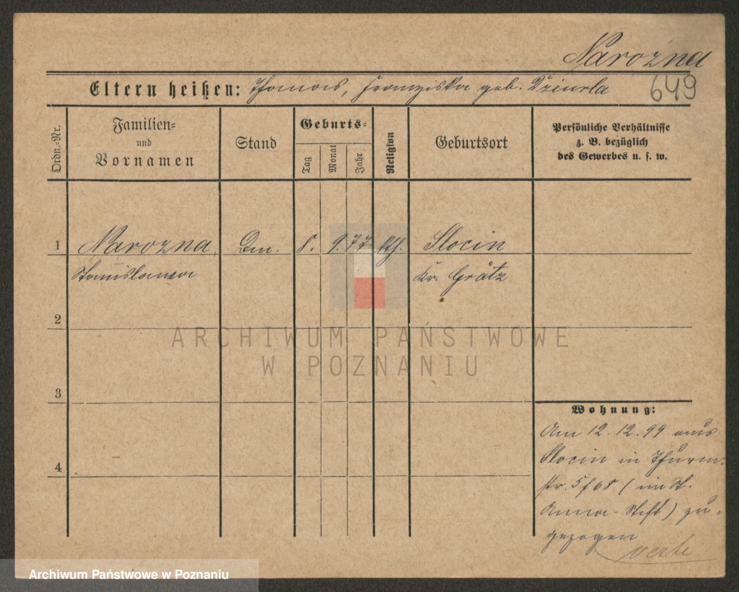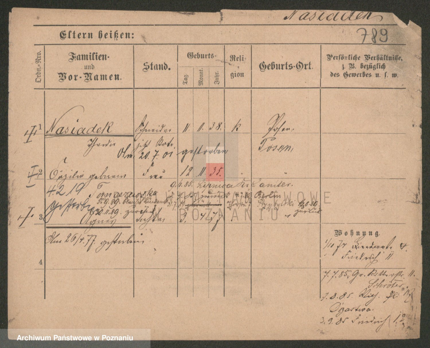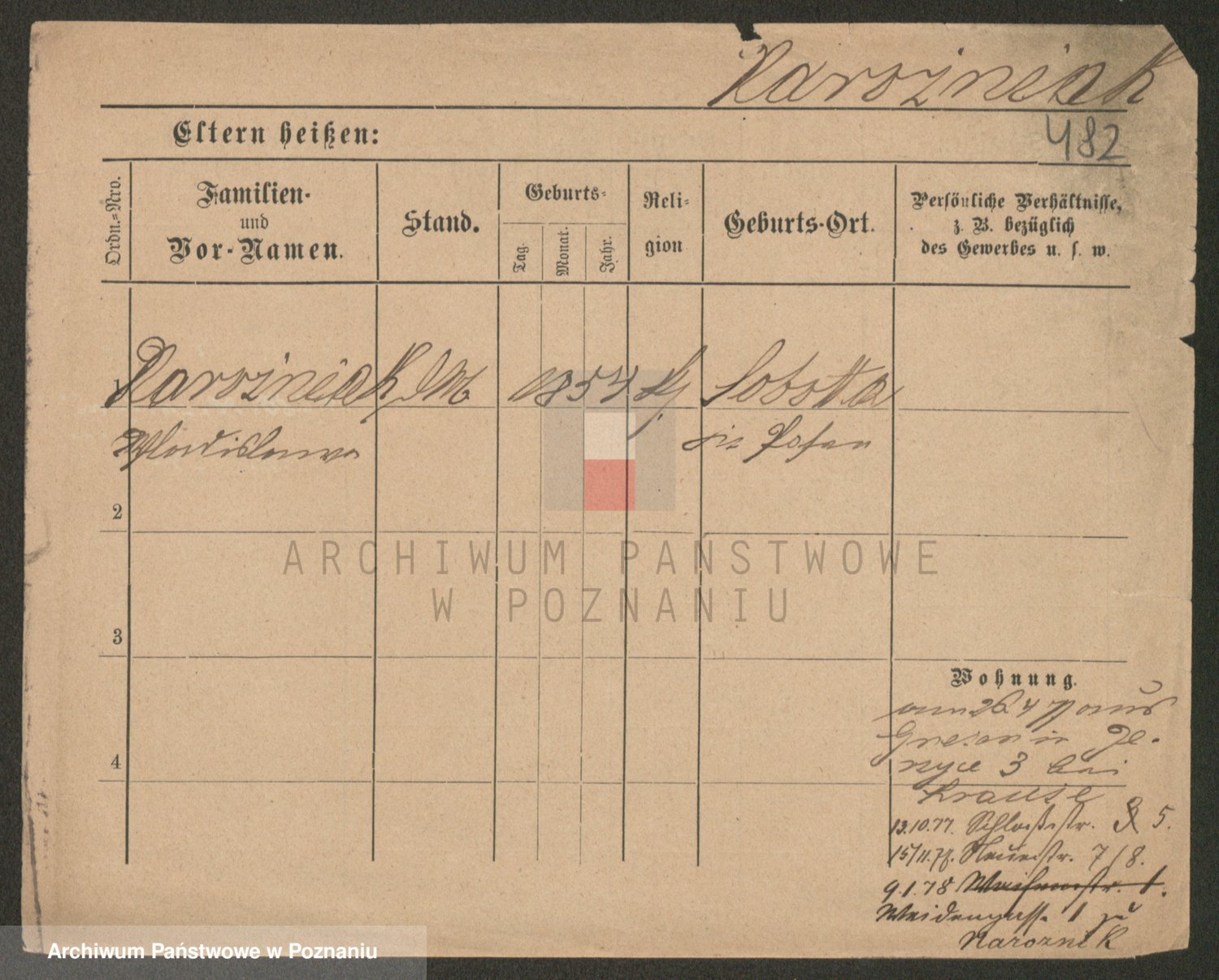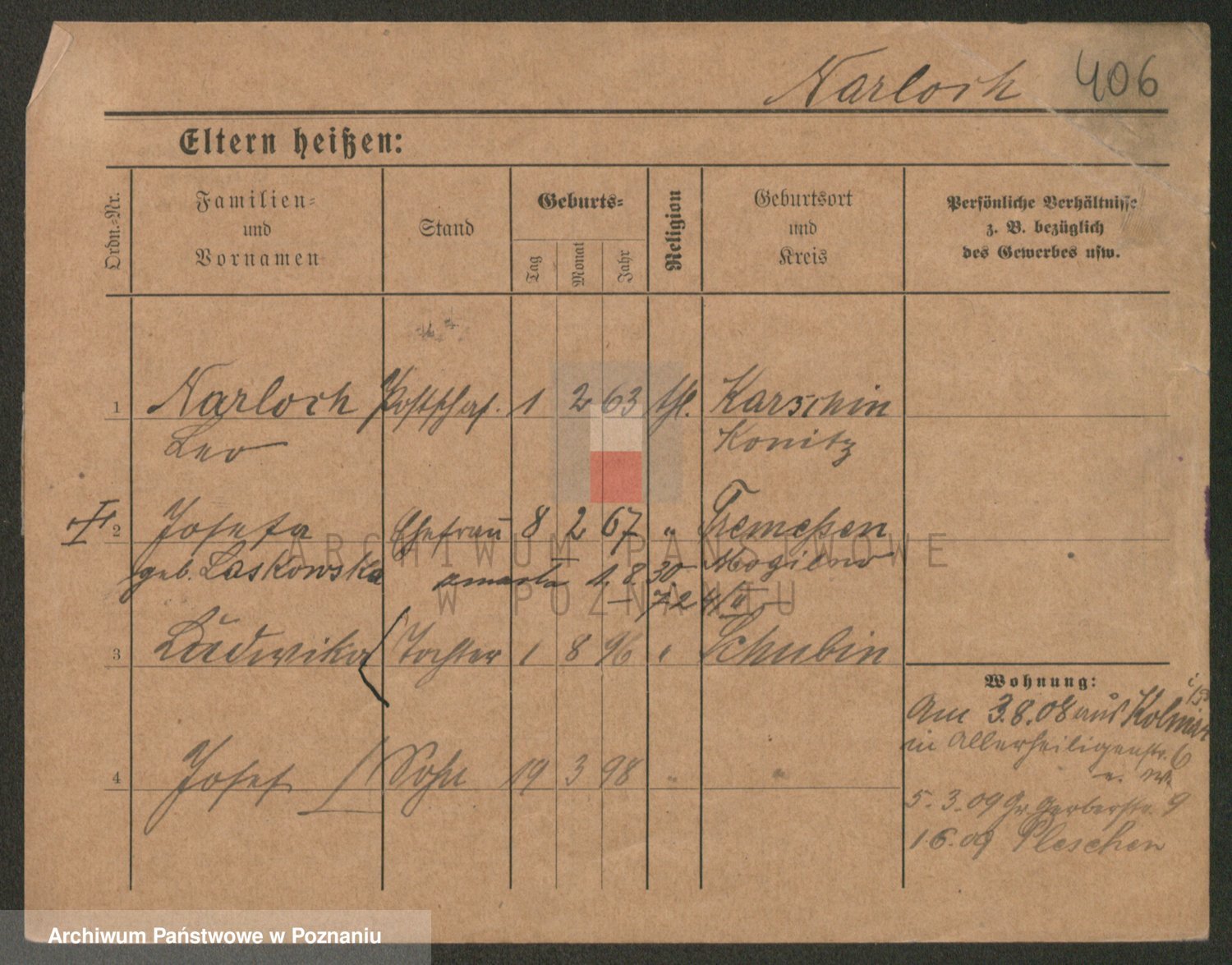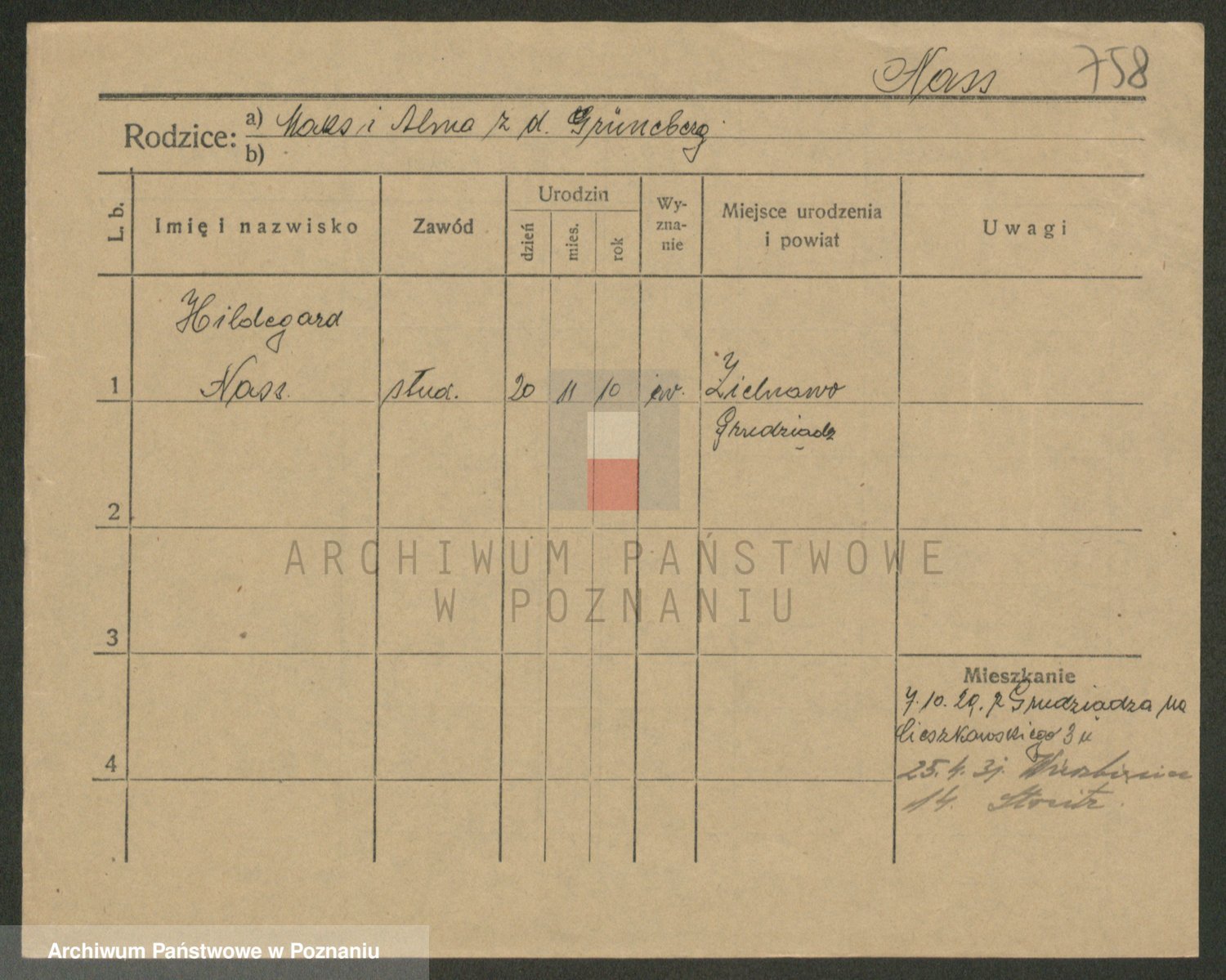 Podgląd karty osobowej dostępny jest po kliknięciu na nazwisko lub ikonkę karty. Można dokonywać powiększenia (ikony na górze) lub przechodzić między kolejnymi skanami (strzałki po bokach).