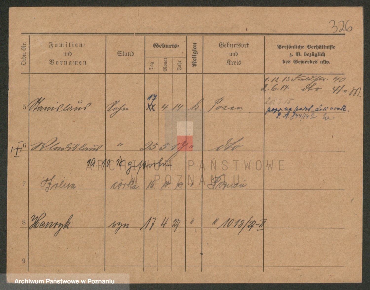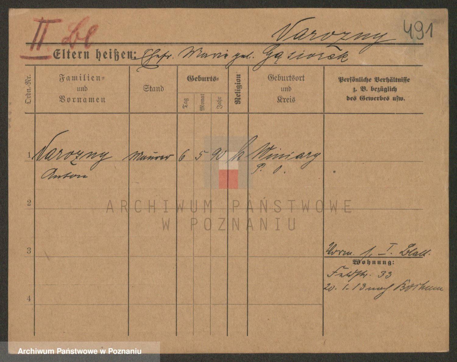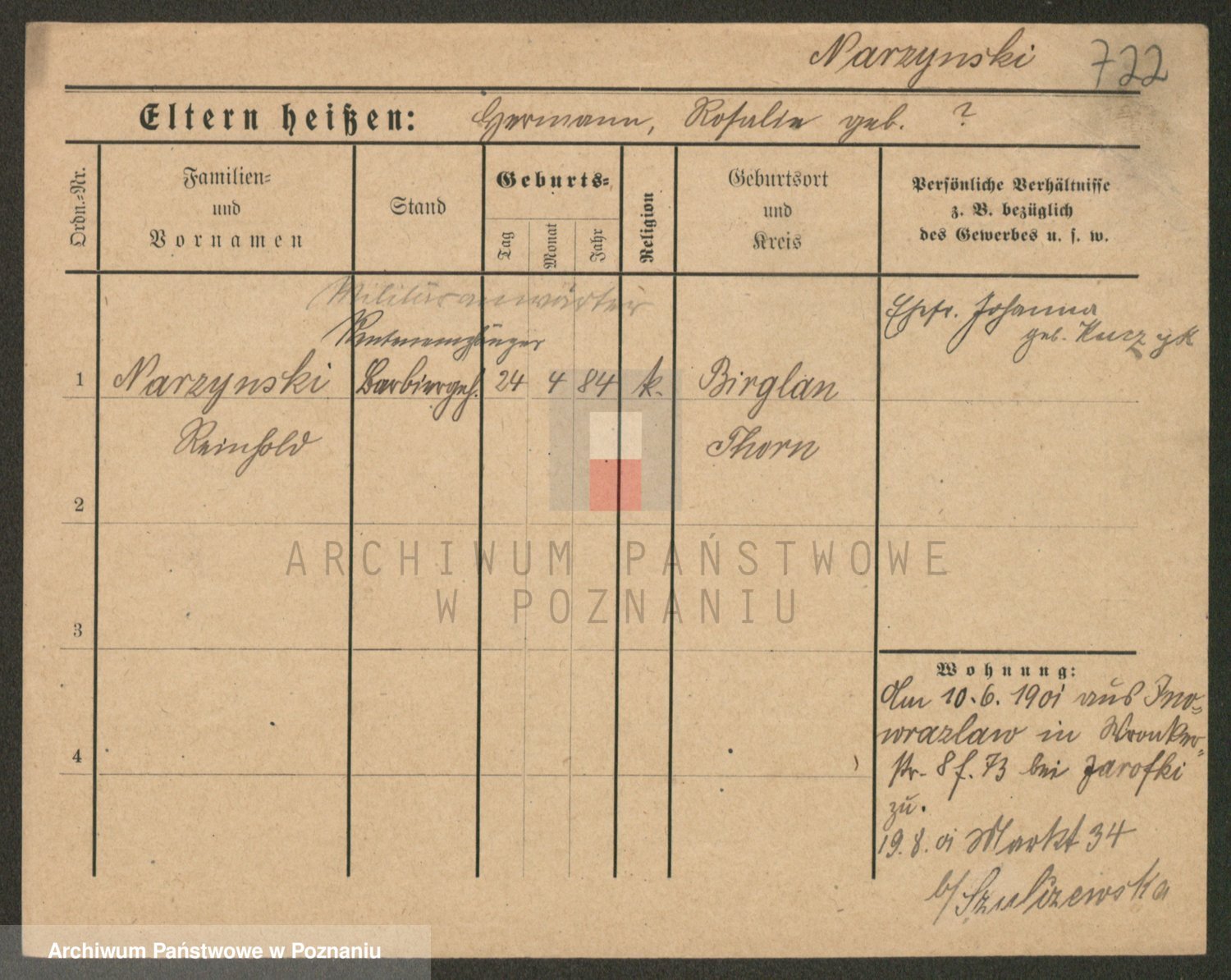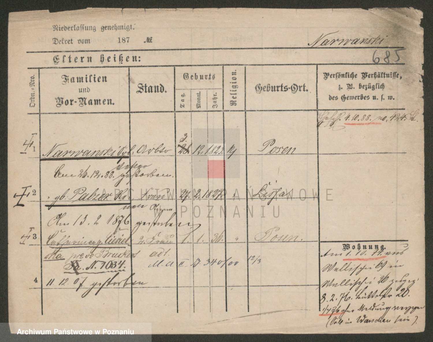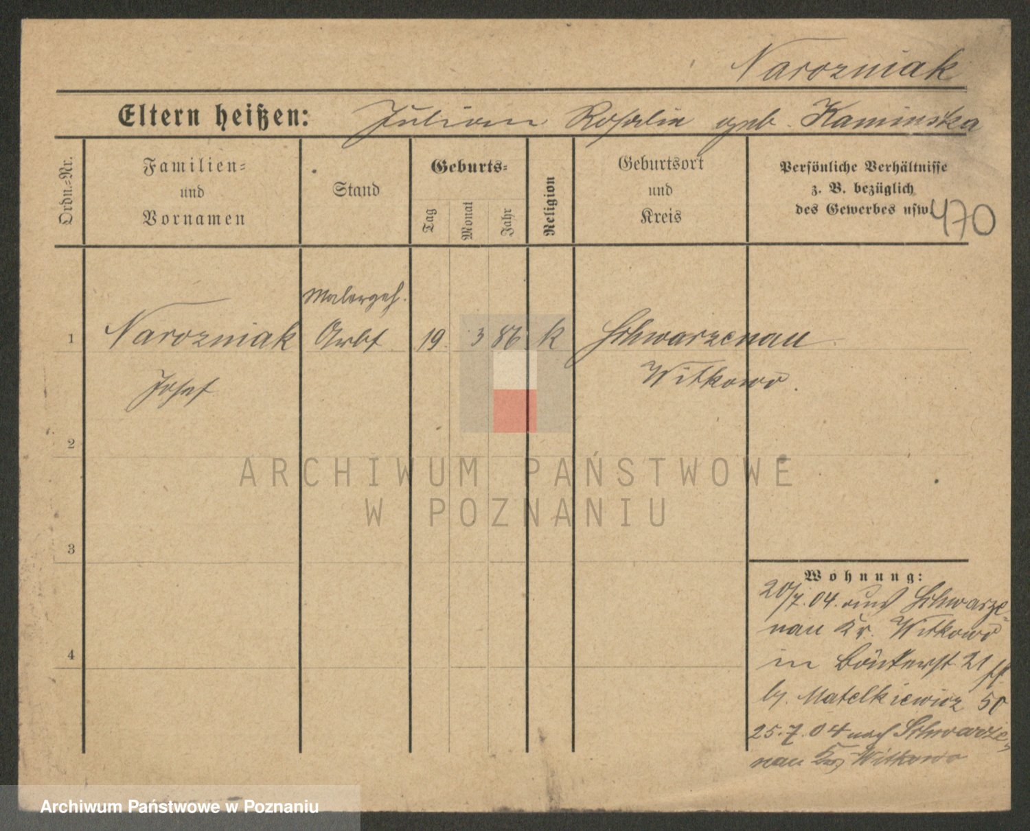 Podgląd karty osobowej dostępny jest po kliknięciu na nazwisko lub ikonkę karty. Można dokonywać powiększenia (ikony na górze) lub przechodzić między kolejnymi skanami (strzałki po bokach).