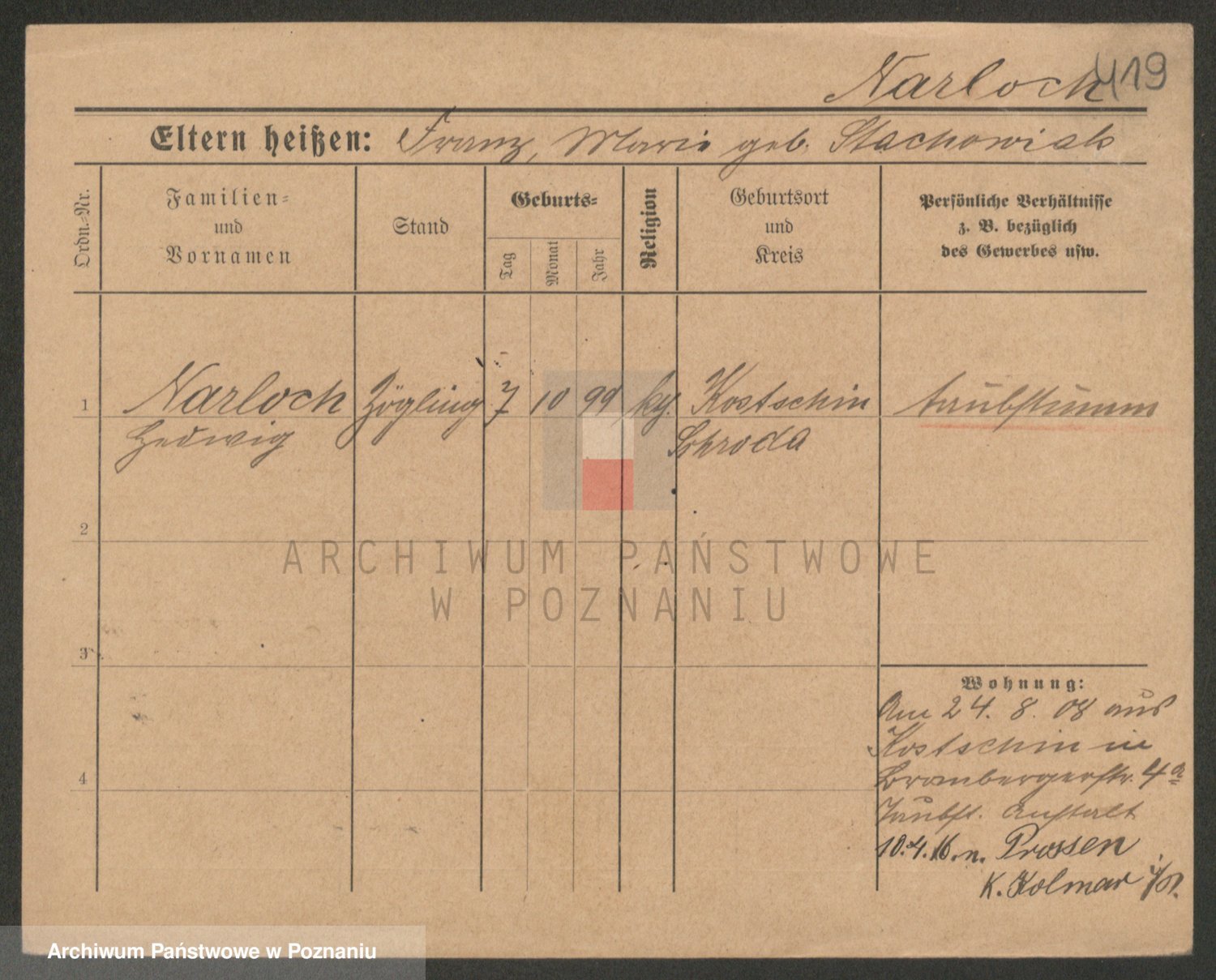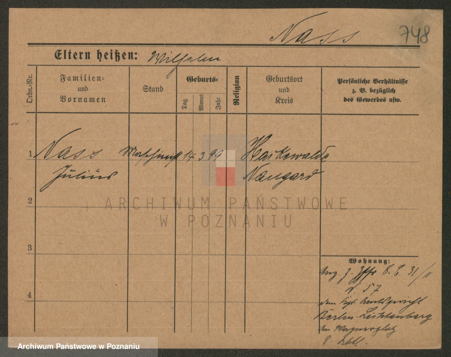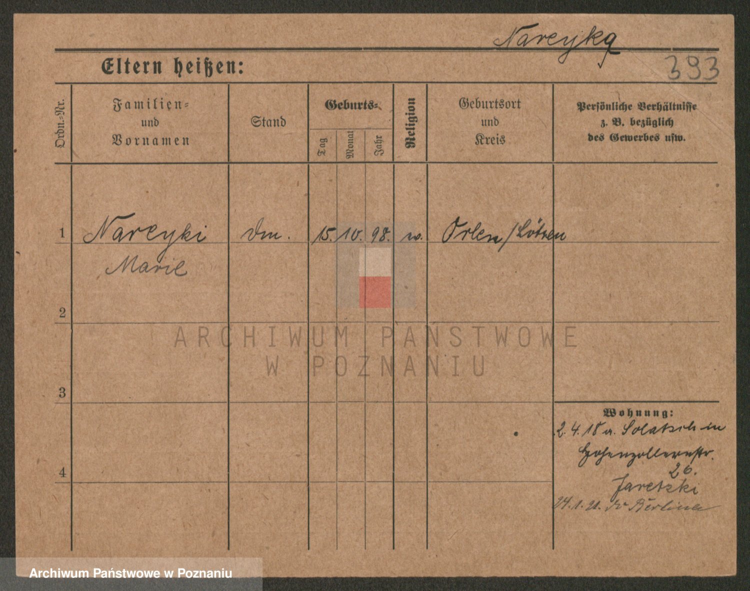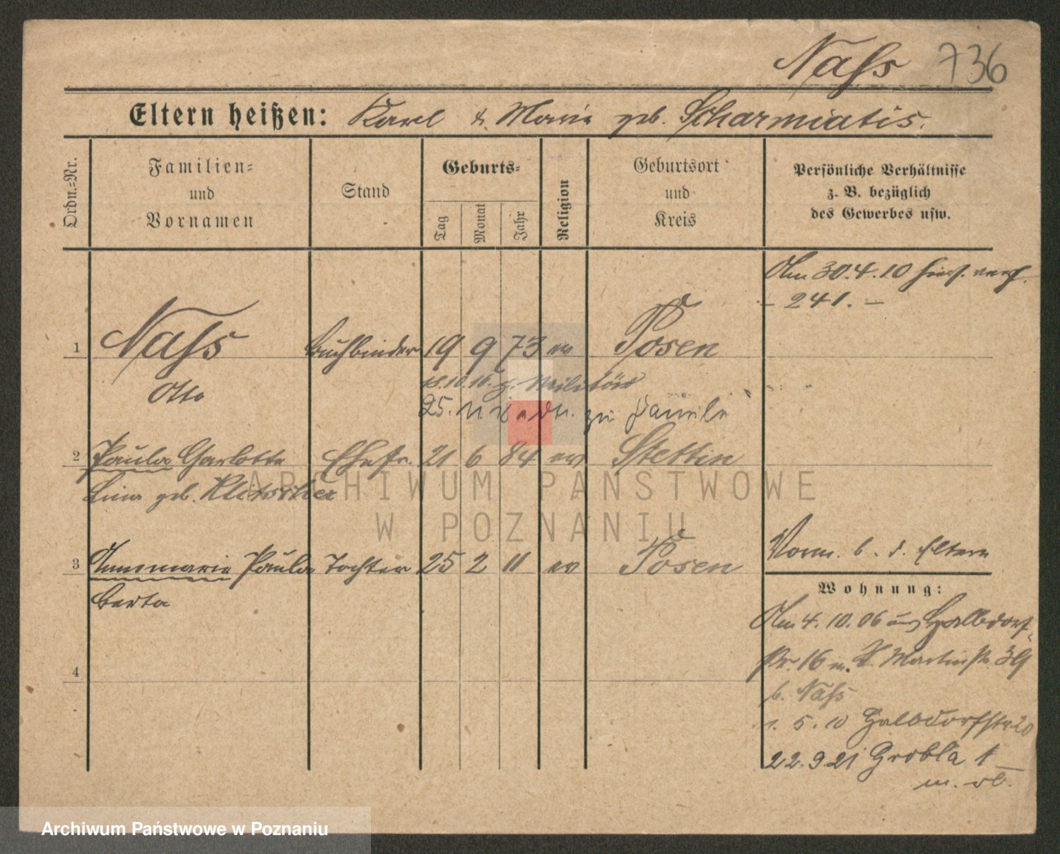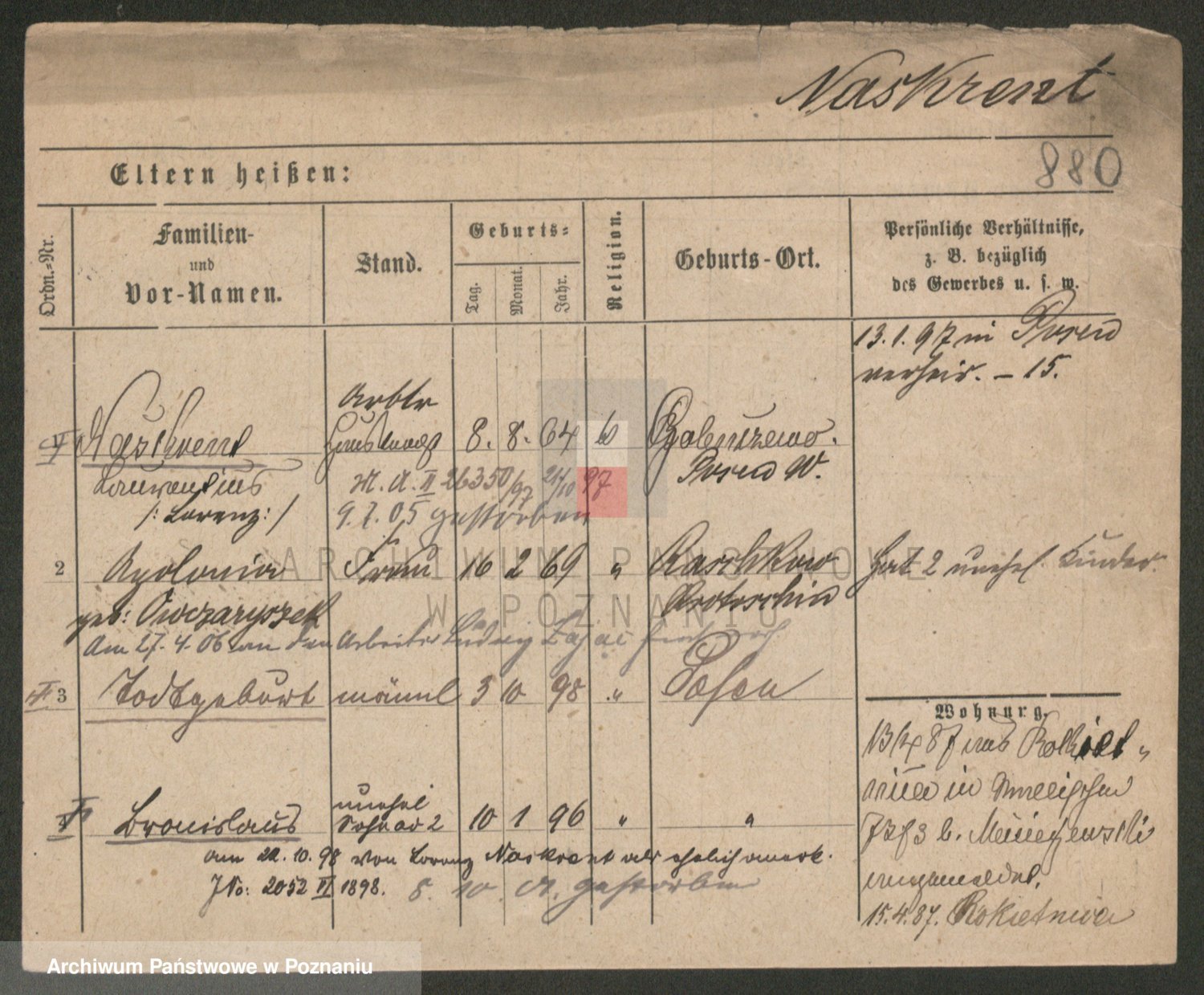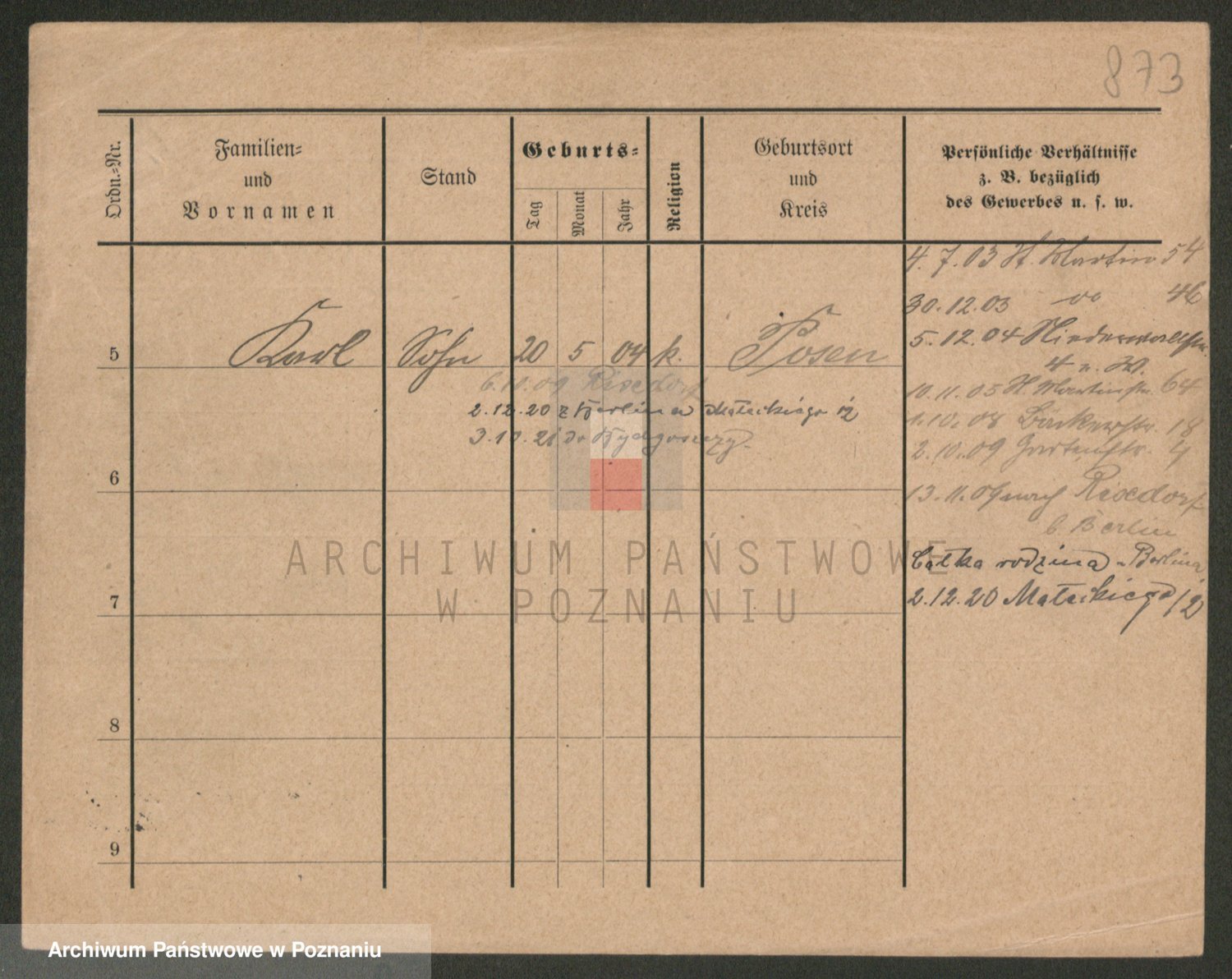 Podgląd karty osobowej dostępny jest po kliknięciu na nazwisko lub ikonkę karty. Można dokonywać powiększenia (ikony na górze) lub przechodzić między kolejnymi skanami (strzałki po bokach).