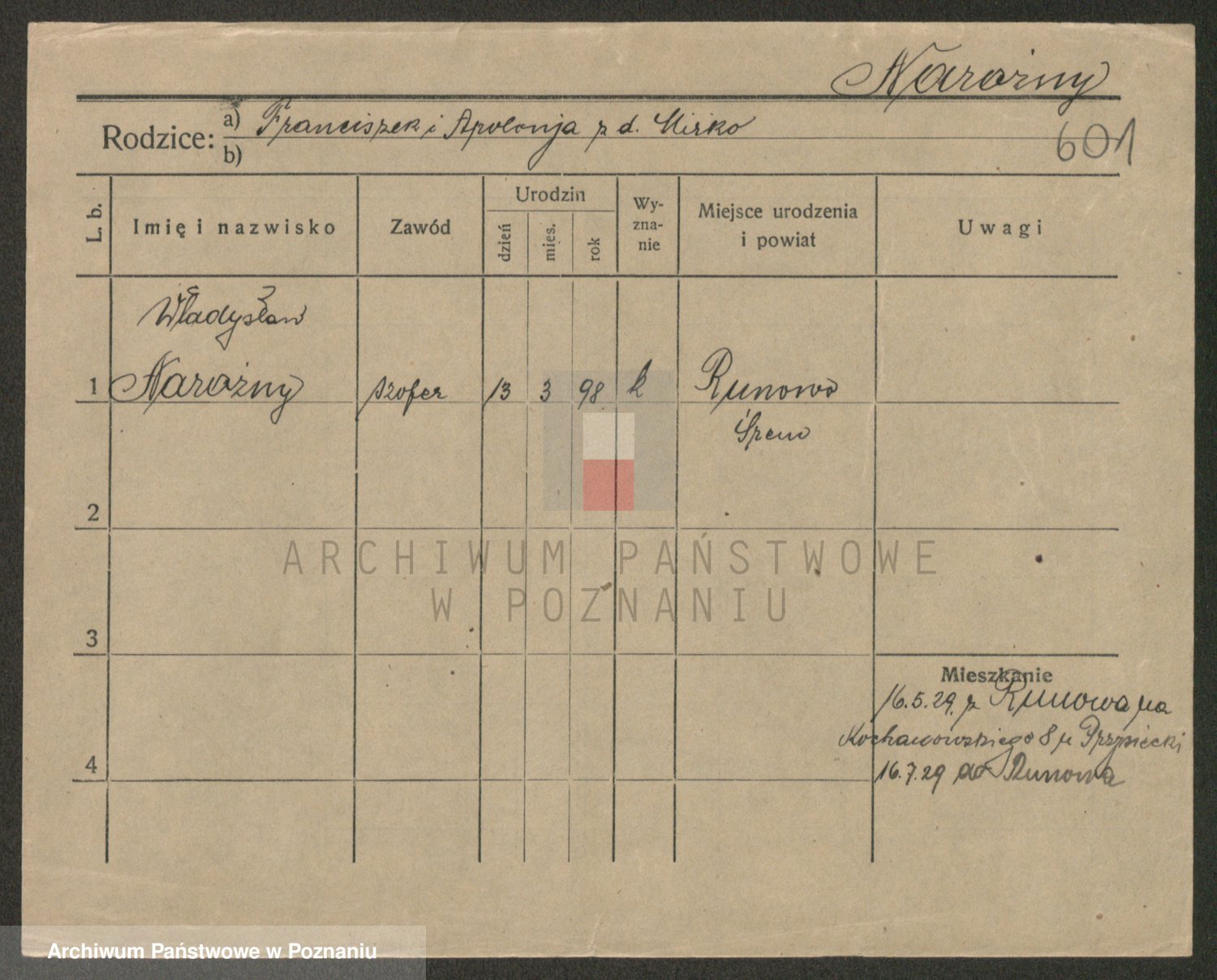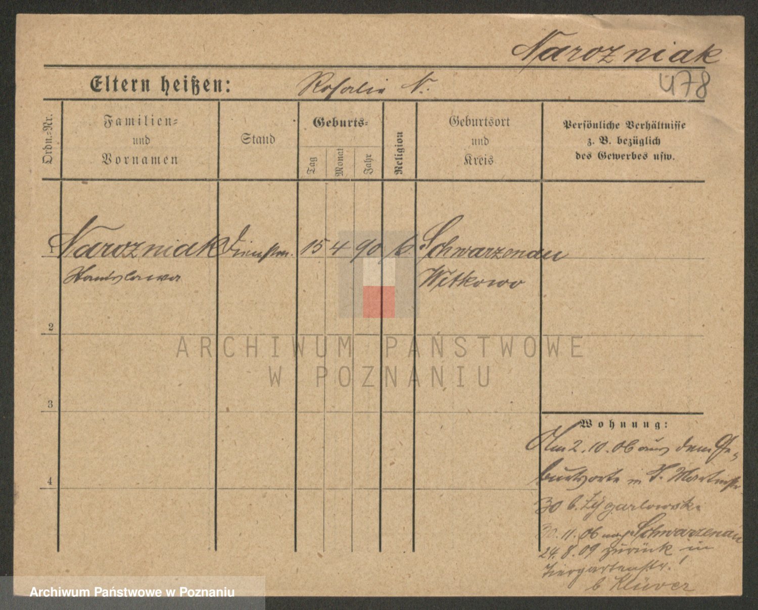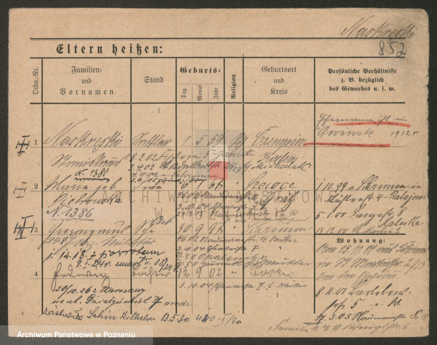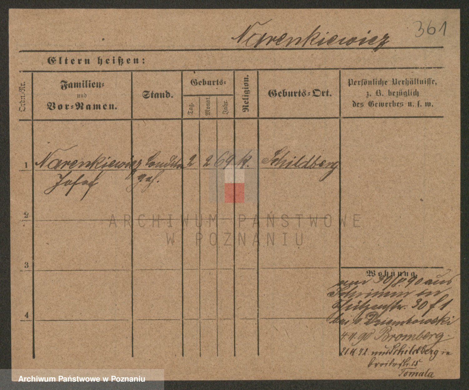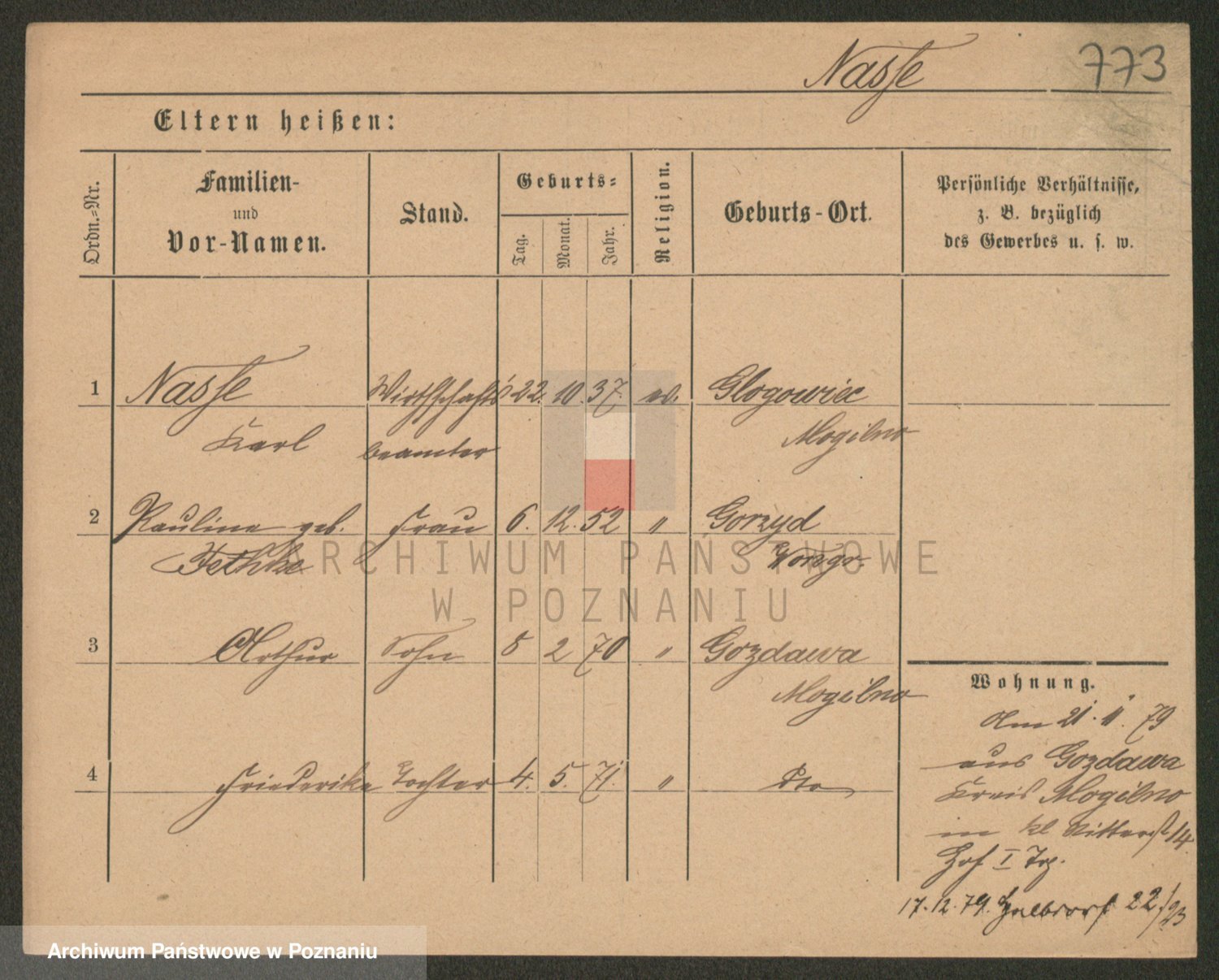 Podgląd karty osobowej dostępny jest po kliknięciu na nazwisko lub ikonkę karty. Można dokonywać powiększenia (ikony na górze) lub przechodzić między kolejnymi skanami (strzałki po bokach).