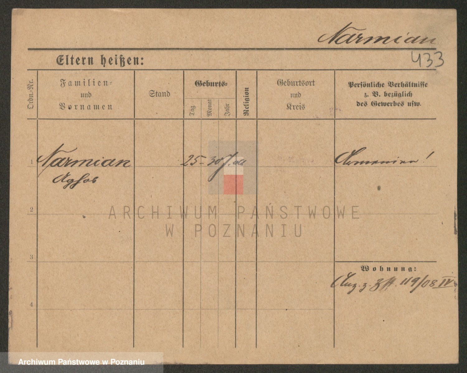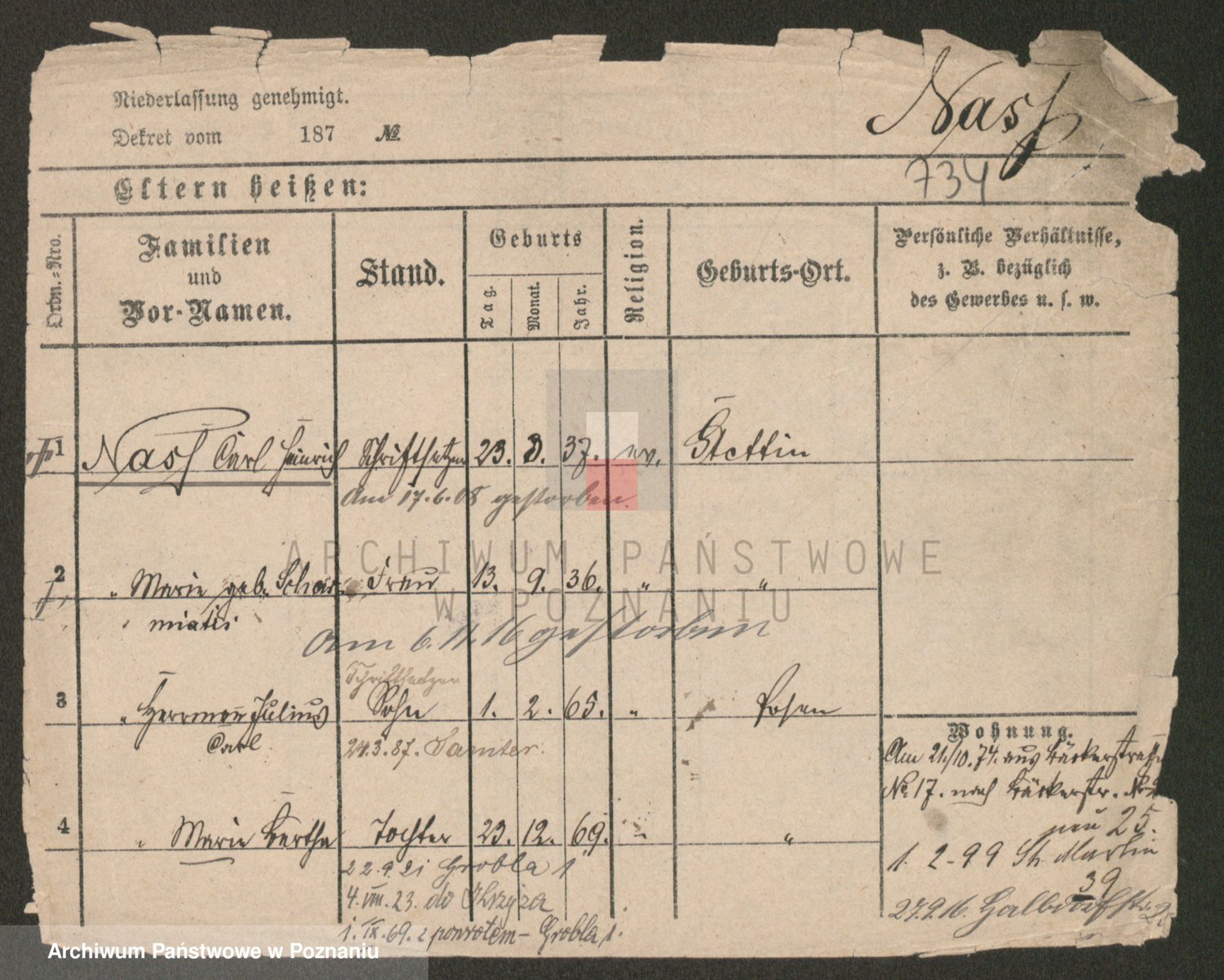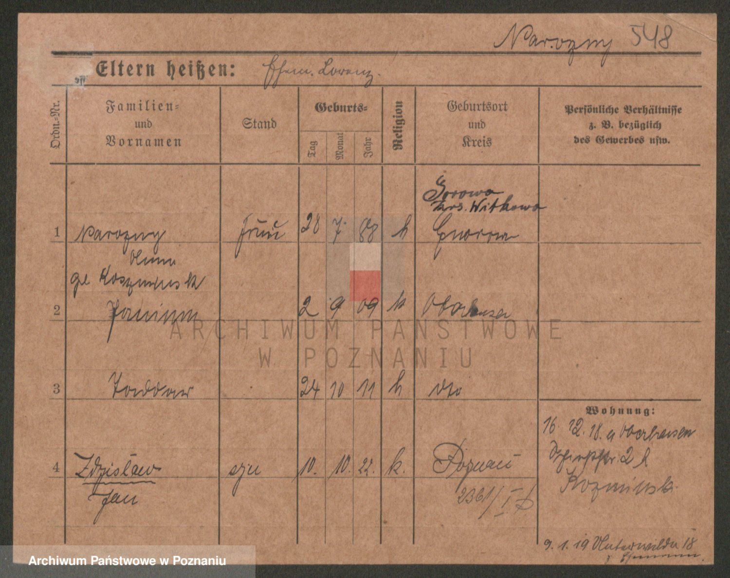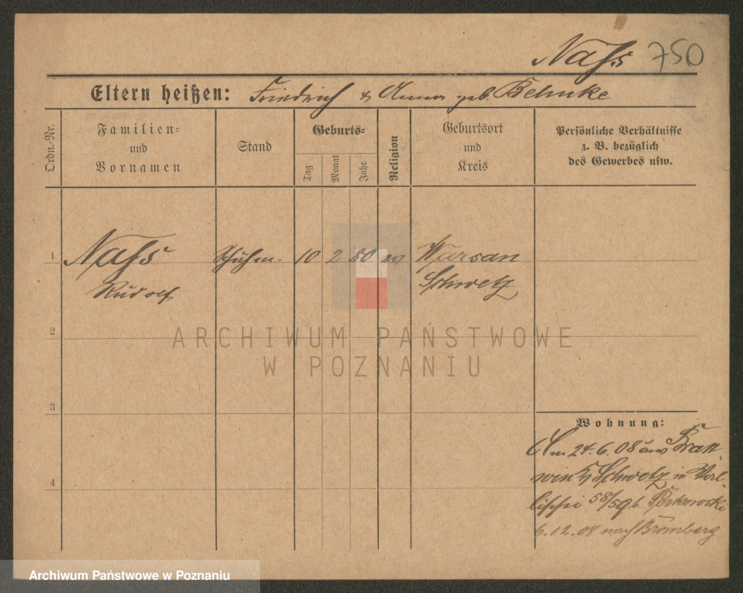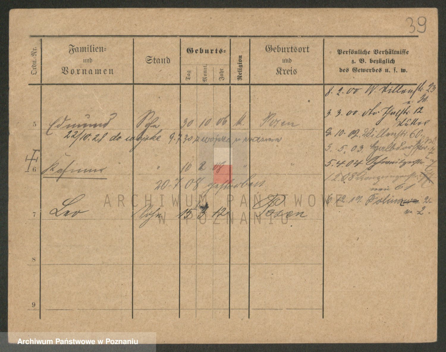 Podgląd karty osobowej dostępny jest po kliknięciu na nazwisko lub ikonkę karty. Można dokonywać powiększenia (ikony na górze) lub przechodzić między kolejnymi skanami (strzałki po bokach).