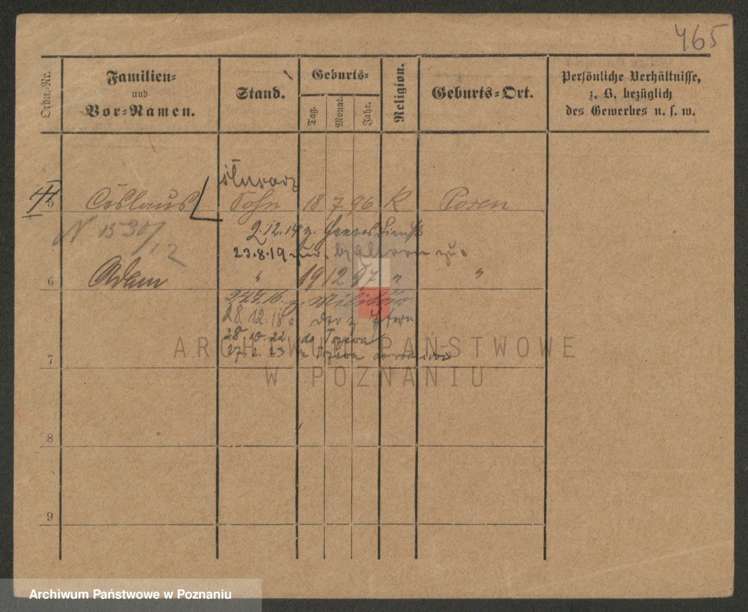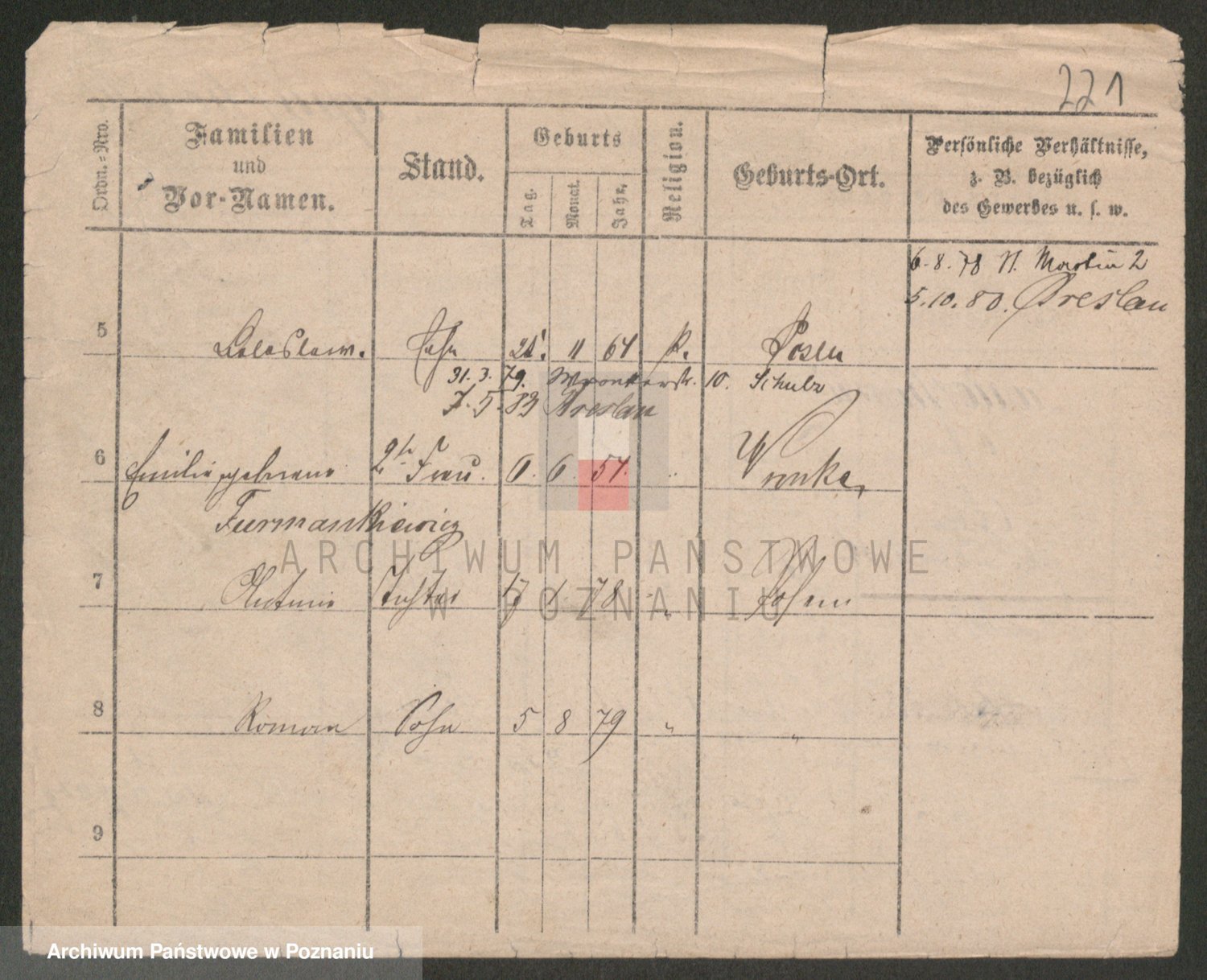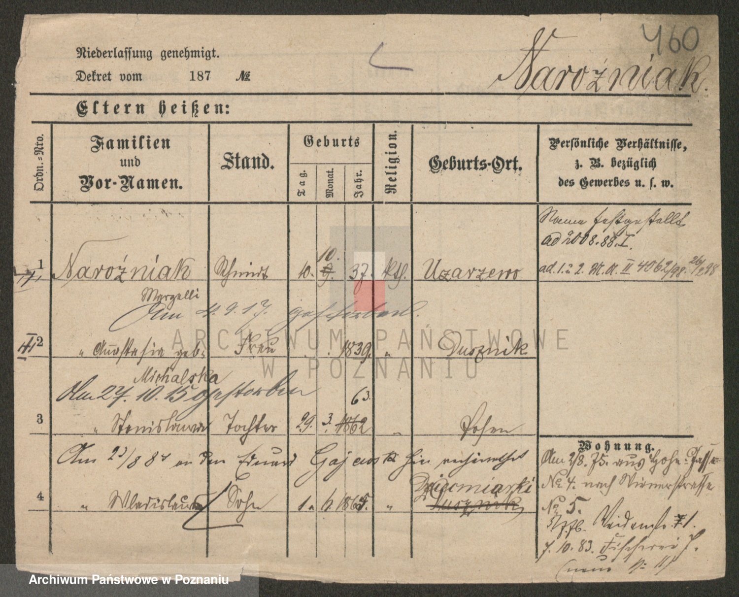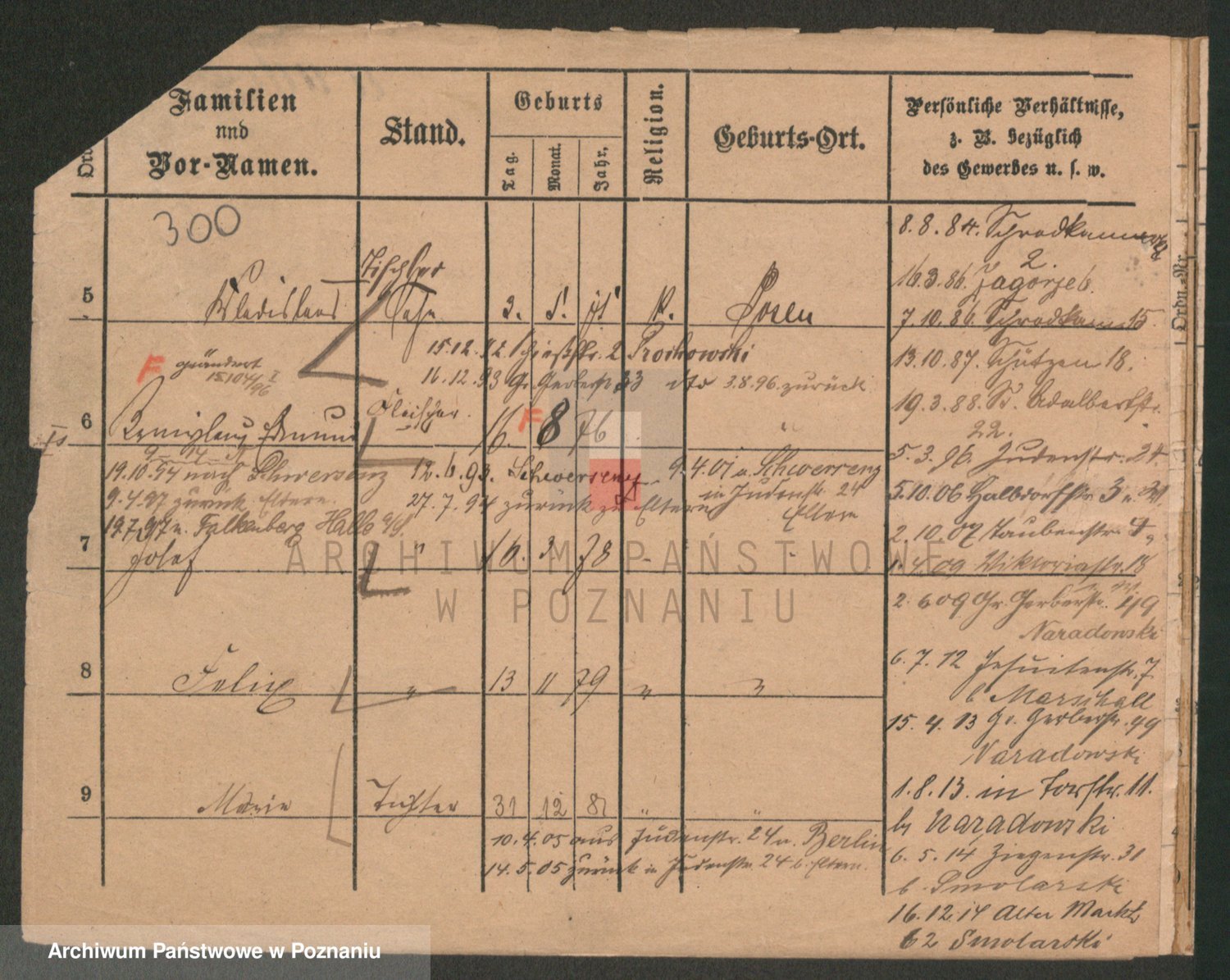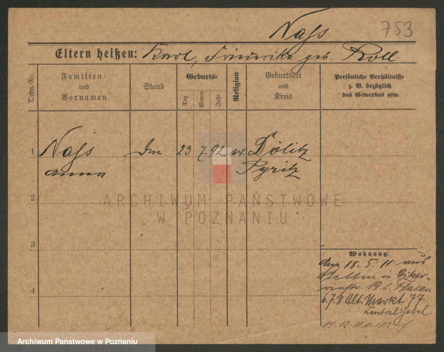 Podgląd karty osobowej dostępny jest po kliknięciu na nazwisko lub ikonkę karty. Można dokonywać powiększenia (ikony na górze) lub przechodzić między kolejnymi skanami (strzałki po bokach).