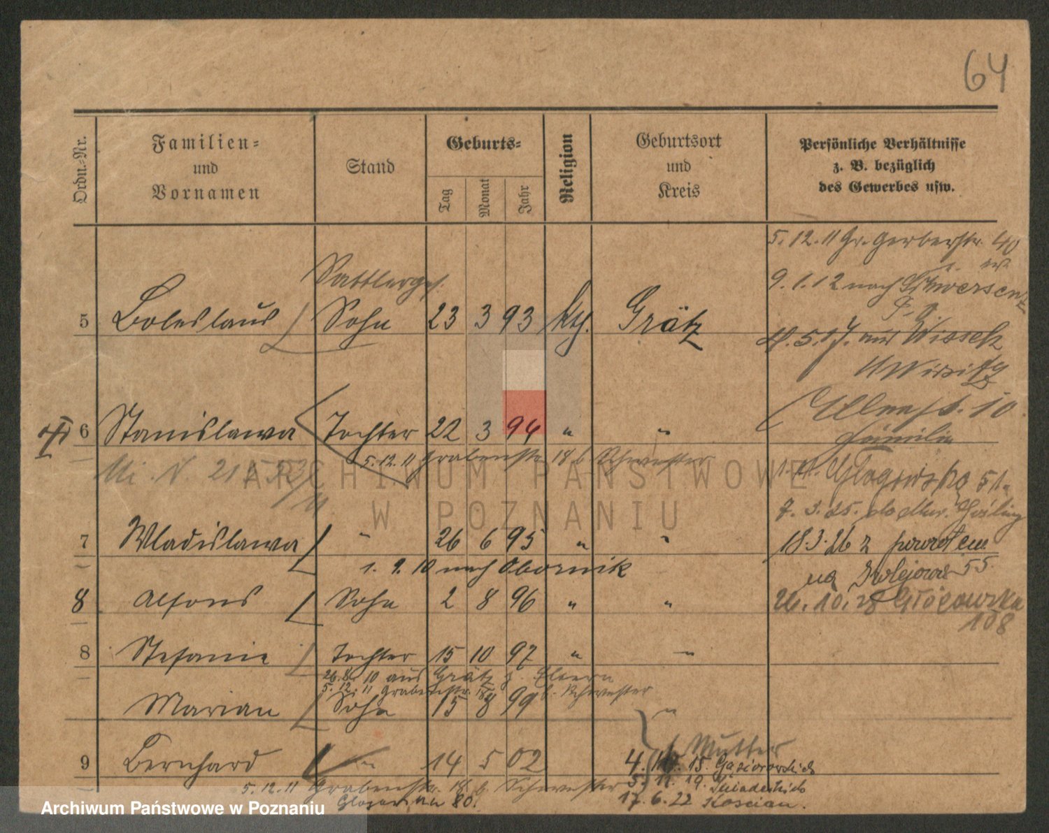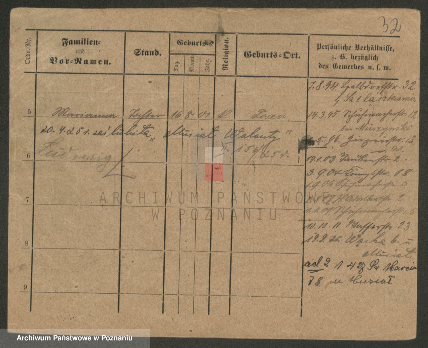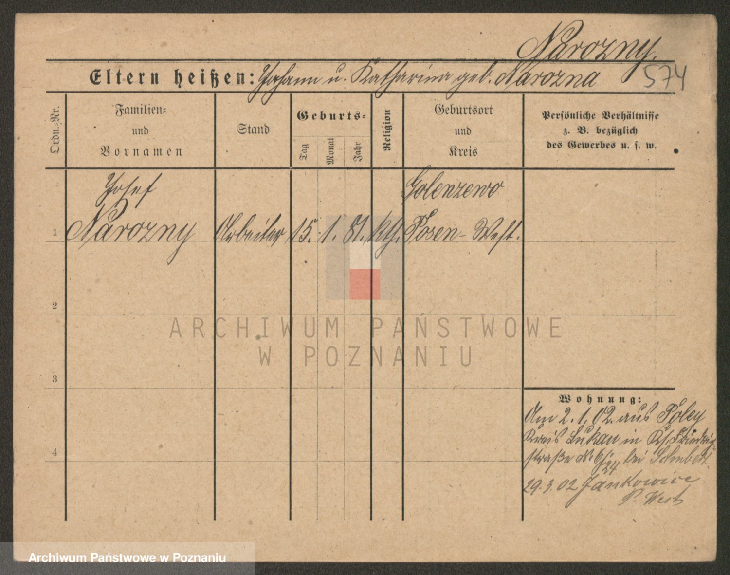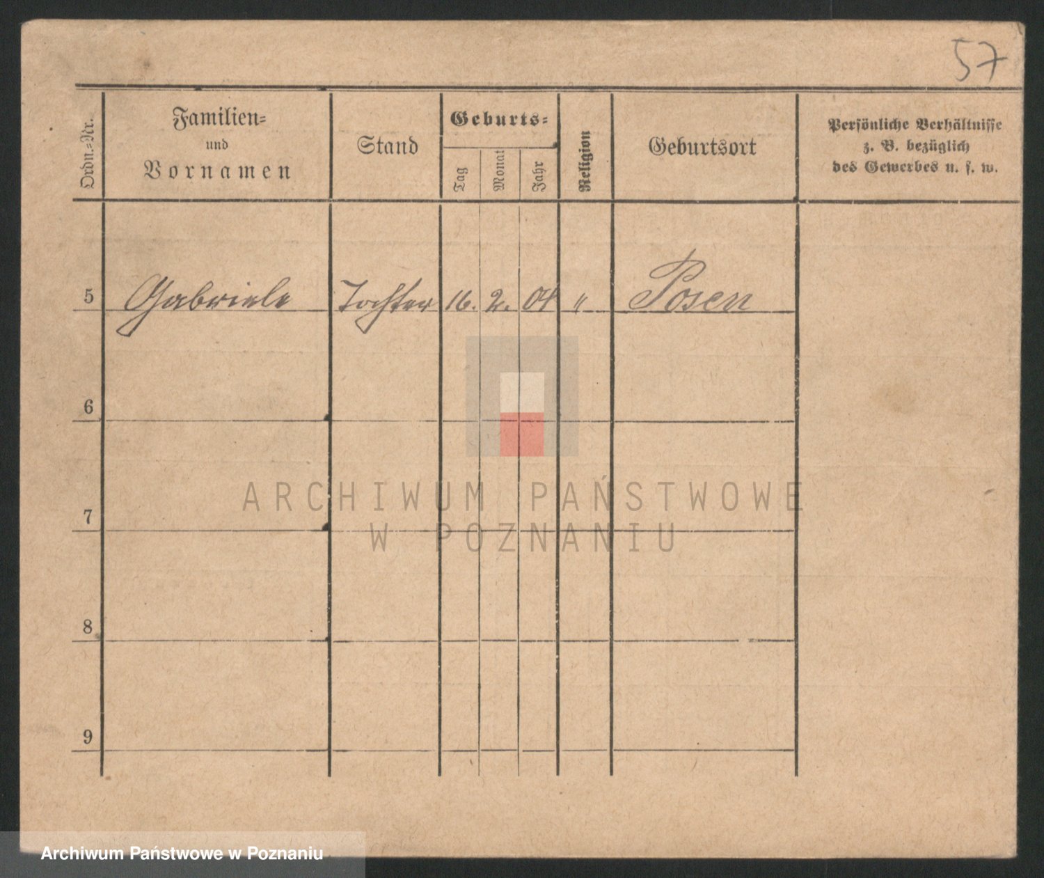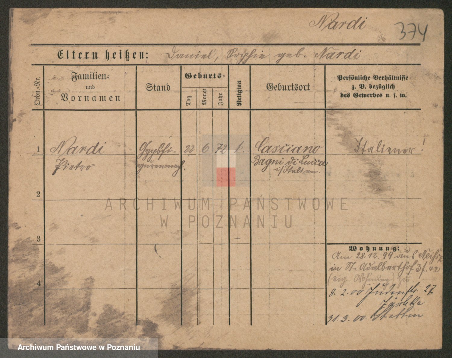 Podgląd karty osobowej dostępny jest po kliknięciu na nazwisko lub ikonkę karty. Można dokonywać powiększenia (ikony na górze) lub przechodzić między kolejnymi skanami (strzałki po bokach).
