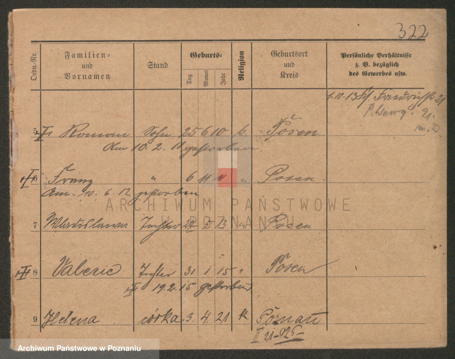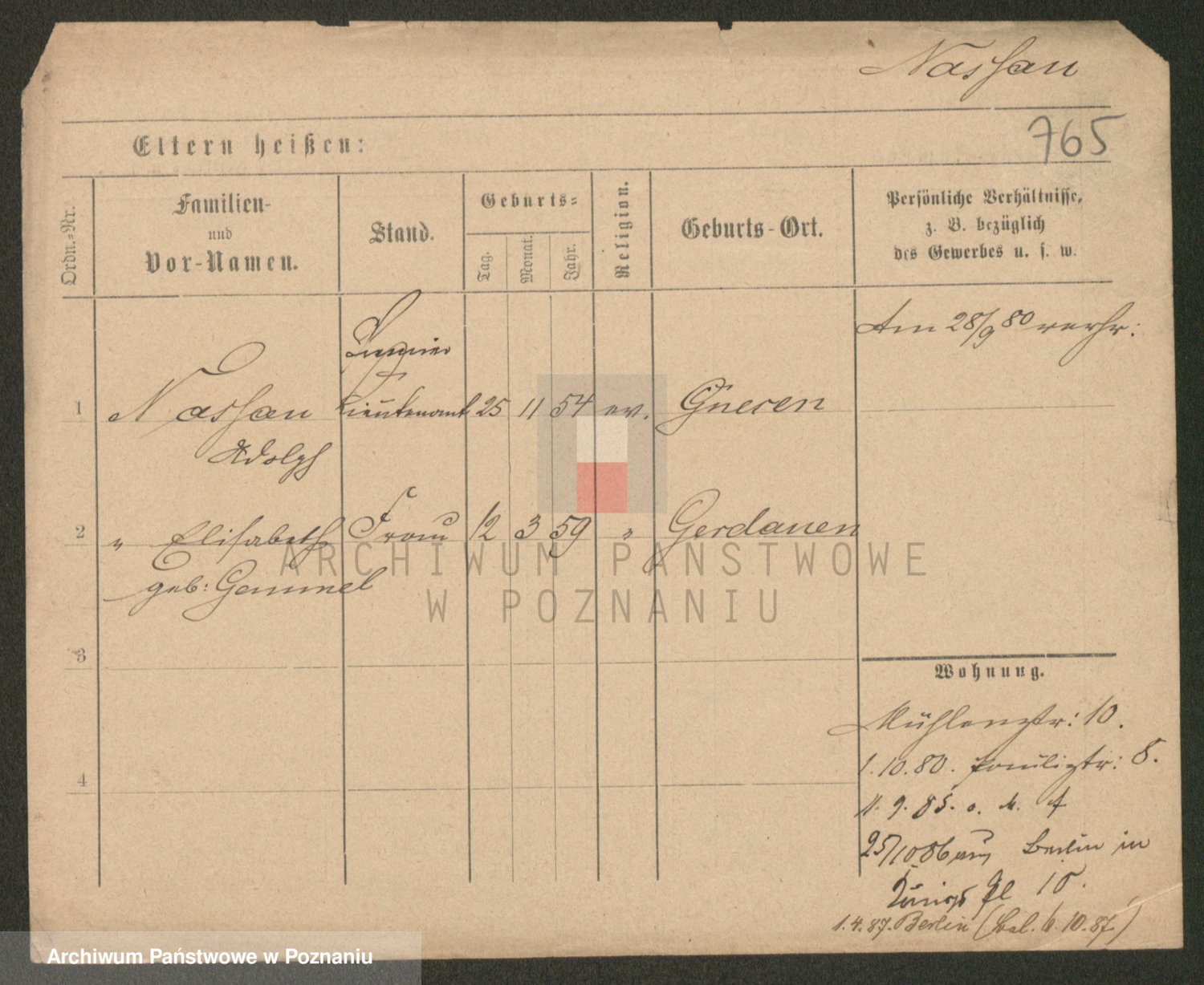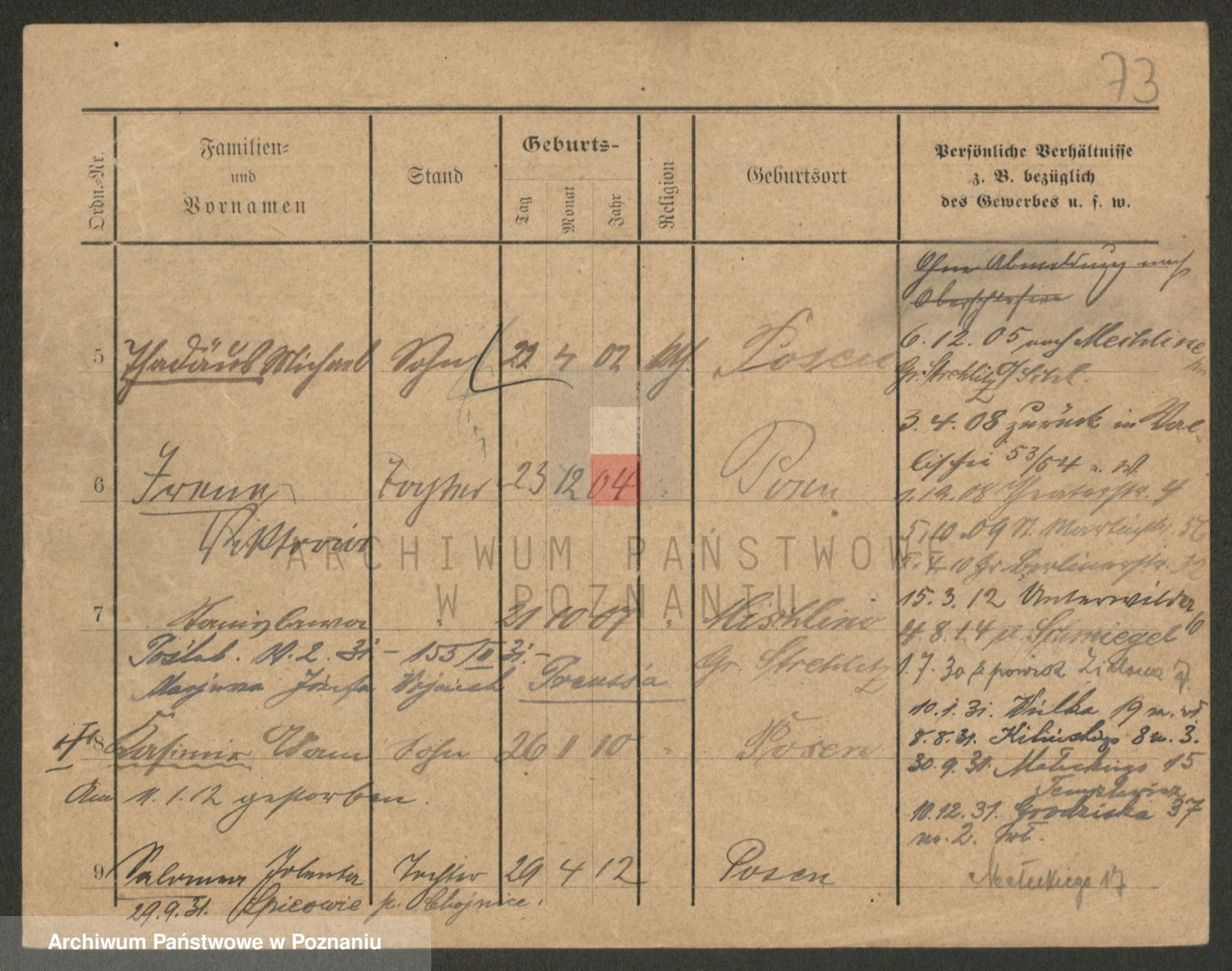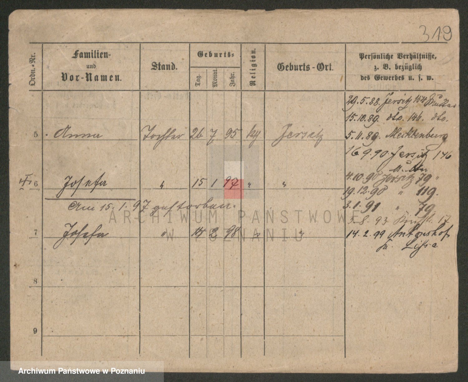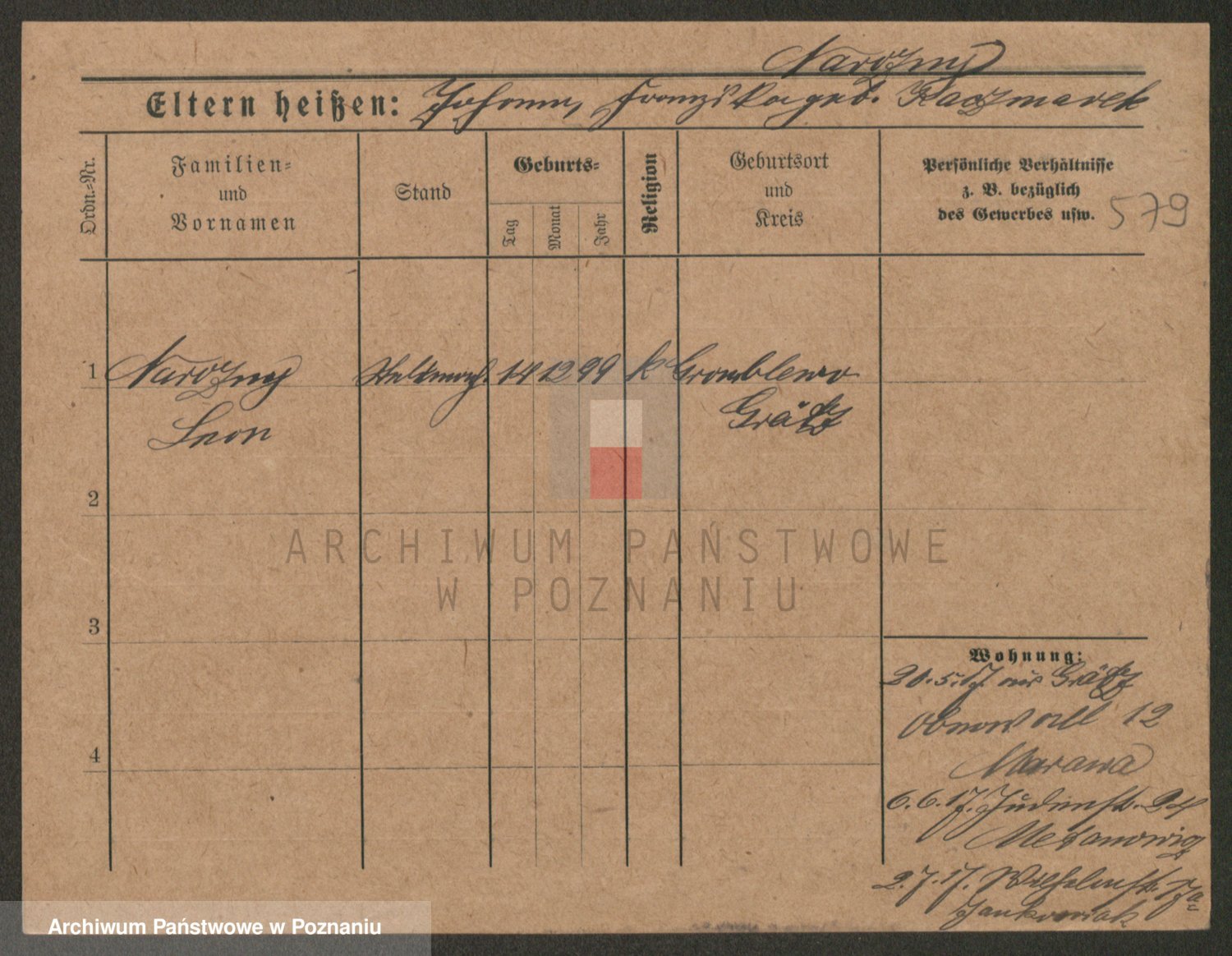 Podgląd karty osobowej dostępny jest po kliknięciu na nazwisko lub ikonkę karty. Można dokonywać powiększenia (ikony na górze) lub przechodzić między kolejnymi skanami (strzałki po bokach).