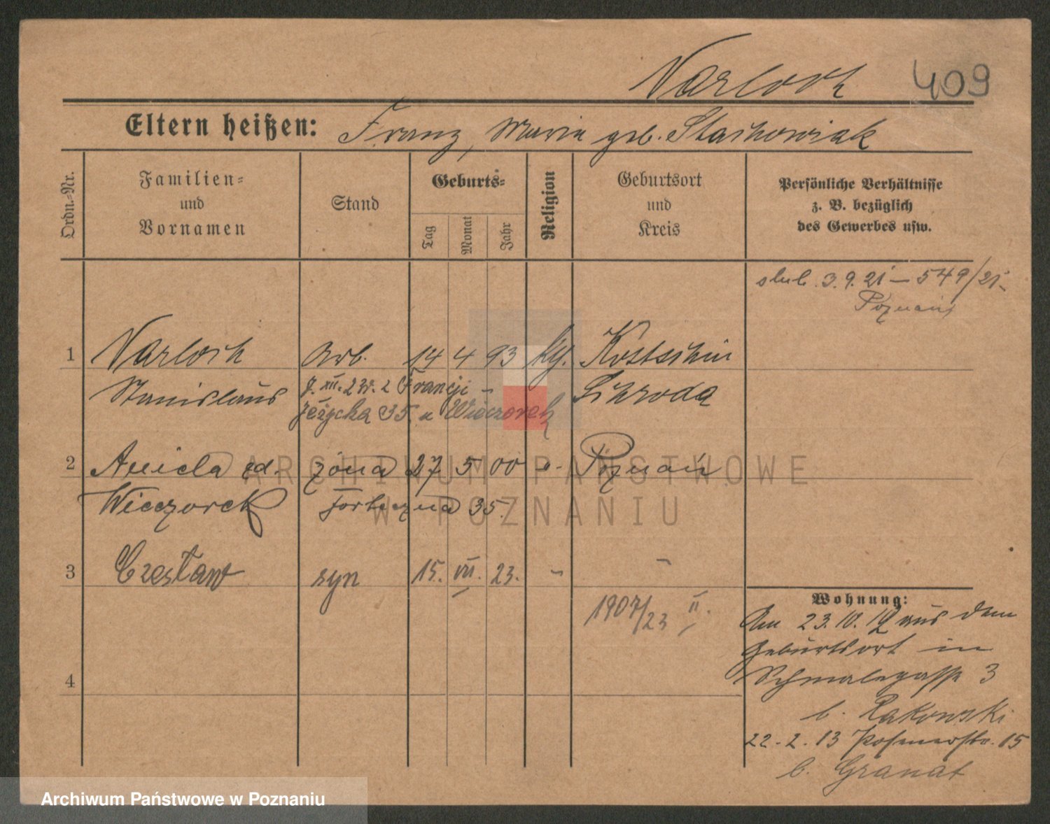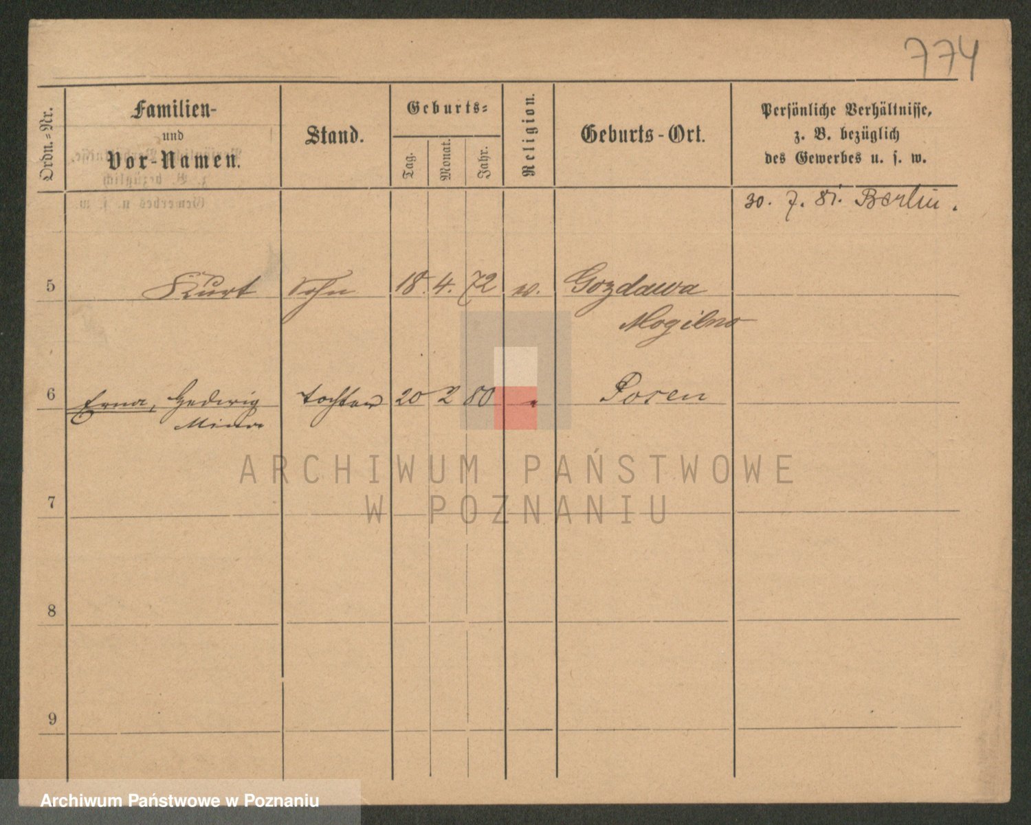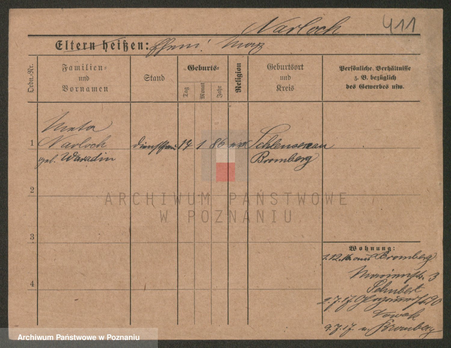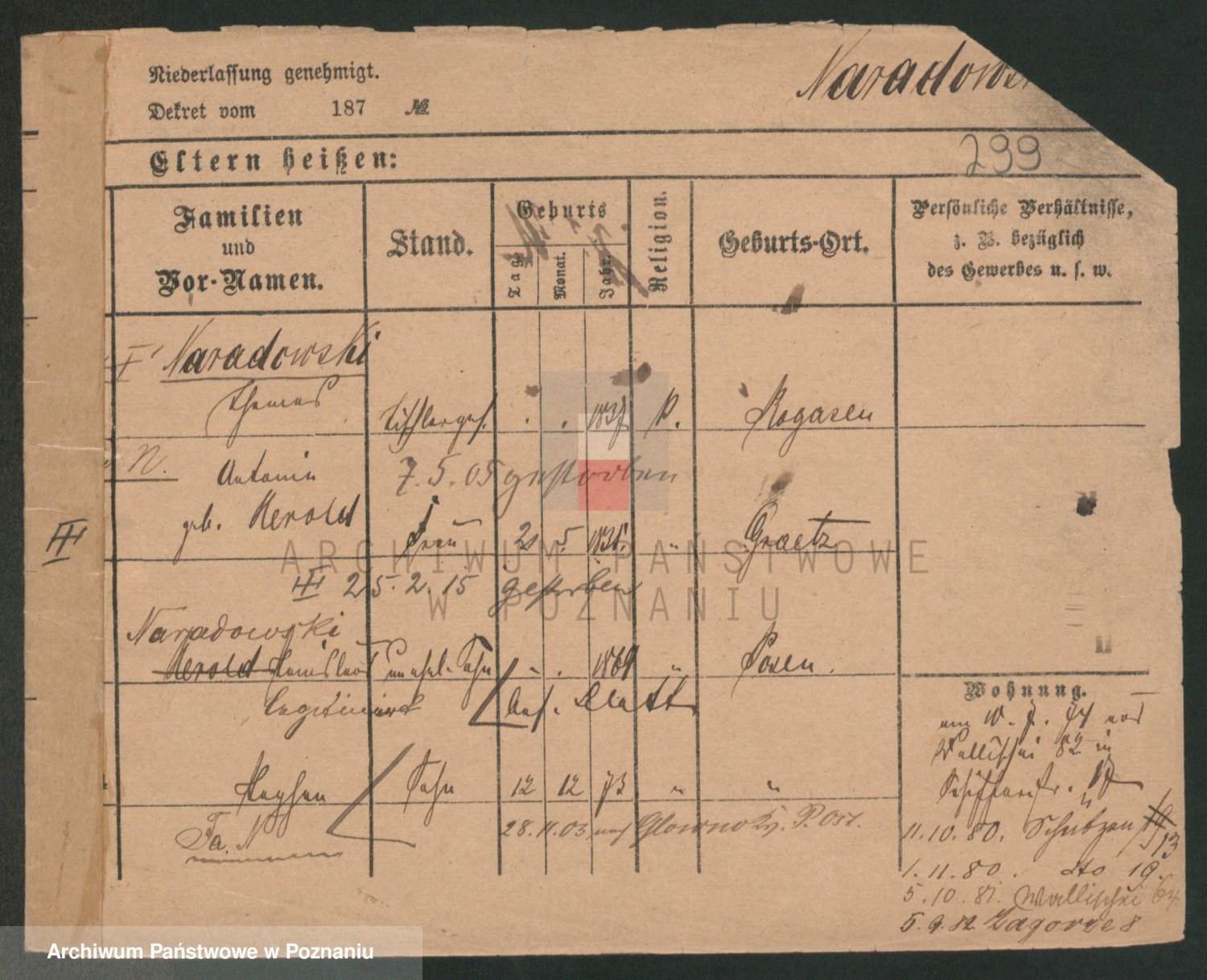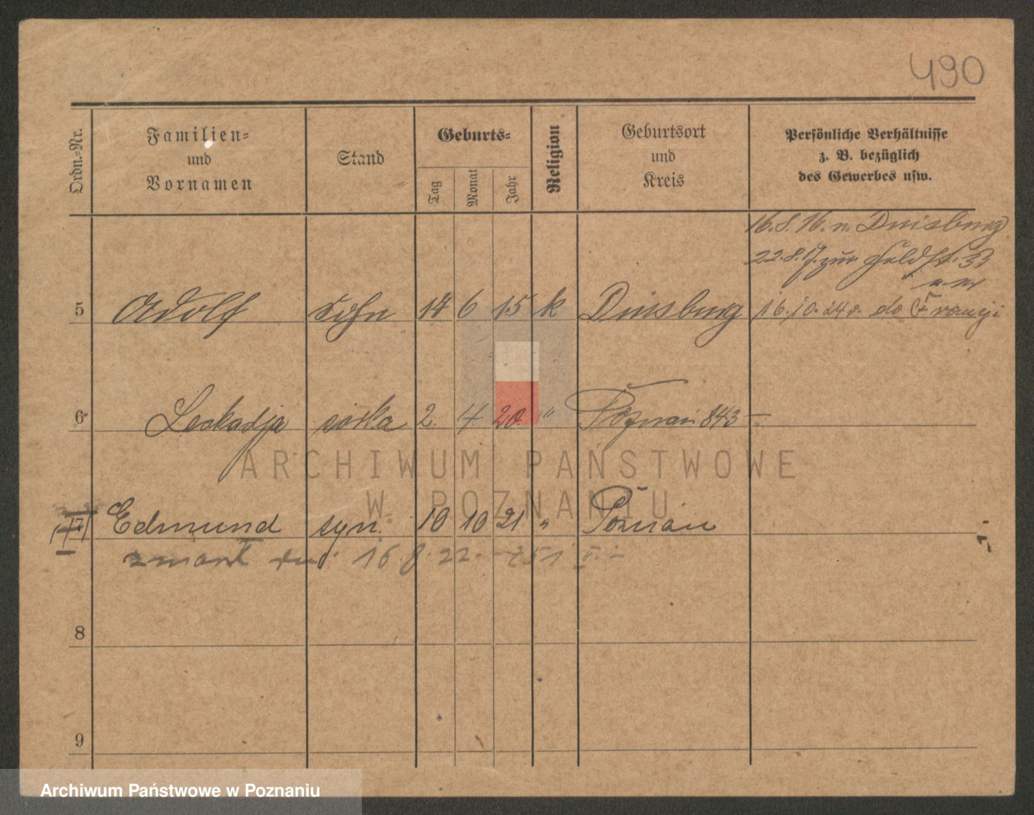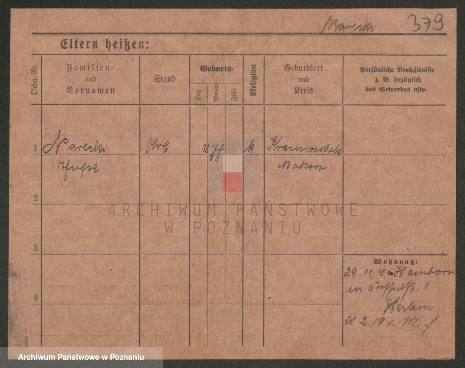 Podgląd karty osobowej dostępny jest po kliknięciu na nazwisko lub ikonkę karty. Można dokonywać powiększenia (ikony na górze) lub przechodzić między kolejnymi skanami (strzałki po bokach).
