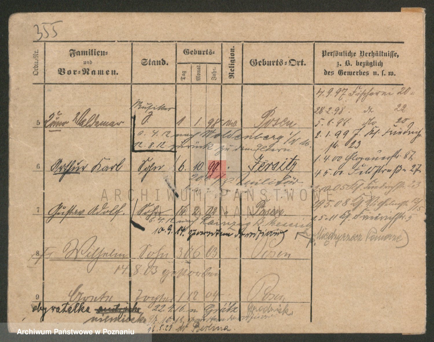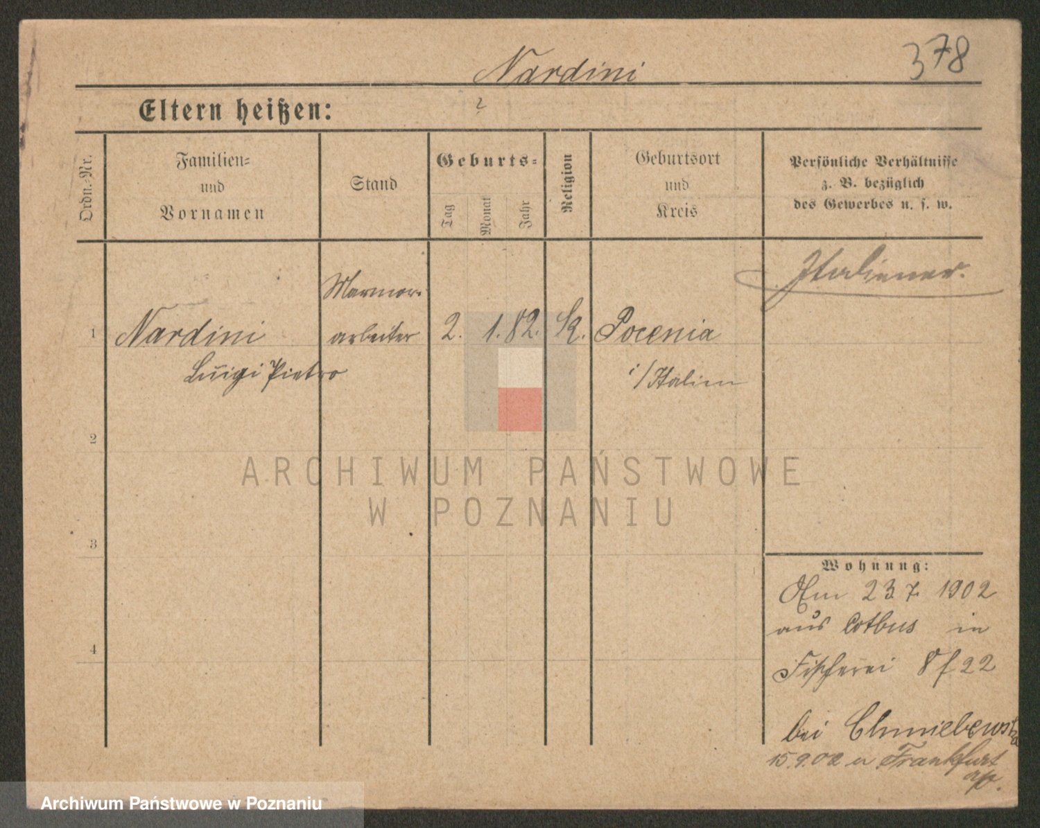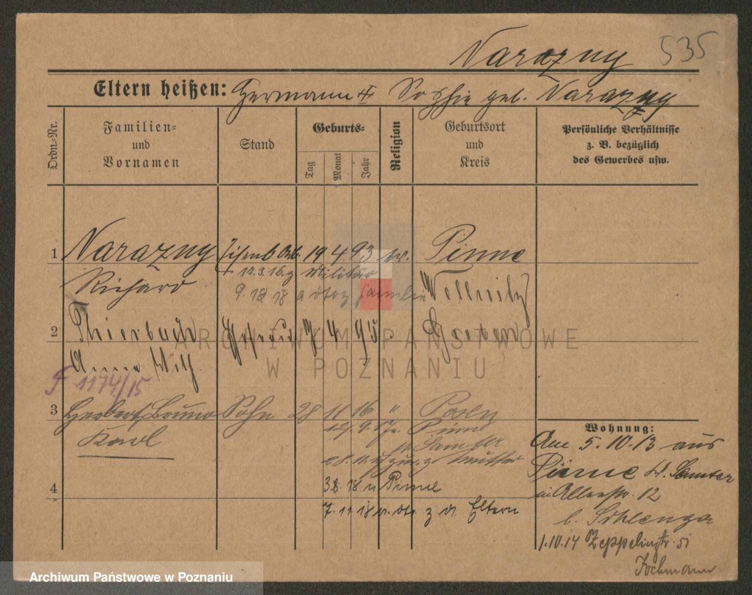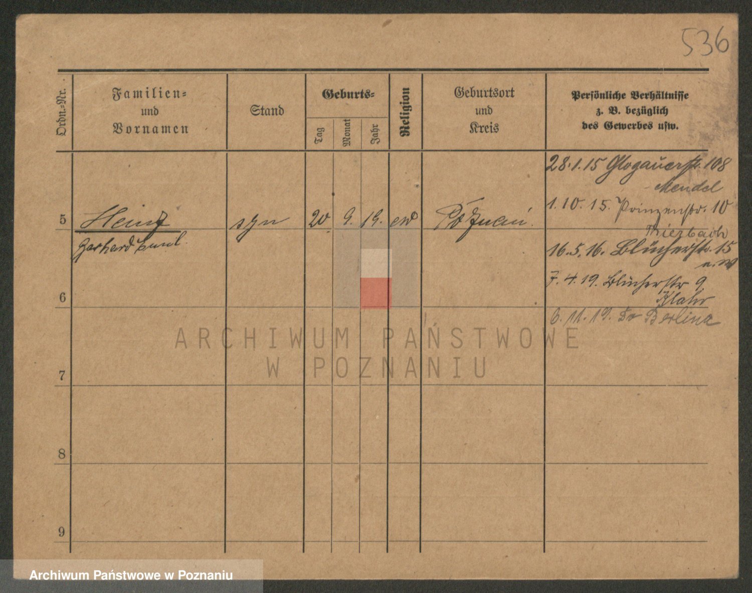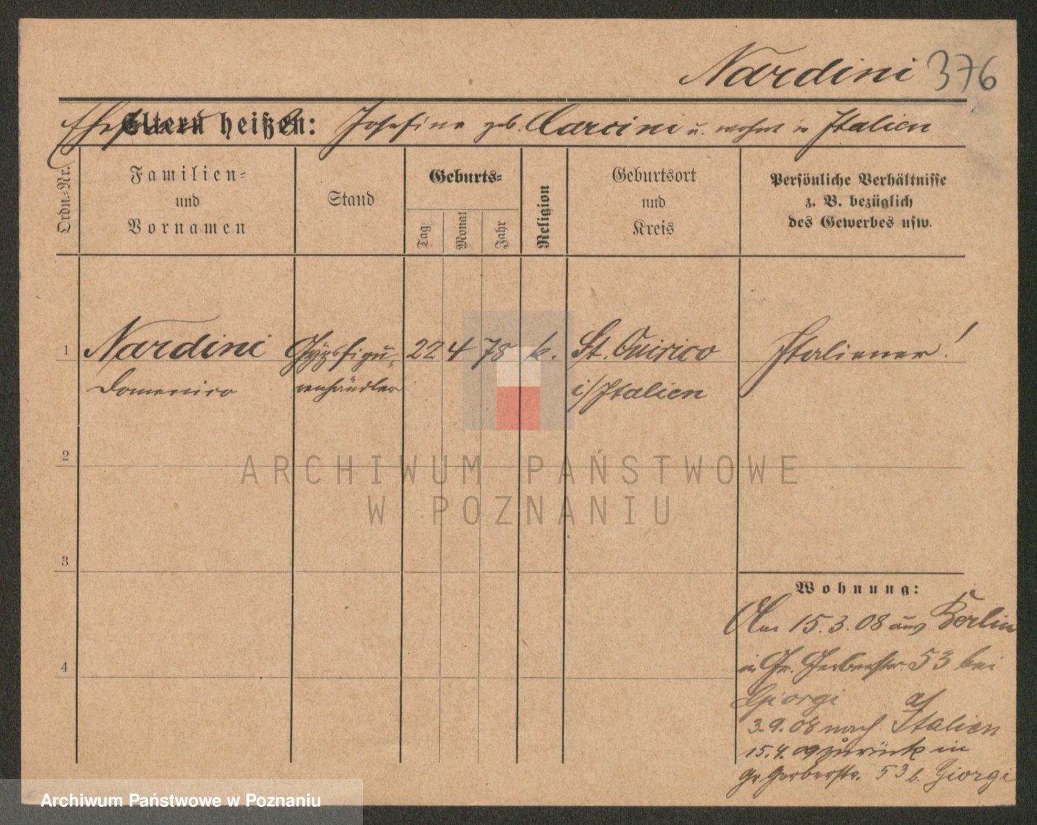 Podgląd karty osobowej dostępny jest po kliknięciu na nazwisko lub ikonkę karty. Można dokonywać powiększenia (ikony na górze) lub przechodzić między kolejnymi skanami (strzałki po bokach).