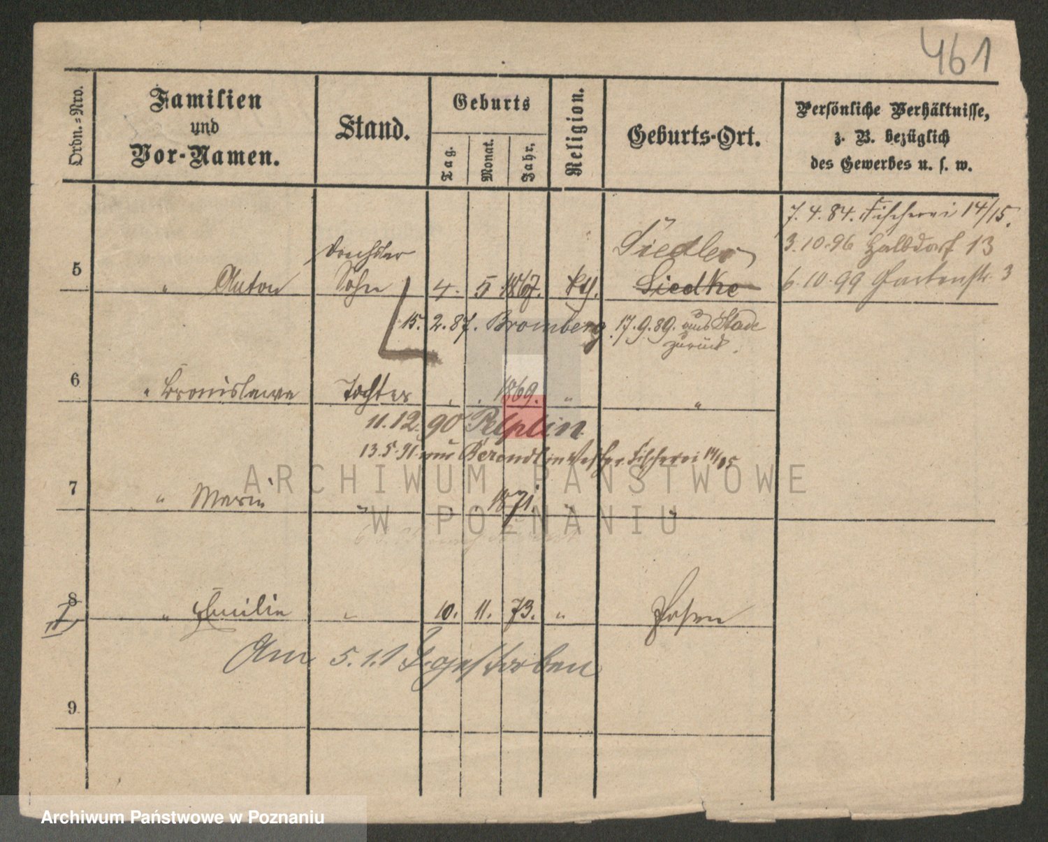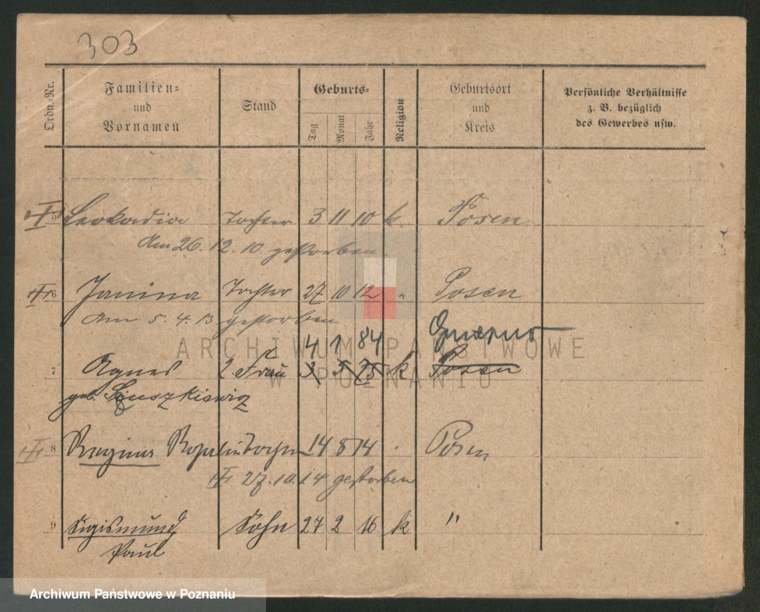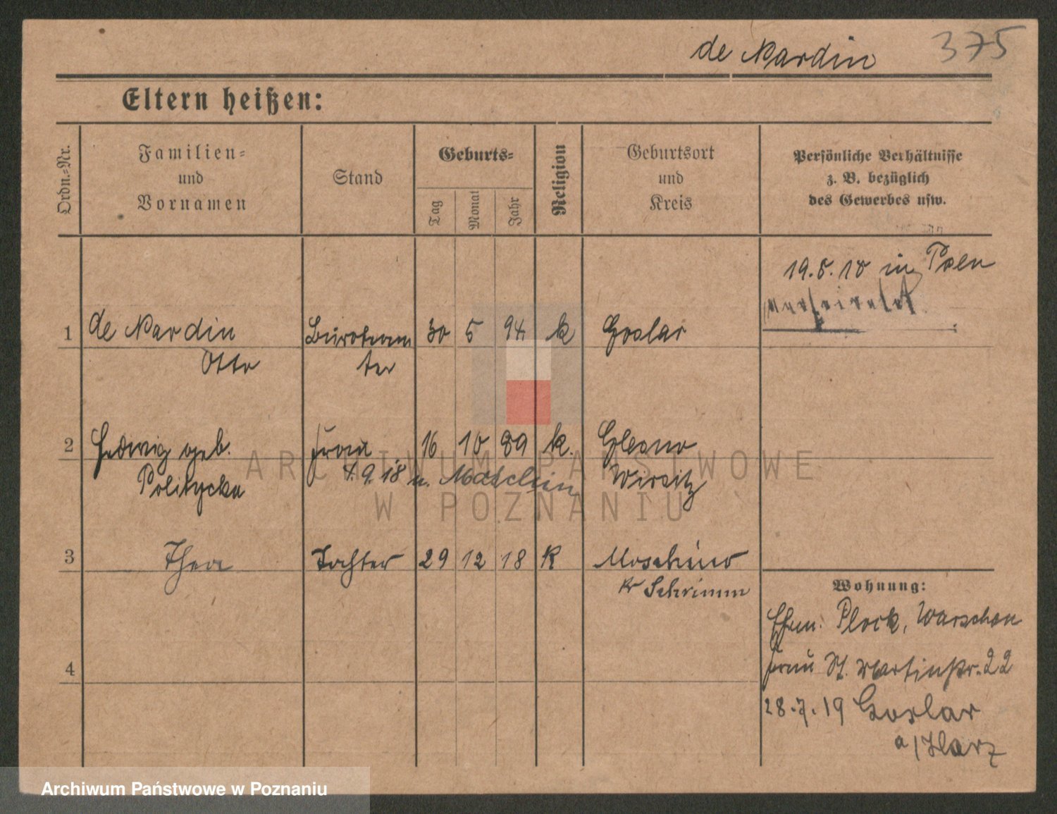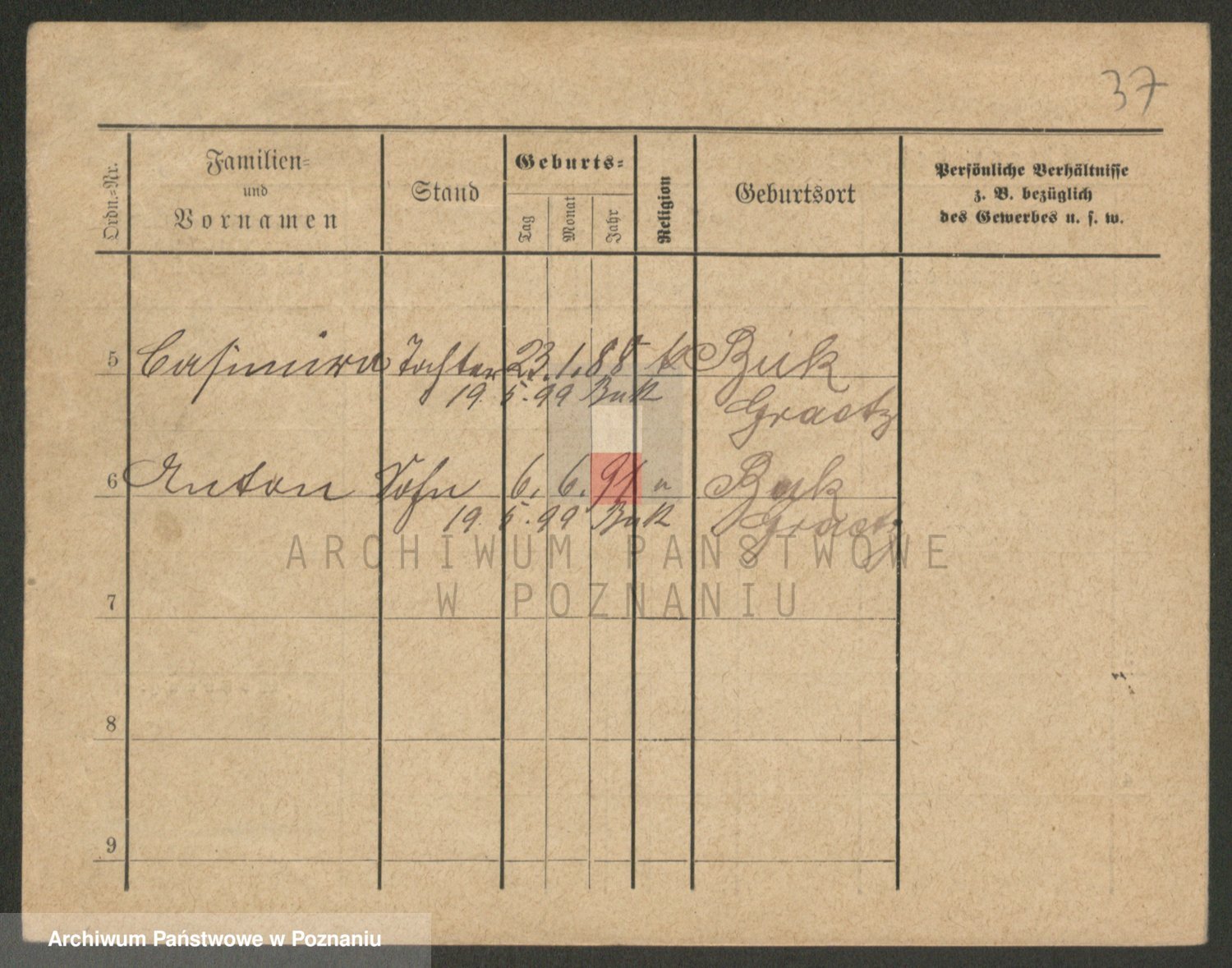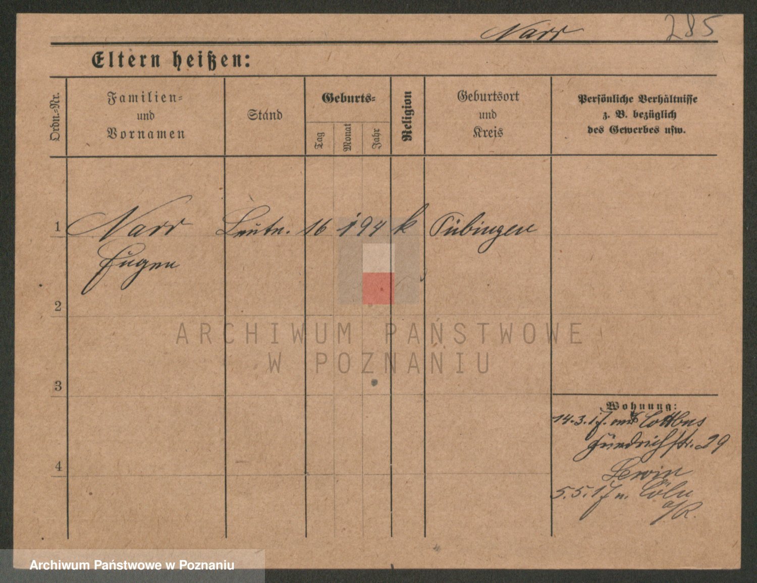 Podgląd karty osobowej dostępny jest po kliknięciu na nazwisko lub ikonkę karty. Można dokonywać powiększenia (ikony na górze) lub przechodzić między kolejnymi skanami (strzałki po bokach).