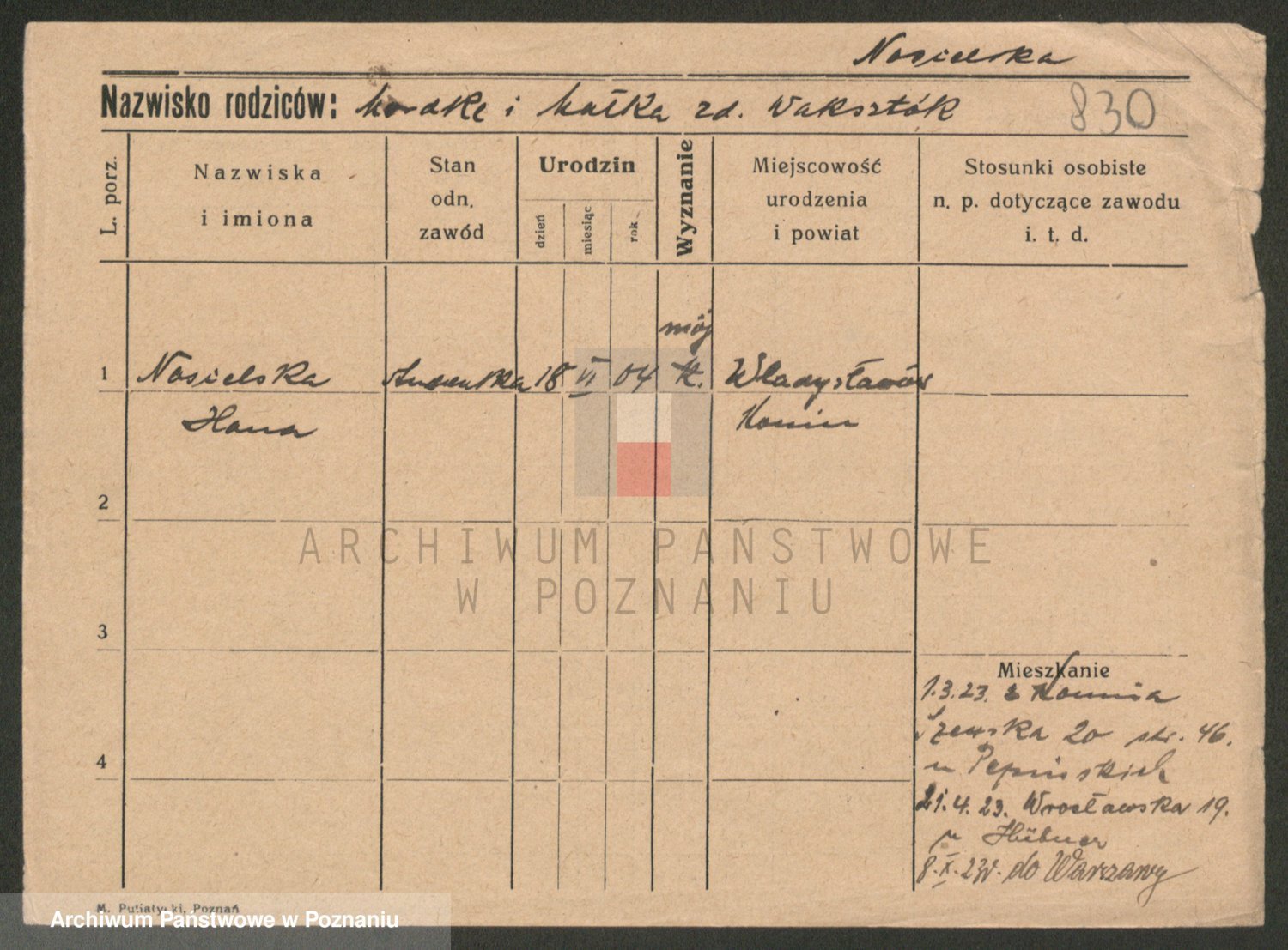 Napieralski zd. Witkiewicz, Marja