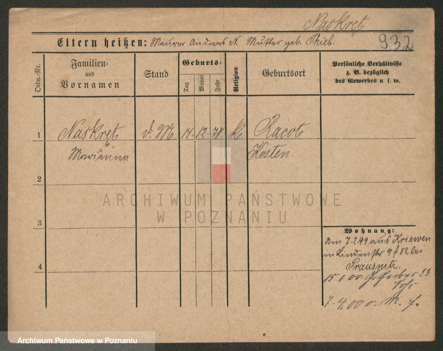 Naskręt, Marie