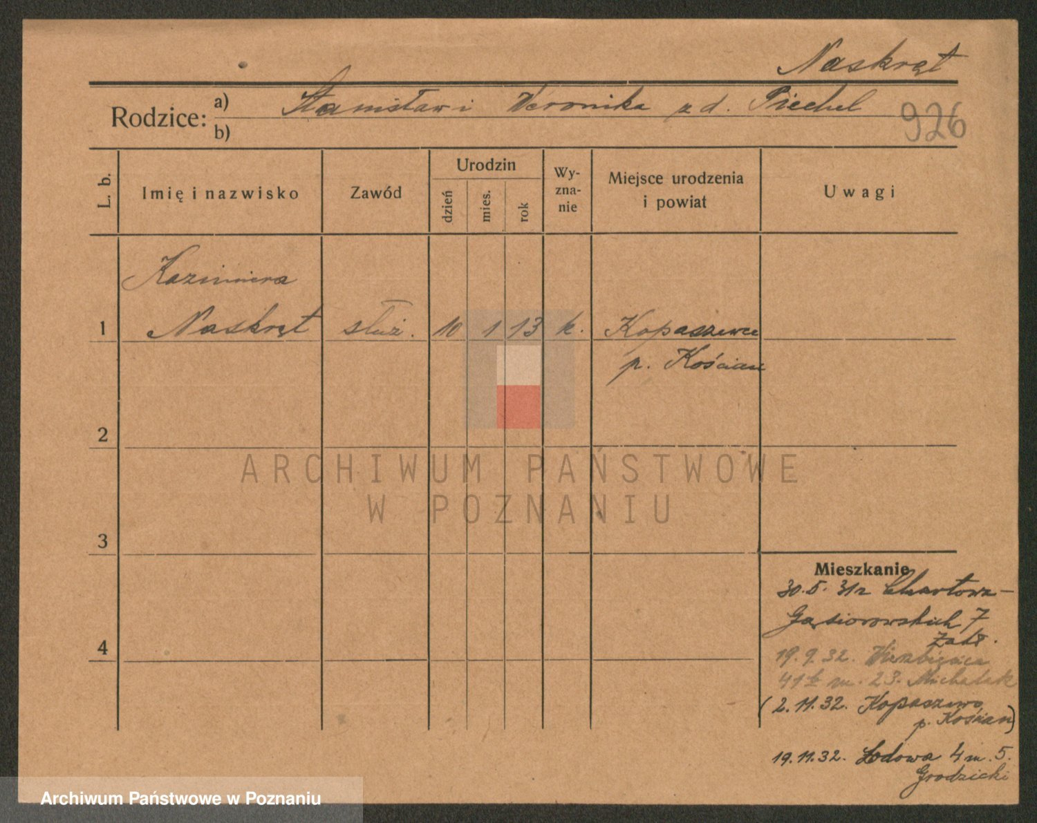 Naskrent zd. Owczaryszek, Apolonia