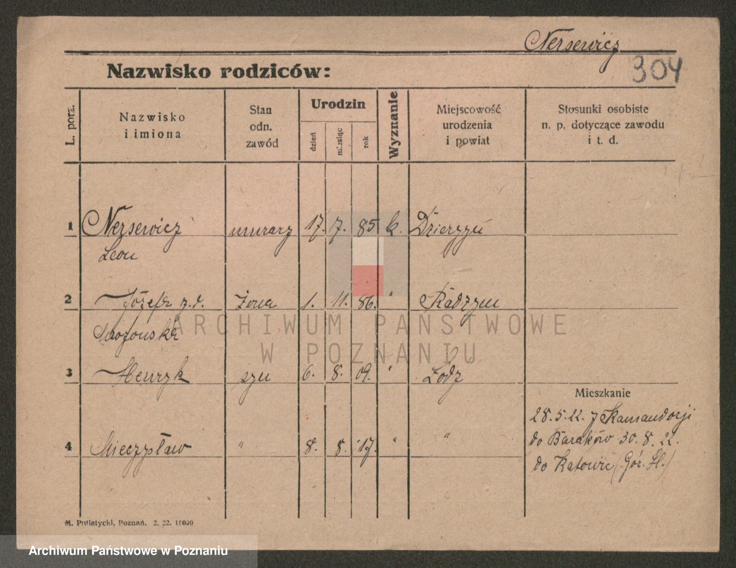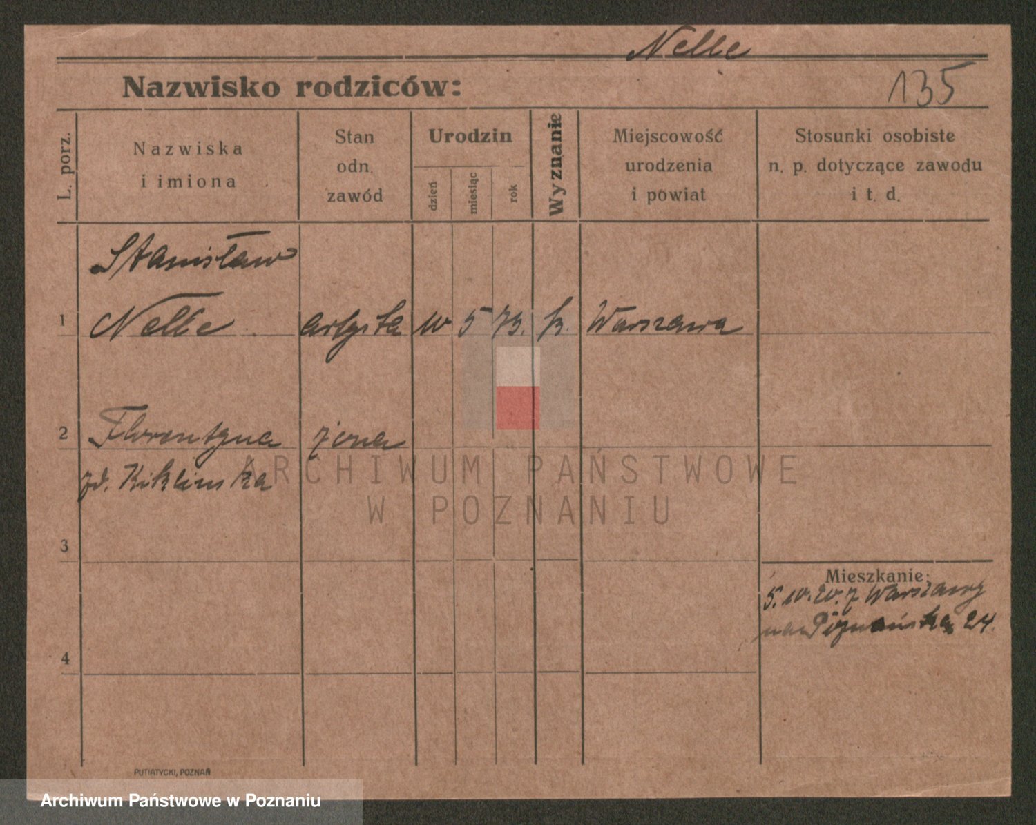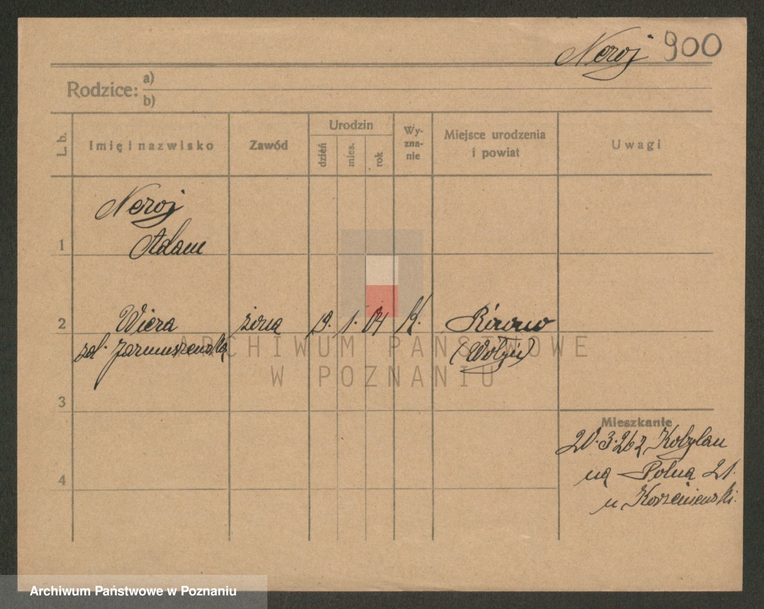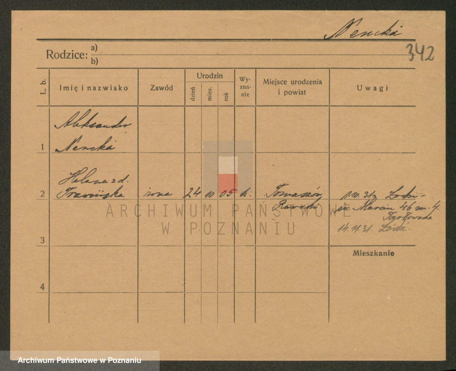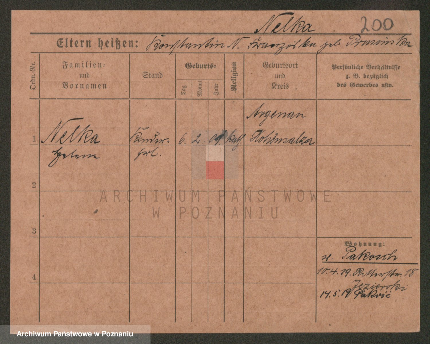 Podgląd karty osobowej dostępny jest po kliknięciu na nazwisko lub ikonkę karty. Można dokonywać powiększenia (ikony na górze) lub przechodzić między kolejnymi skanami (strzałki po bokach).