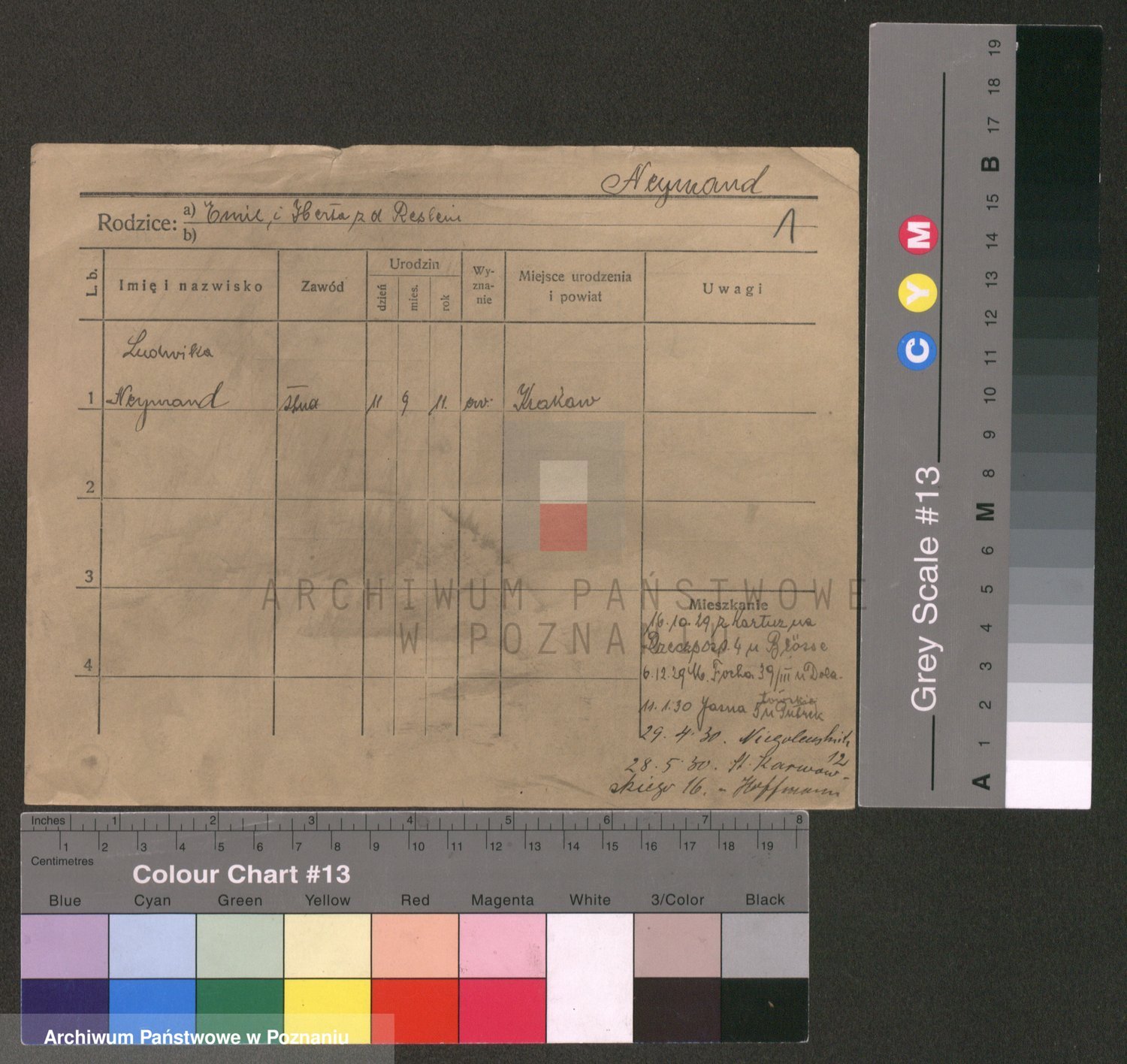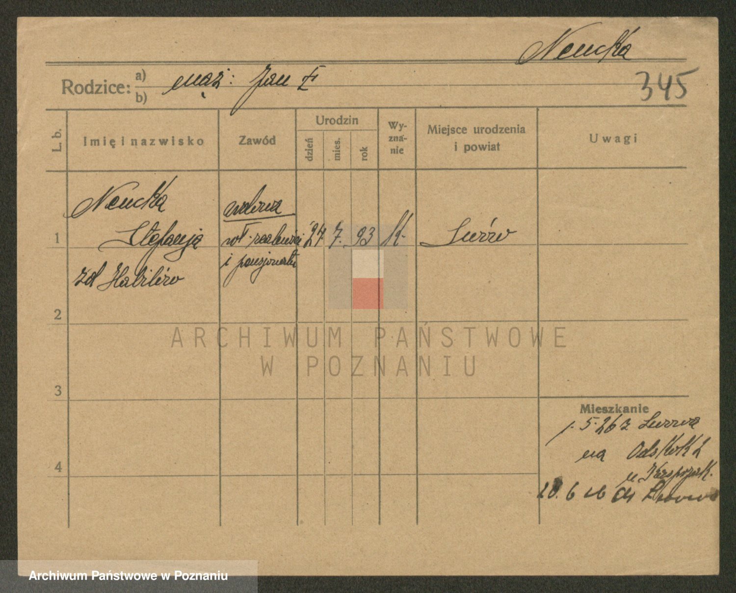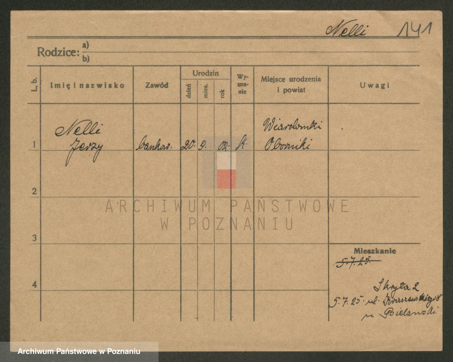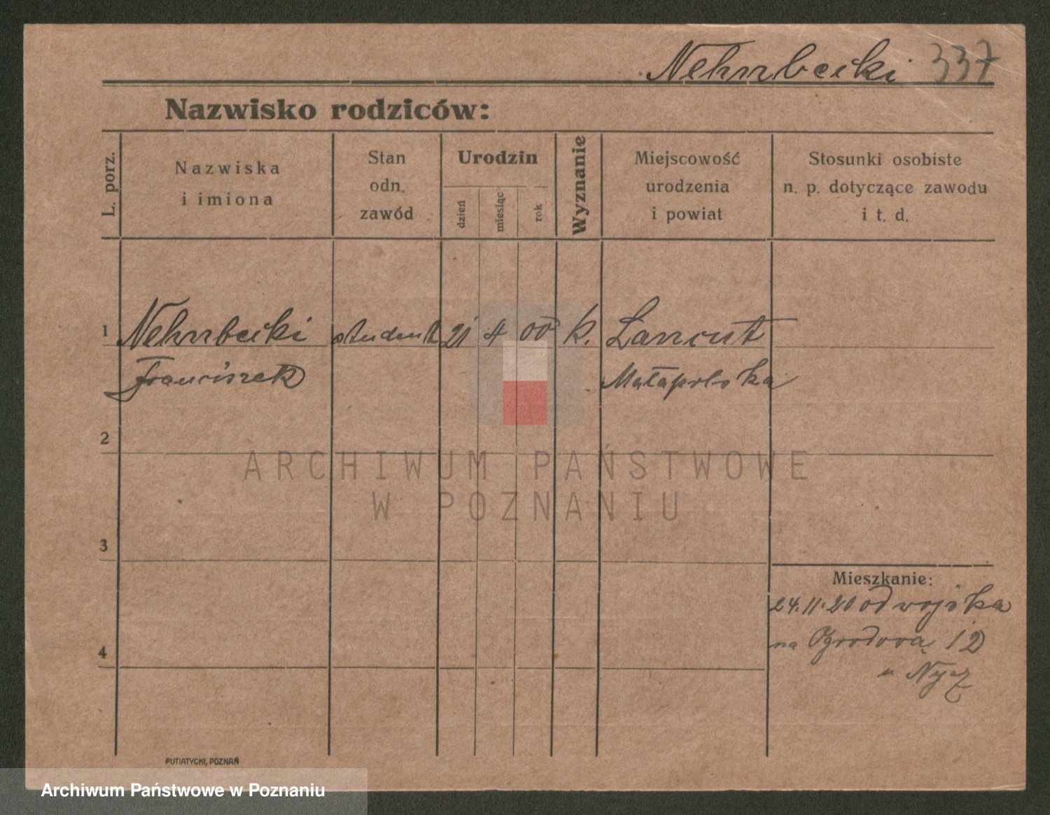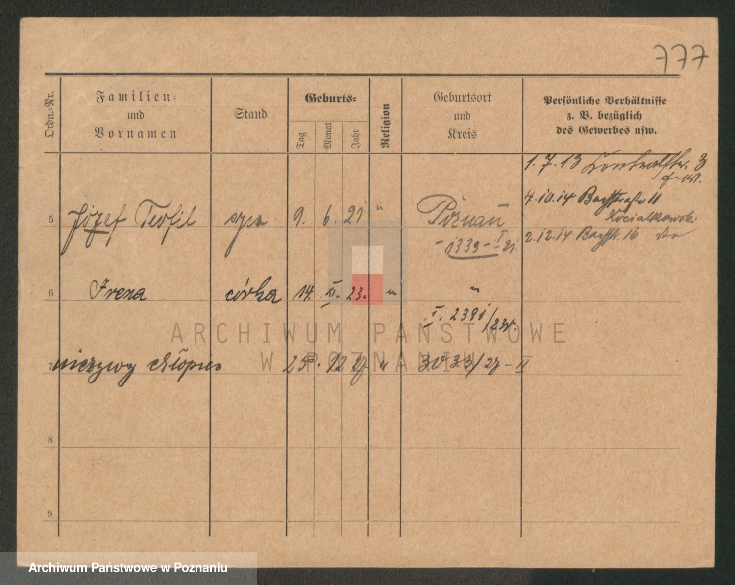 Podgląd karty osobowej dostępny jest po kliknięciu na nazwisko lub ikonkę karty. Można dokonywać powiększenia (ikony na górze) lub przechodzić między kolejnymi skanami (strzałki po bokach).