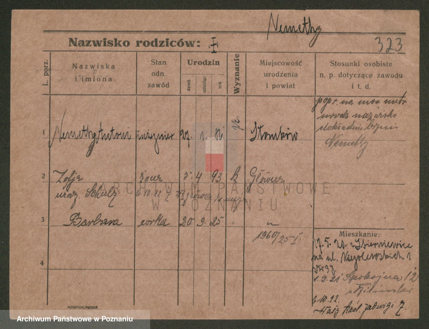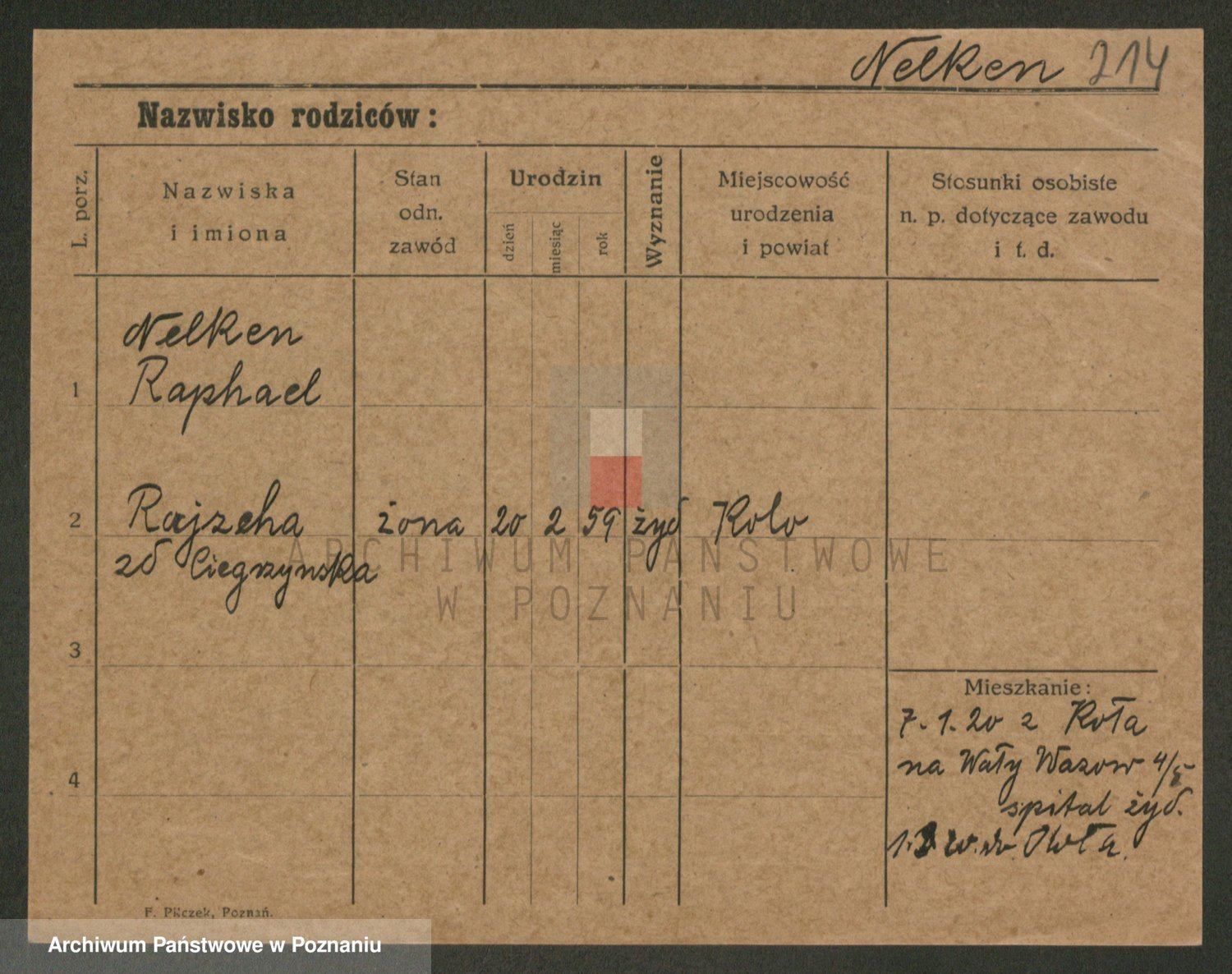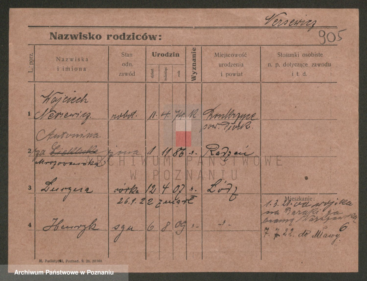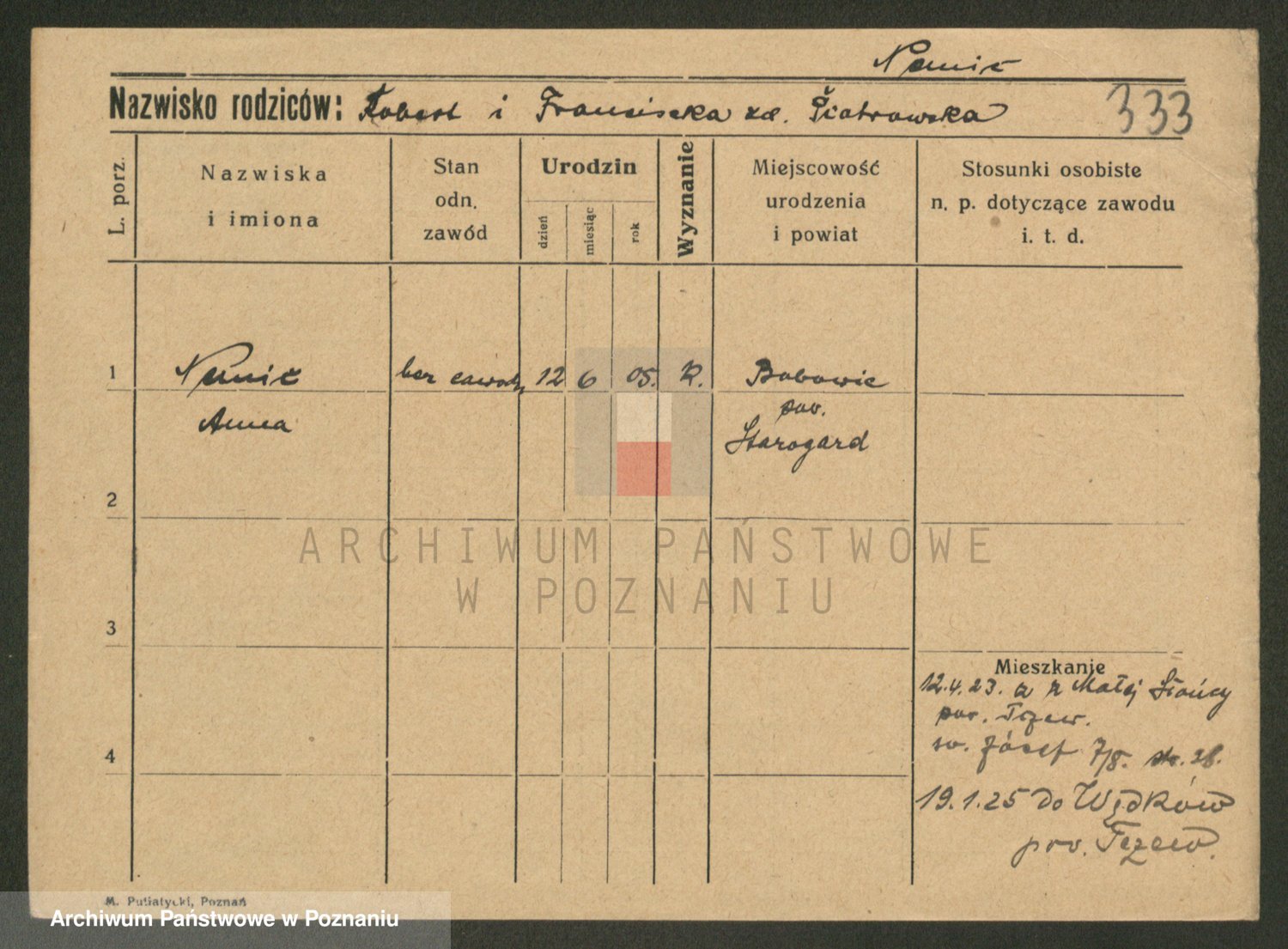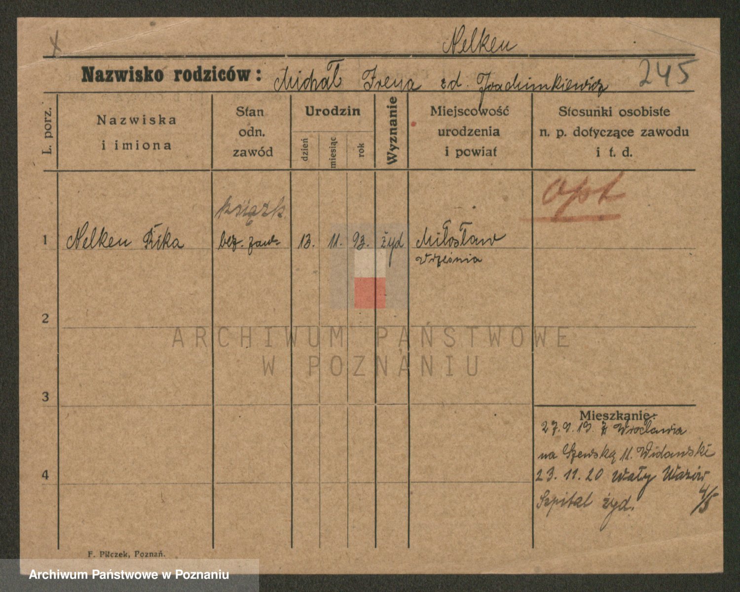 Podgląd karty osobowej dostępny jest po kliknięciu na nazwisko lub ikonkę karty. Można dokonywać powiększenia (ikony na górze) lub przechodzić między kolejnymi skanami (strzałki po bokach).