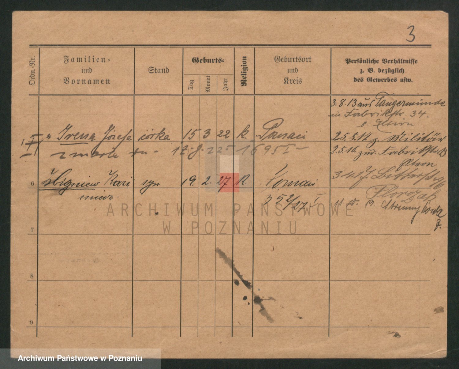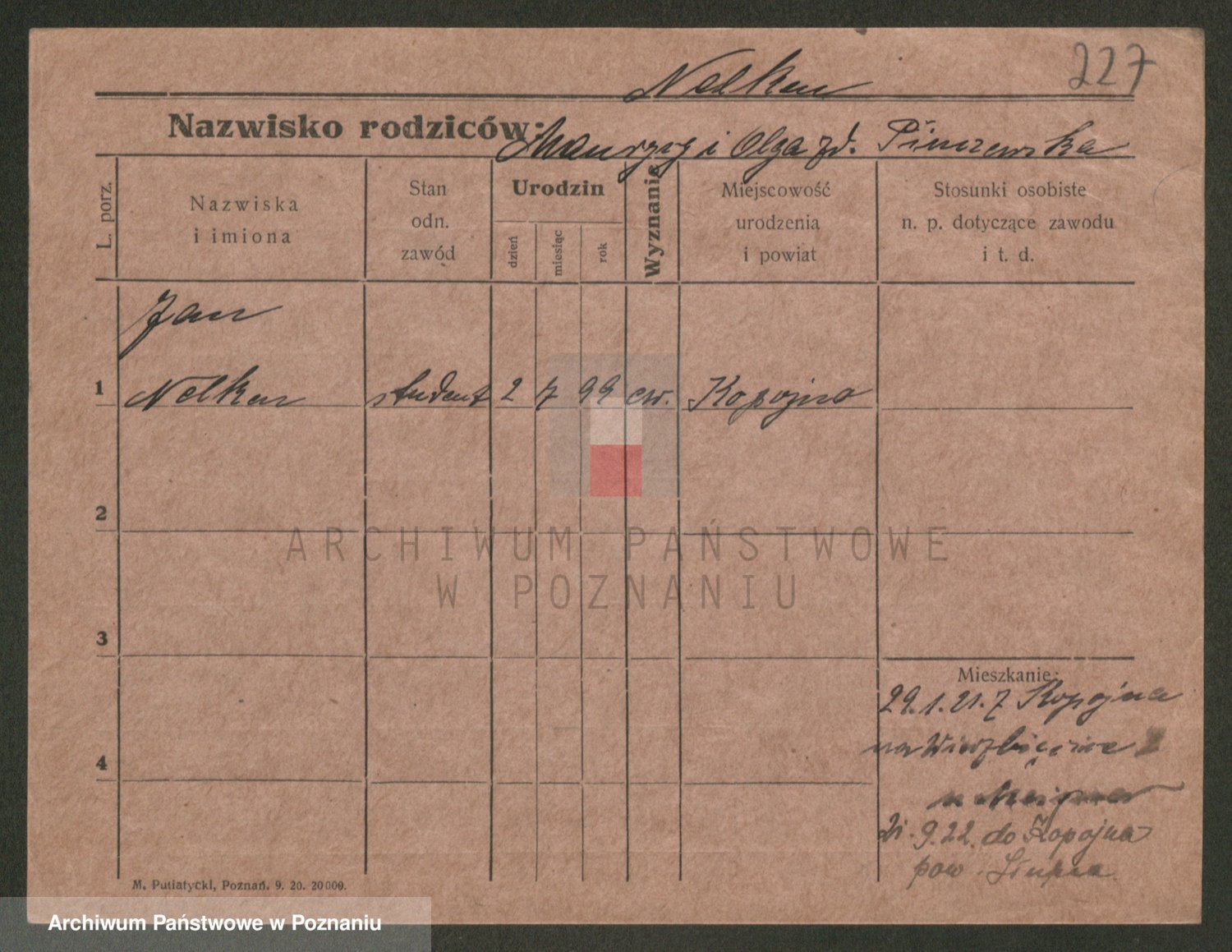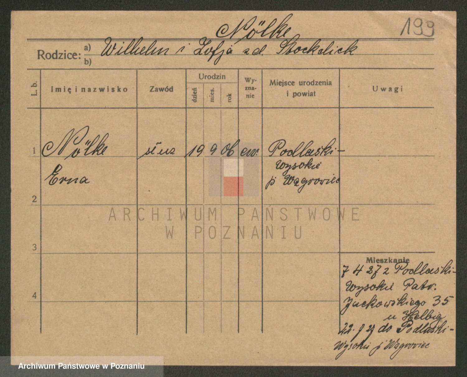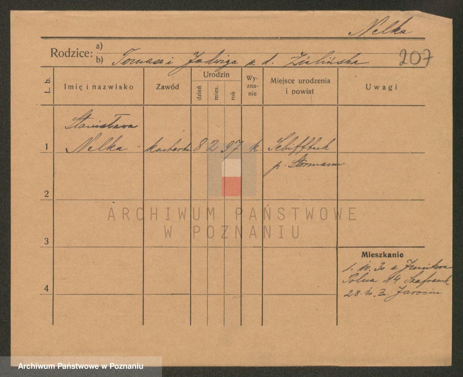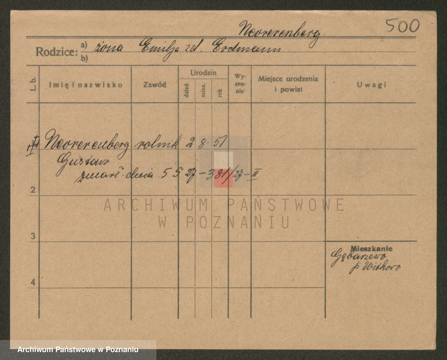 Podgląd karty osobowej dostępny jest po kliknięciu na nazwisko lub ikonkę karty. Można dokonywać powiększenia (ikony na górze) lub przechodzić między kolejnymi skanami (strzałki po bokach).