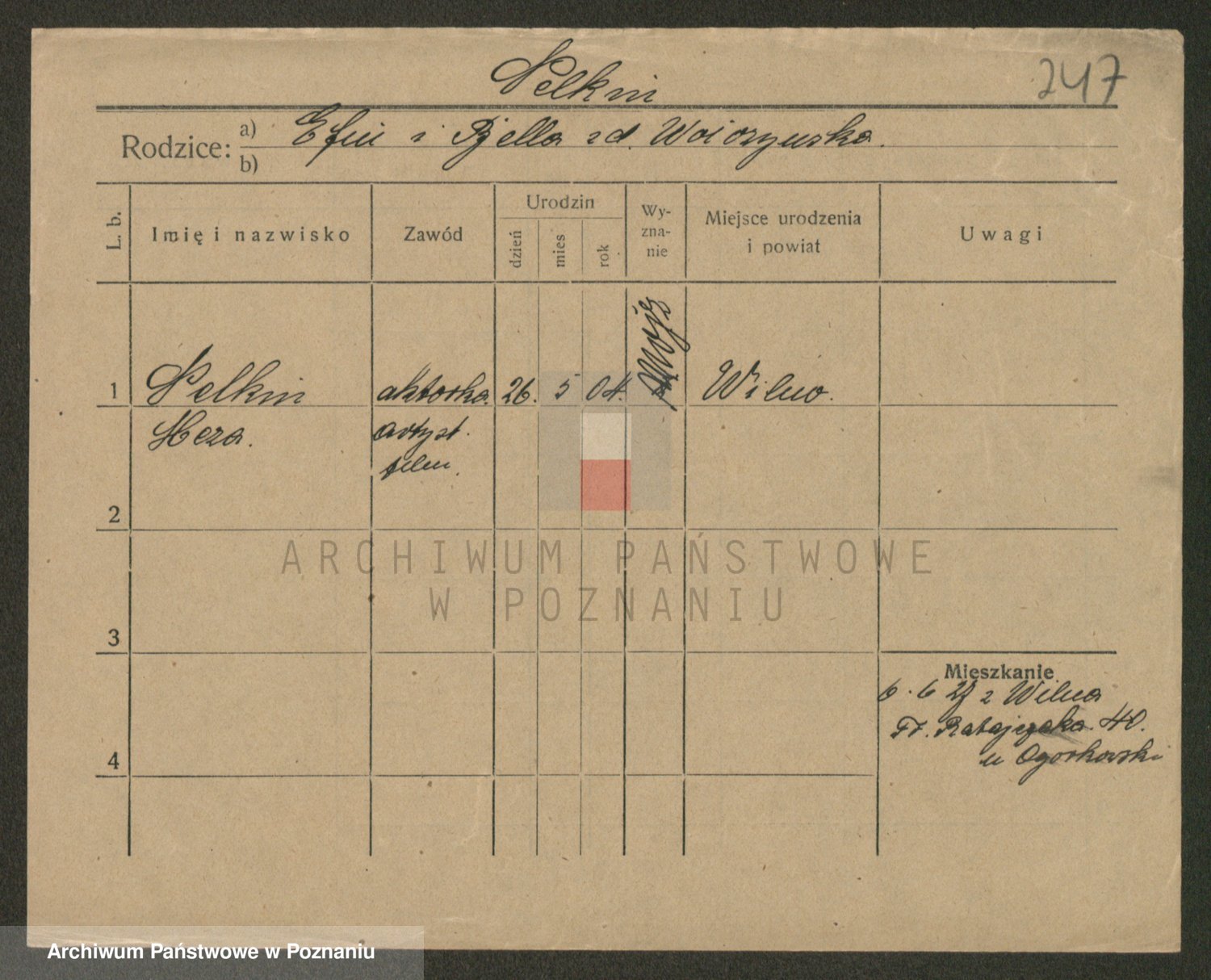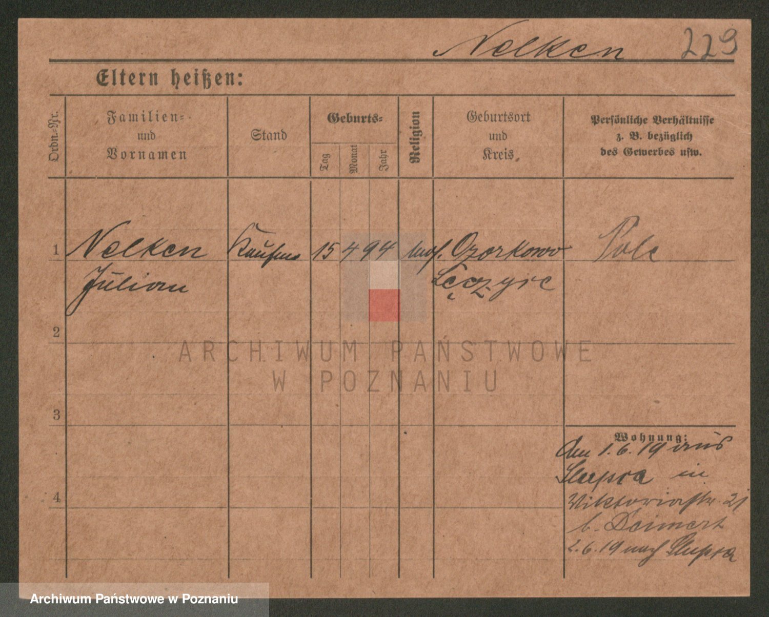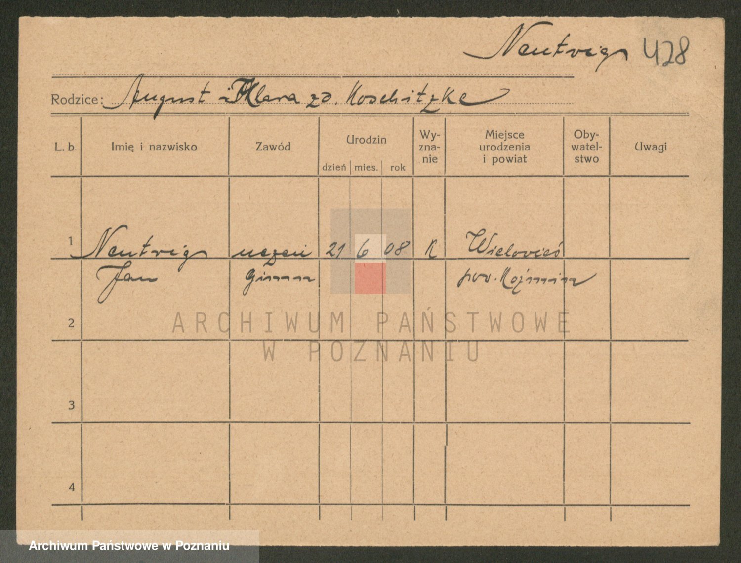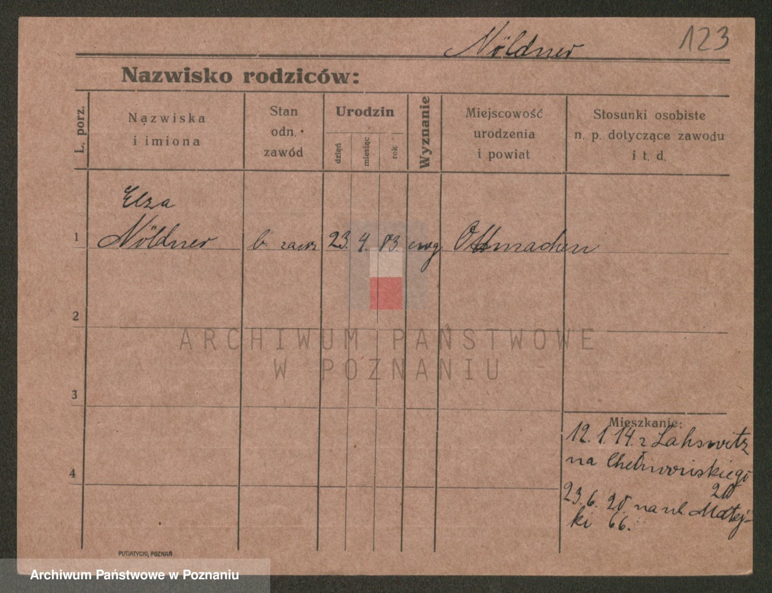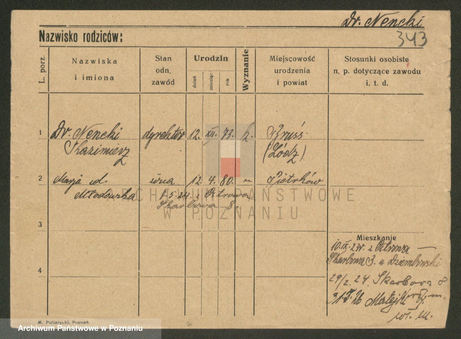 Podgląd karty osobowej dostępny jest po kliknięciu na nazwisko lub ikonkę karty. Można dokonywać powiększenia (ikony na górze) lub przechodzić między kolejnymi skanami (strzałki po bokach).