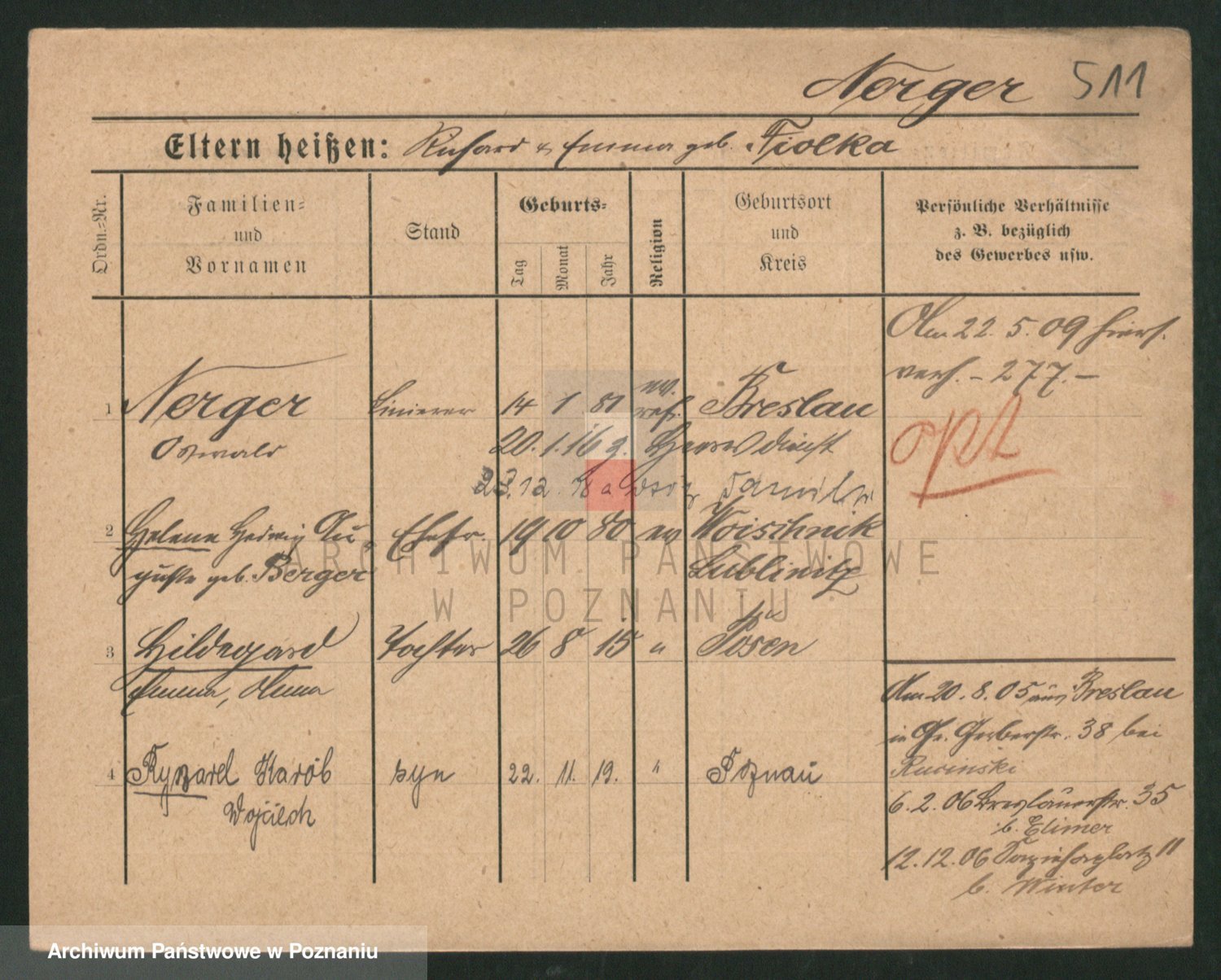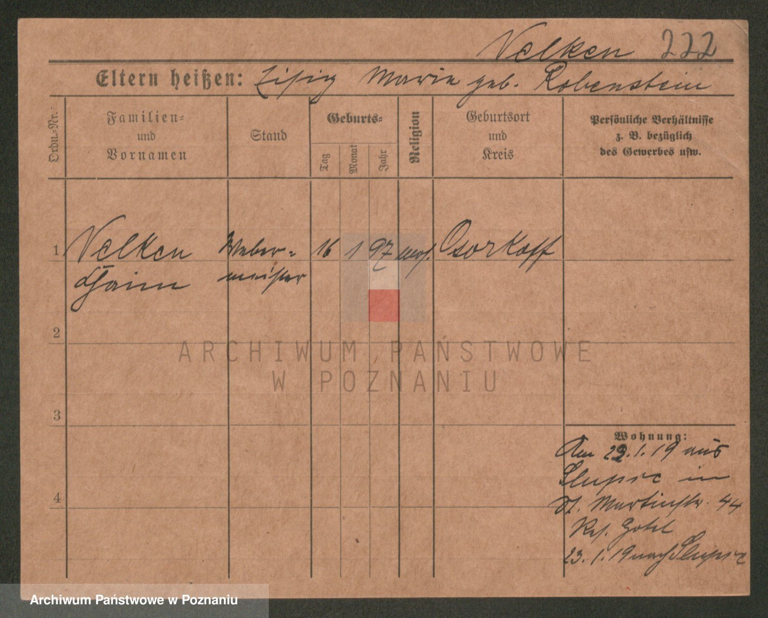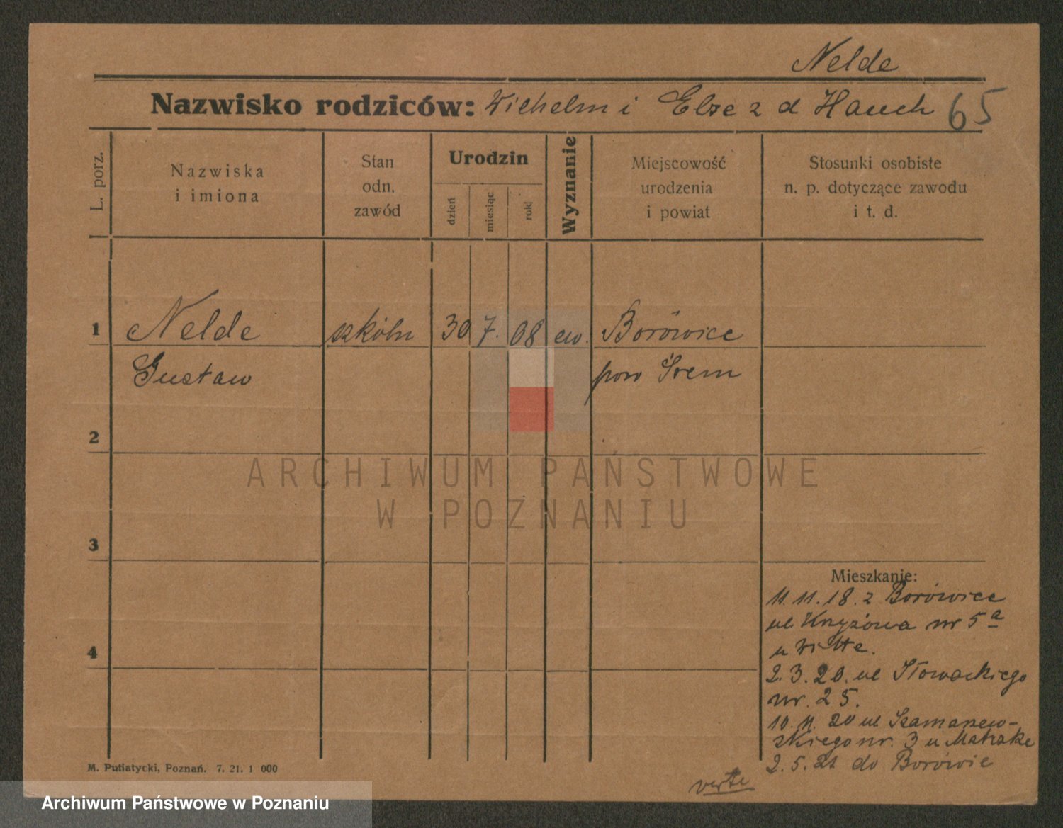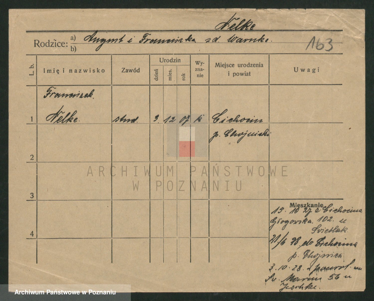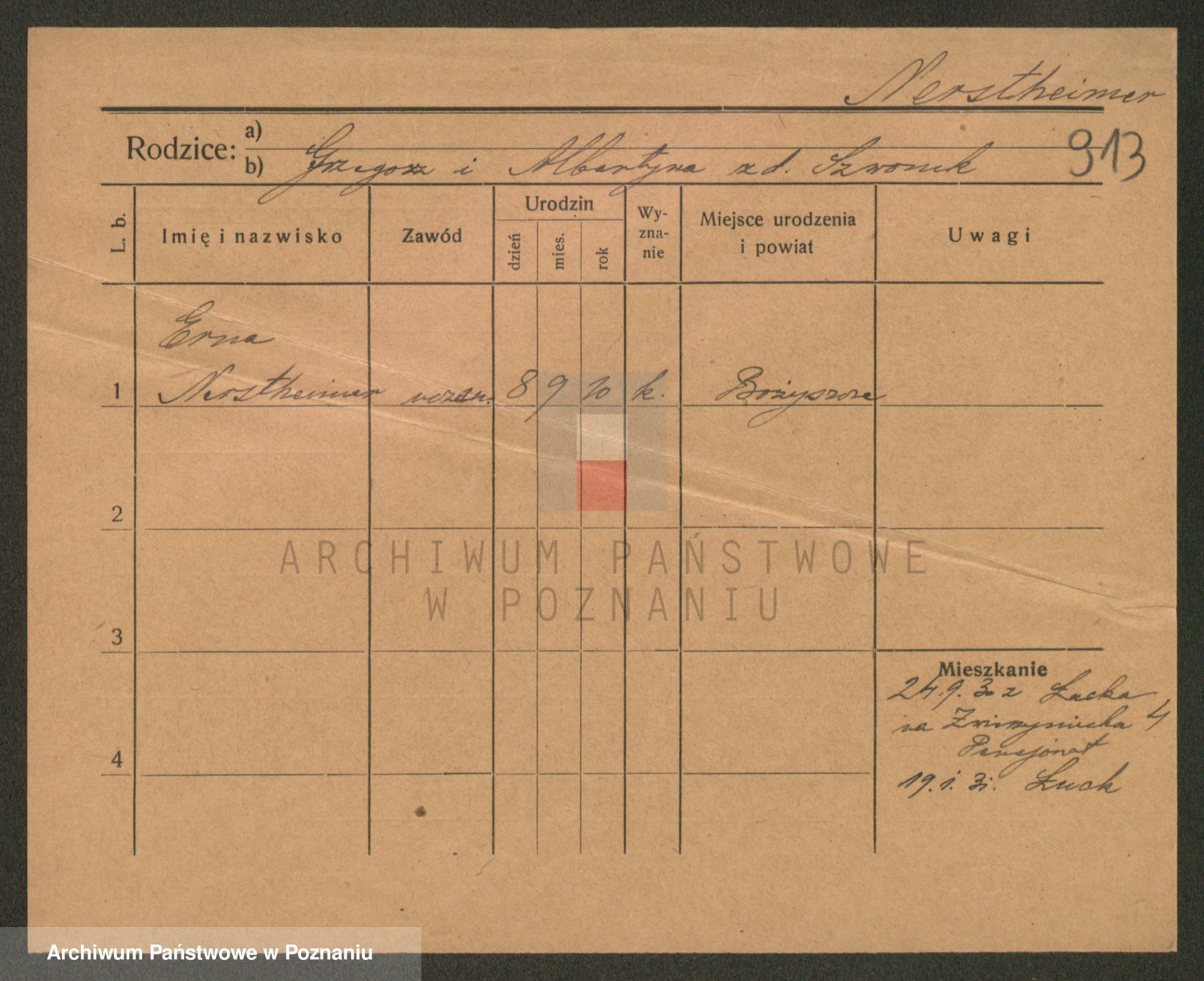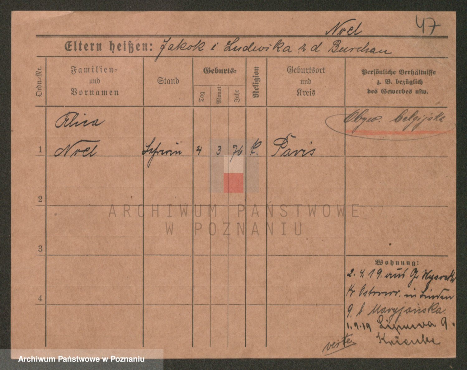 Podgląd karty osobowej dostępny jest po kliknięciu na nazwisko lub ikonkę karty. Można dokonywać powiększenia (ikony na górze) lub przechodzić między kolejnymi skanami (strzałki po bokach).