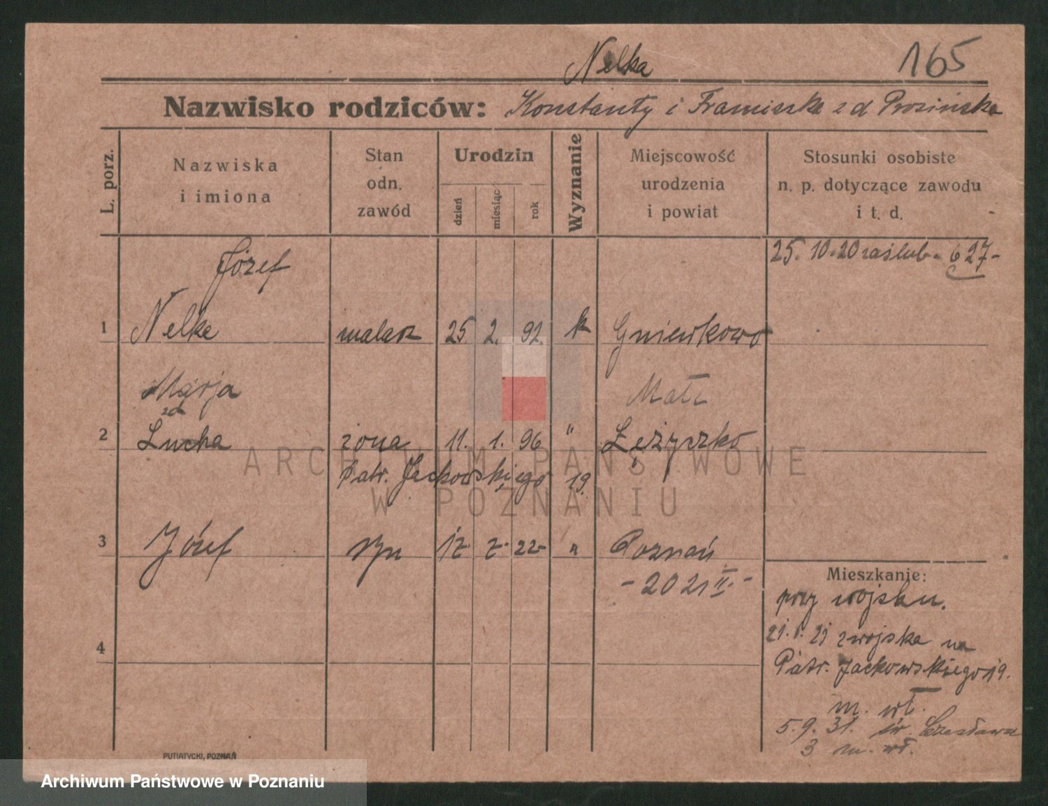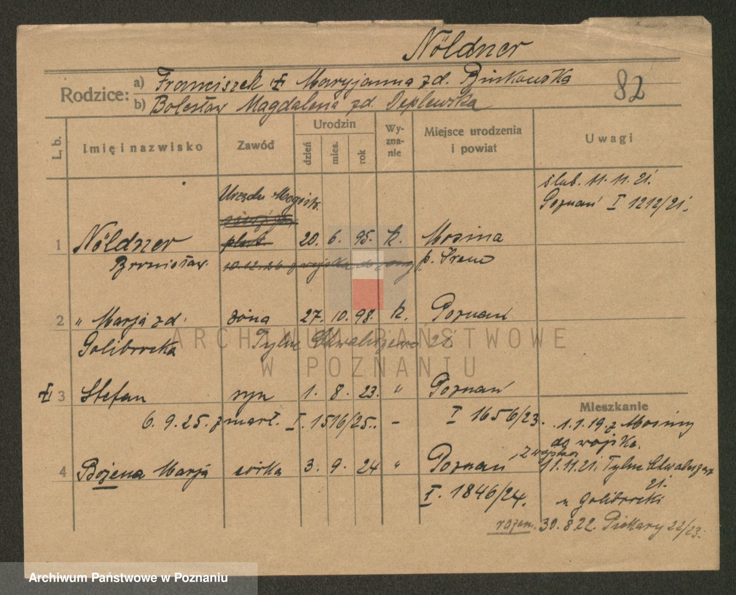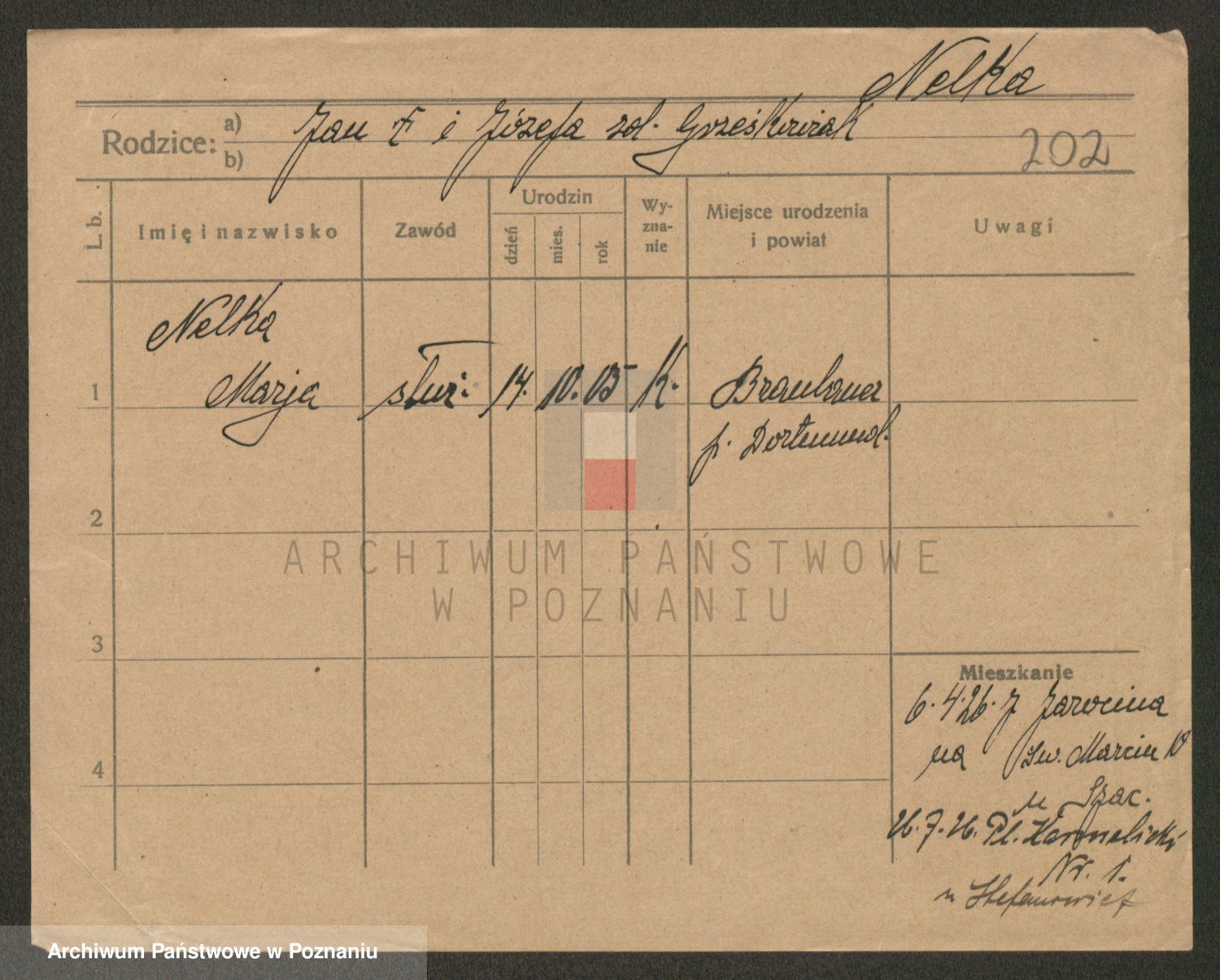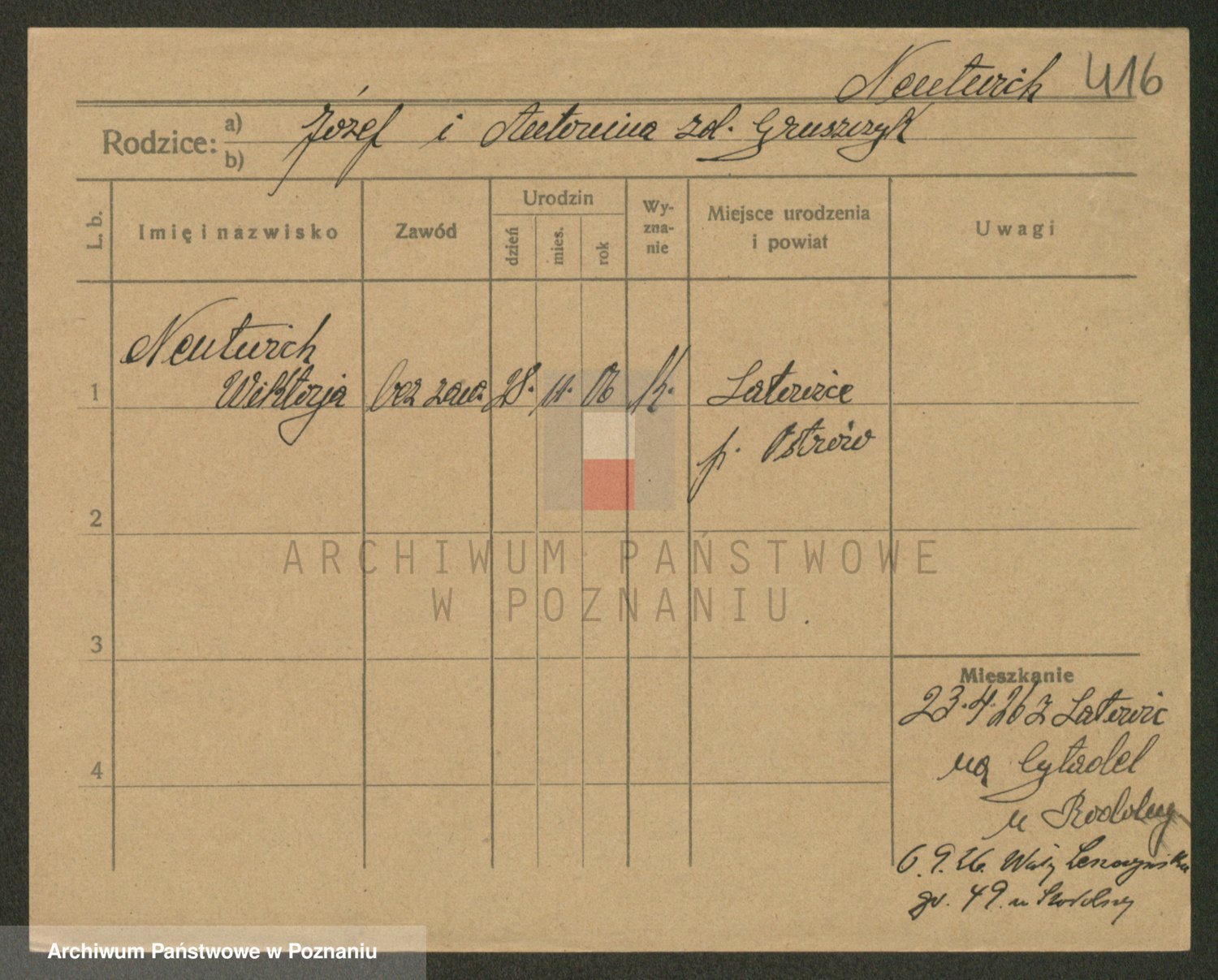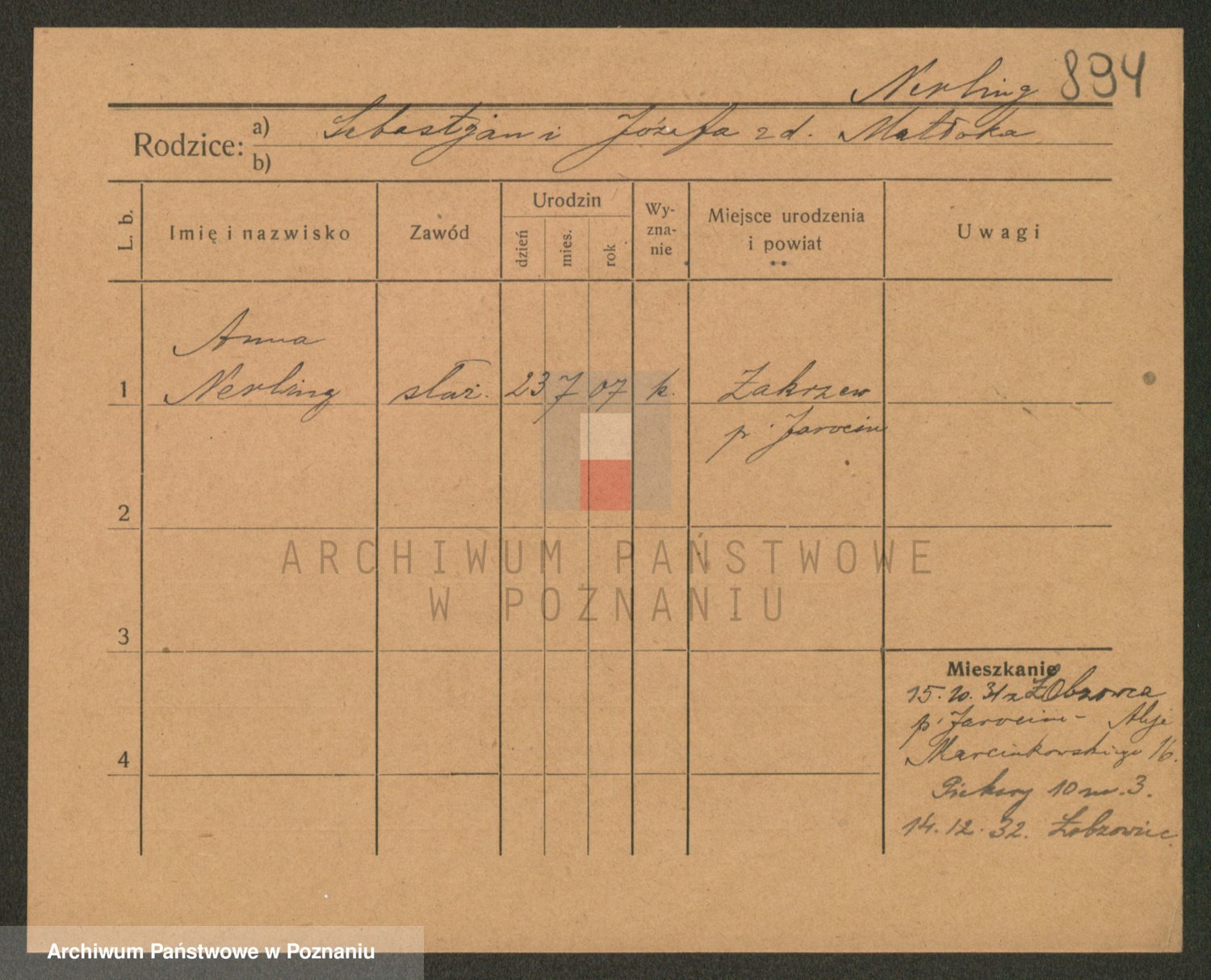 Podgląd karty osobowej dostępny jest po kliknięciu na nazwisko lub ikonkę karty. Można dokonywać powiększenia (ikony na górze) lub przechodzić między kolejnymi skanami (strzałki po bokach).