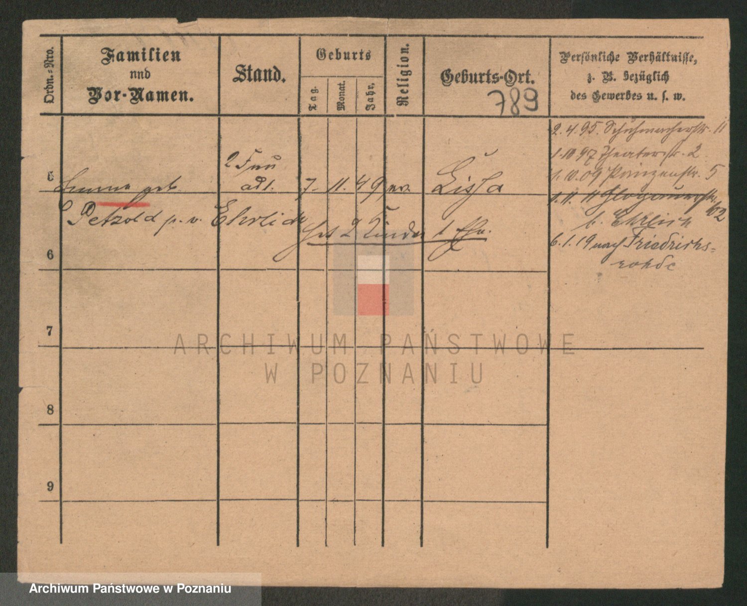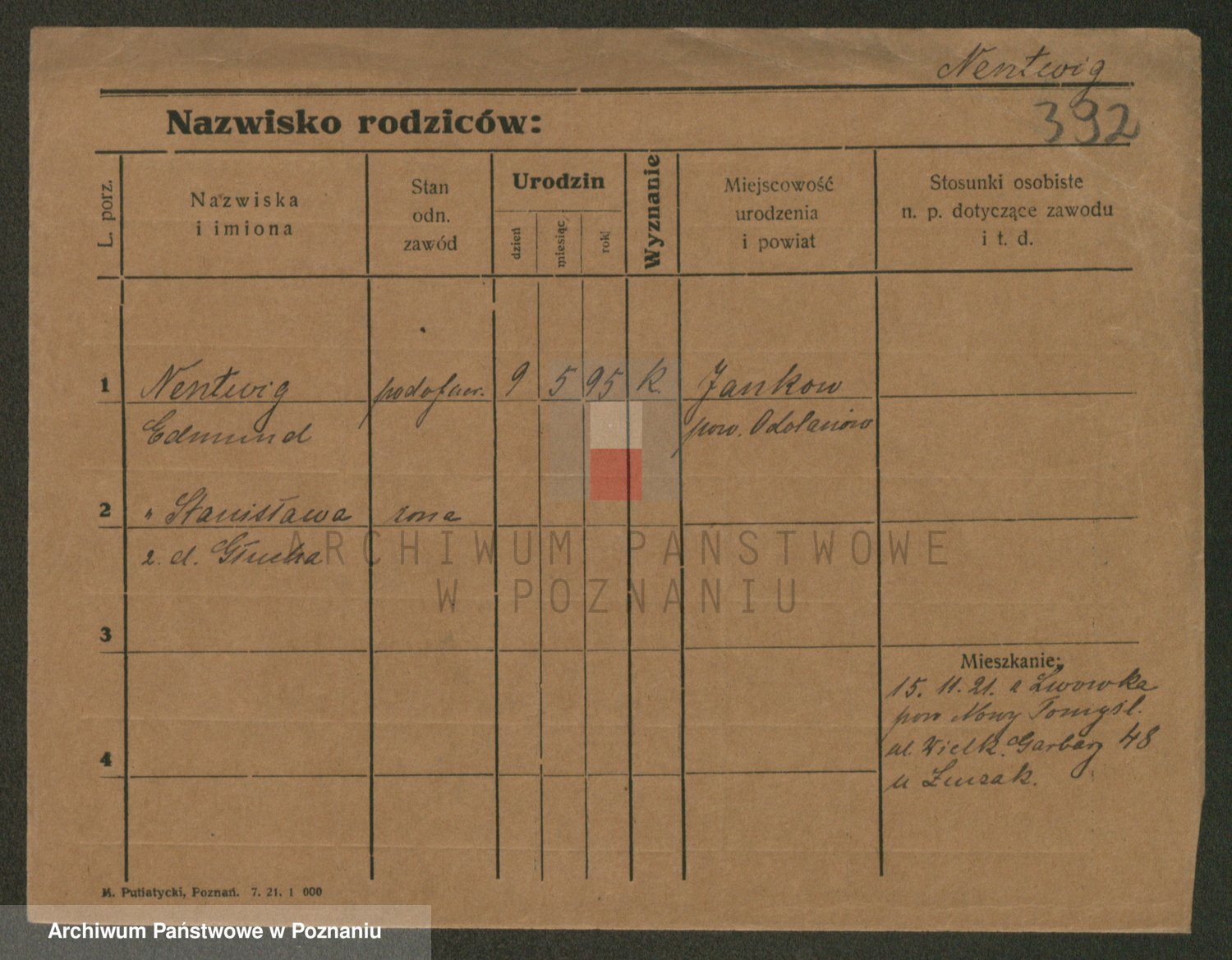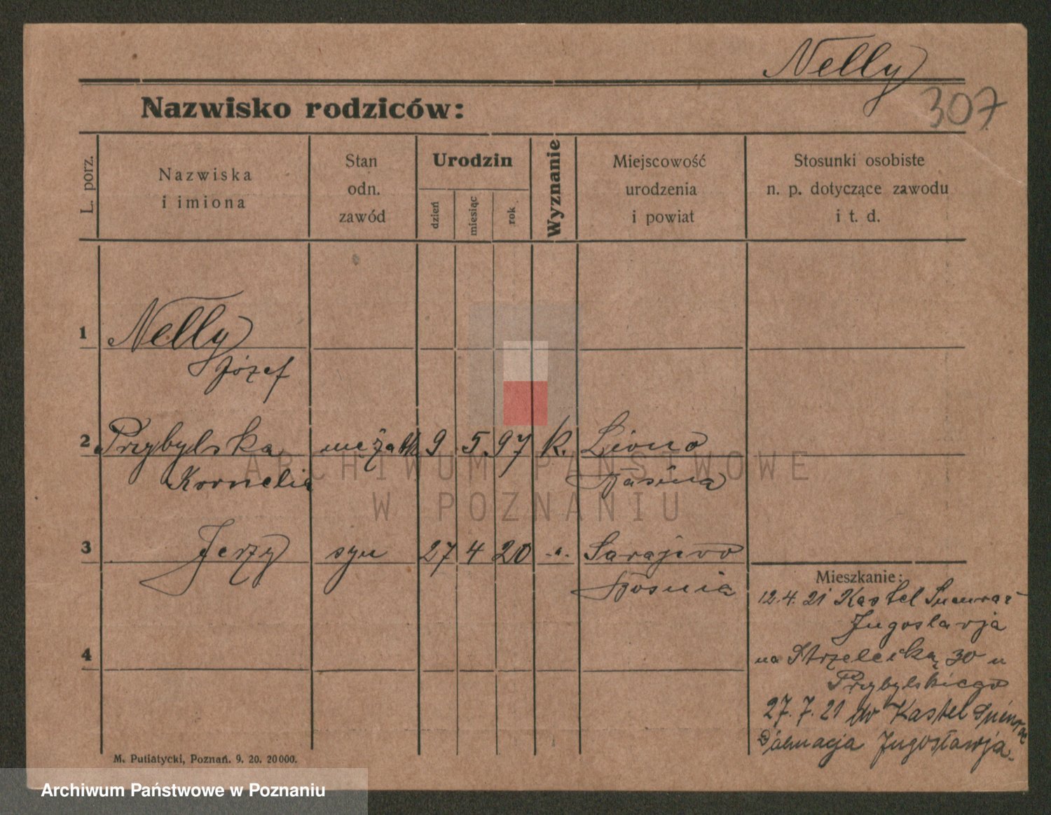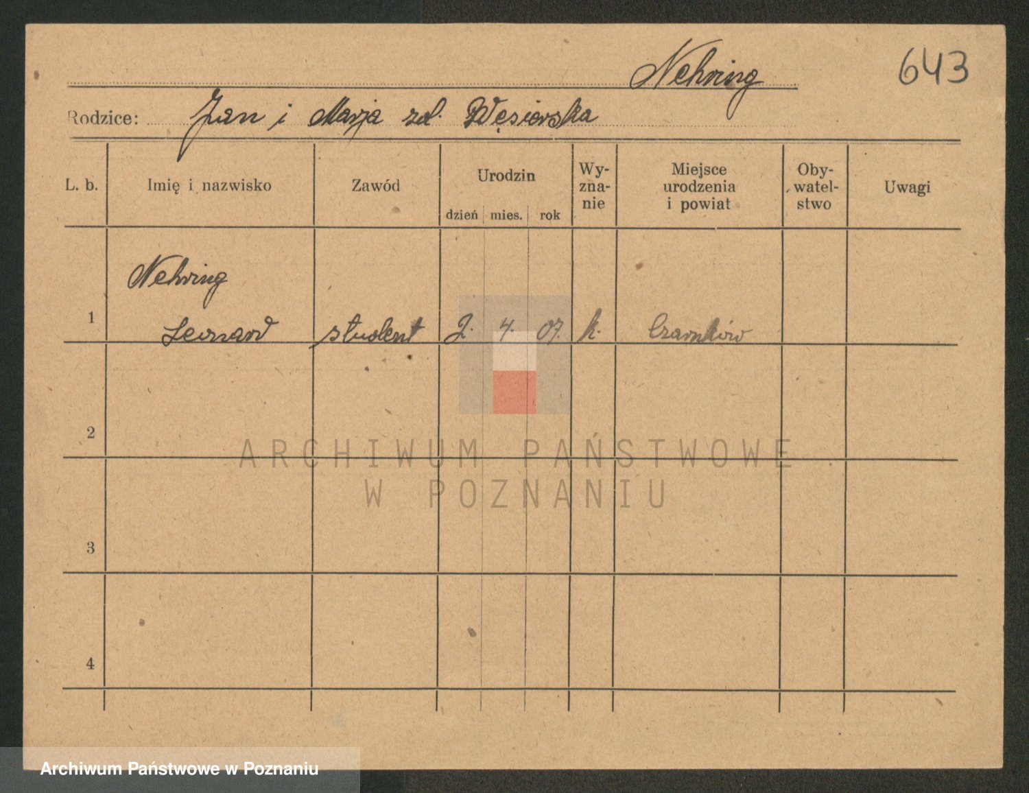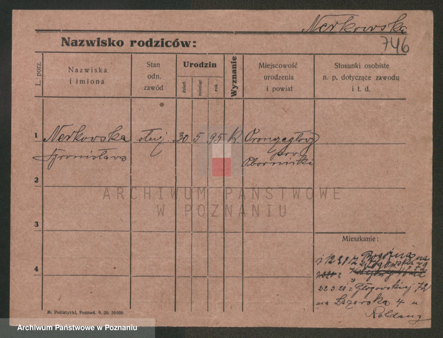 Podgląd karty osobowej dostępny jest po kliknięciu na nazwisko lub ikonkę karty. Można dokonywać powiększenia (ikony na górze) lub przechodzić między kolejnymi skanami (strzałki po bokach).