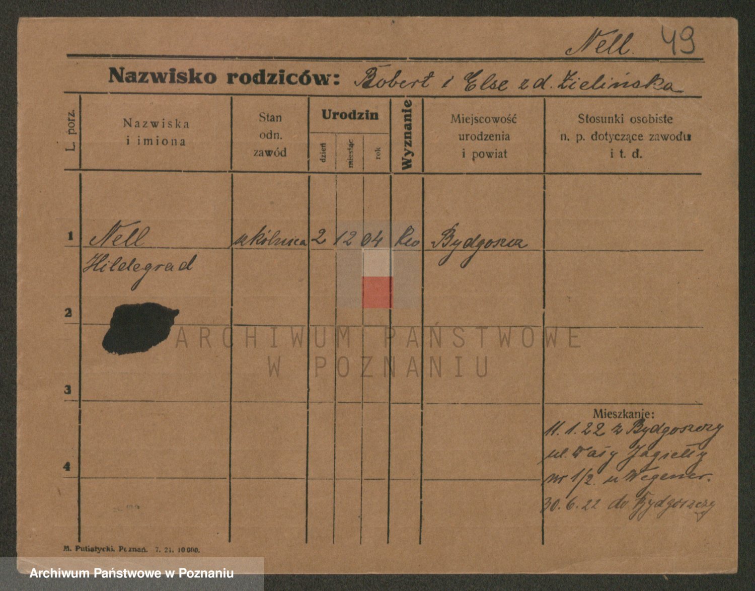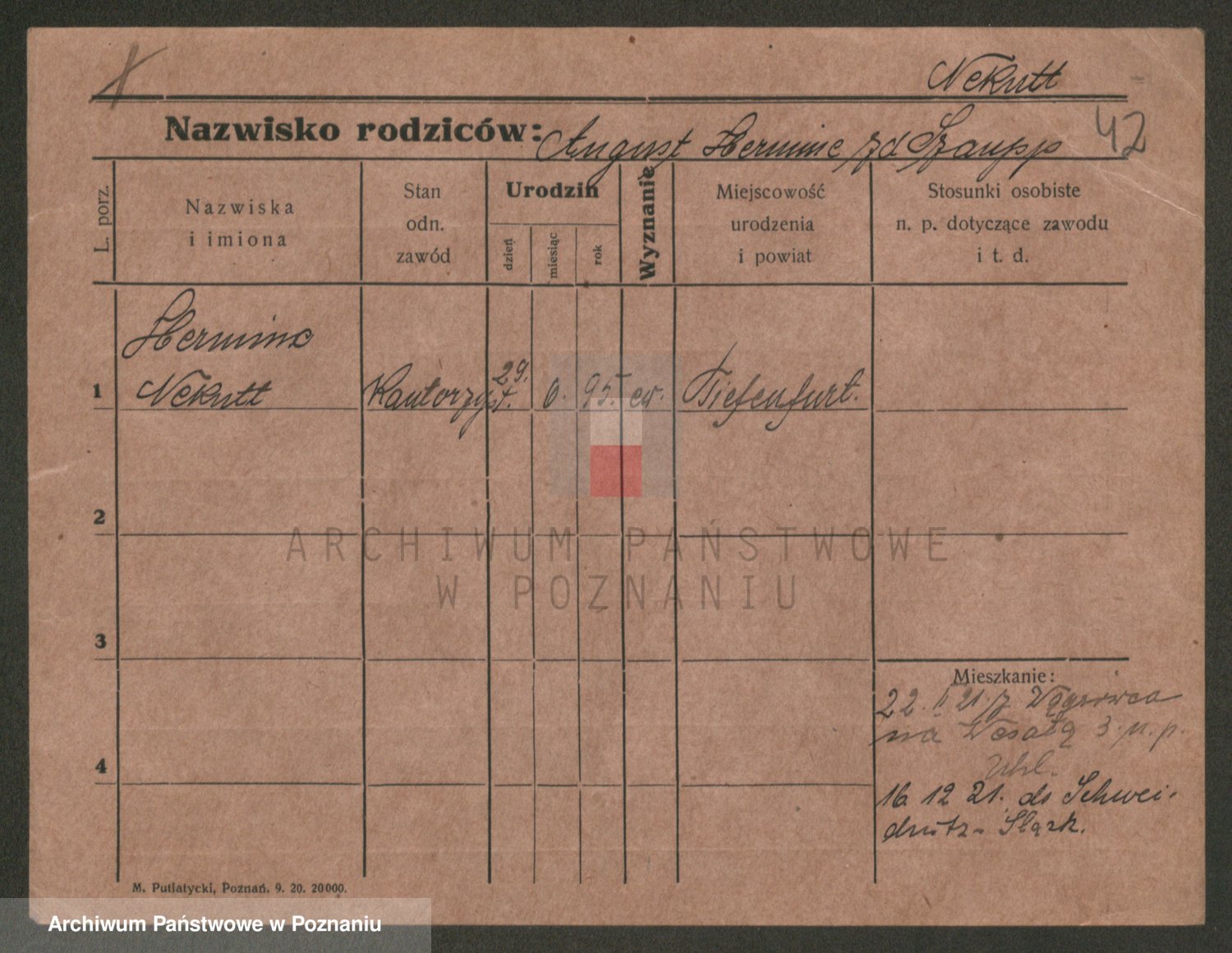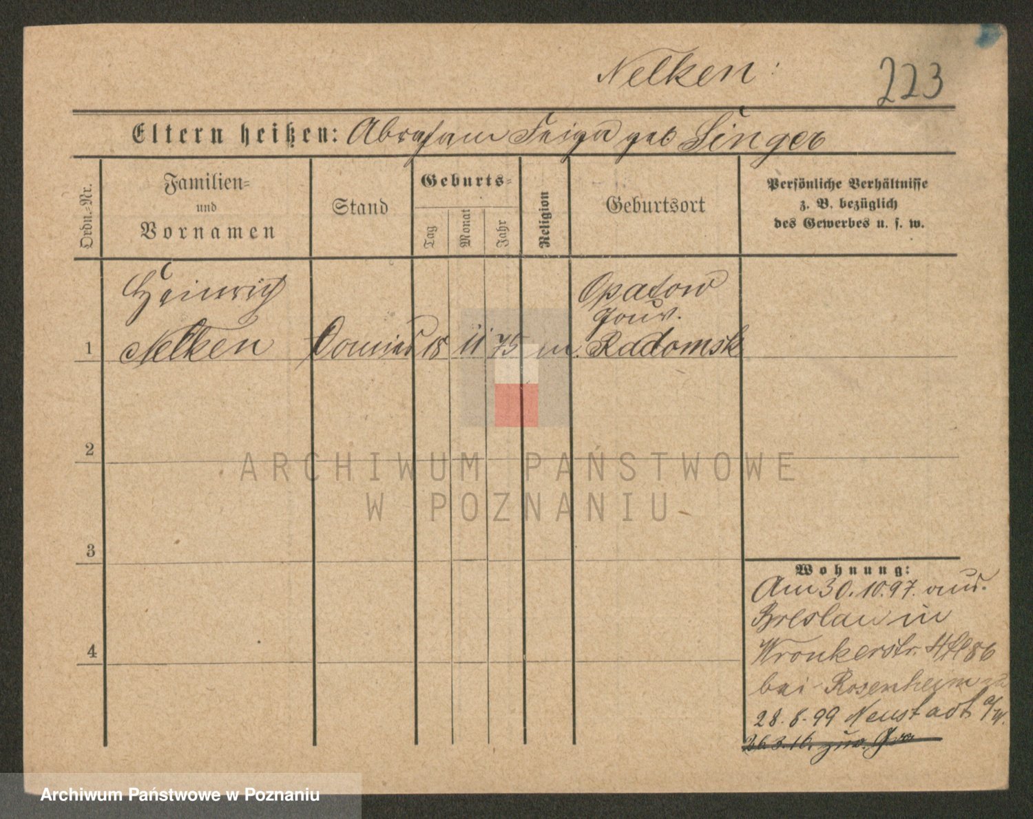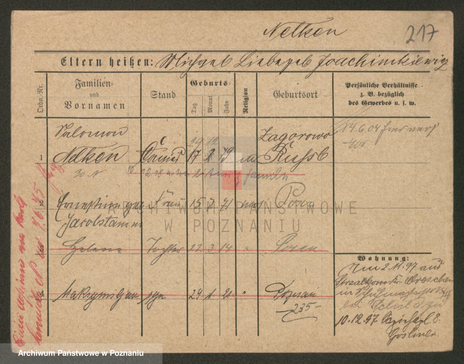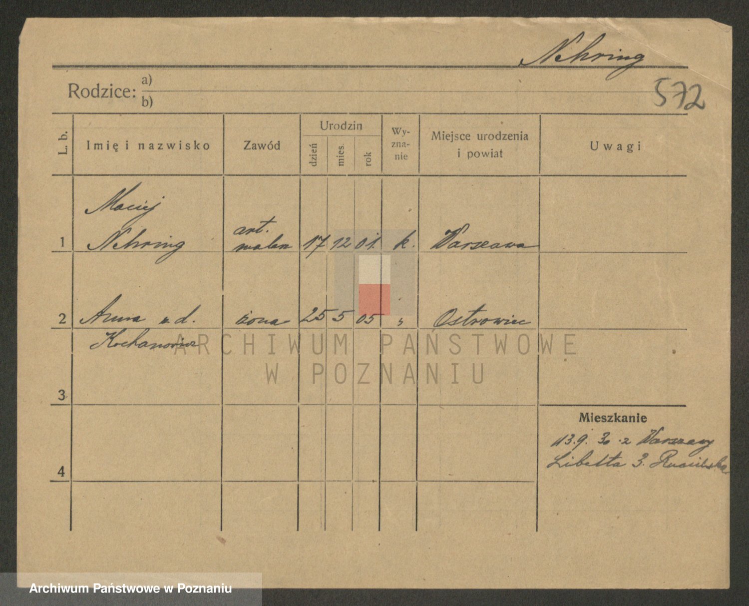 Podgląd karty osobowej dostępny jest po kliknięciu na nazwisko lub ikonkę karty. Można dokonywać powiększenia (ikony na górze) lub przechodzić między kolejnymi skanami (strzałki po bokach).
