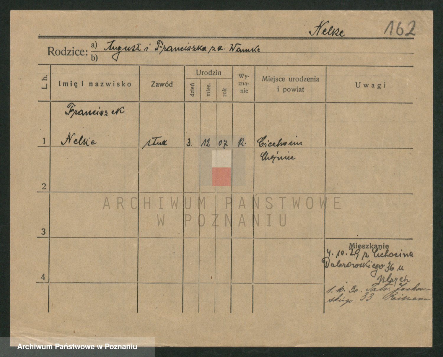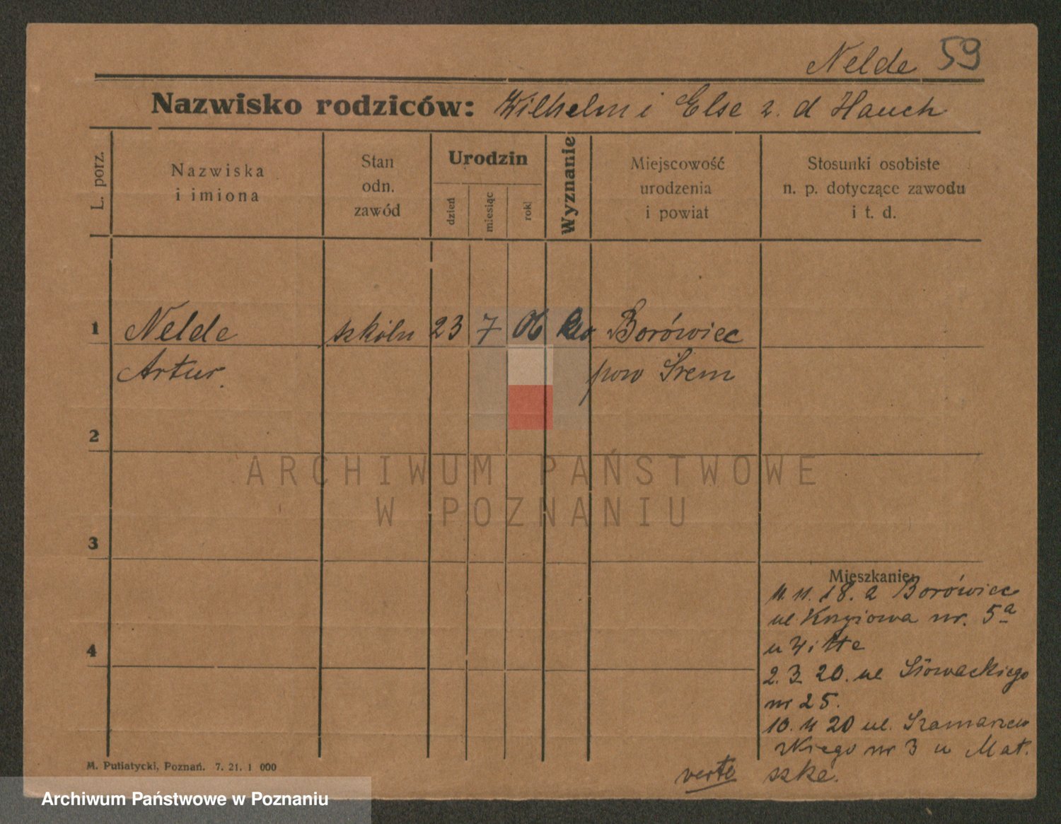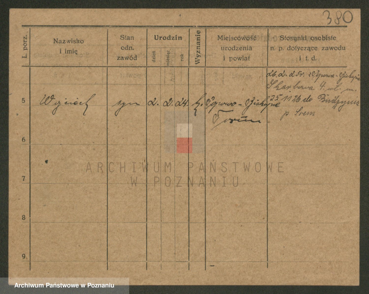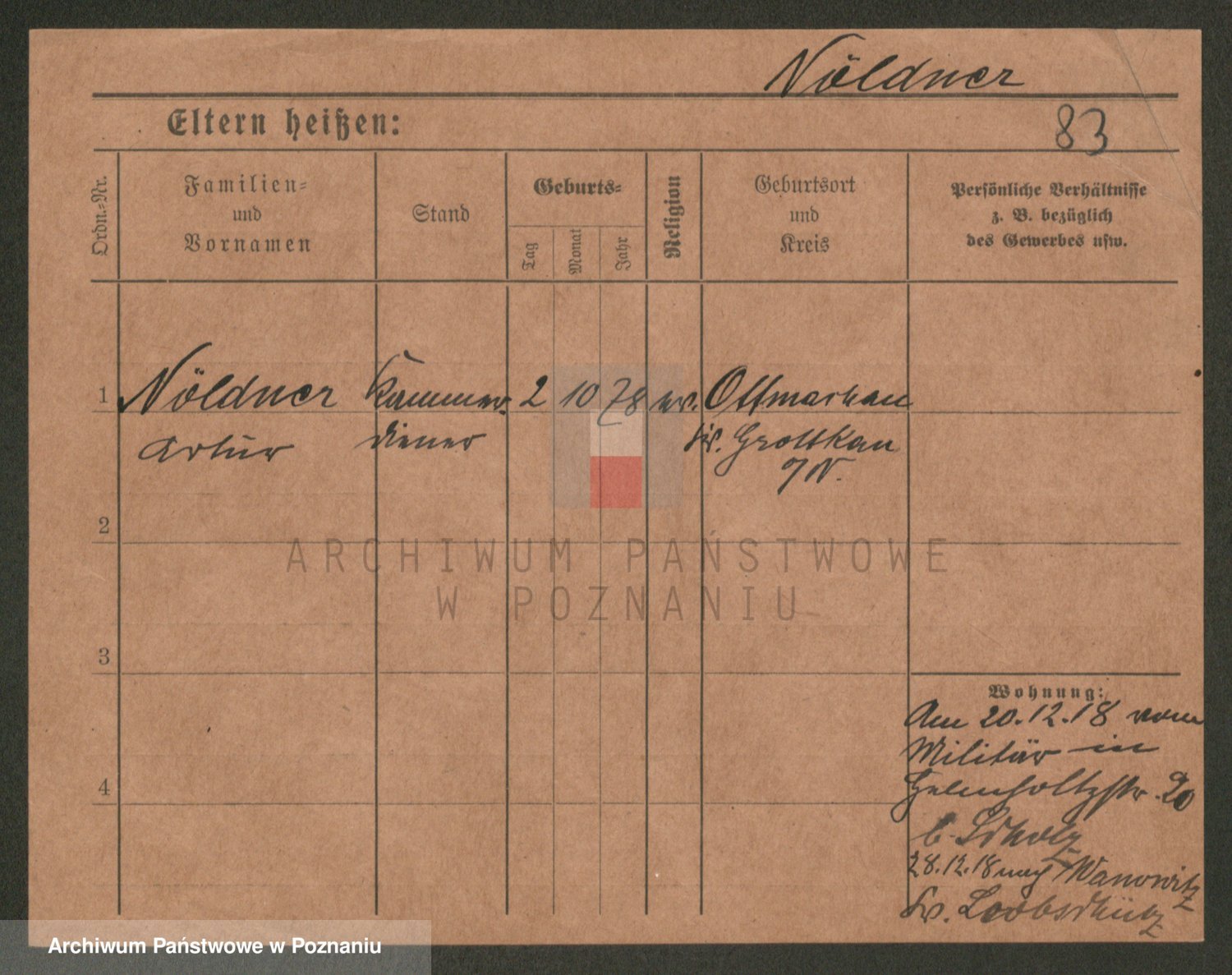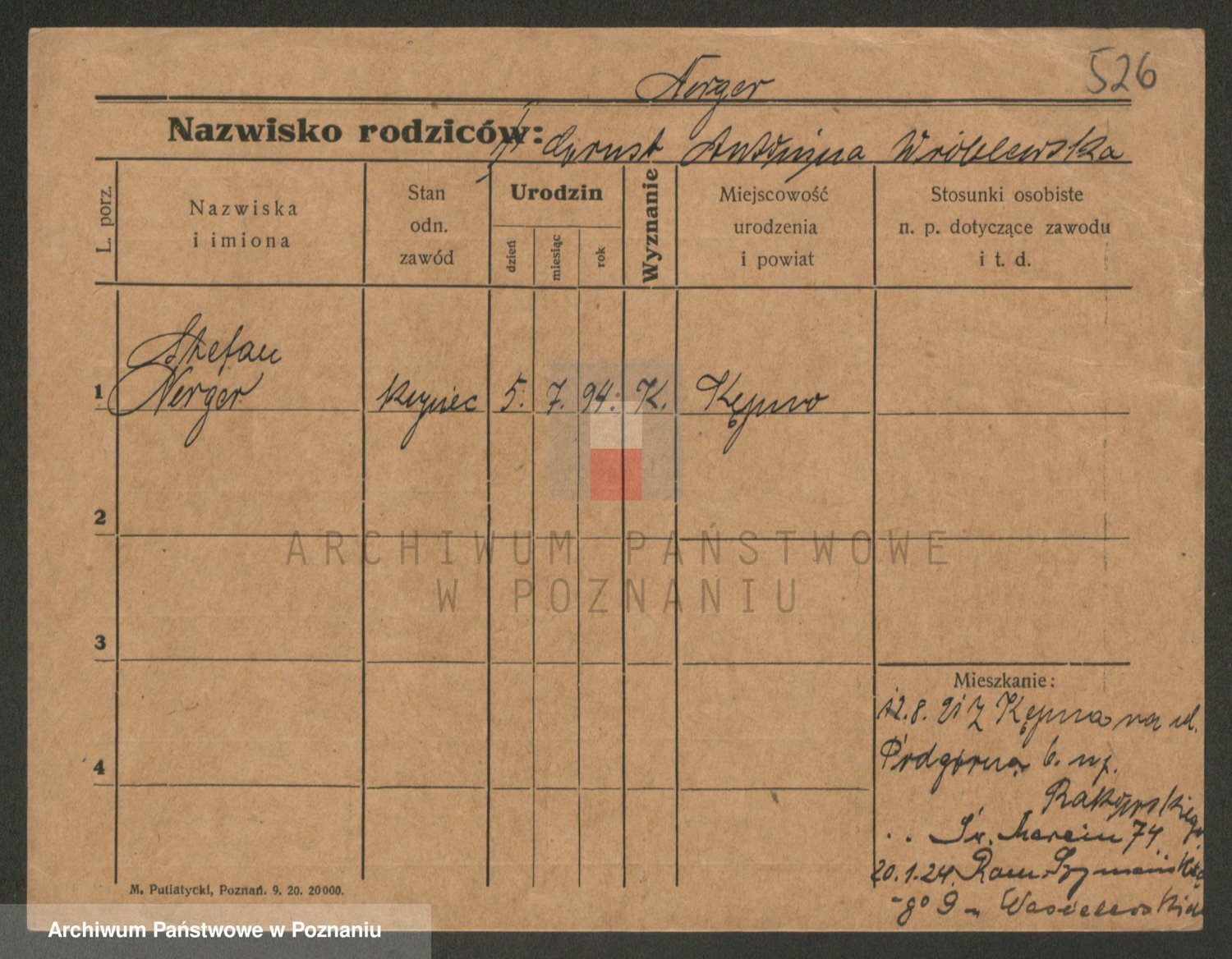 Podgląd karty osobowej dostępny jest po kliknięciu na nazwisko lub ikonkę karty. Można dokonywać powiększenia (ikony na górze) lub przechodzić między kolejnymi skanami (strzałki po bokach).