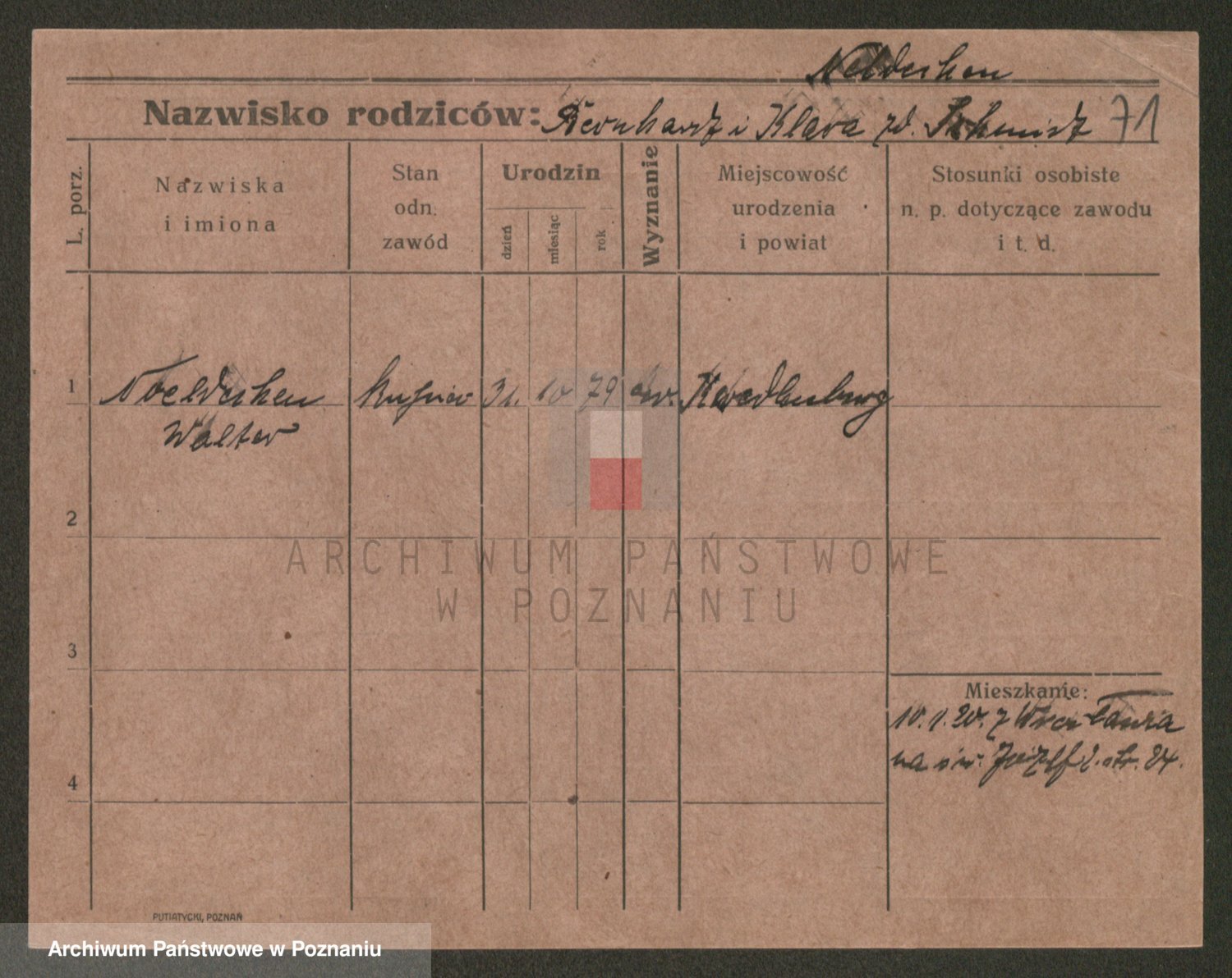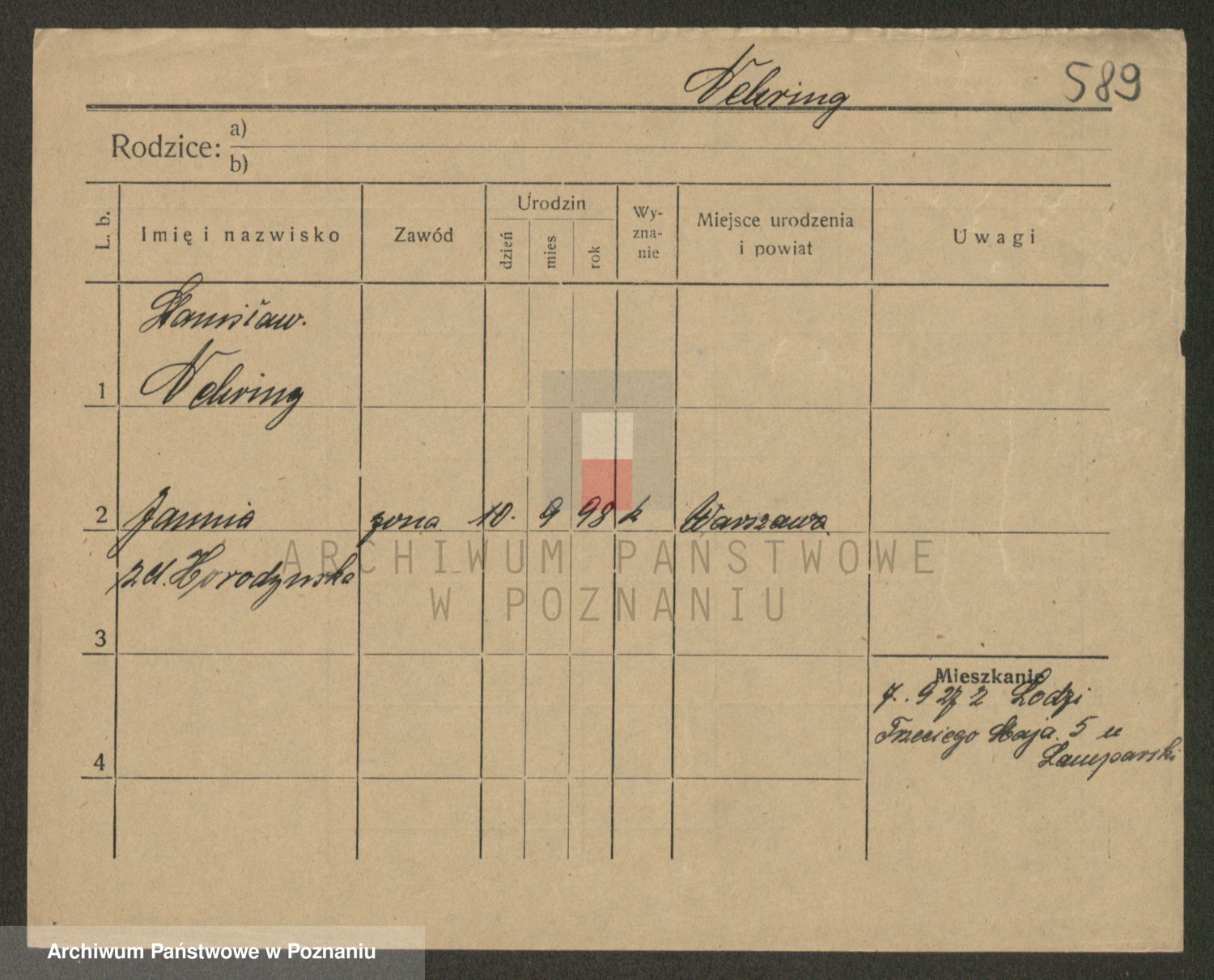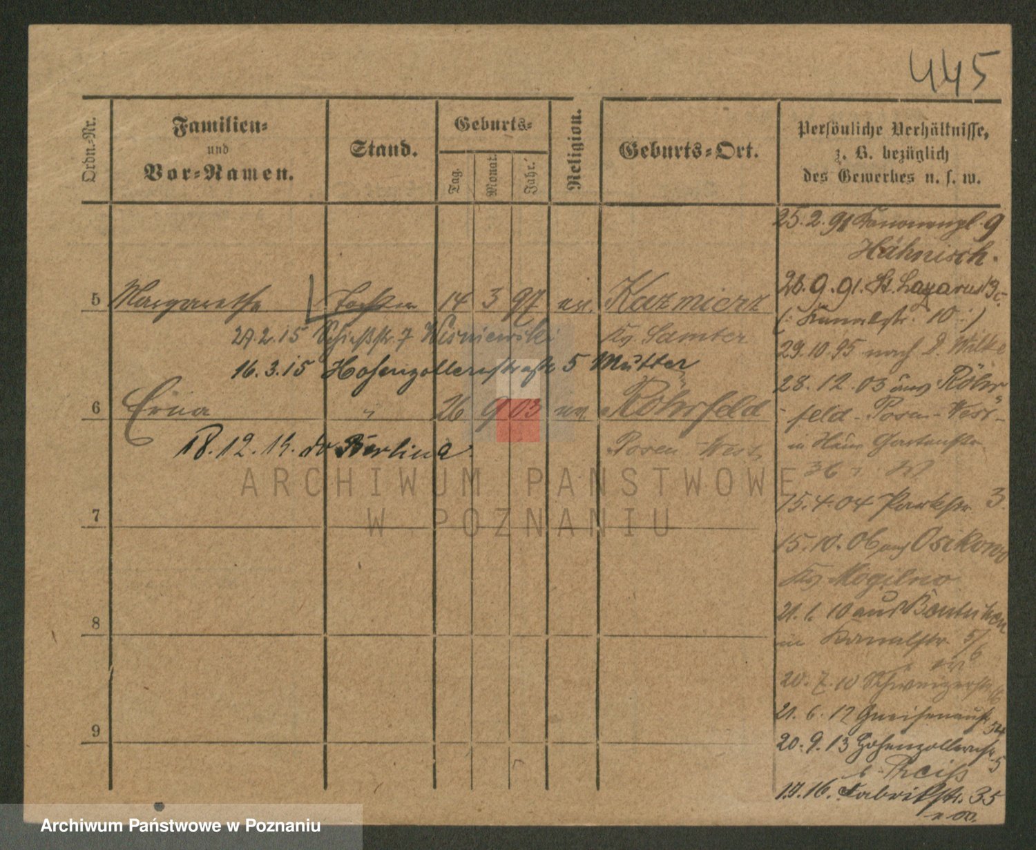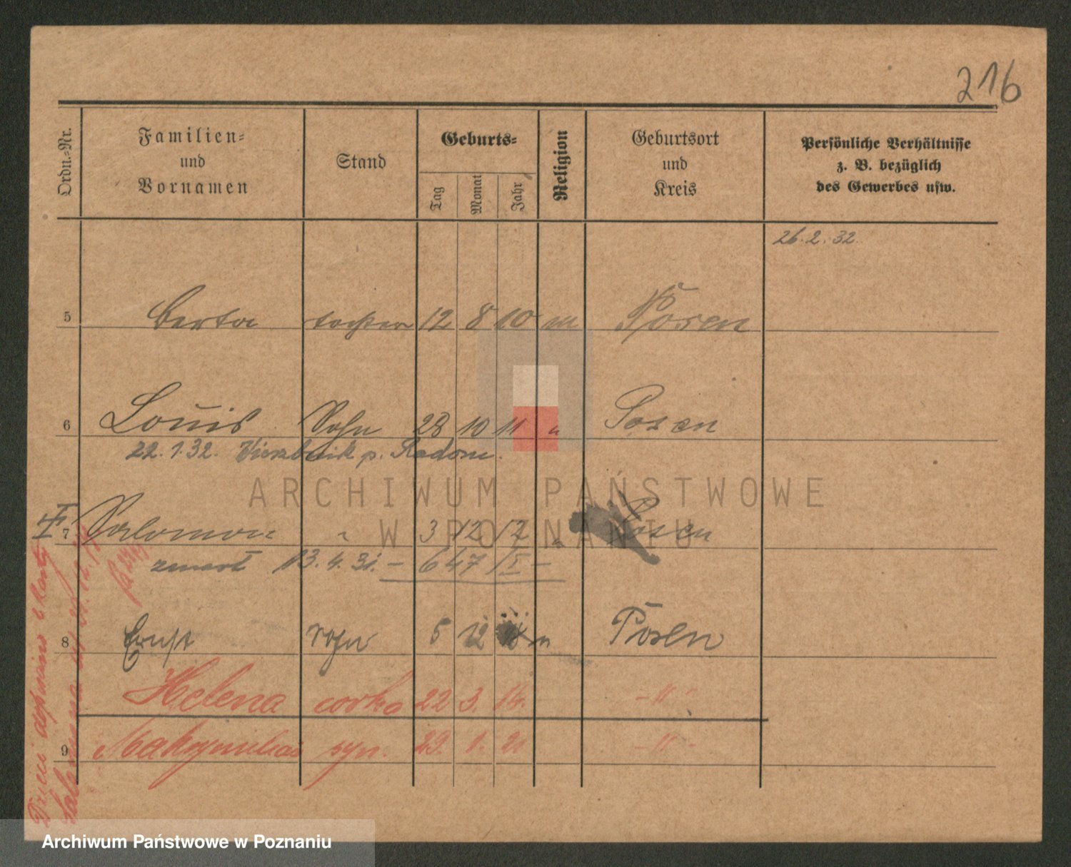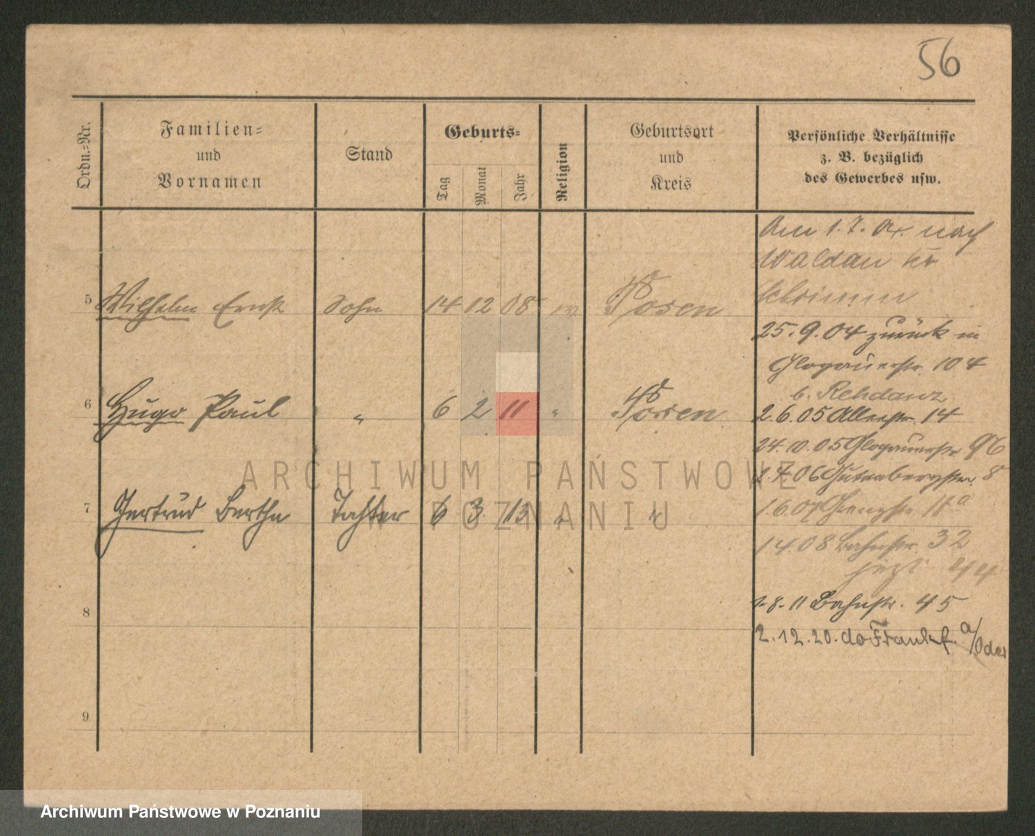 Podgląd karty osobowej dostępny jest po kliknięciu na nazwisko lub ikonkę karty. Można dokonywać powiększenia (ikony na górze) lub przechodzić między kolejnymi skanami (strzałki po bokach).