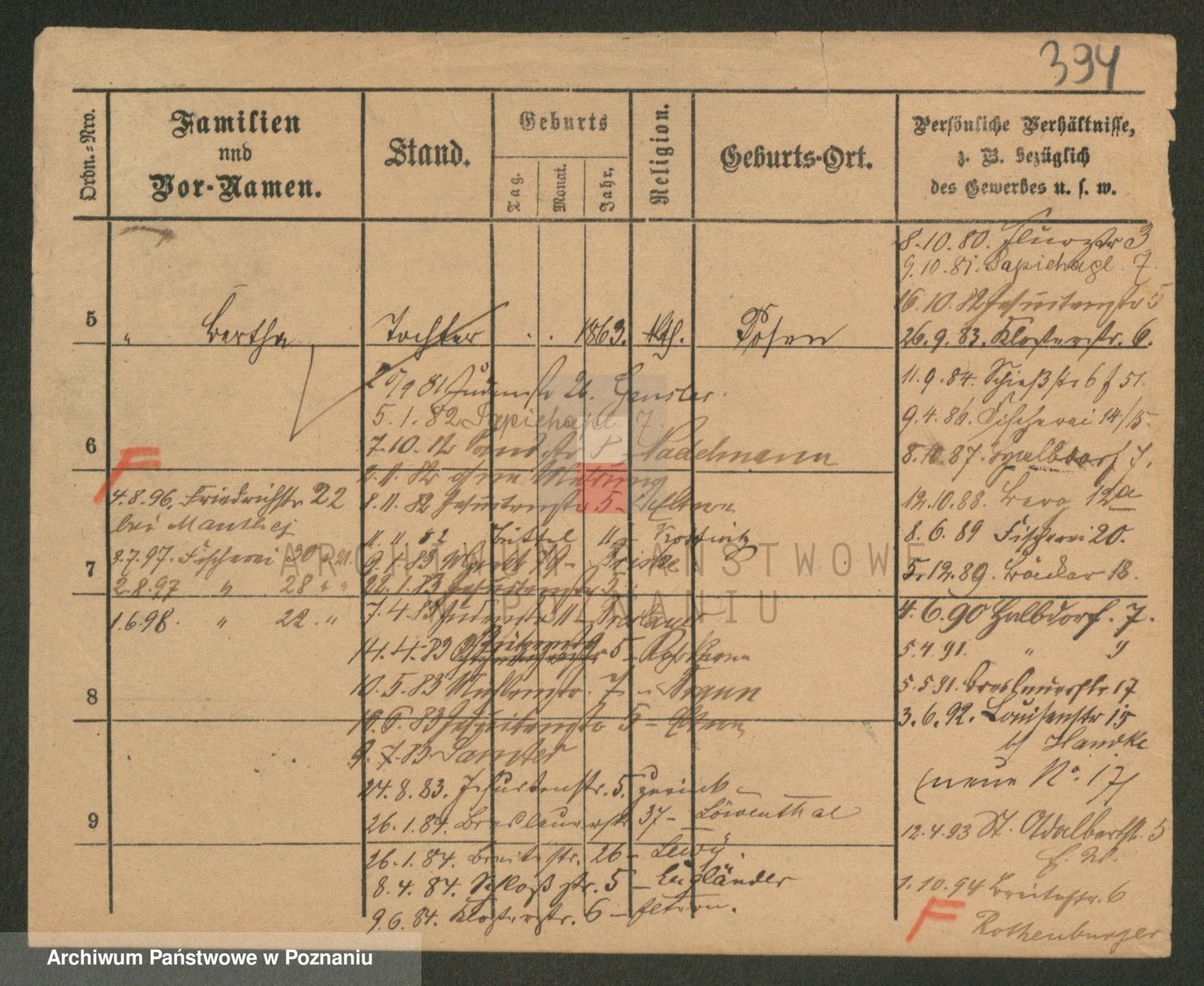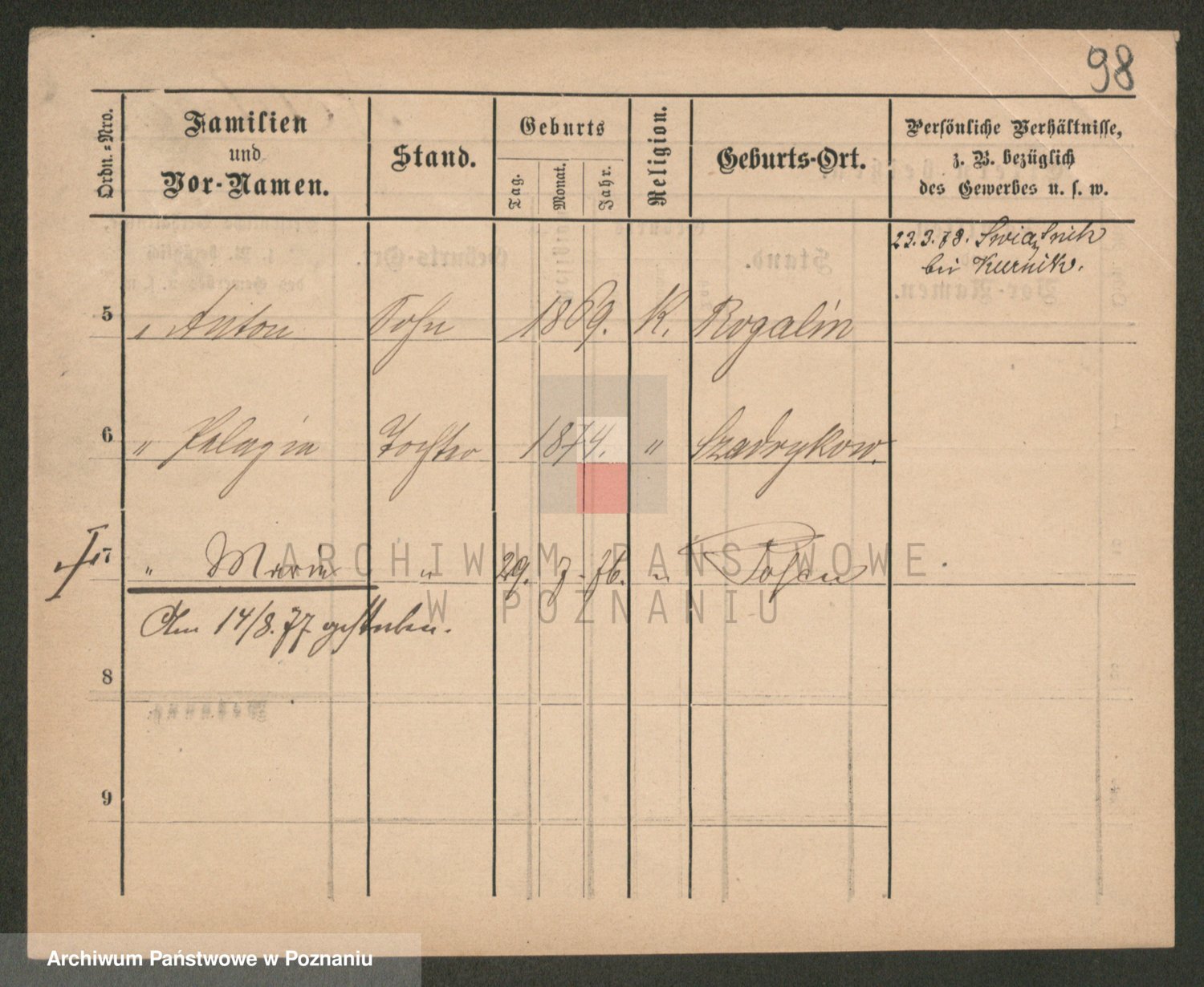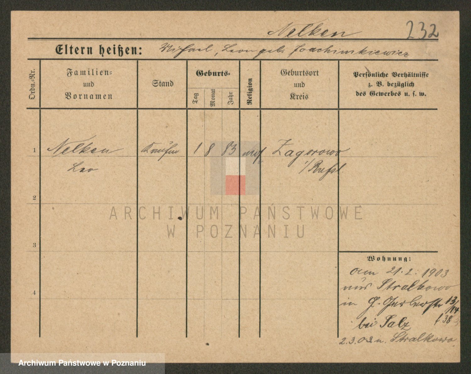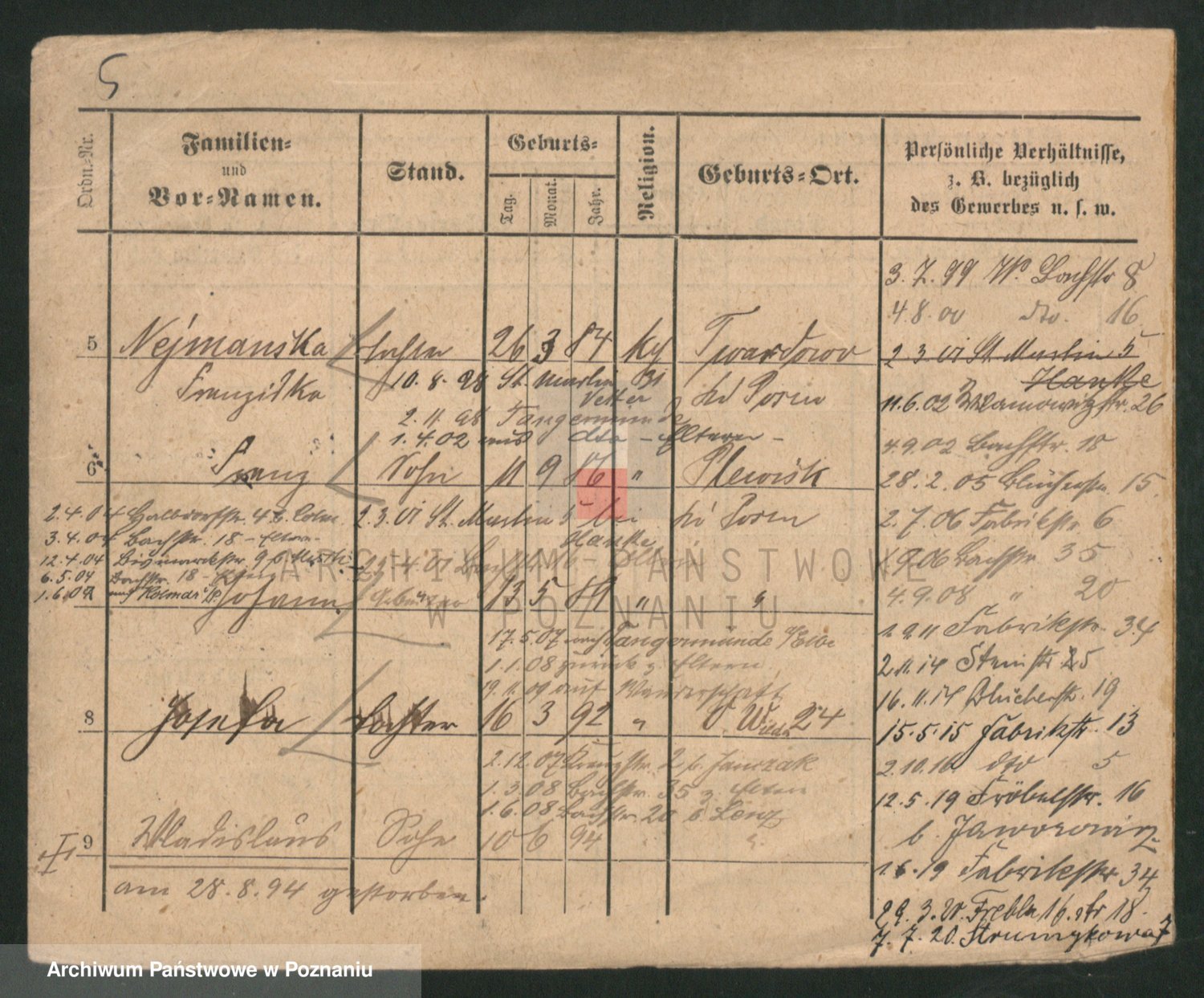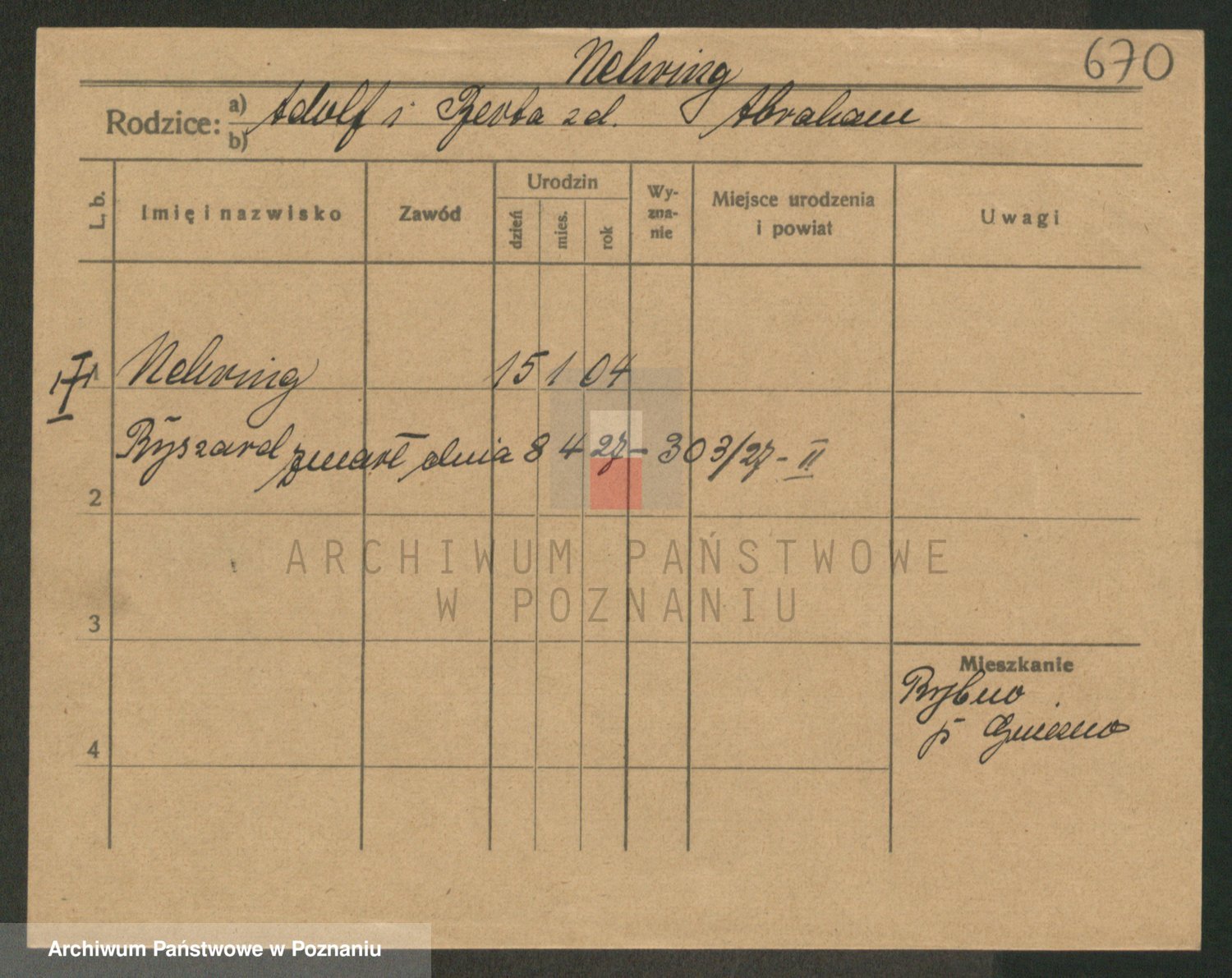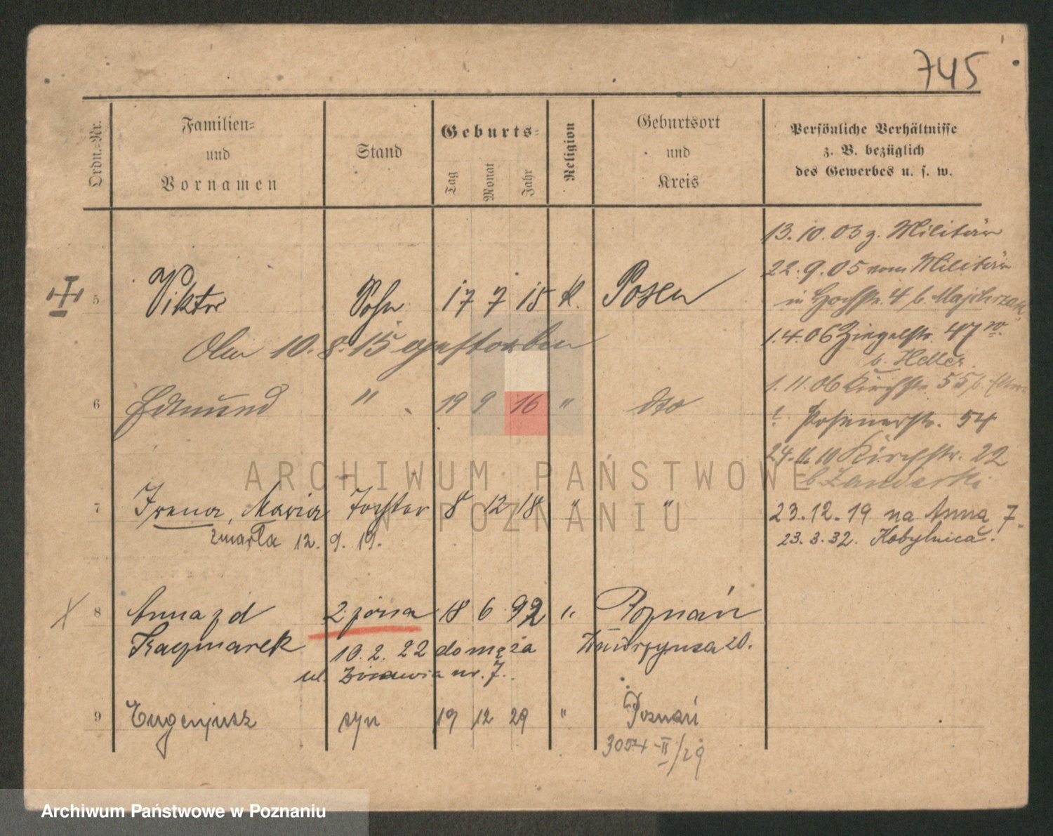 Podgląd karty osobowej dostępny jest po kliknięciu na nazwisko lub ikonkę karty. Można dokonywać powiększenia (ikony na górze) lub przechodzić między kolejnymi skanami (strzałki po bokach).
