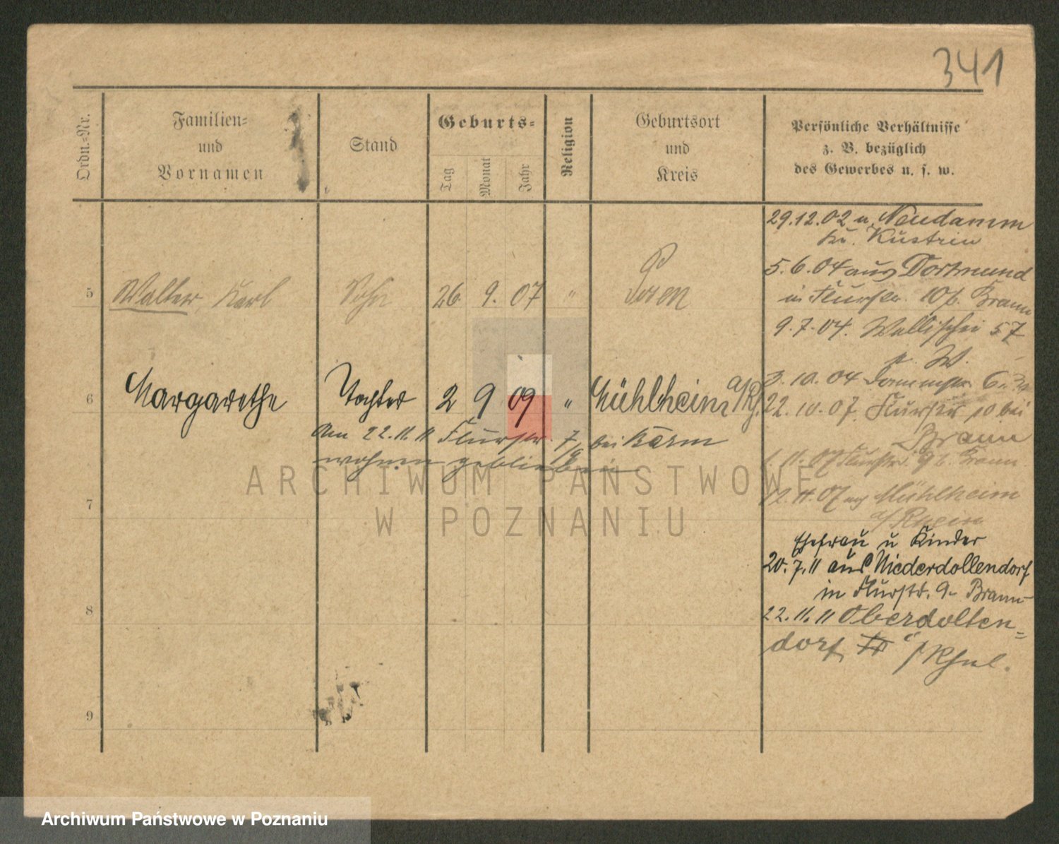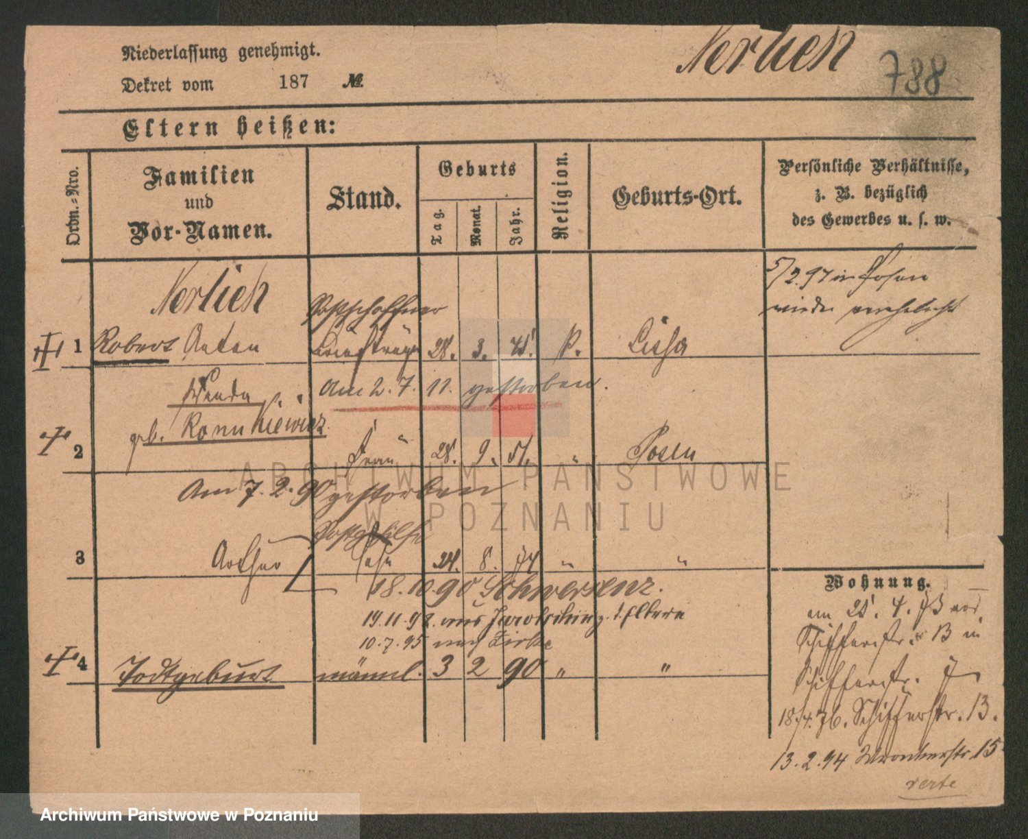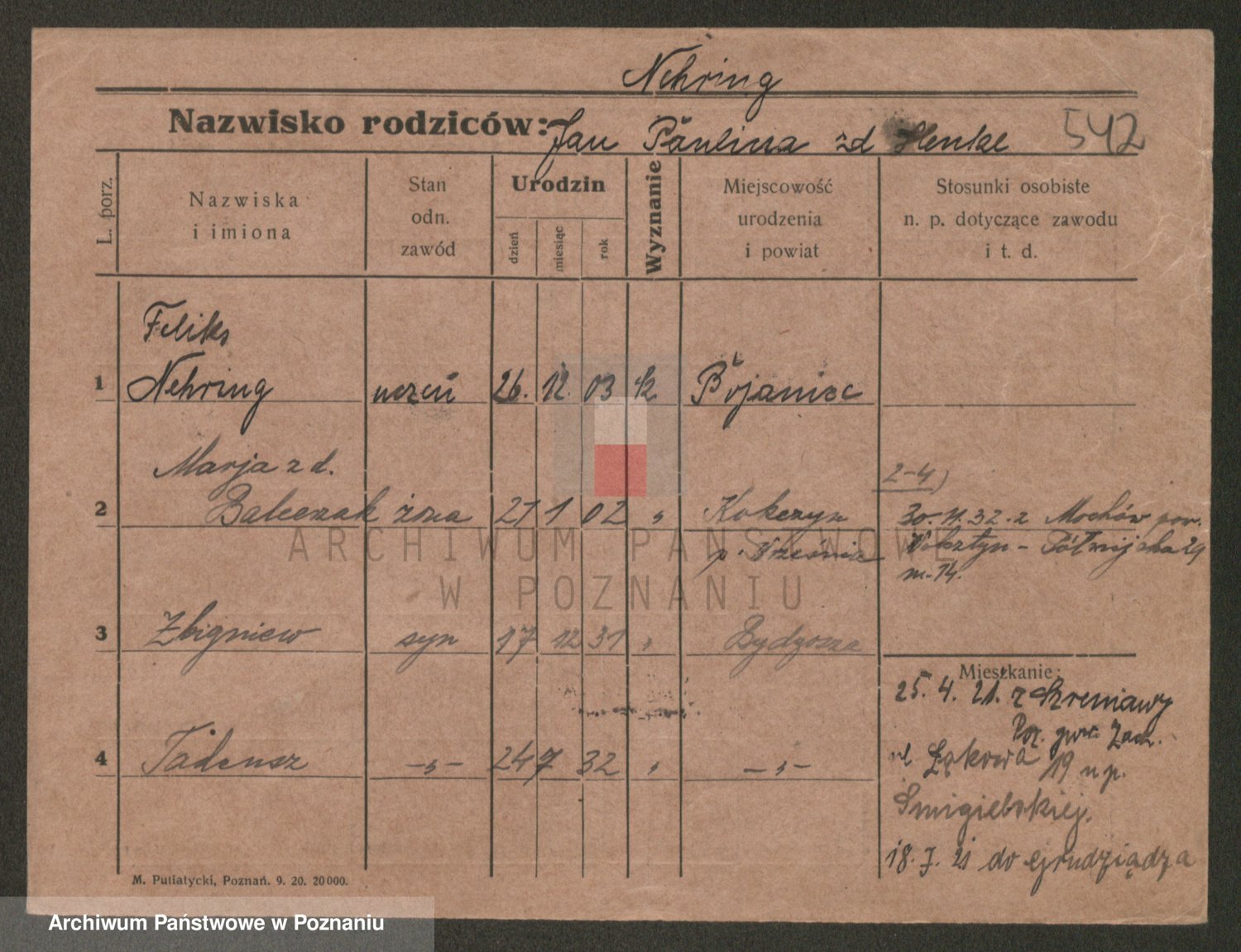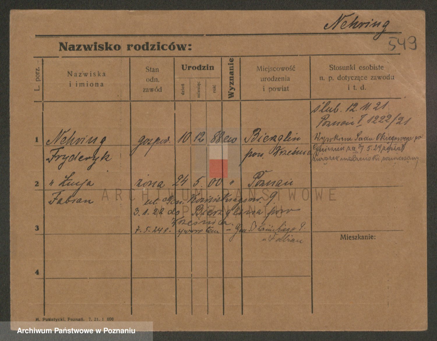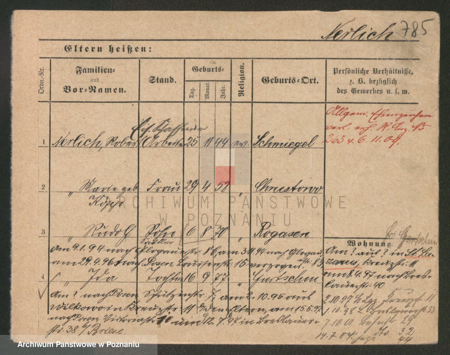 Podgląd karty osobowej dostępny jest po kliknięciu na nazwisko lub ikonkę karty. Można dokonywać powiększenia (ikony na górze) lub przechodzić między kolejnymi skanami (strzałki po bokach).