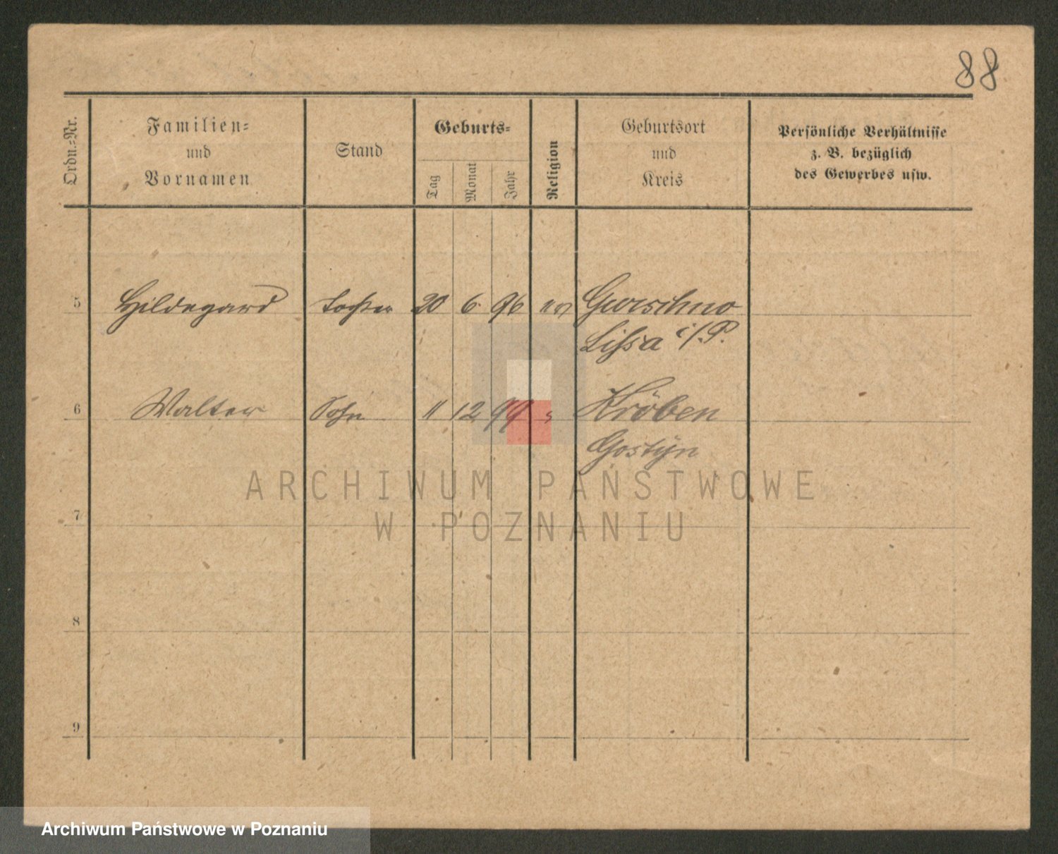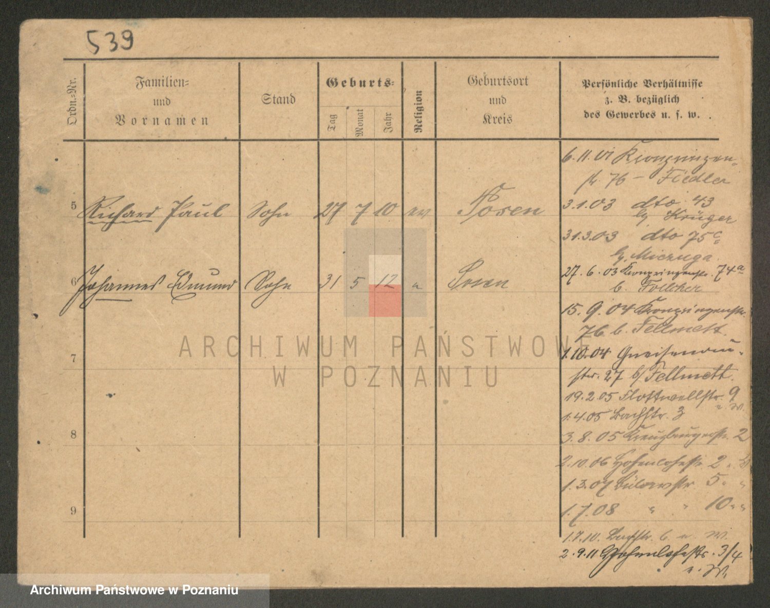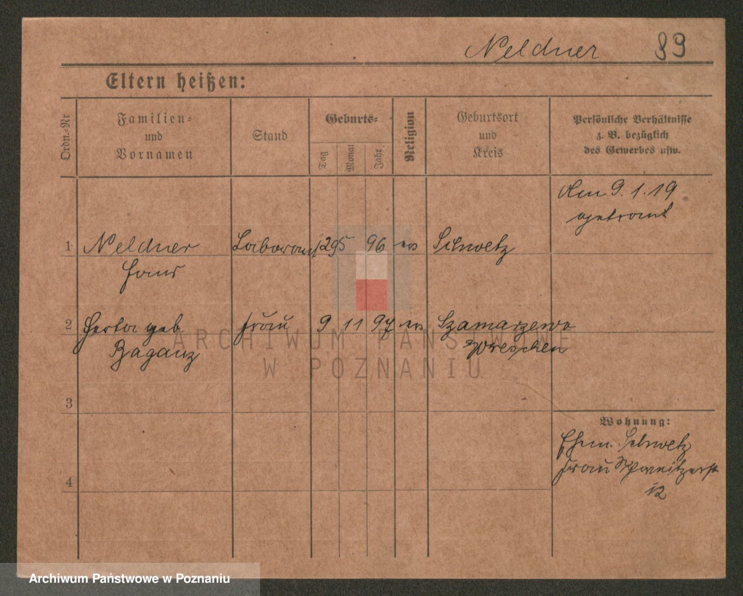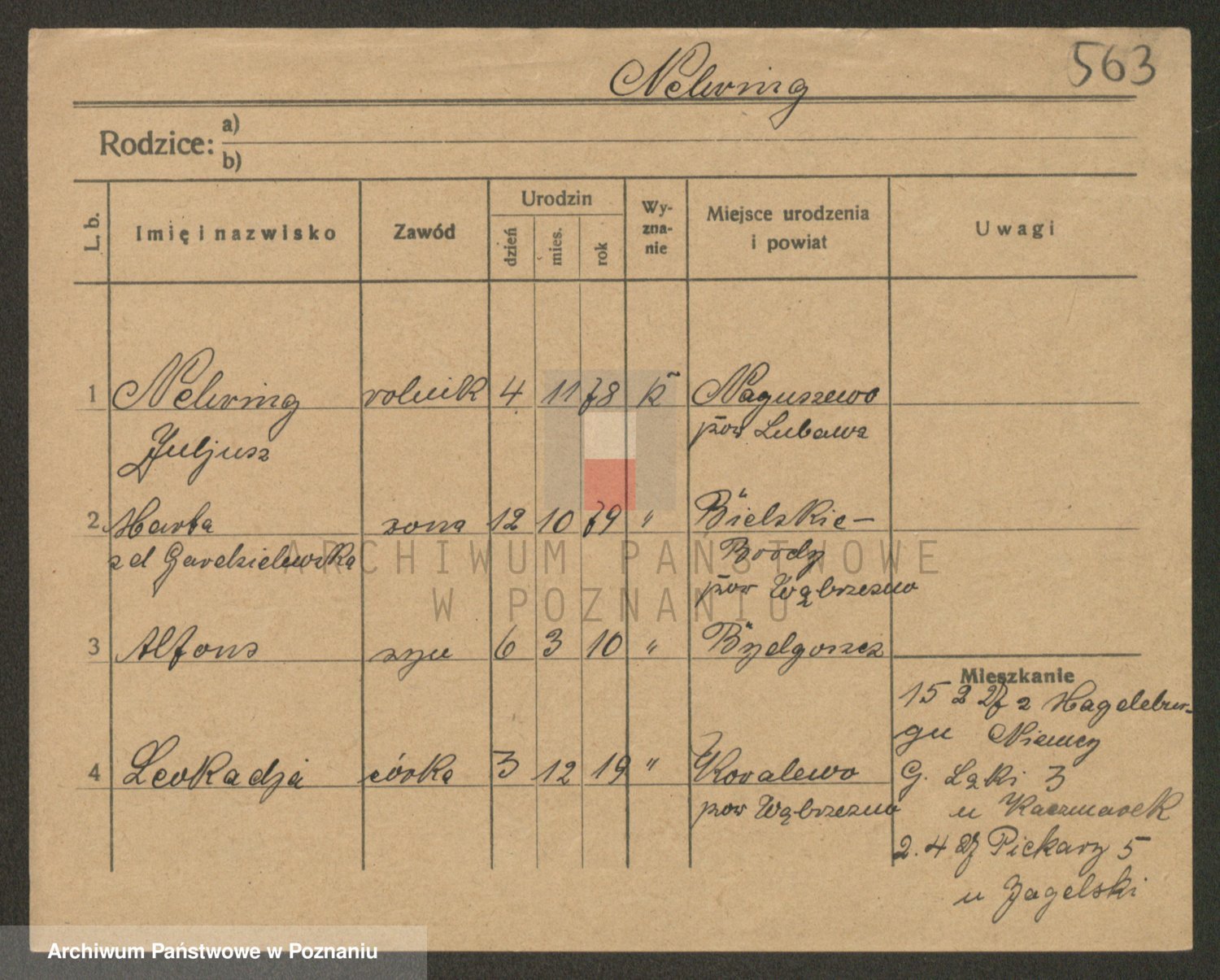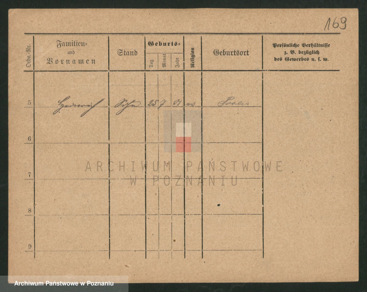 Podgląd karty osobowej dostępny jest po kliknięciu na nazwisko lub ikonkę karty. Można dokonywać powiększenia (ikony na górze) lub przechodzić między kolejnymi skanami (strzałki po bokach).