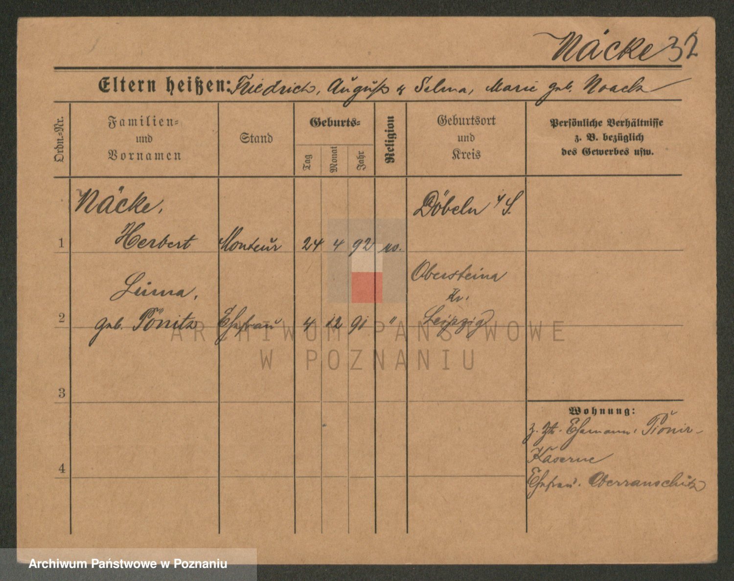 Näcke z d. Pönitz, Linna?