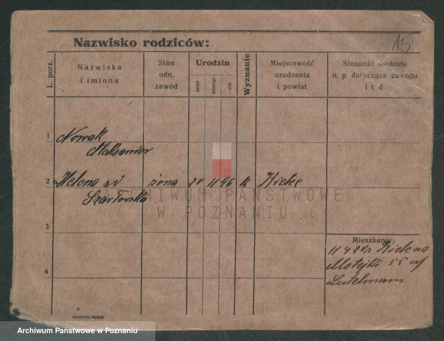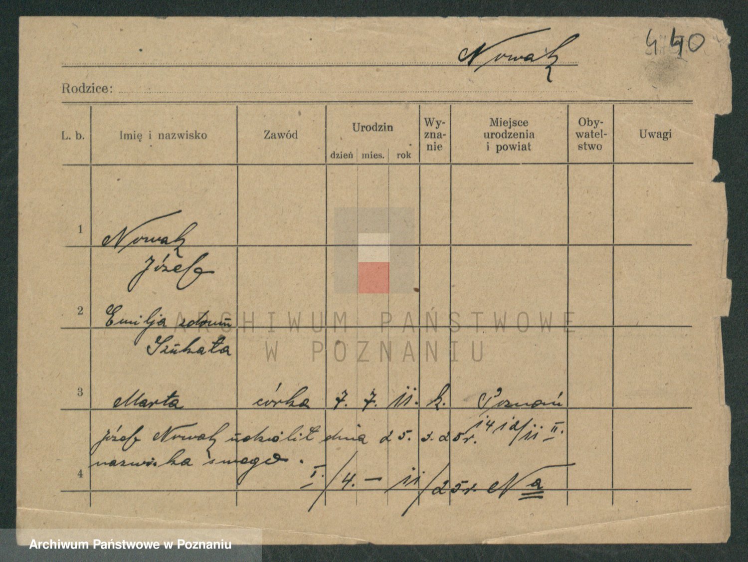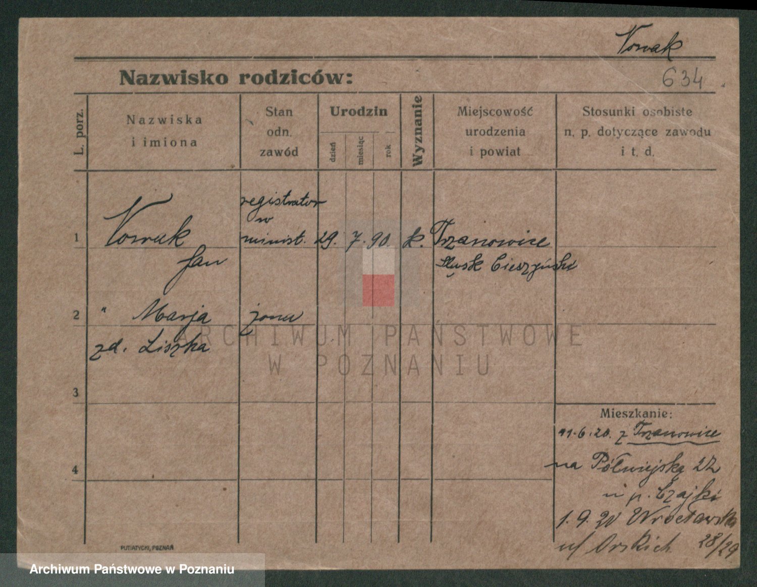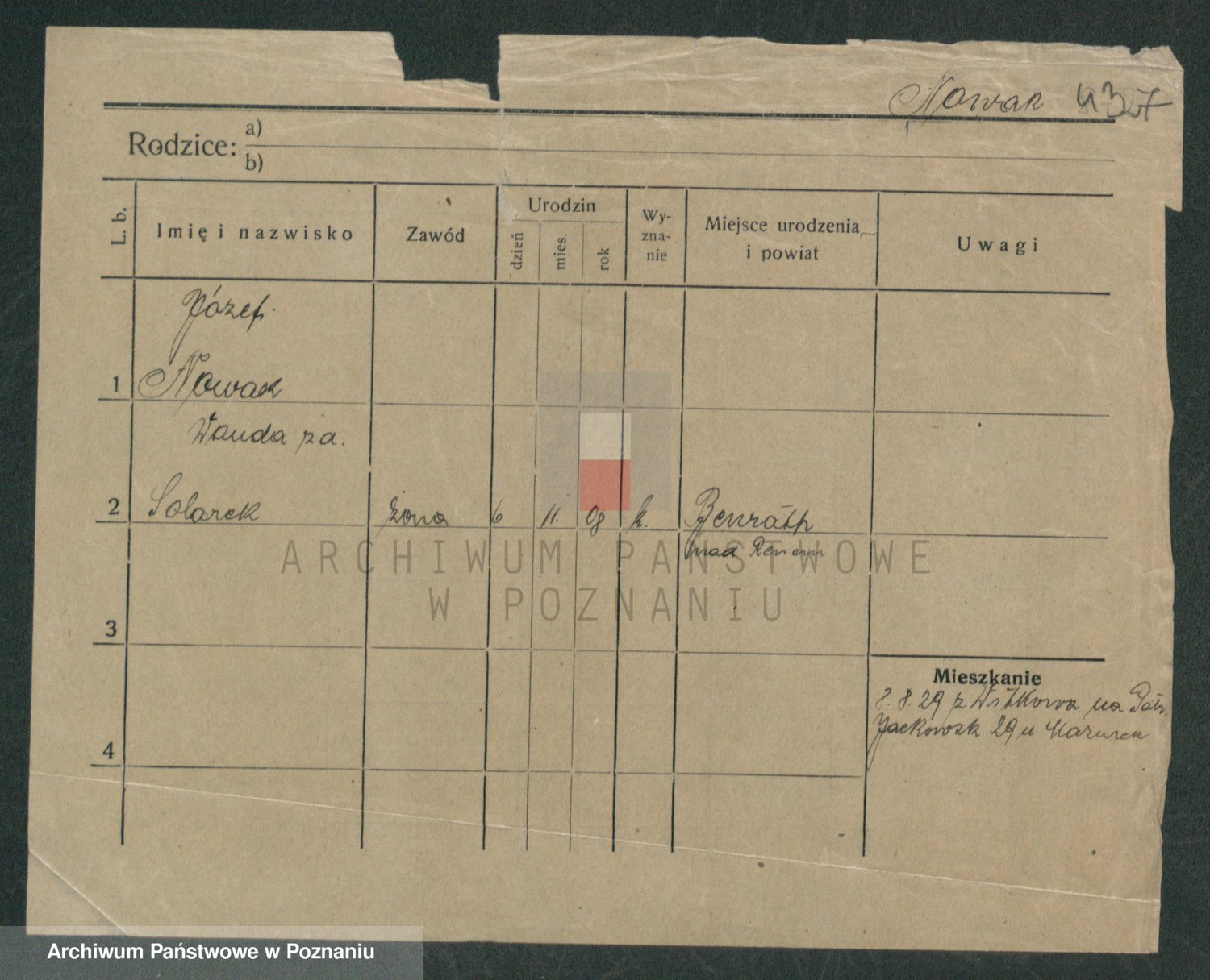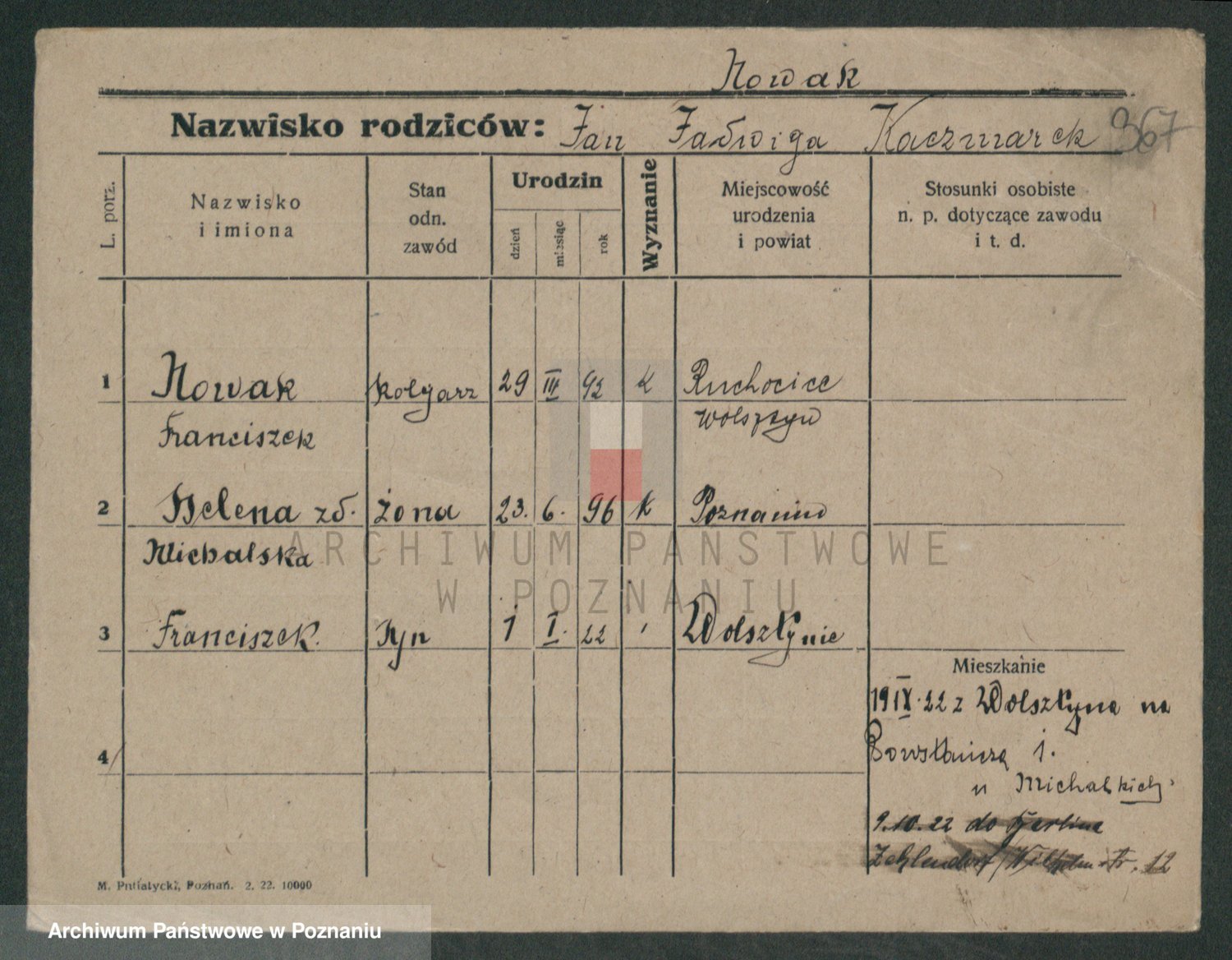 Podgląd karty osobowej dostępny jest po kliknięciu na nazwisko lub ikonkę karty. Można dokonywać powiększenia (ikony na górze) lub przechodzić między kolejnymi skanami (strzałki po bokach).