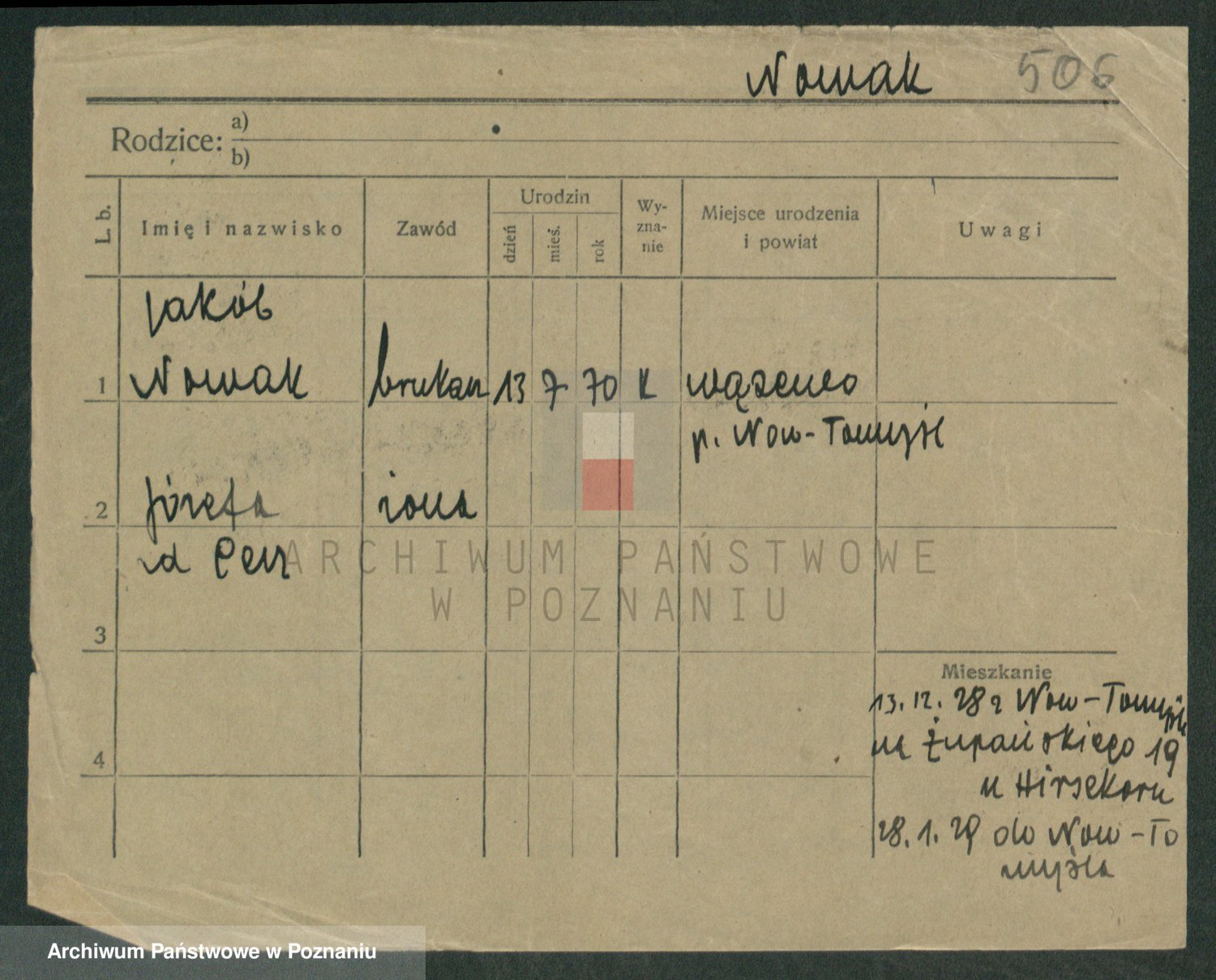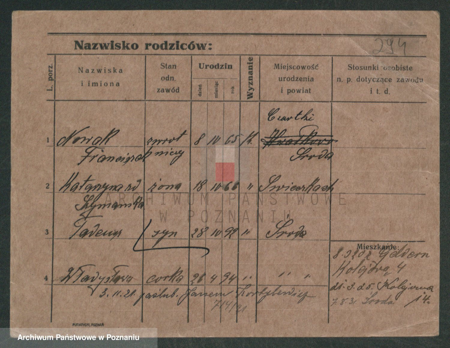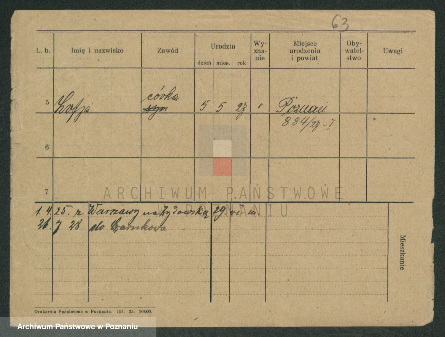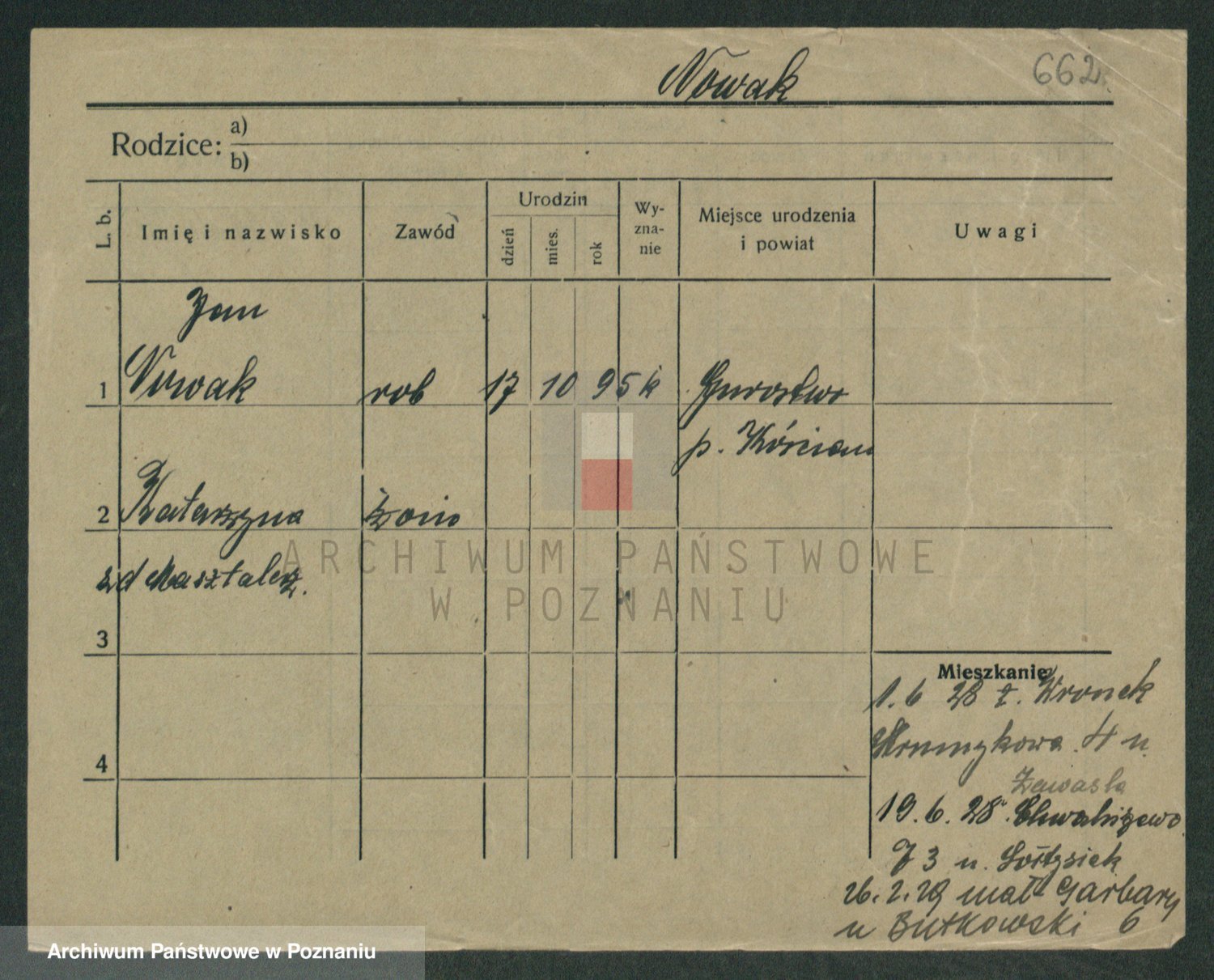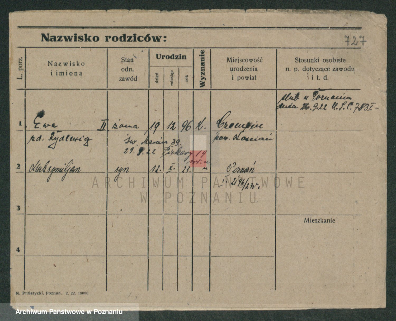 Podgląd karty osobowej dostępny jest po kliknięciu na nazwisko lub ikonkę karty. Można dokonywać powiększenia (ikony na górze) lub przechodzić między kolejnymi skanami (strzałki po bokach).