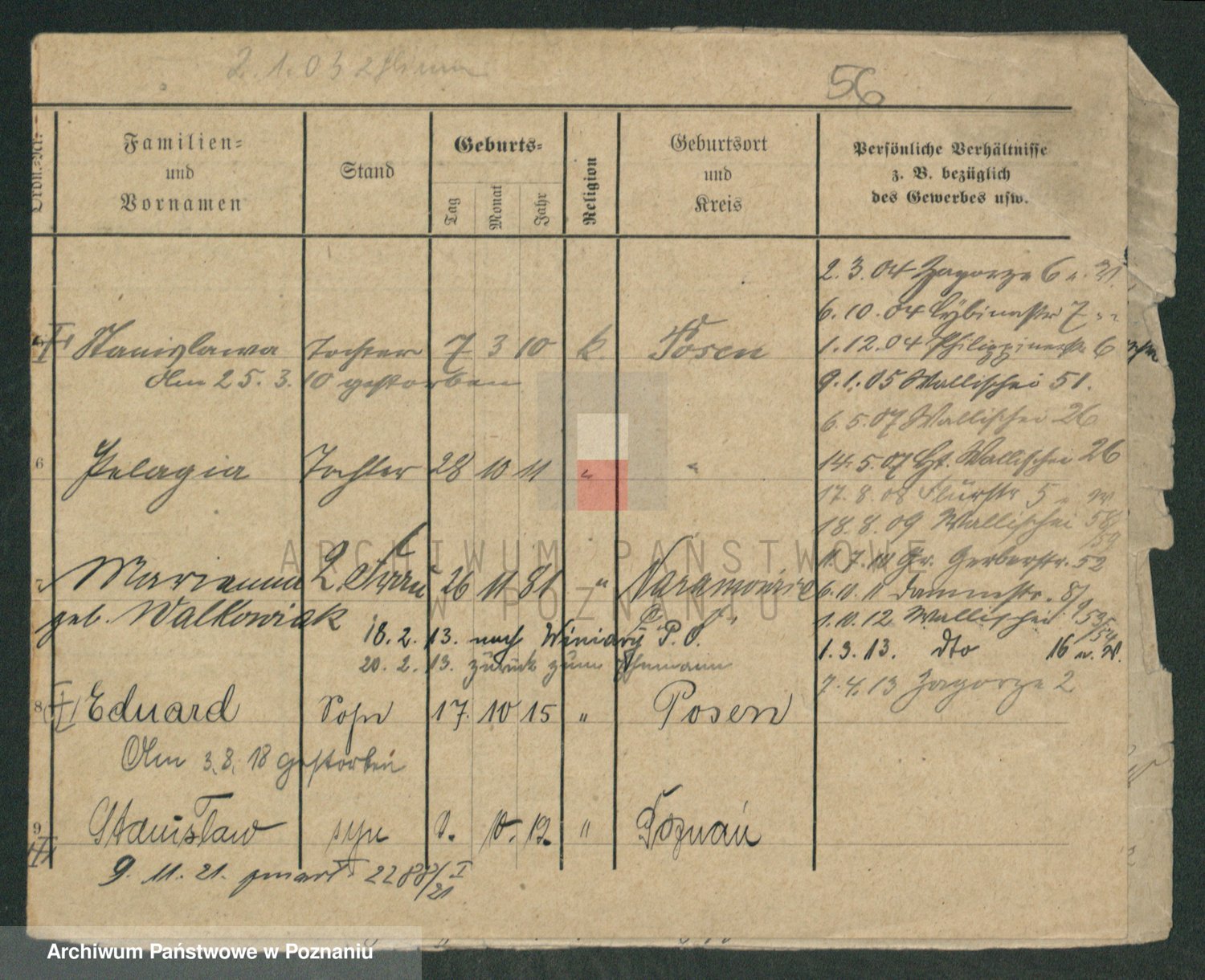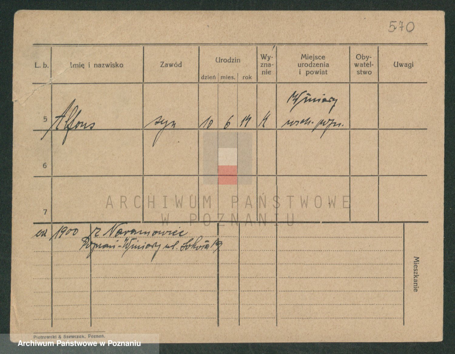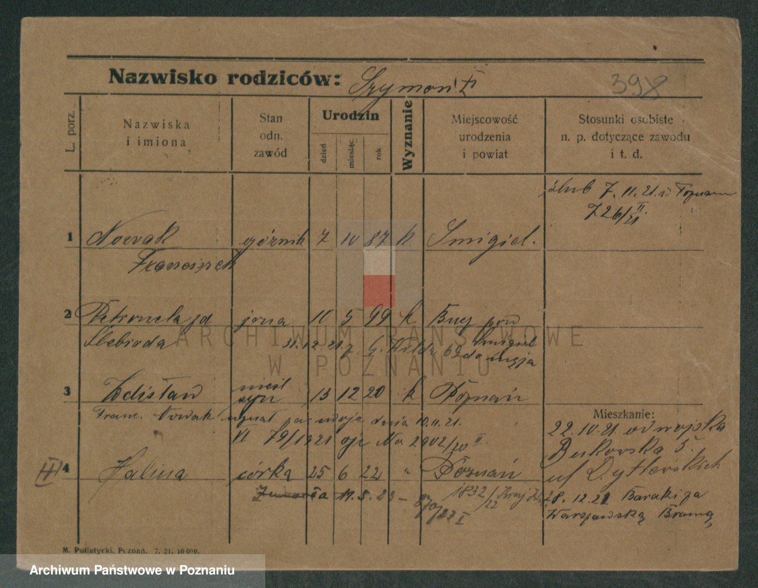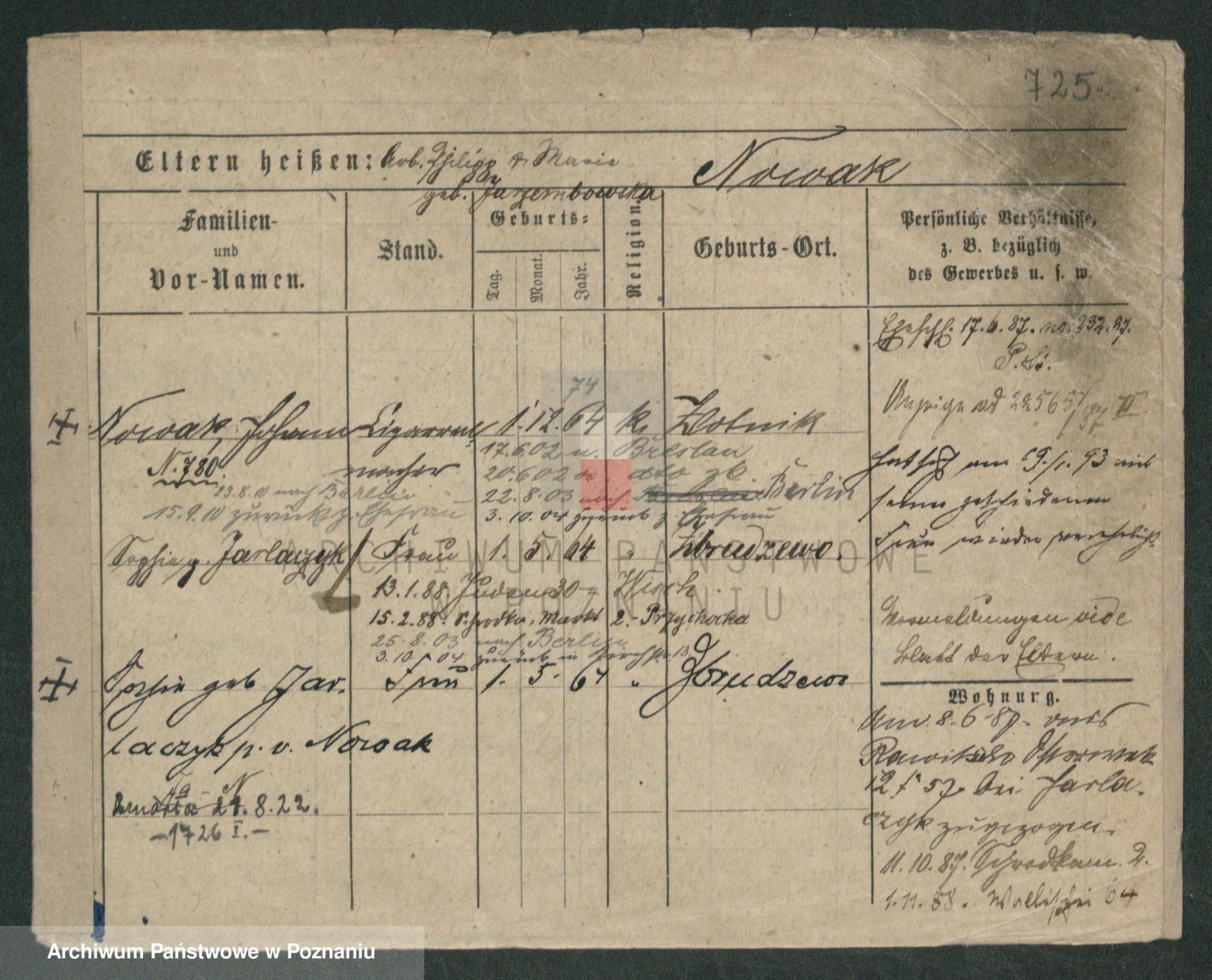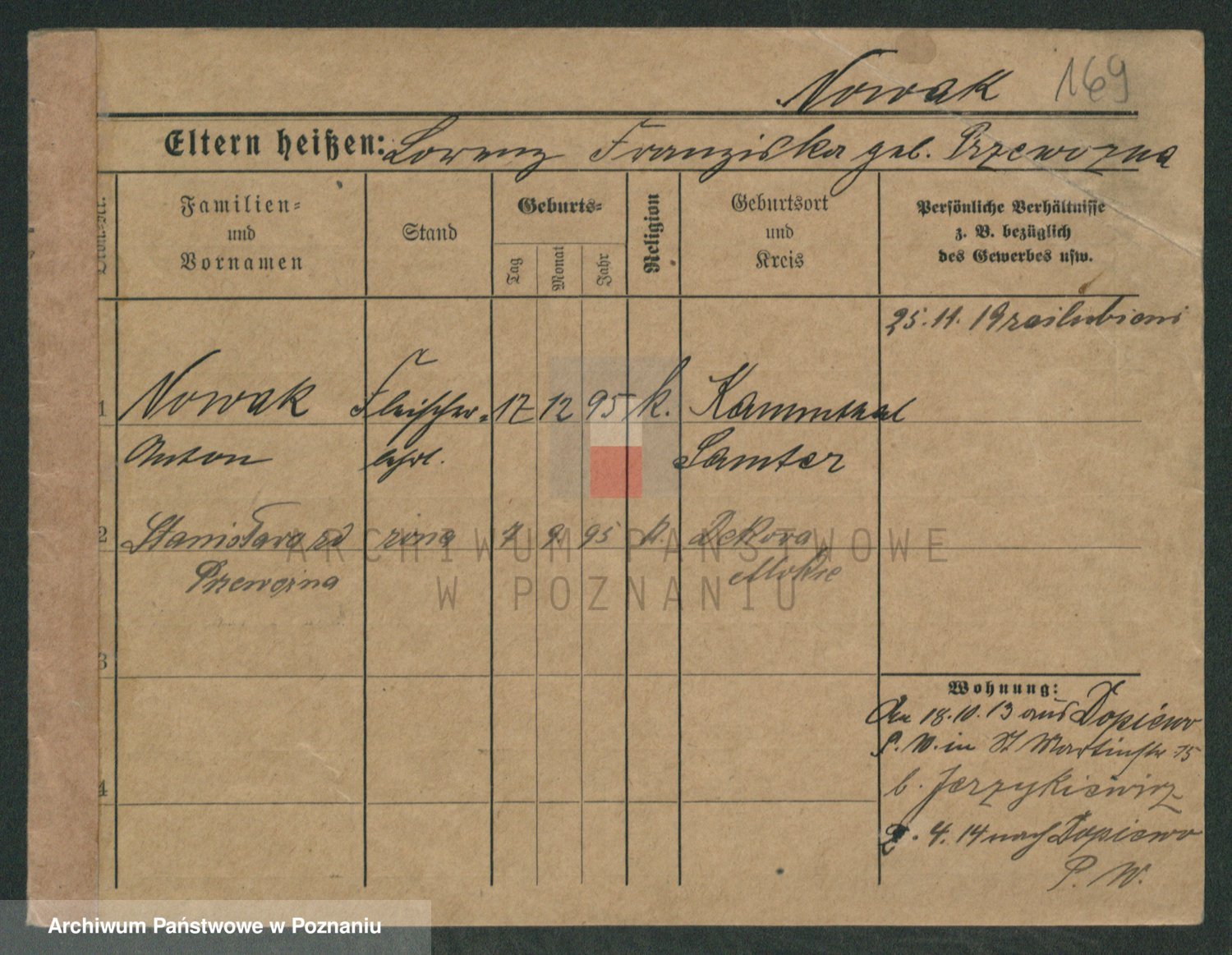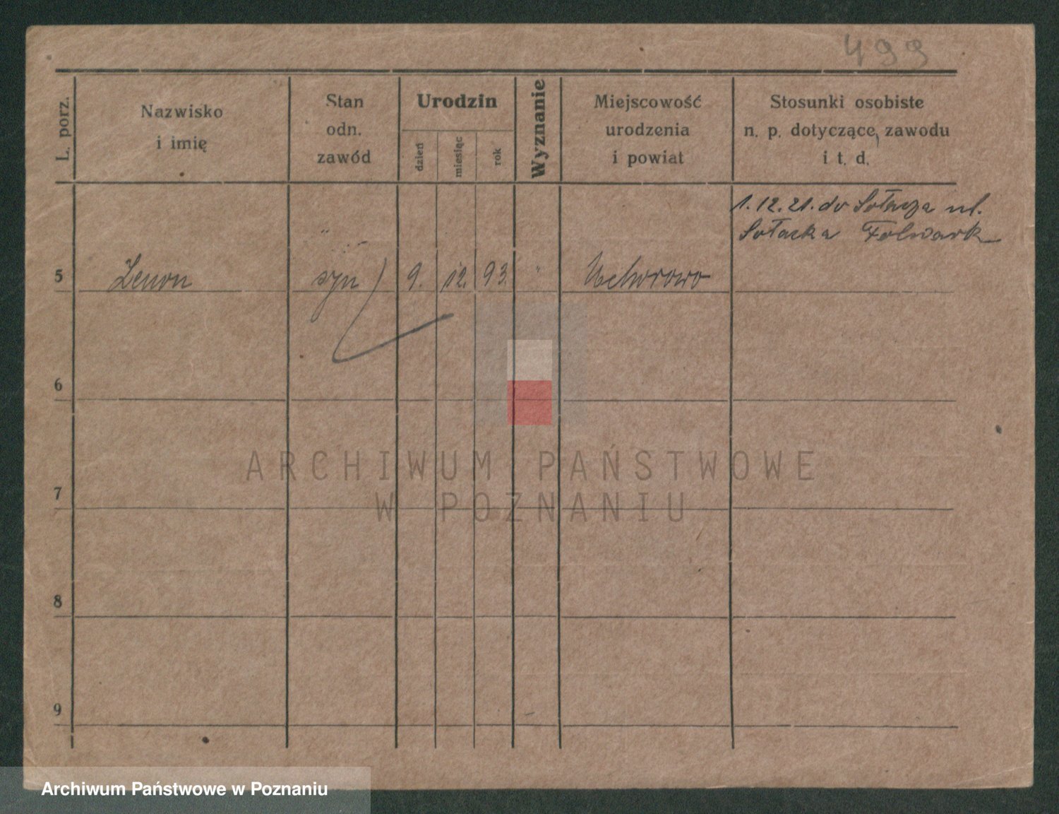 Podgląd karty osobowej dostępny jest po kliknięciu na nazwisko lub ikonkę karty. Można dokonywać powiększenia (ikony na górze) lub przechodzić między kolejnymi skanami (strzałki po bokach).