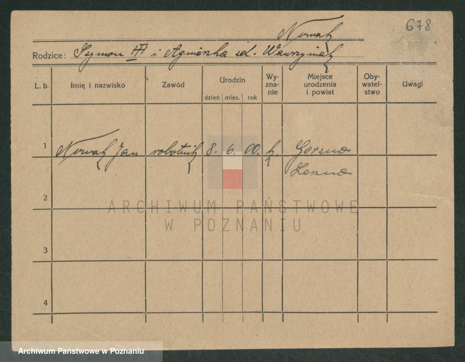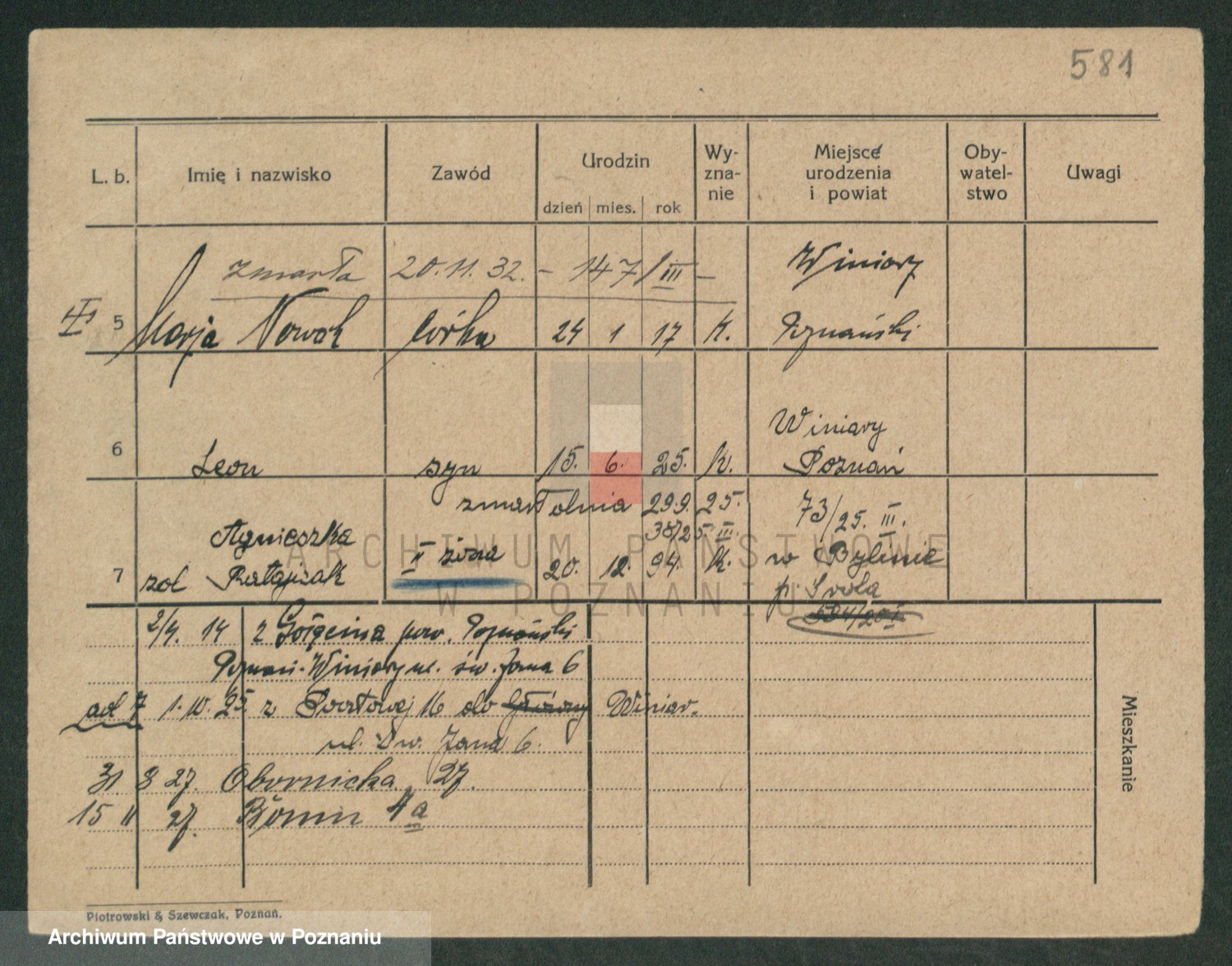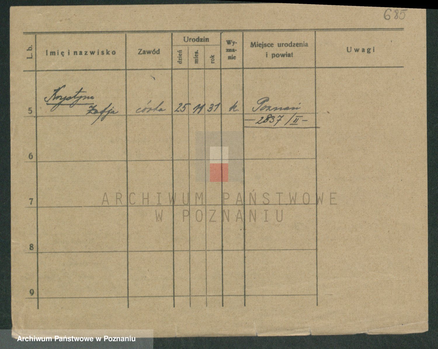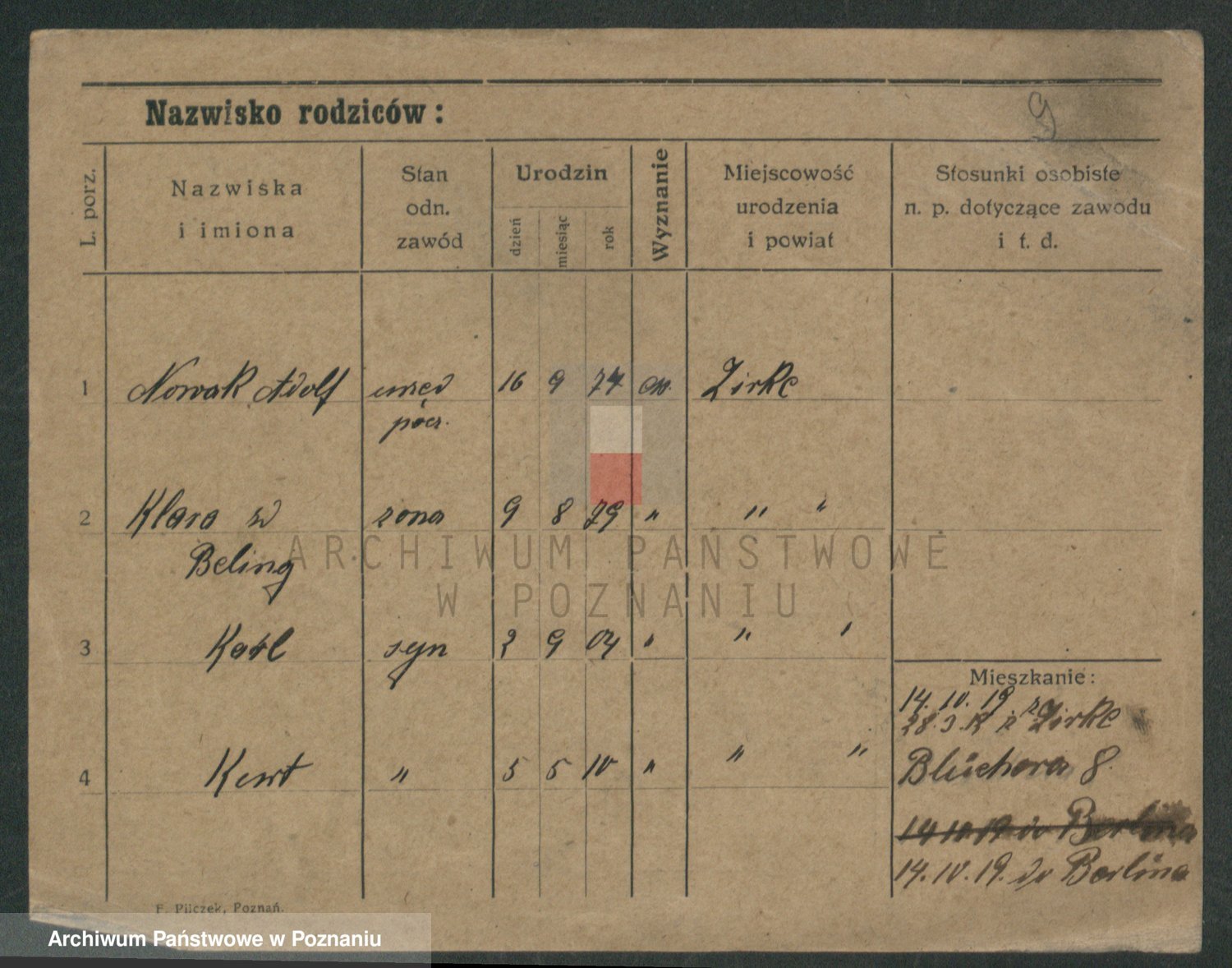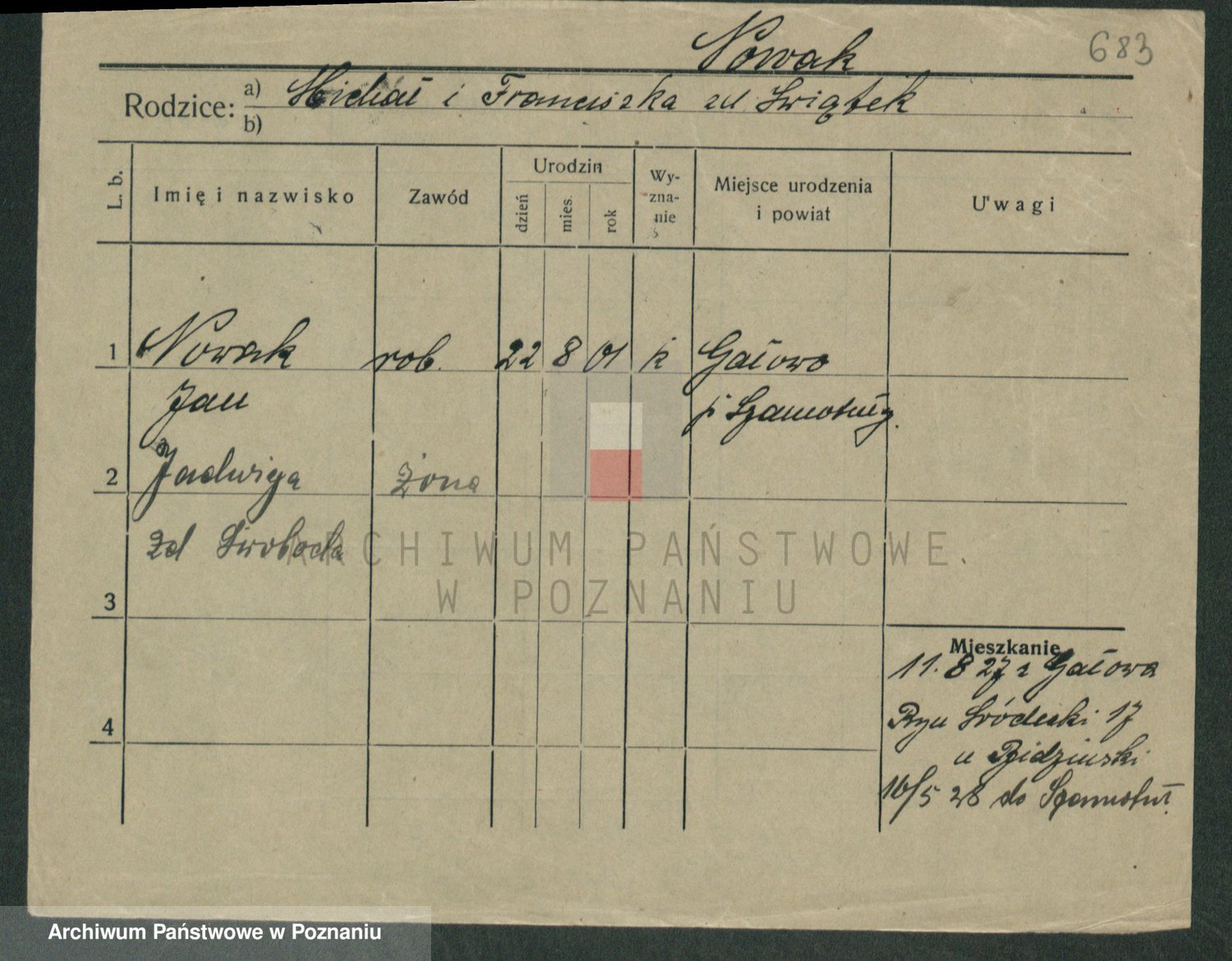 Podgląd karty osobowej dostępny jest po kliknięciu na nazwisko lub ikonkę karty. Można dokonywać powiększenia (ikony na górze) lub przechodzić między kolejnymi skanami (strzałki po bokach).