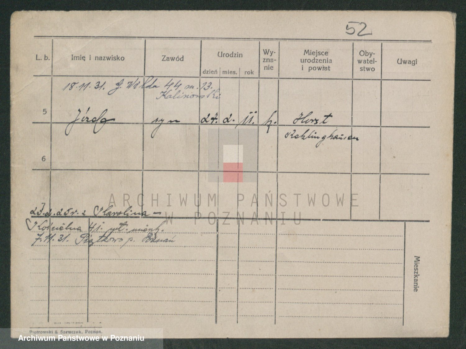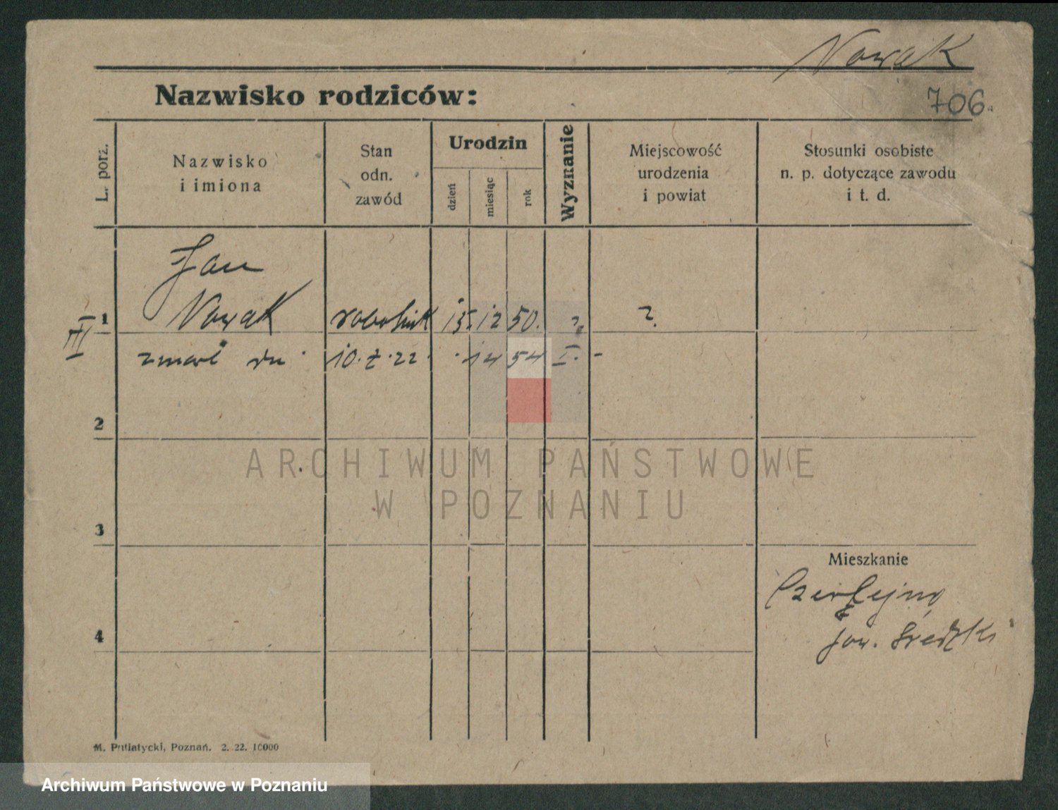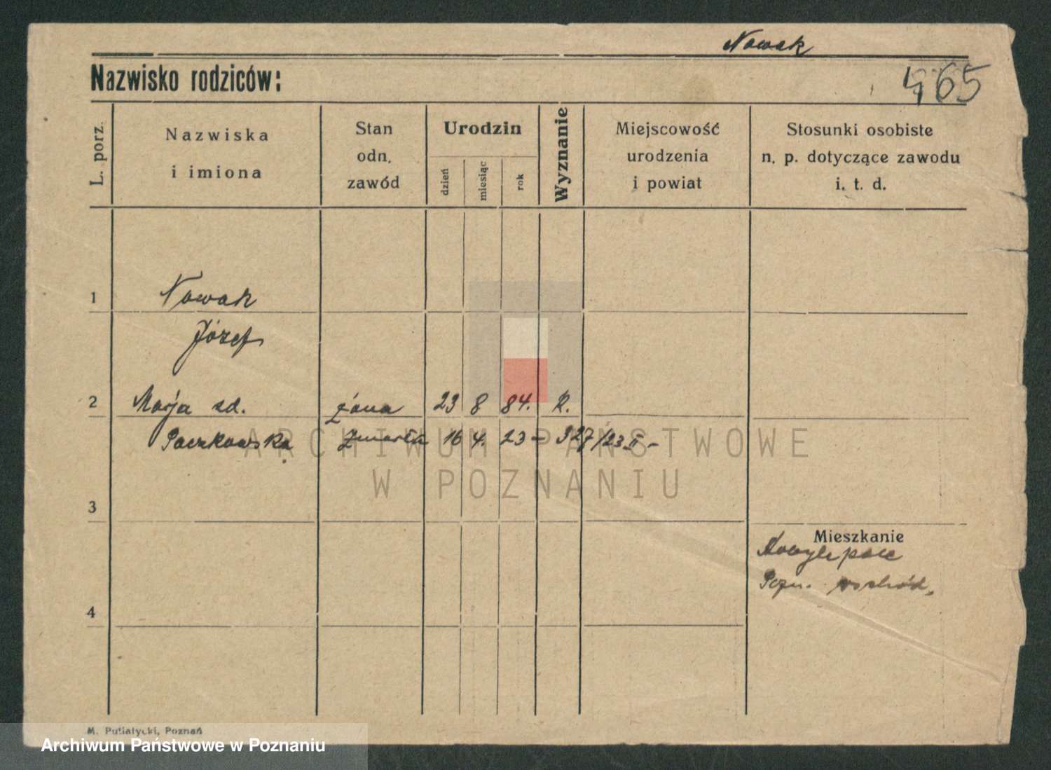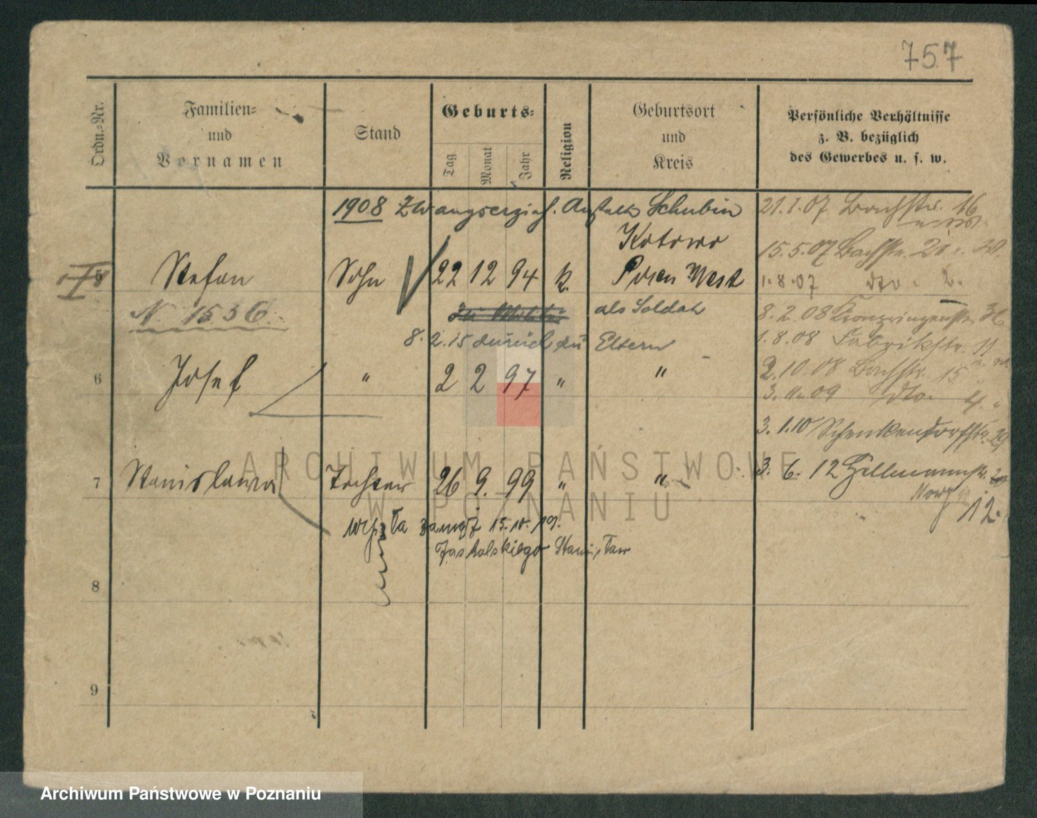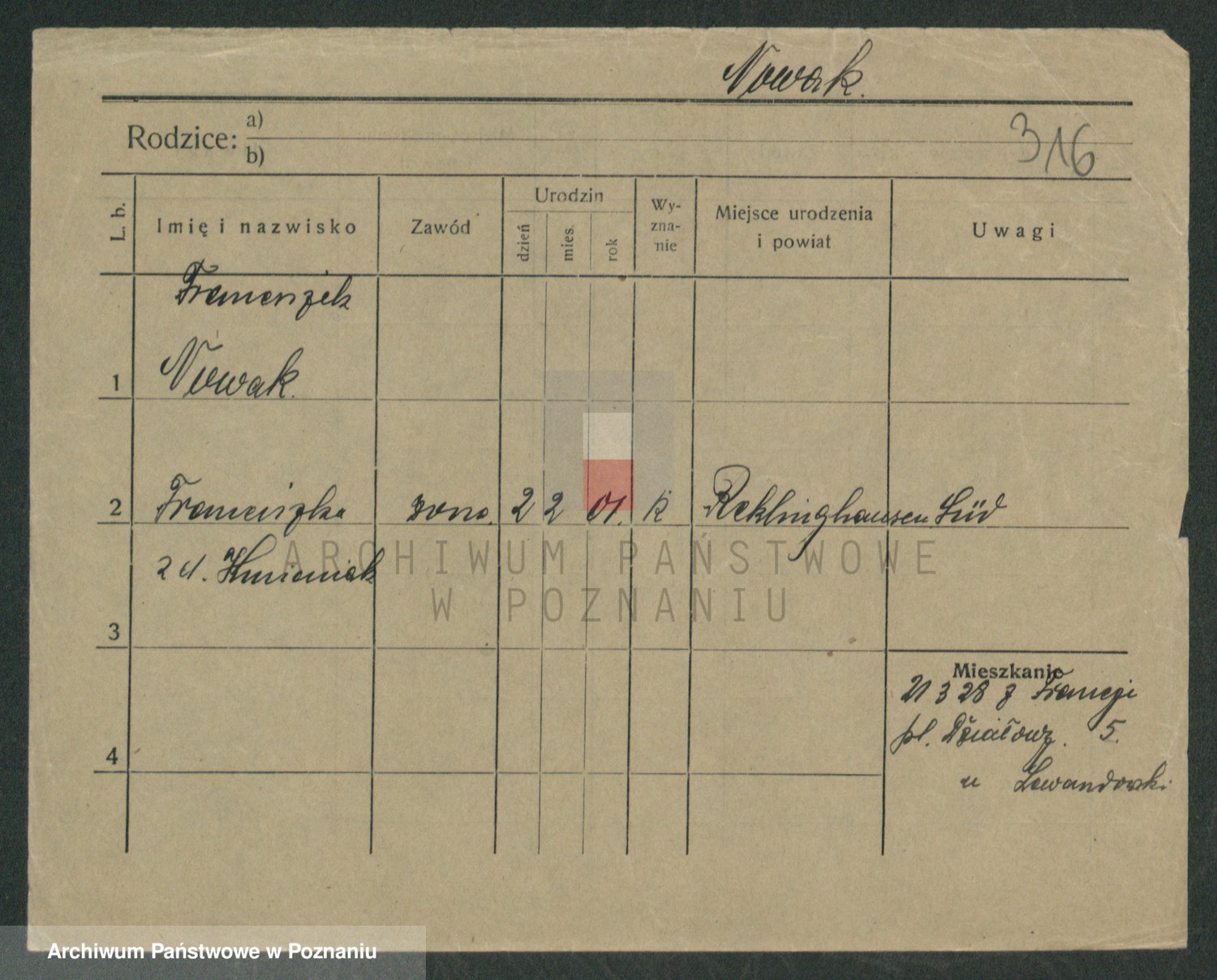 Podgląd karty osobowej dostępny jest po kliknięciu na nazwisko lub ikonkę karty. Można dokonywać powiększenia (ikony na górze) lub przechodzić między kolejnymi skanami (strzałki po bokach).