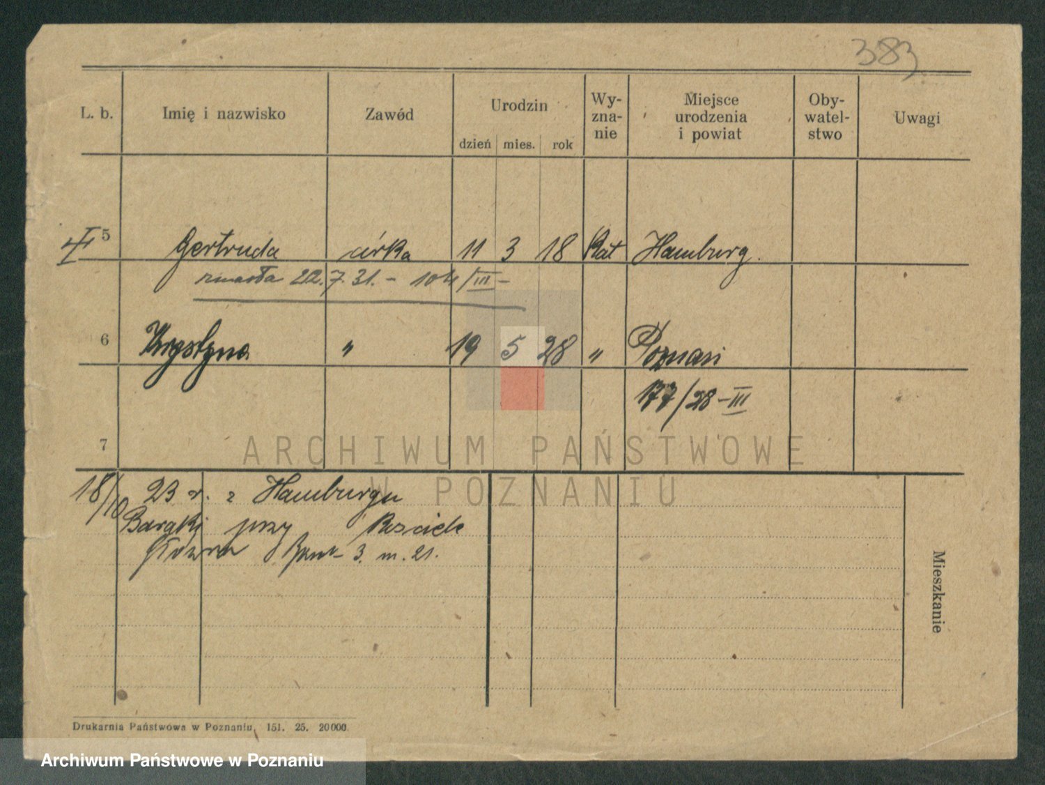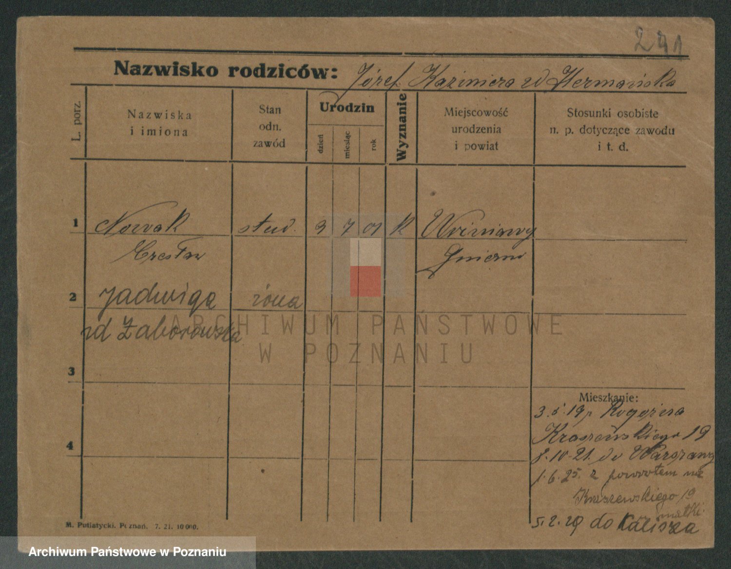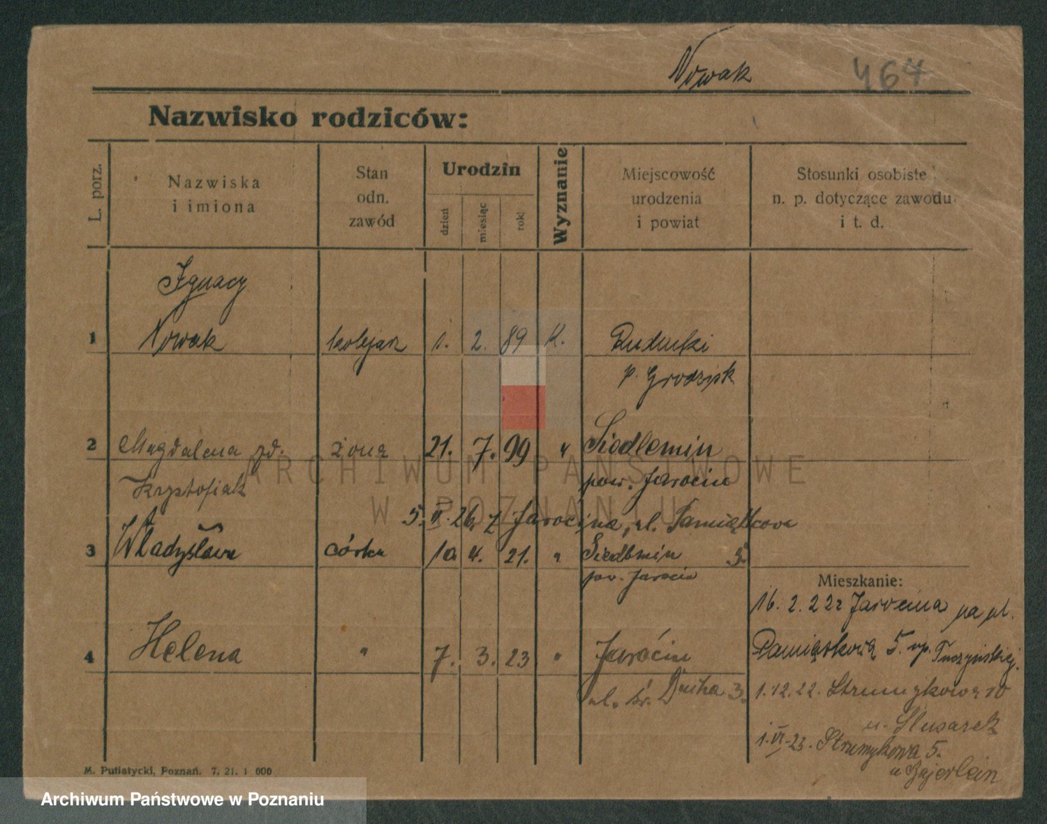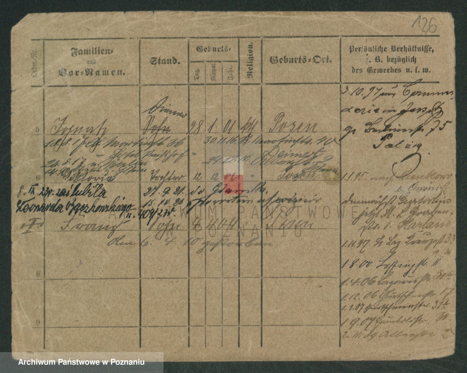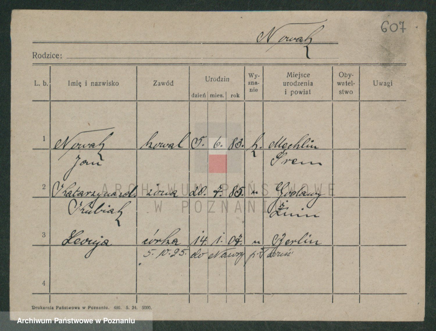 Podgląd karty osobowej dostępny jest po kliknięciu na nazwisko lub ikonkę karty. Można dokonywać powiększenia (ikony na górze) lub przechodzić między kolejnymi skanami (strzałki po bokach).
