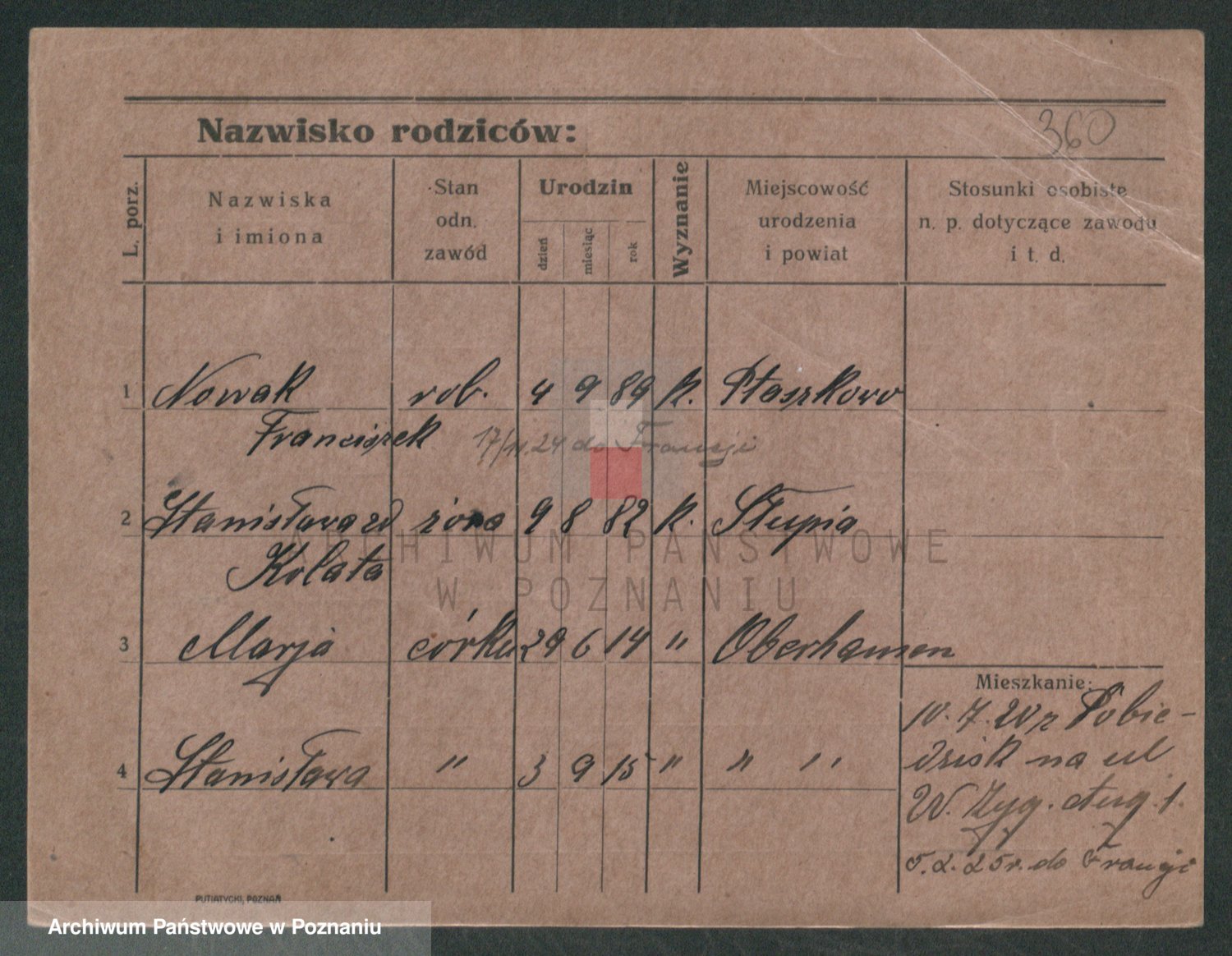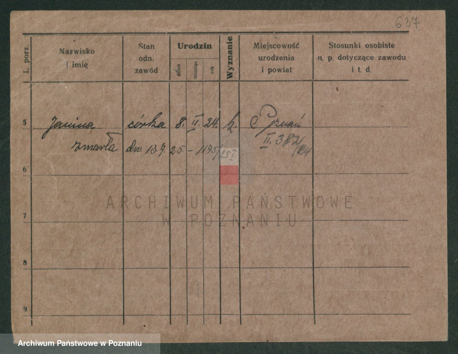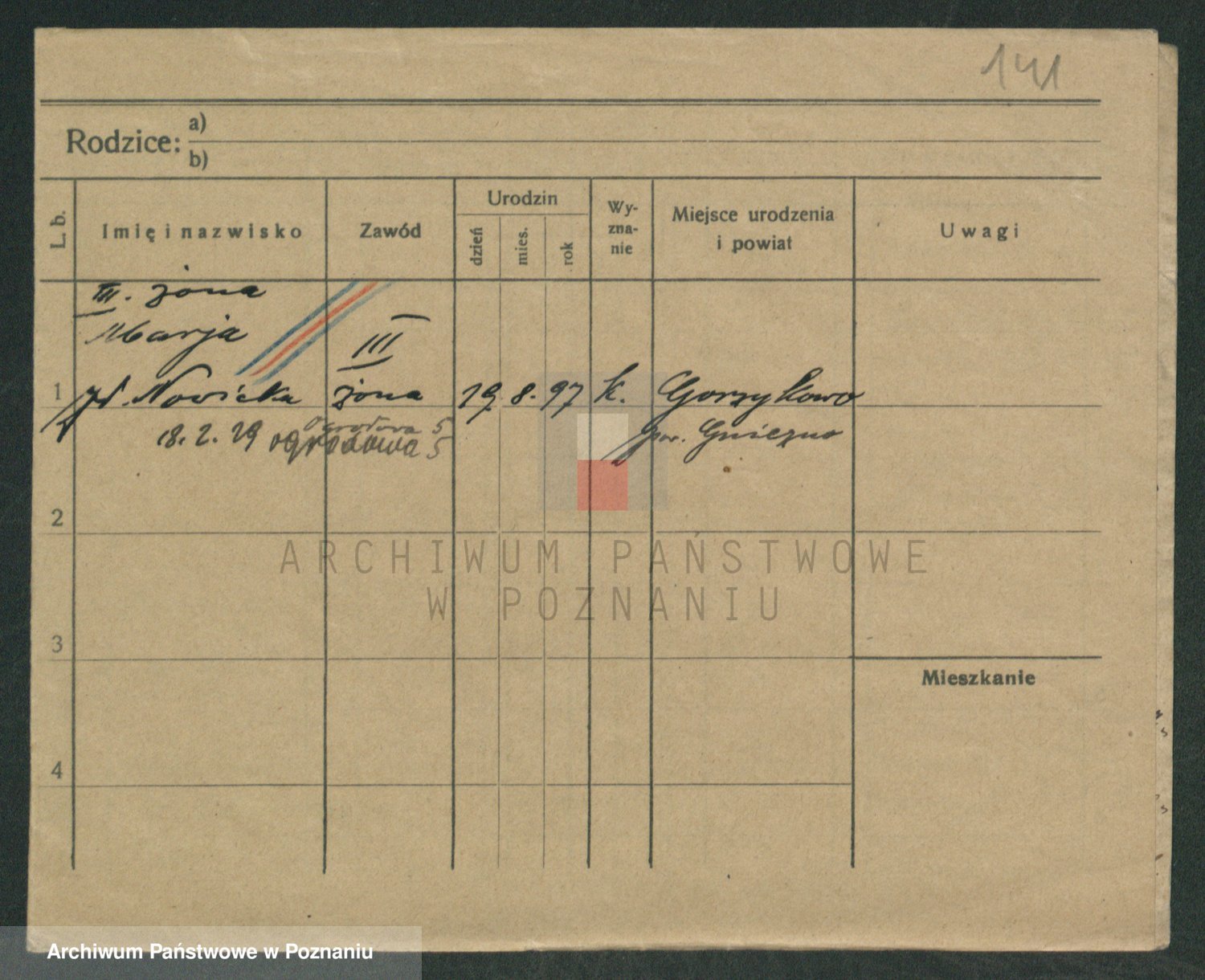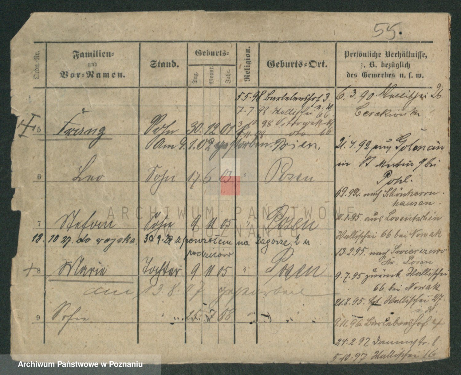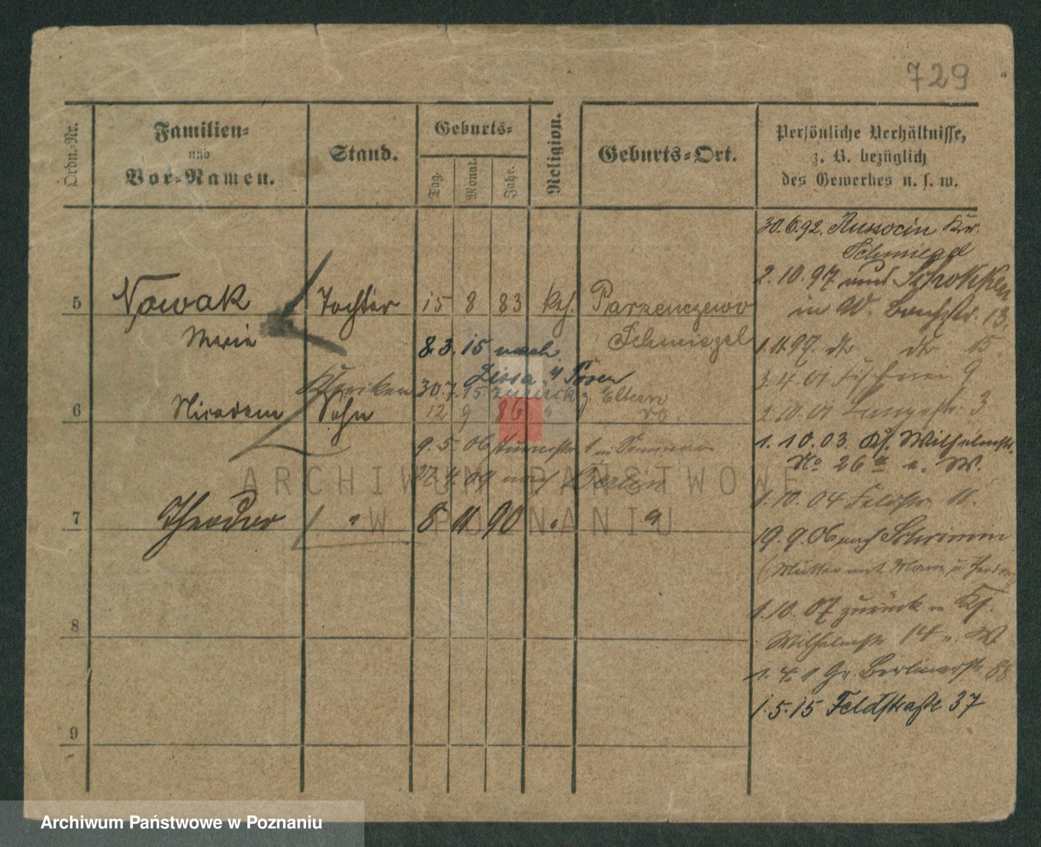 Podgląd karty osobowej dostępny jest po kliknięciu na nazwisko lub ikonkę karty. Można dokonywać powiększenia (ikony na górze) lub przechodzić między kolejnymi skanami (strzałki po bokach).