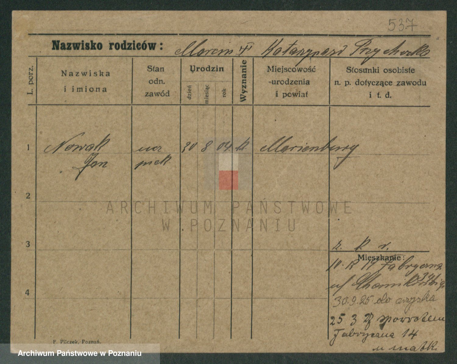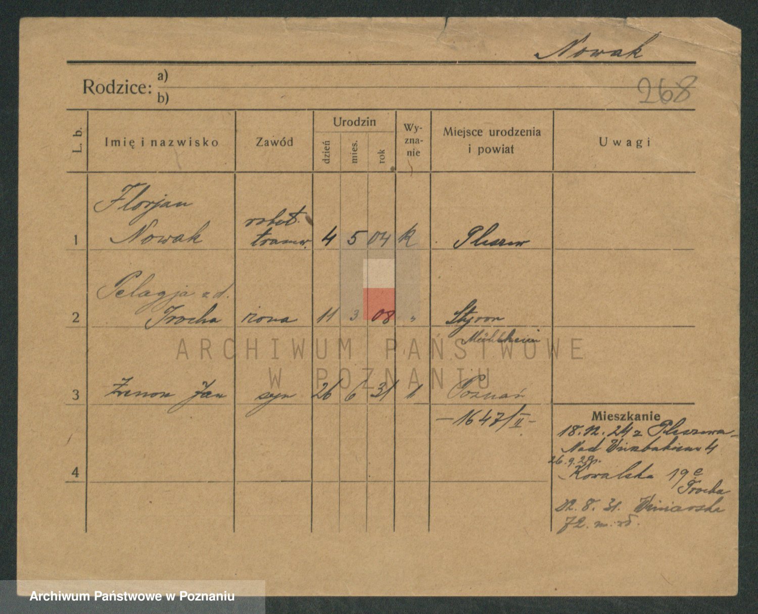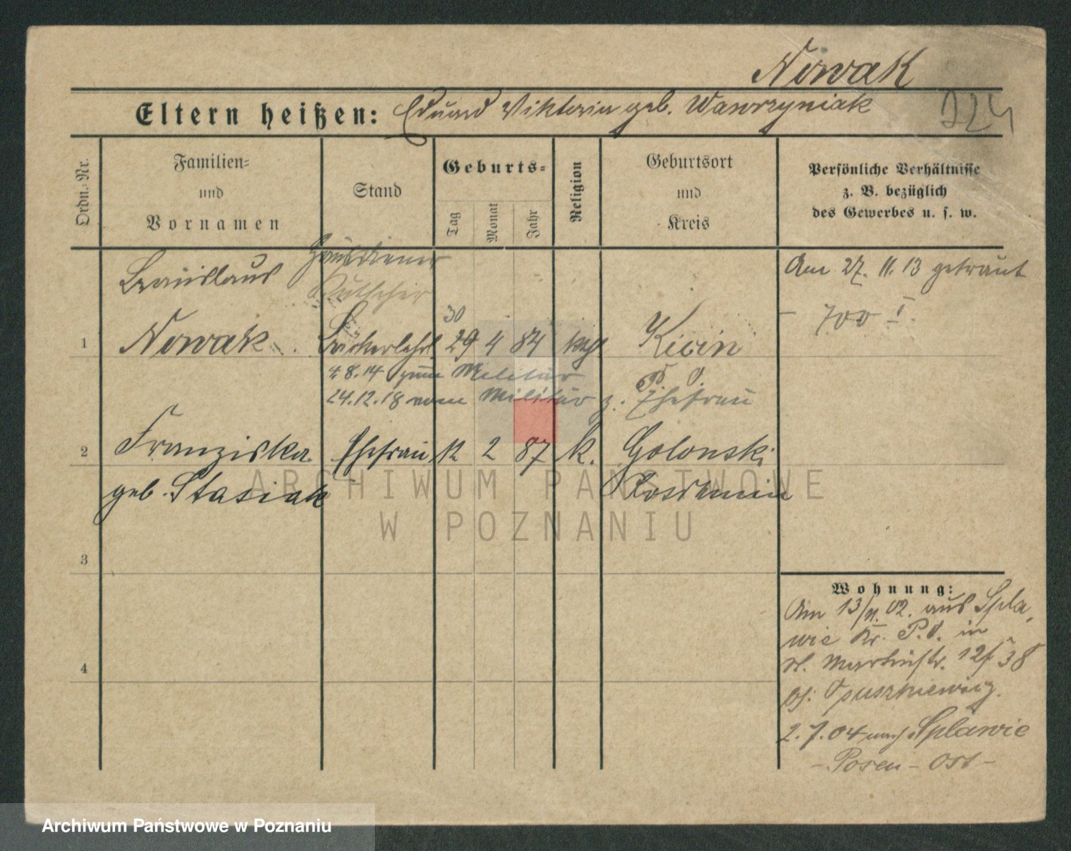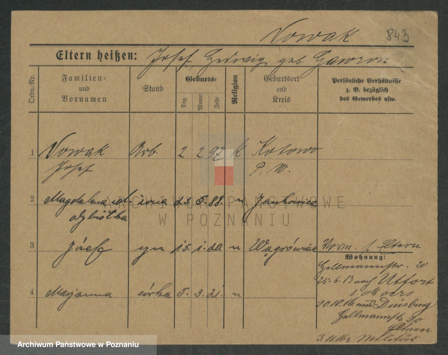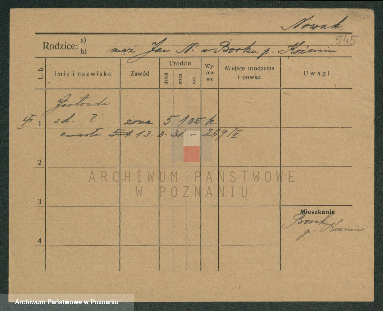 Podgląd karty osobowej dostępny jest po kliknięciu na nazwisko lub ikonkę karty. Można dokonywać powiększenia (ikony na górze) lub przechodzić między kolejnymi skanami (strzałki po bokach).