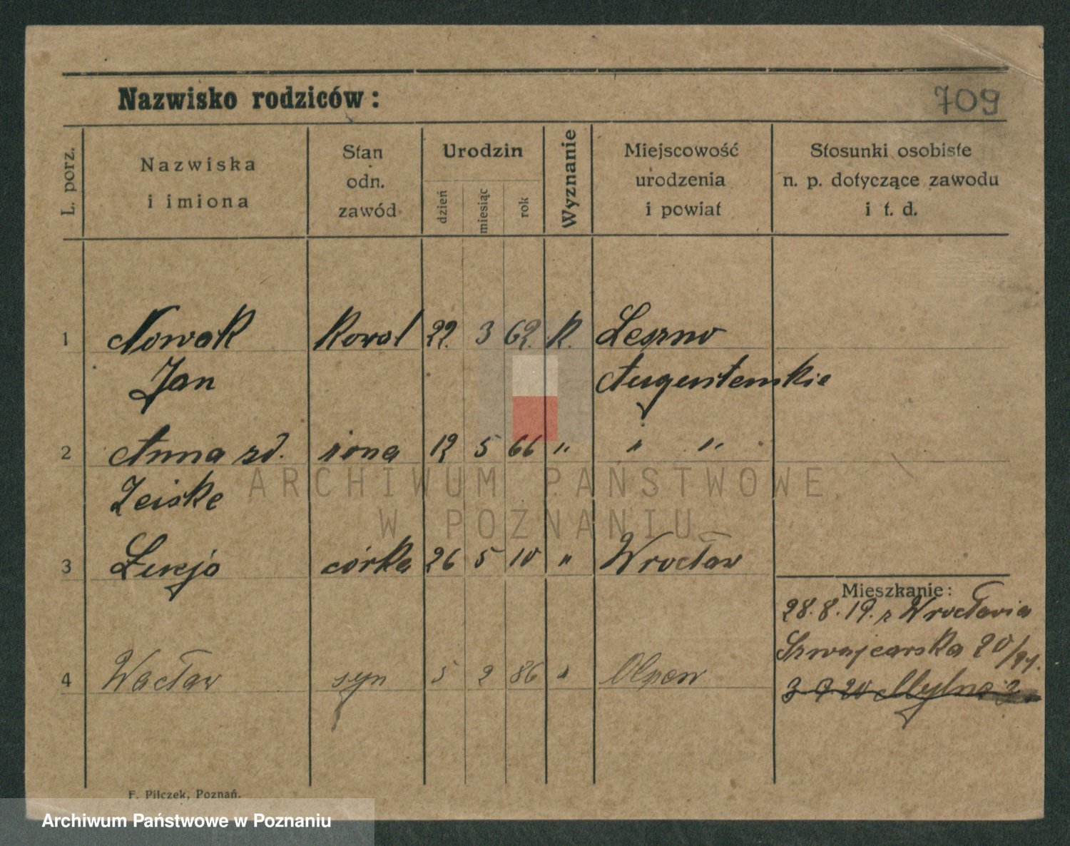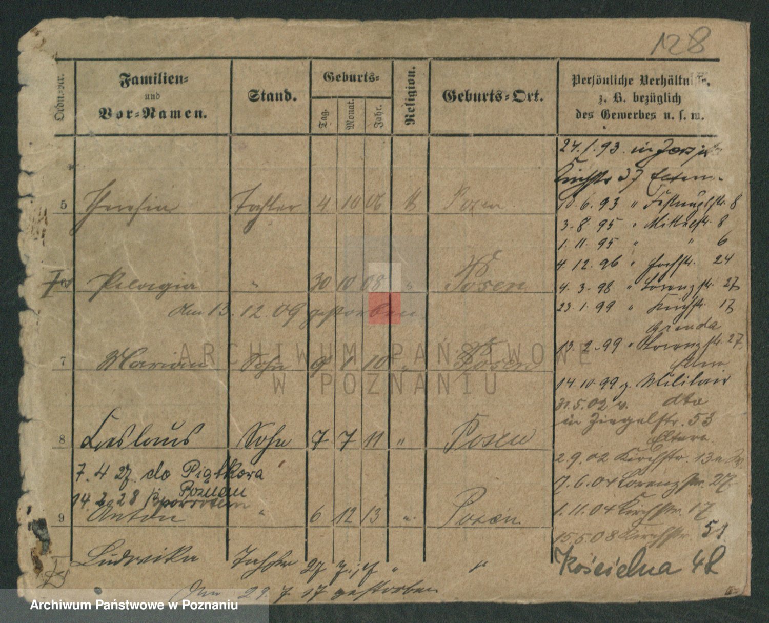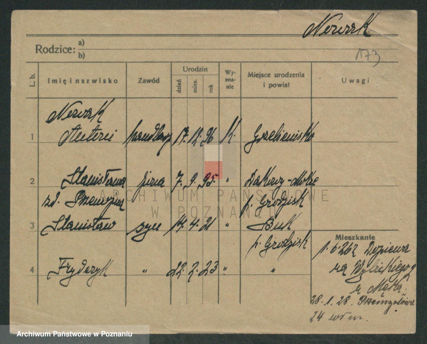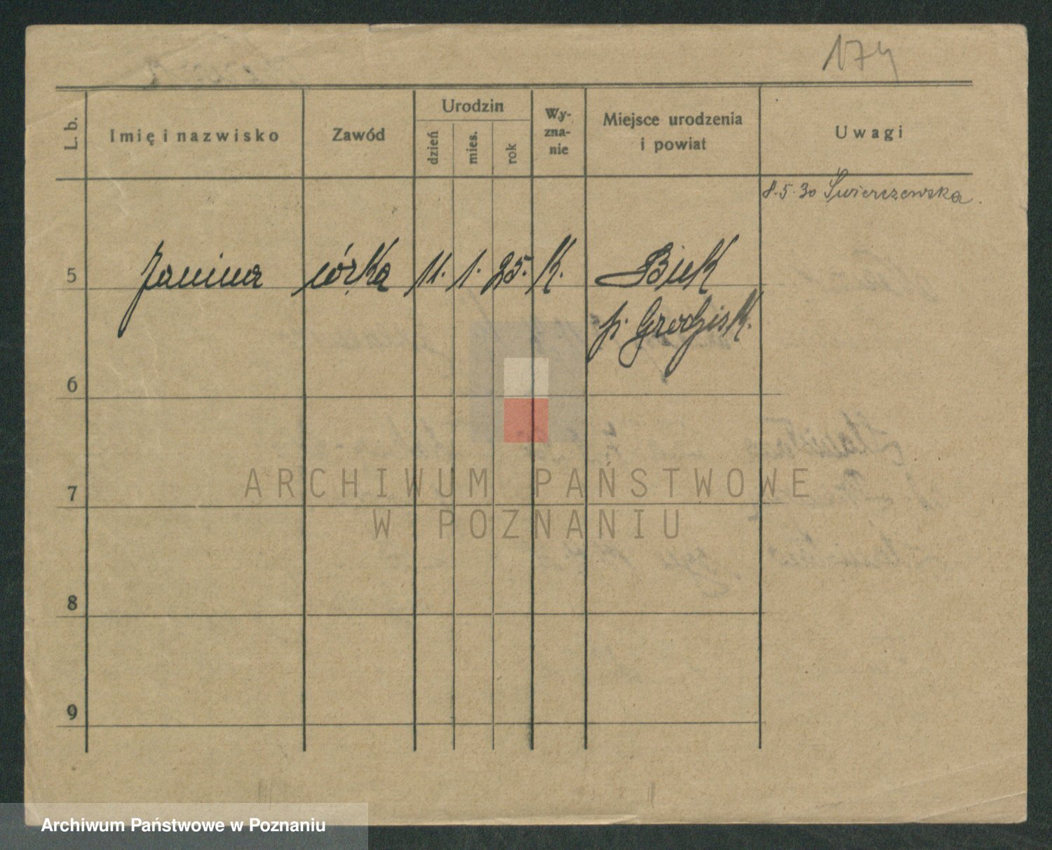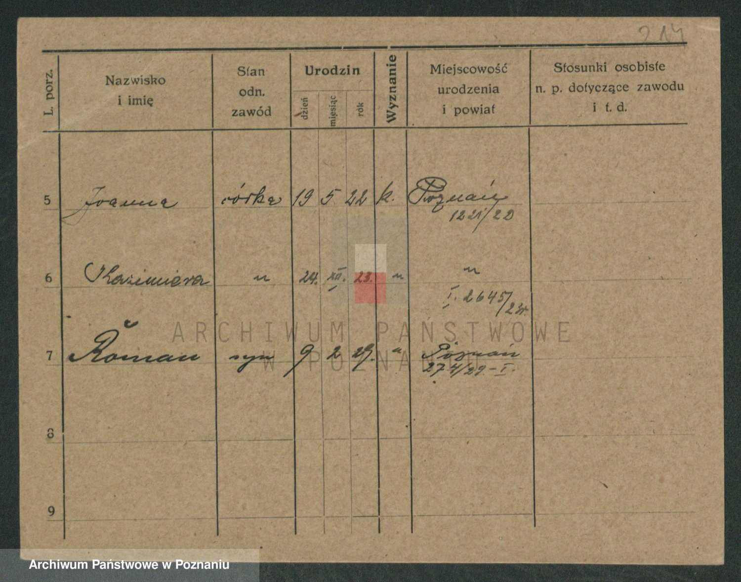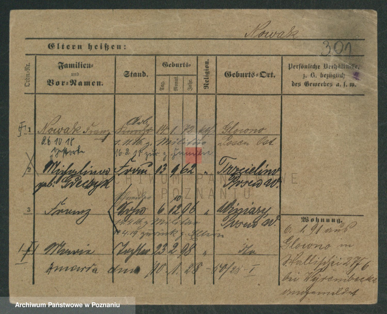 Podgląd karty osobowej dostępny jest po kliknięciu na nazwisko lub ikonkę karty. Można dokonywać powiększenia (ikony na górze) lub przechodzić między kolejnymi skanami (strzałki po bokach).